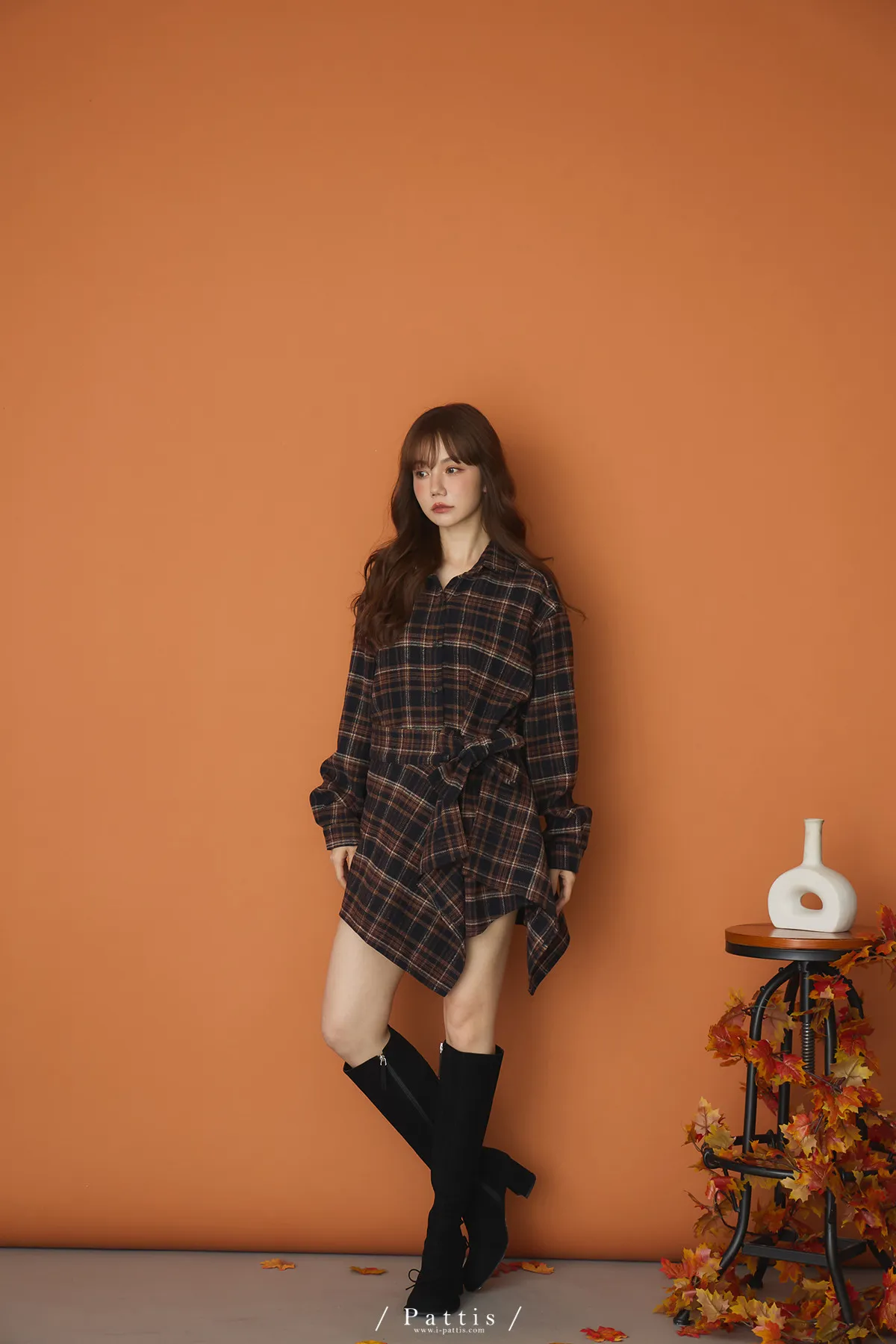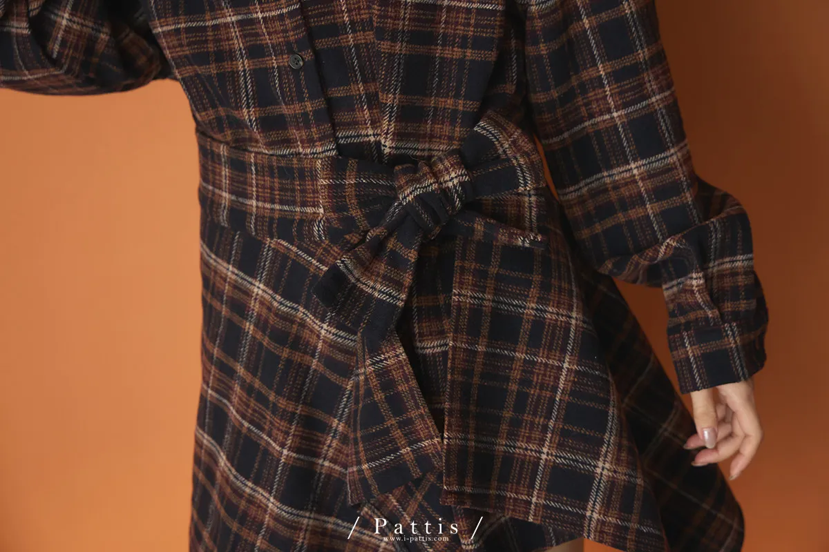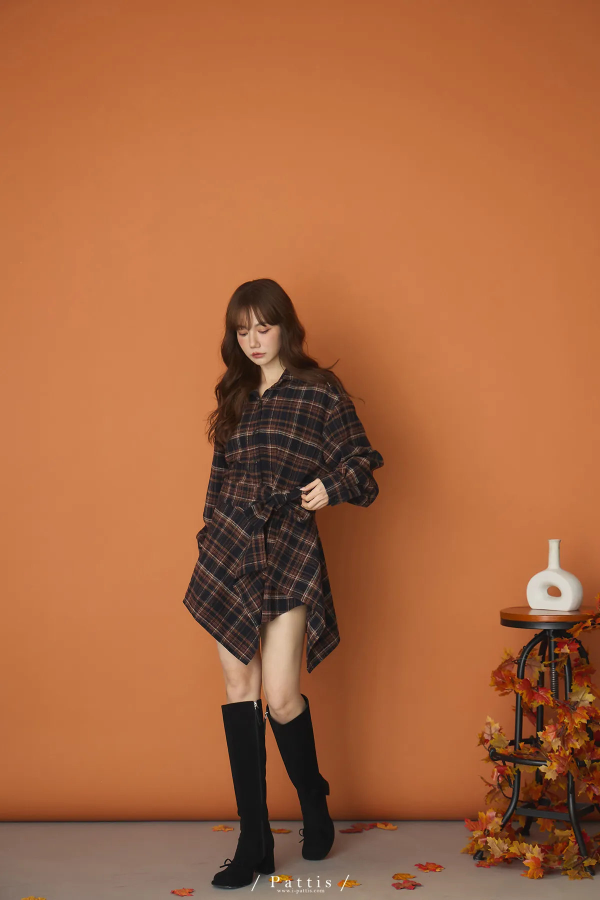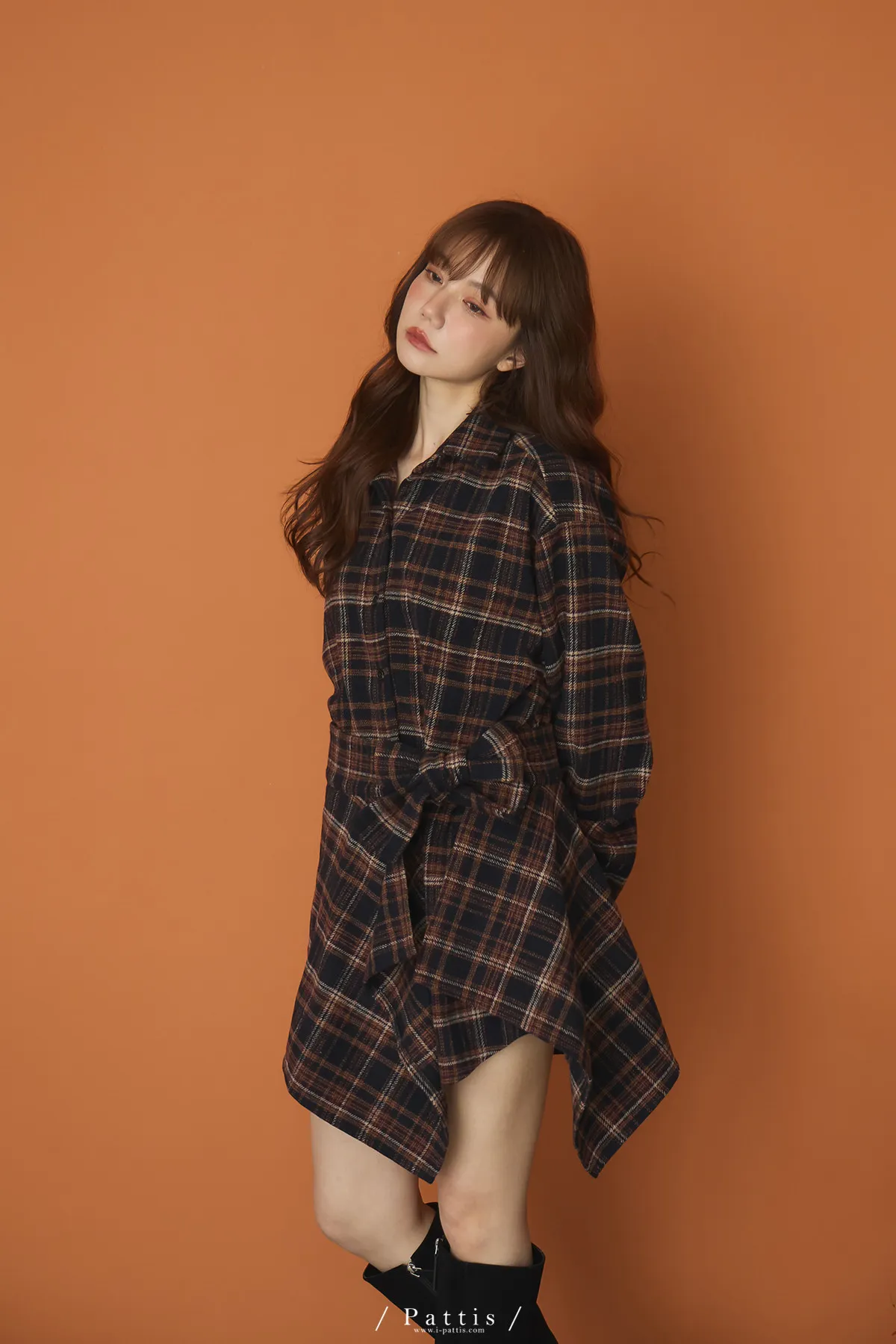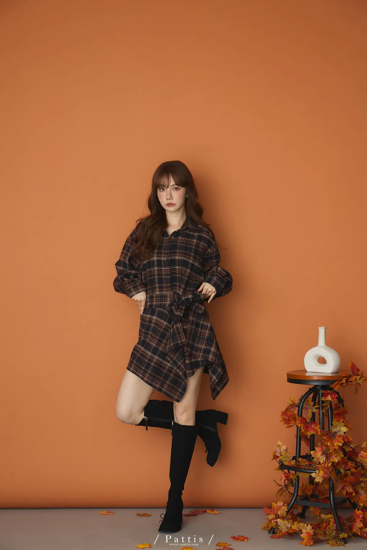線上溫柔 | 格紋壓摺片裙+襯衫短羊毛洋裝set(黑)