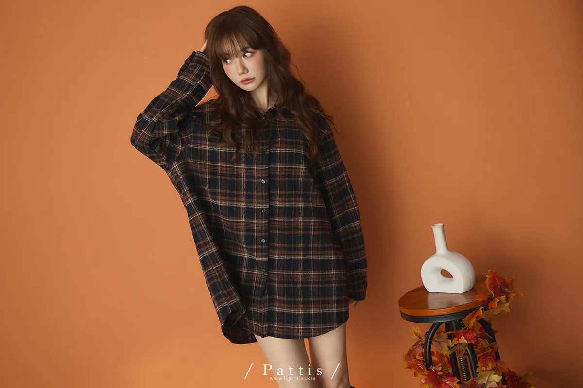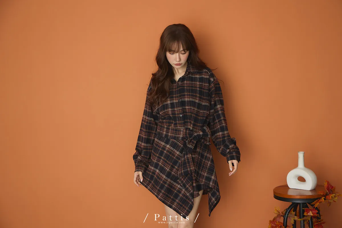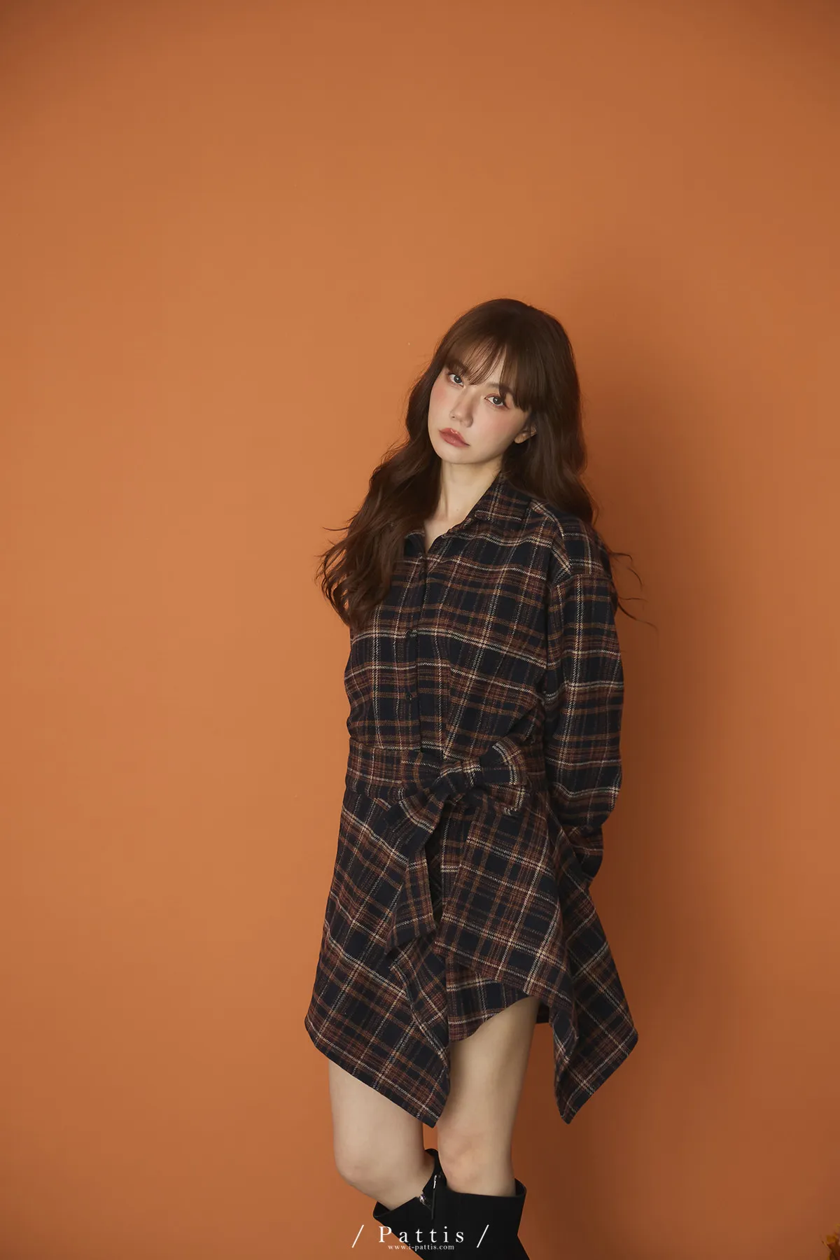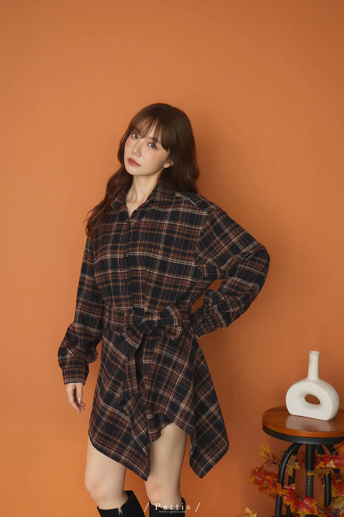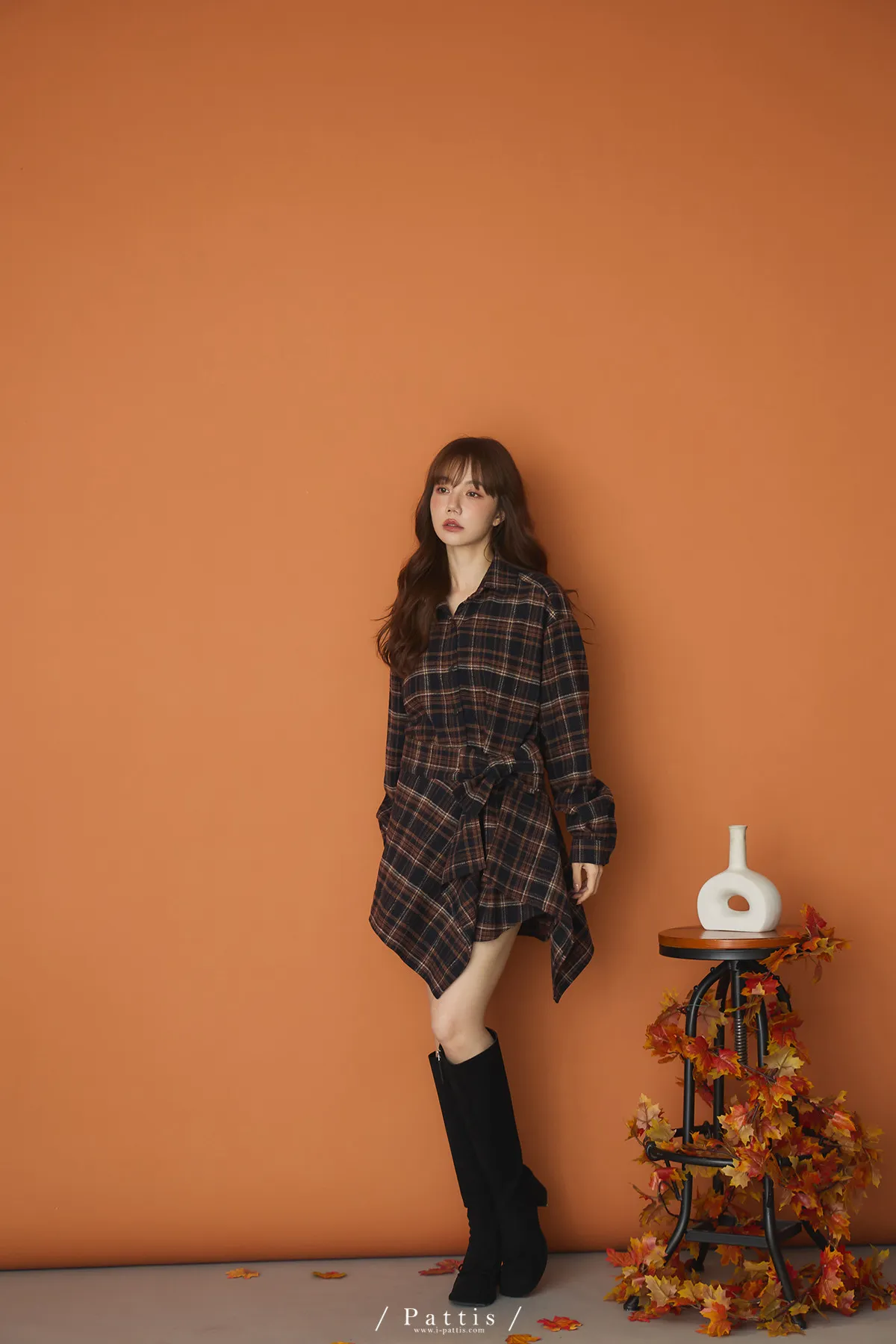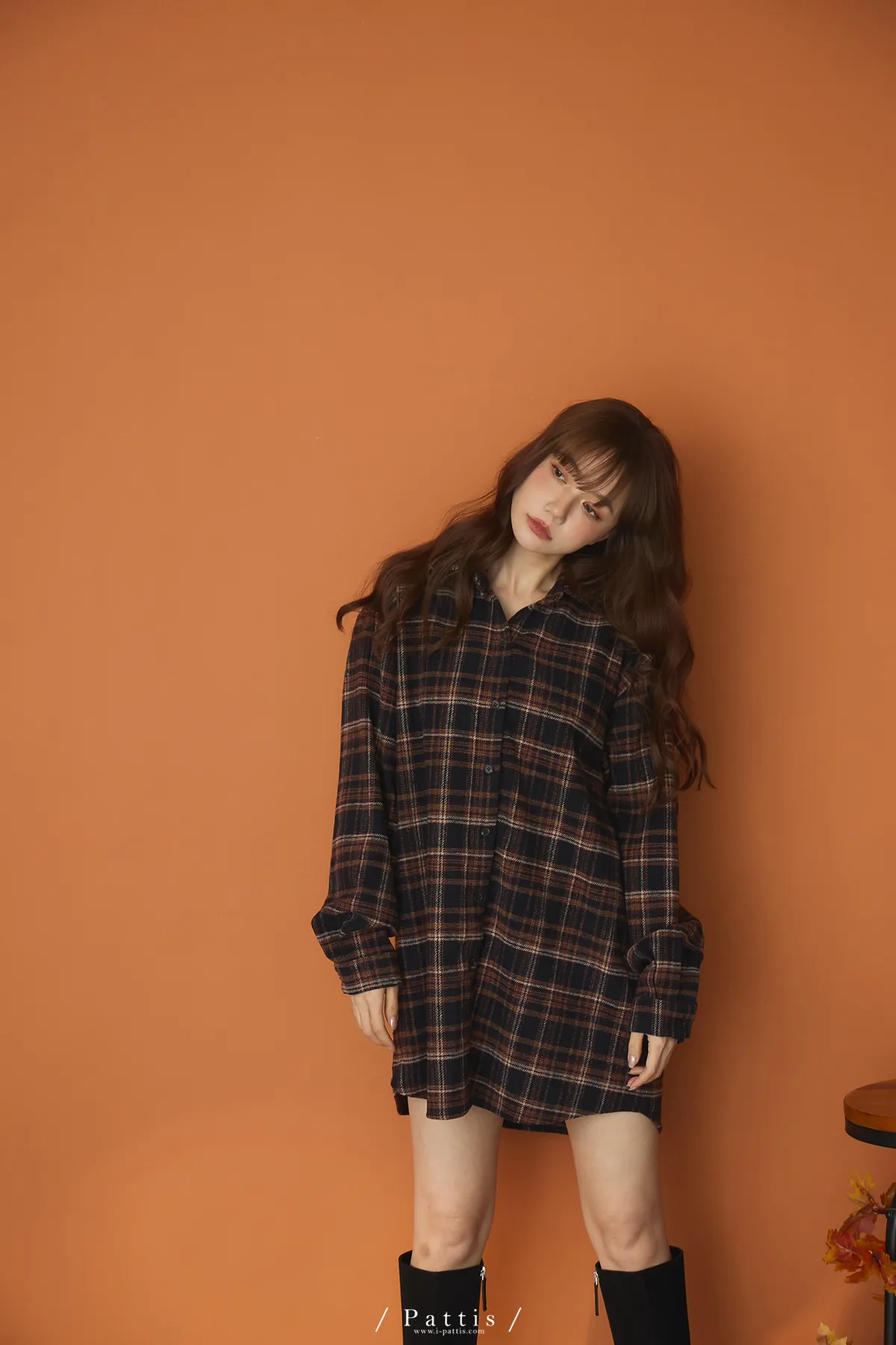 線上溫柔 | 格紋壓摺片裙+襯衫短羊毛洋裝set(黑)