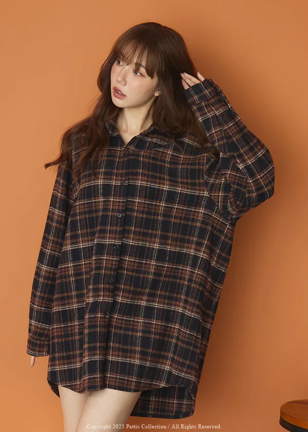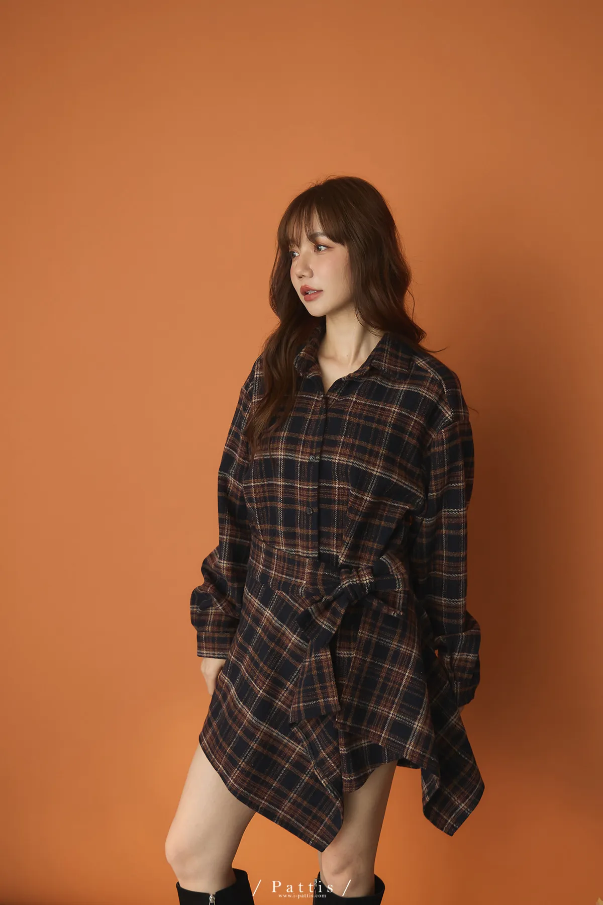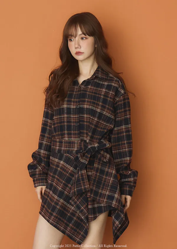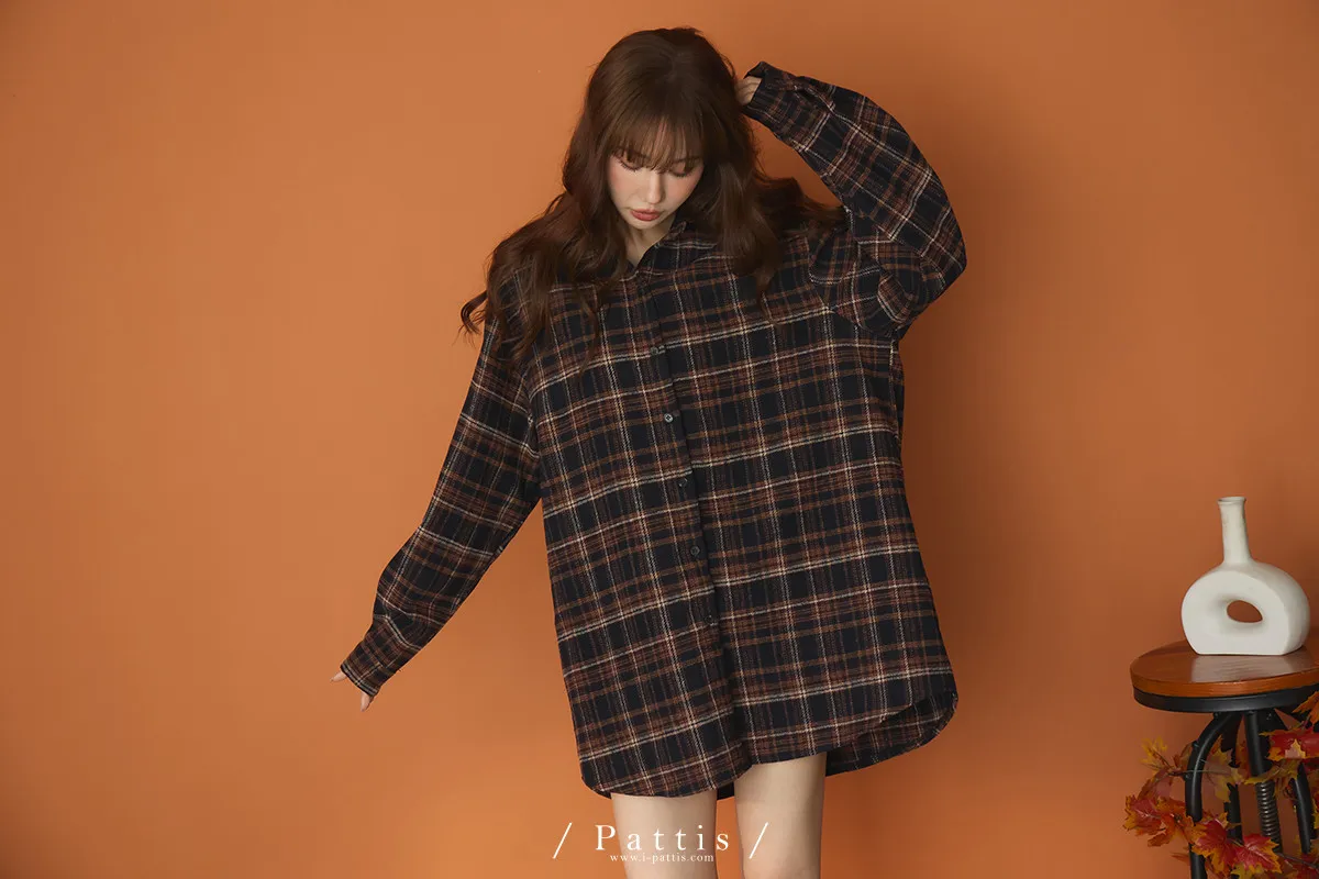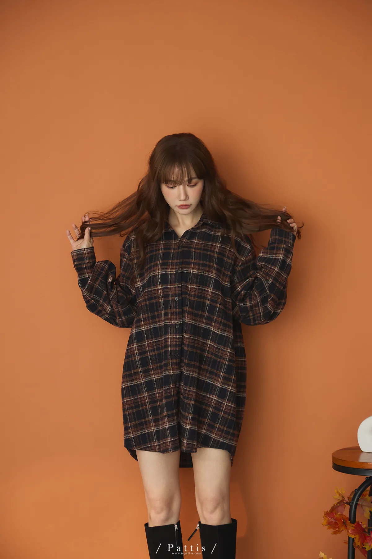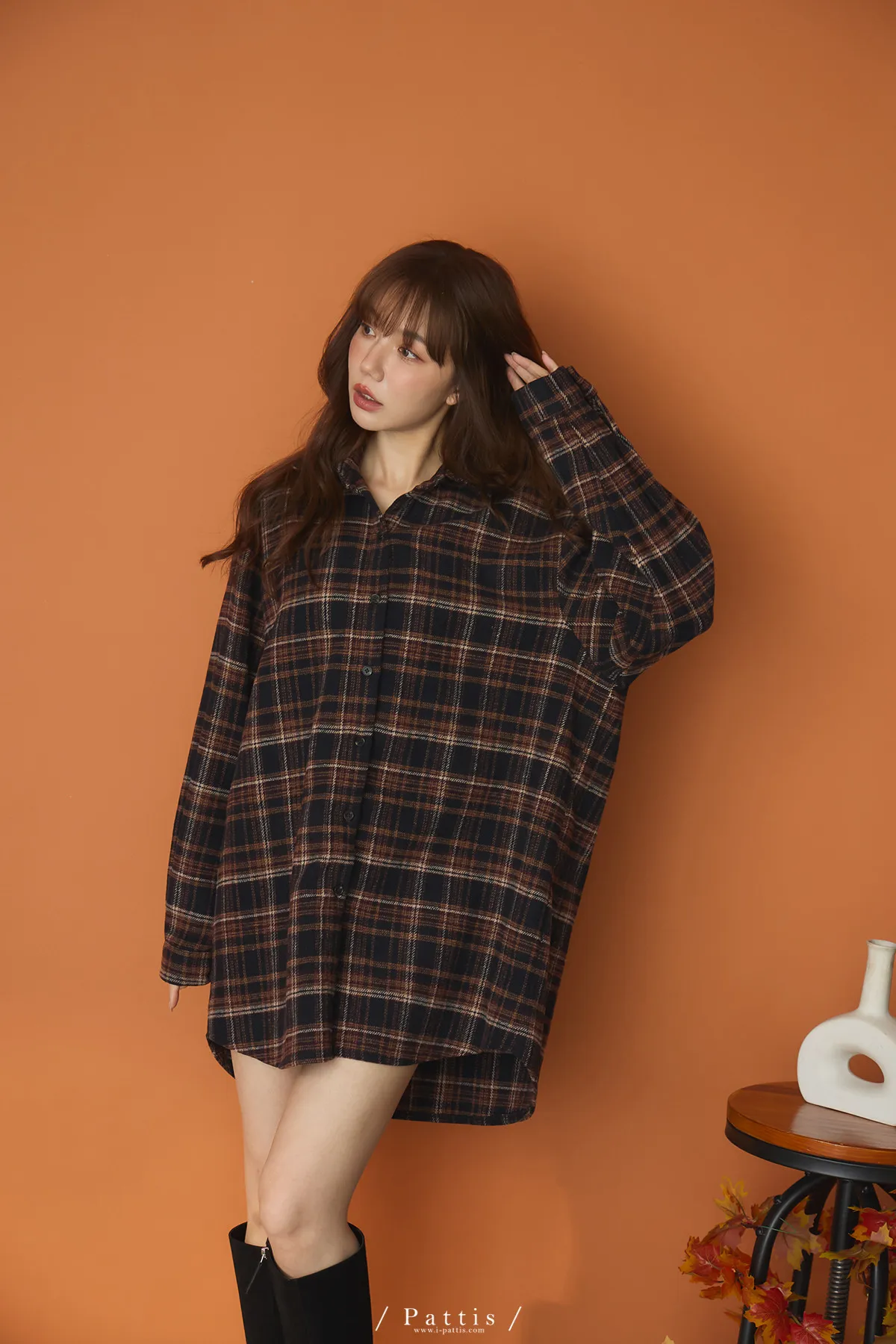 線上溫柔 | 格紋壓摺片裙+襯衫短羊毛洋裝set(黑)