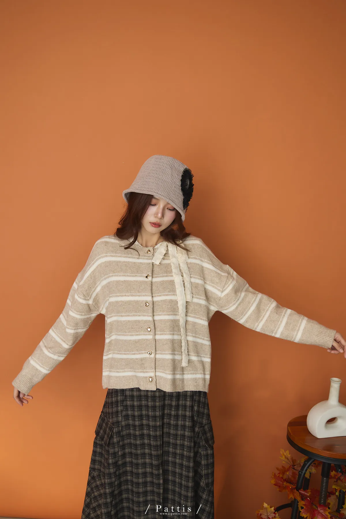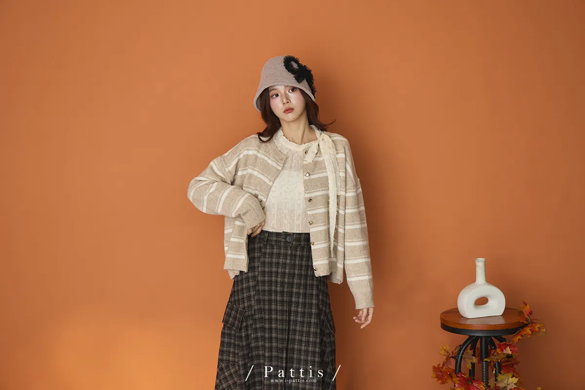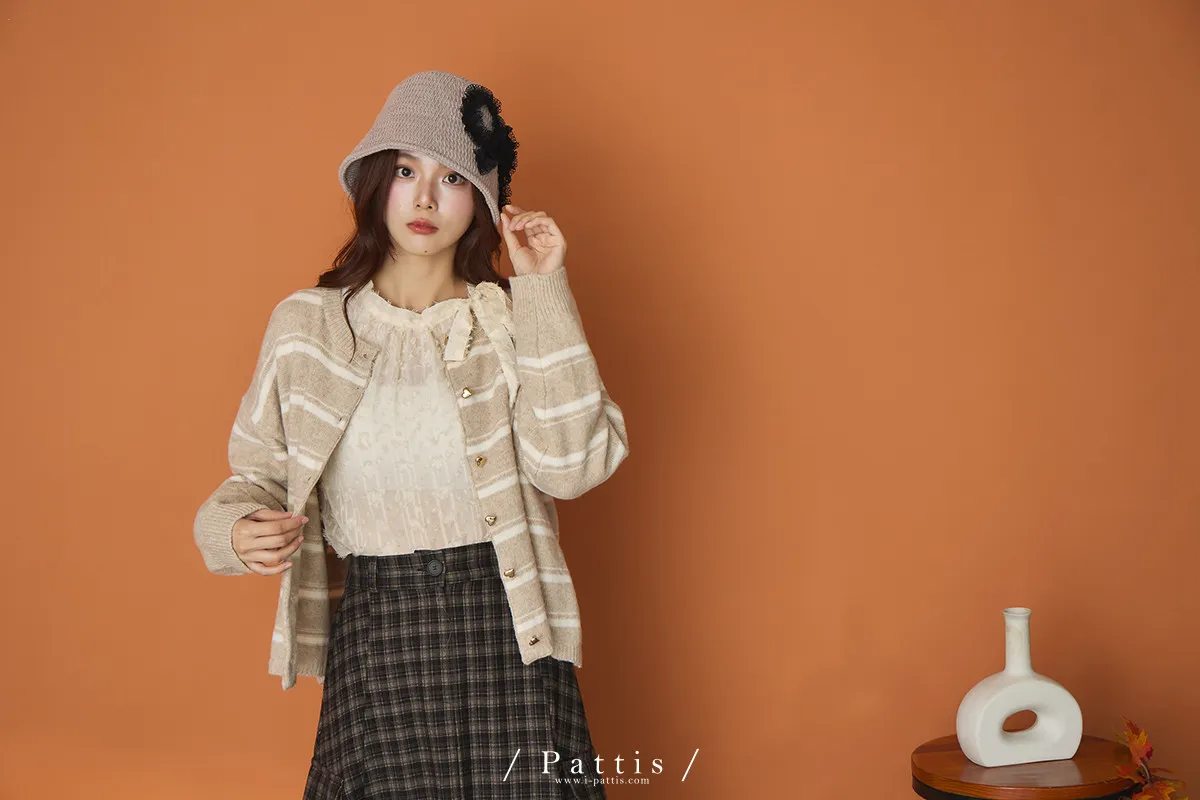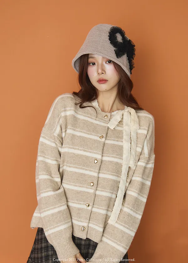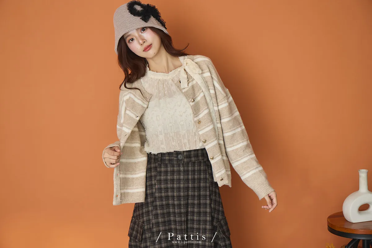 (現貨)閃爍的心動記號 | 5%羊毛愛心扣條紋外套(白米杏)