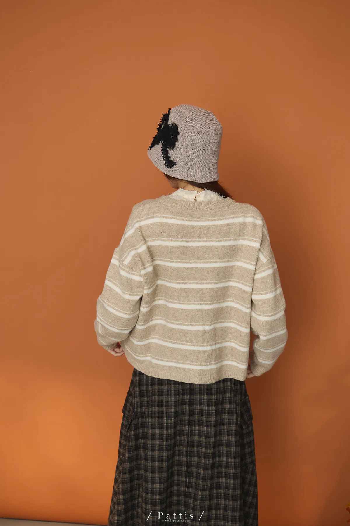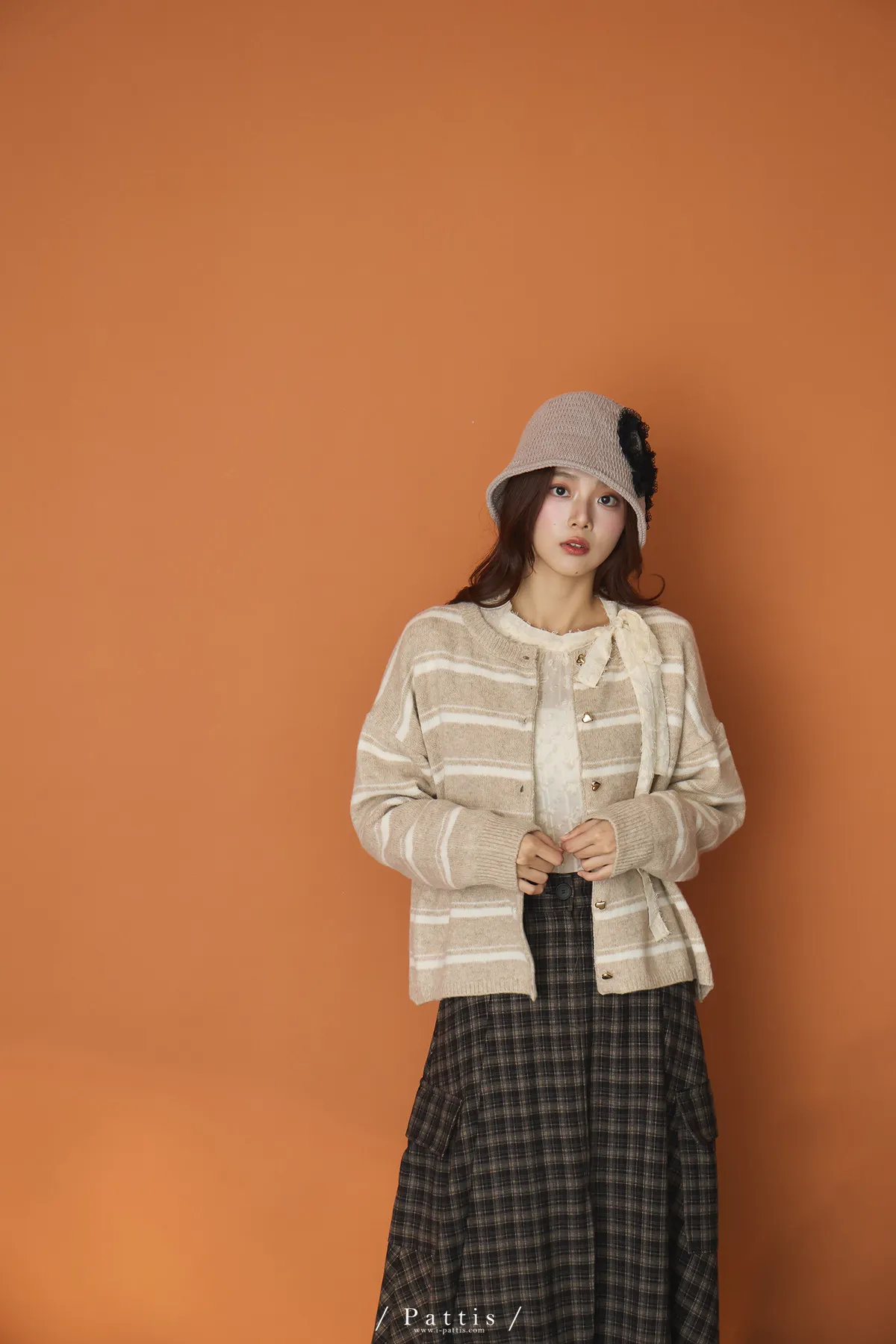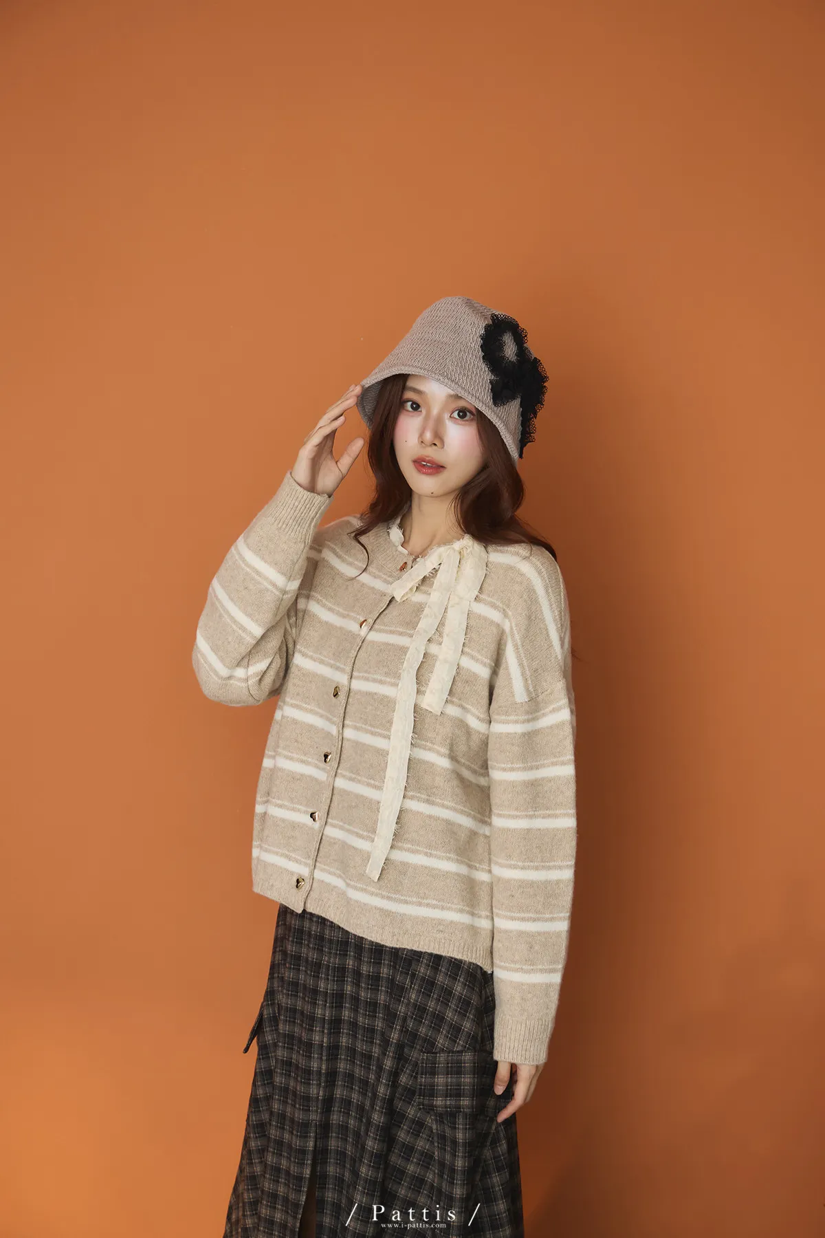 (現貨)閃爍的心動記號 | 5%羊毛愛心扣條紋外套(白米杏)