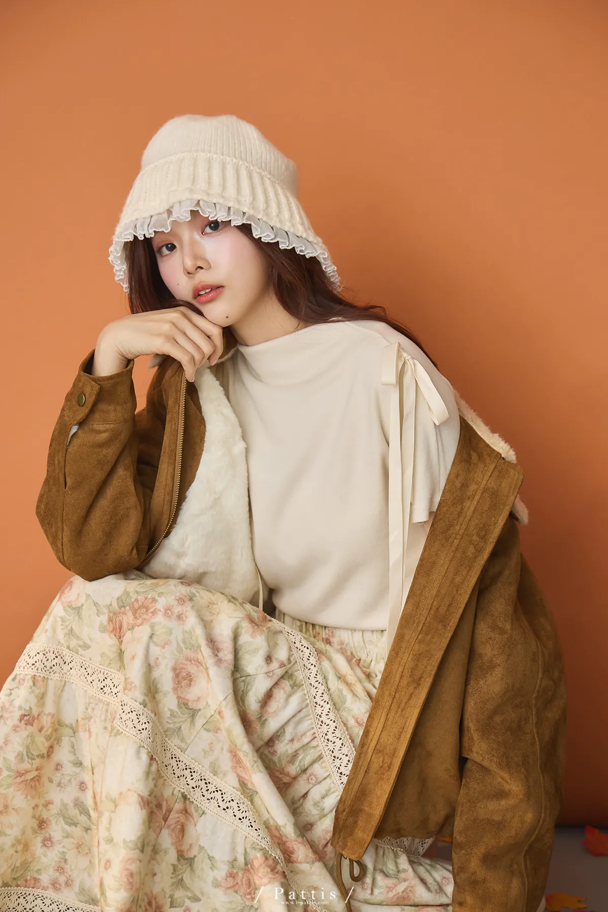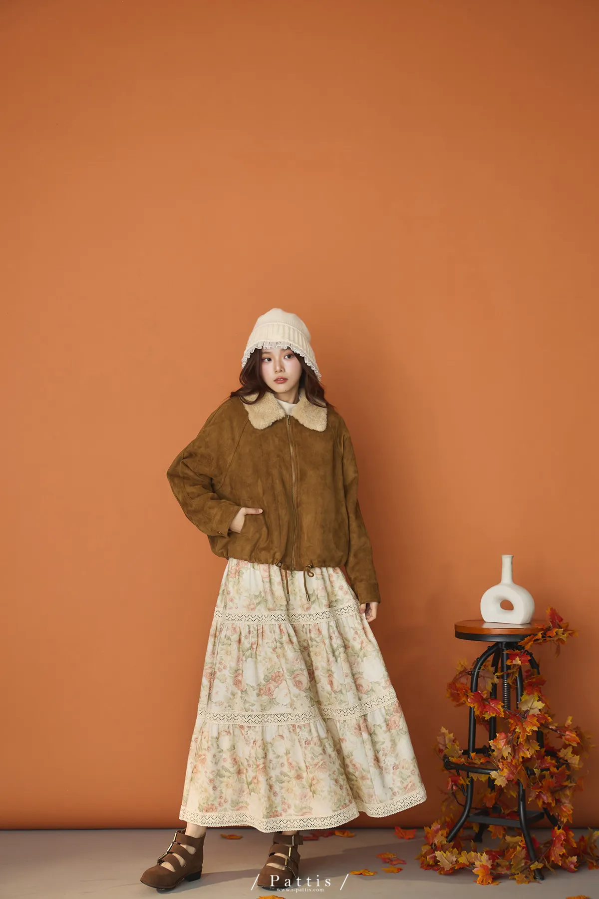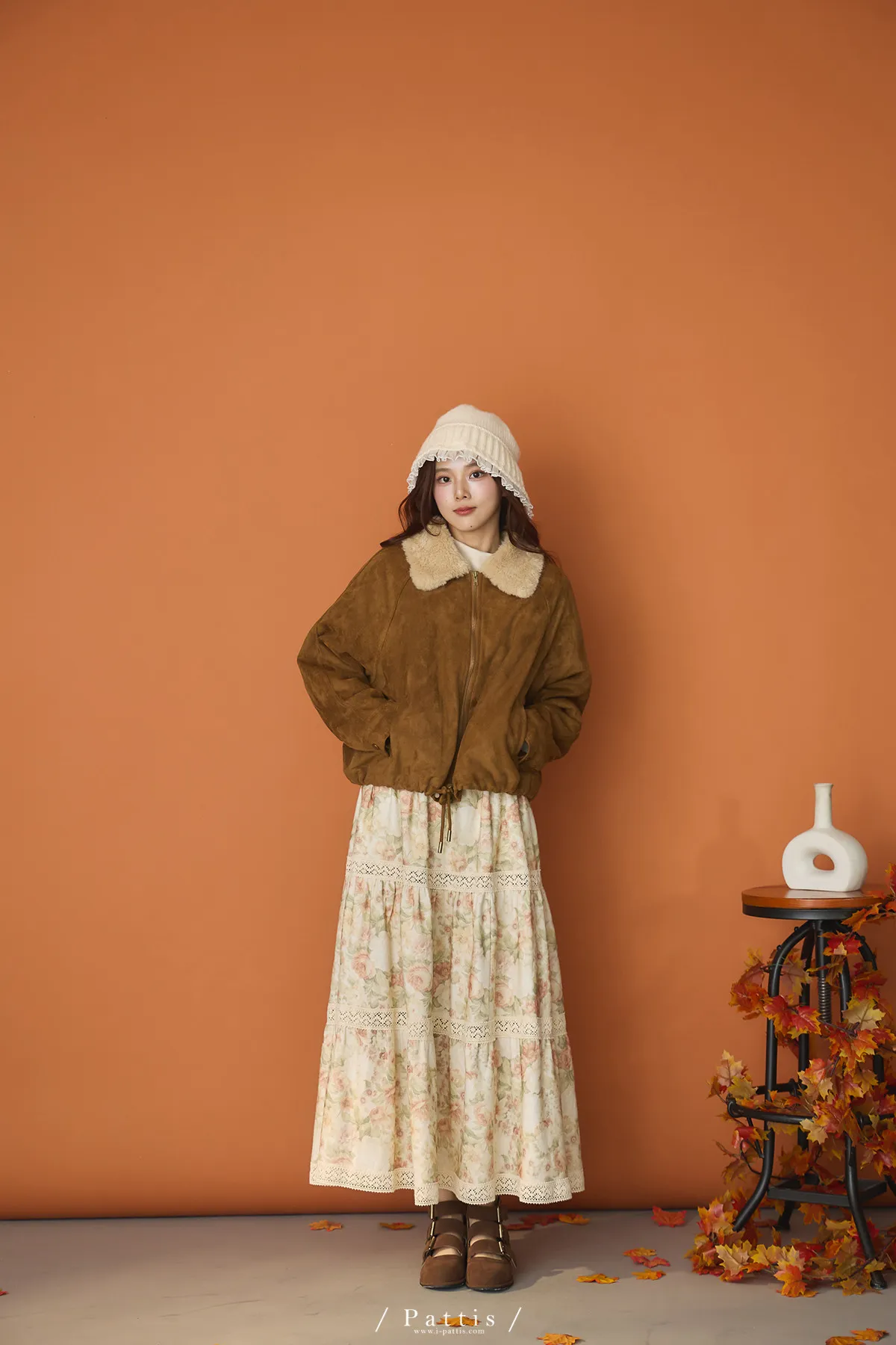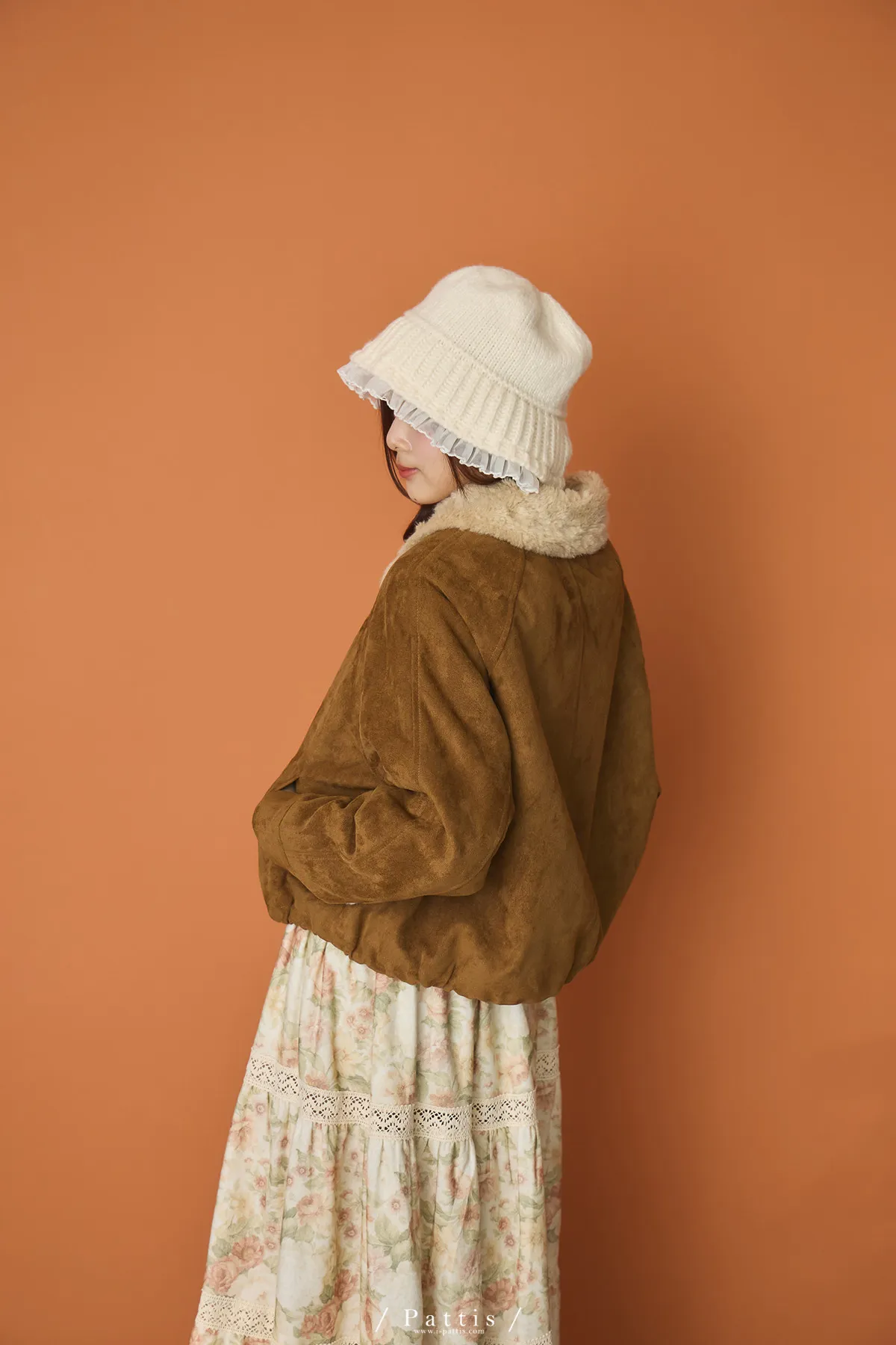 聽故事冬眠的泰迪 | 軟毛翻領麂皮絨拉鍊下抽繩外套(卡其)