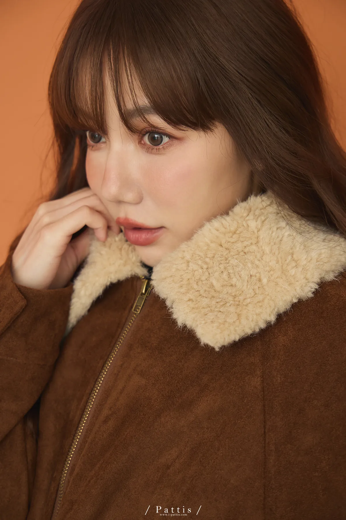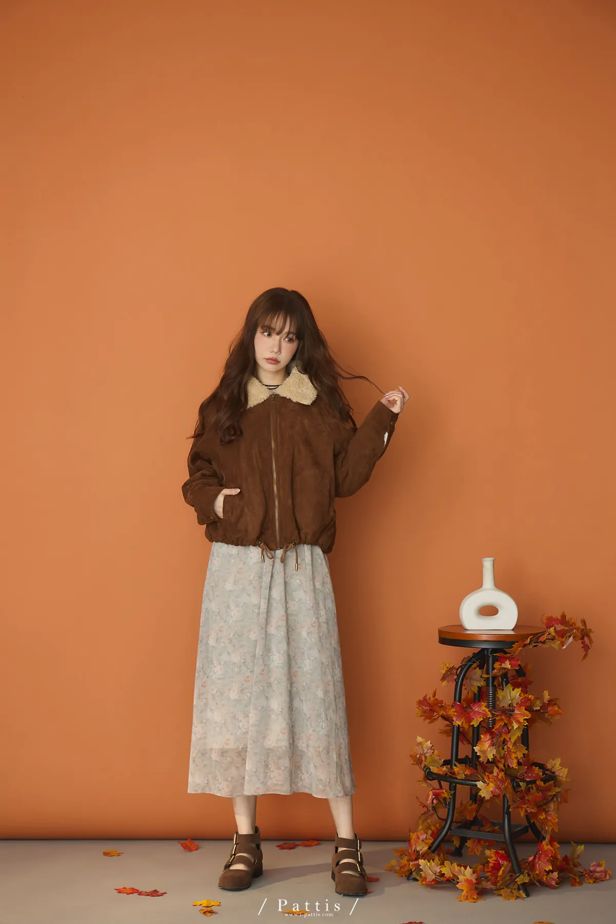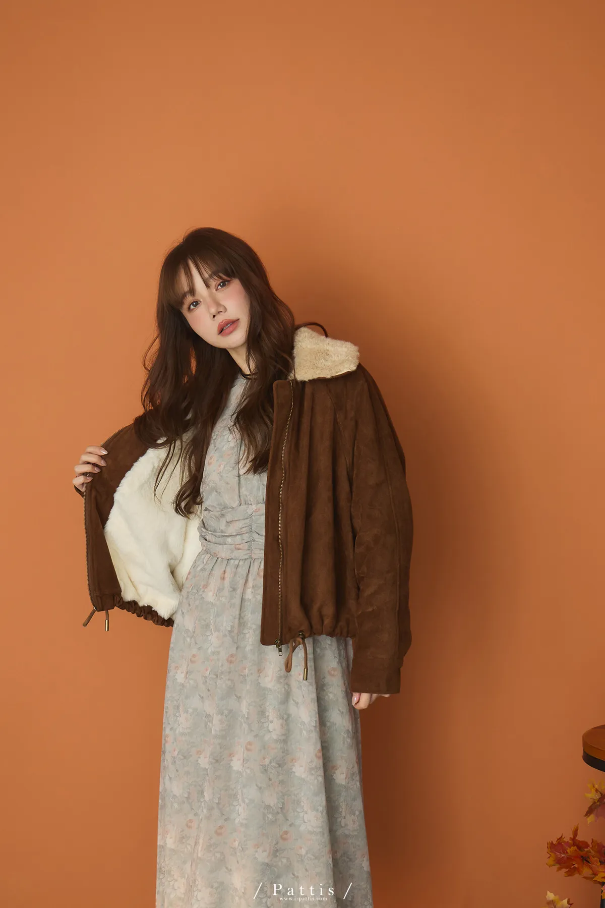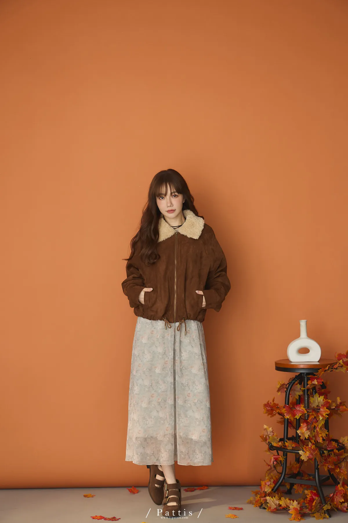 聽故事冬眠的泰迪 | 軟毛翻領麂皮絨拉鍊下抽繩外套(橘棕)