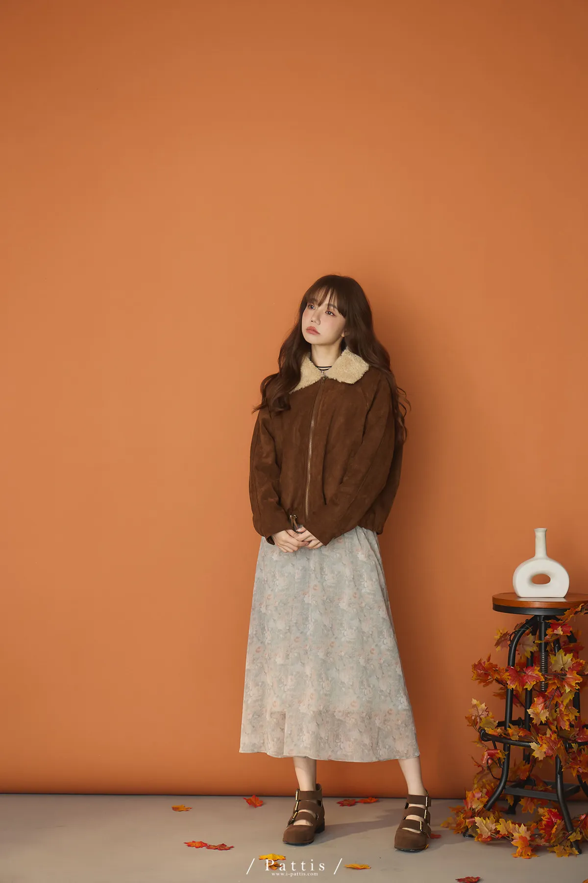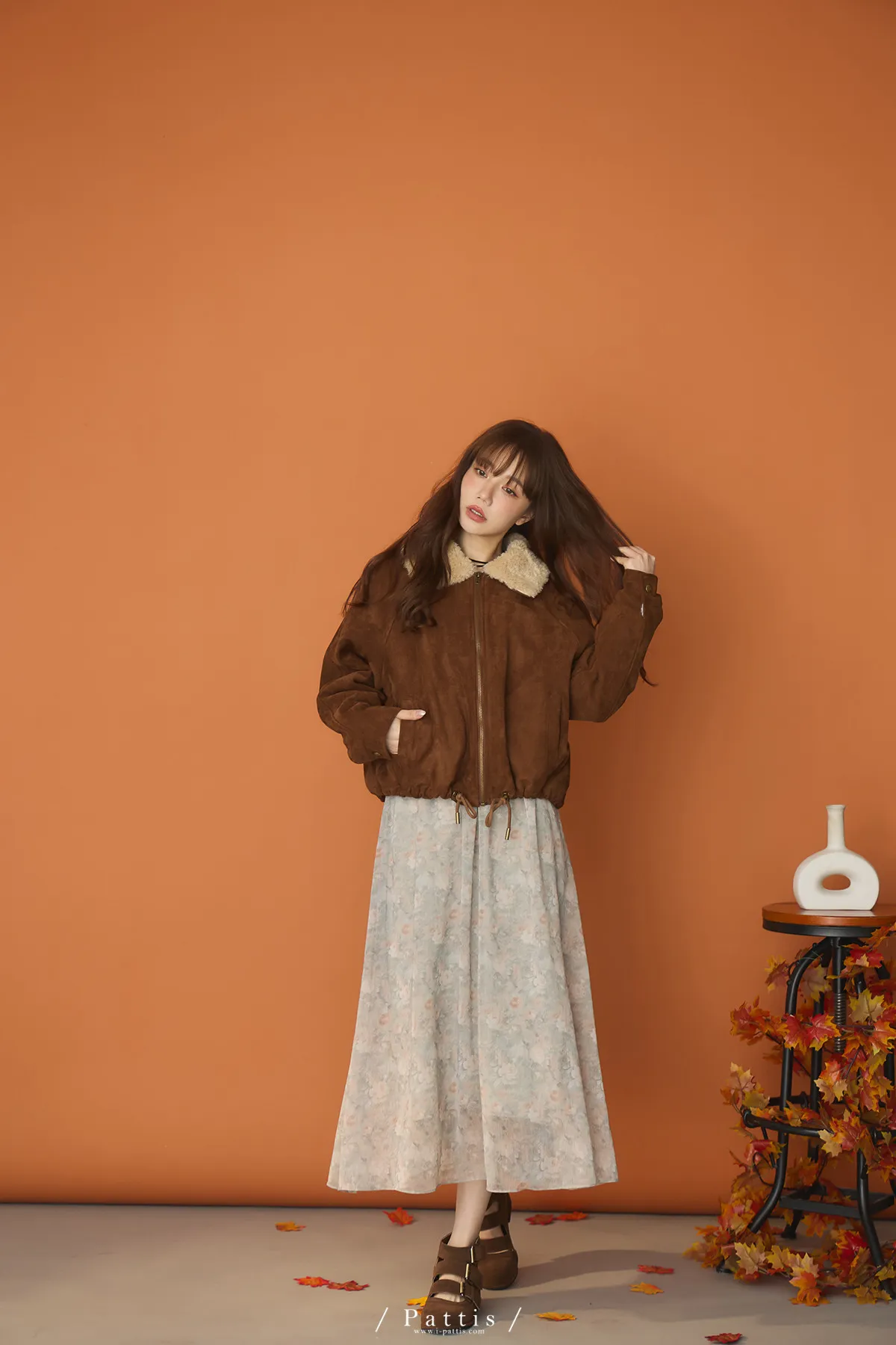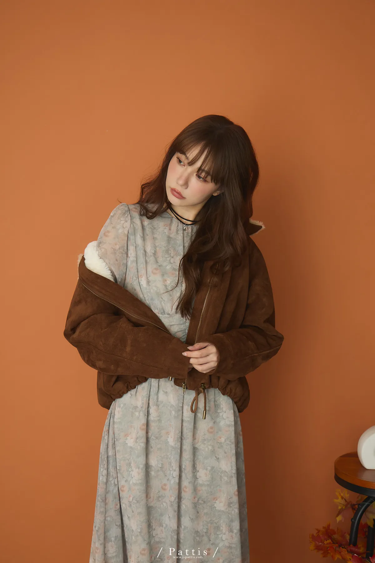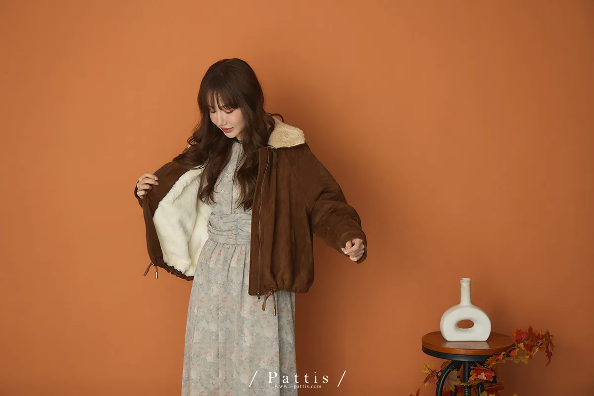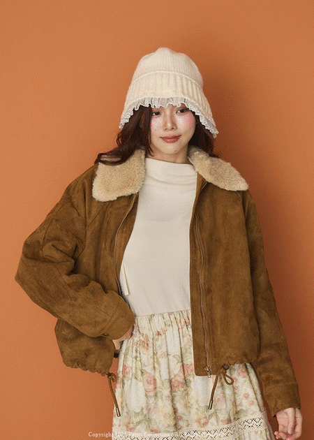 聽故事冬眠的泰迪 | 軟毛翻領麂皮絨拉鍊下抽繩外套(橘棕)