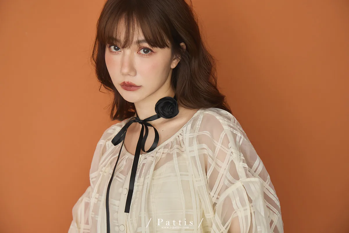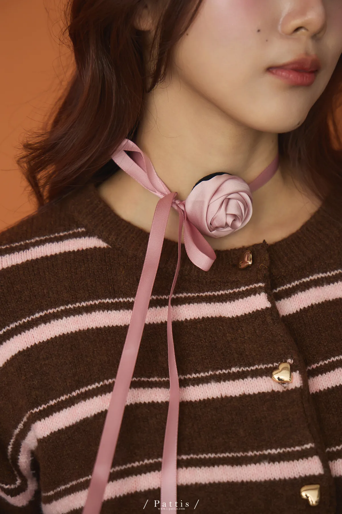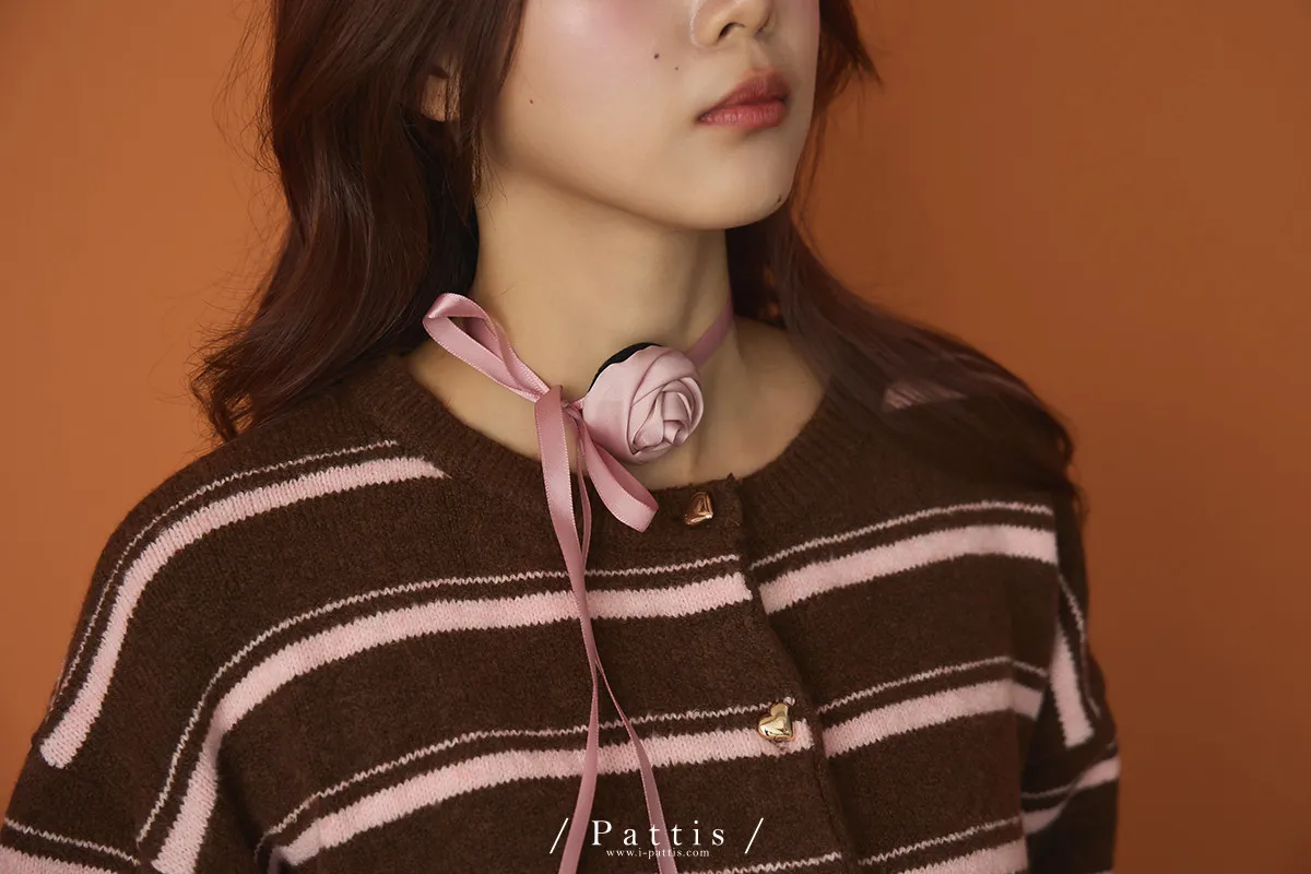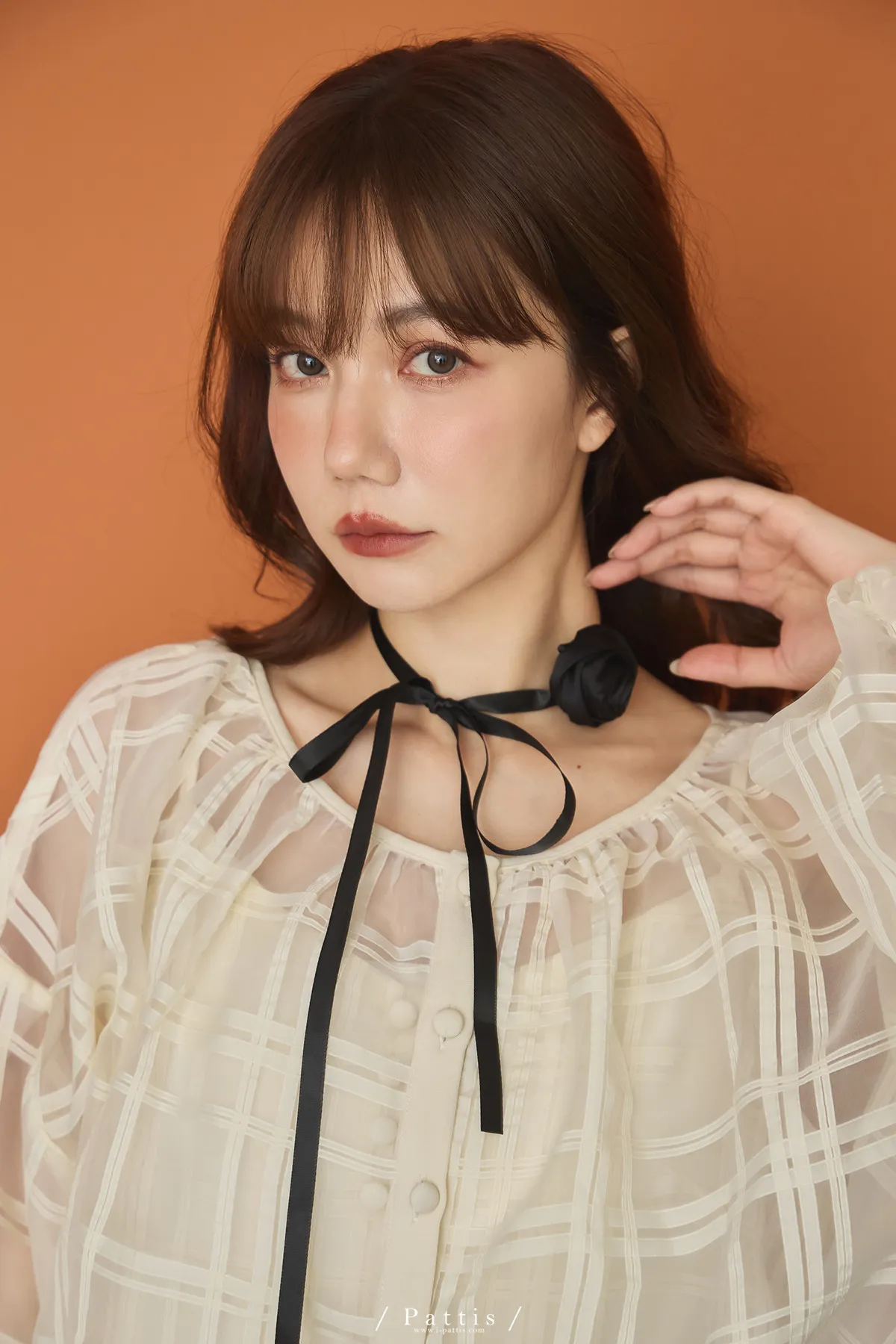 手工緞光玫瑰花綁帶頸鍊(米白/粉/黑)