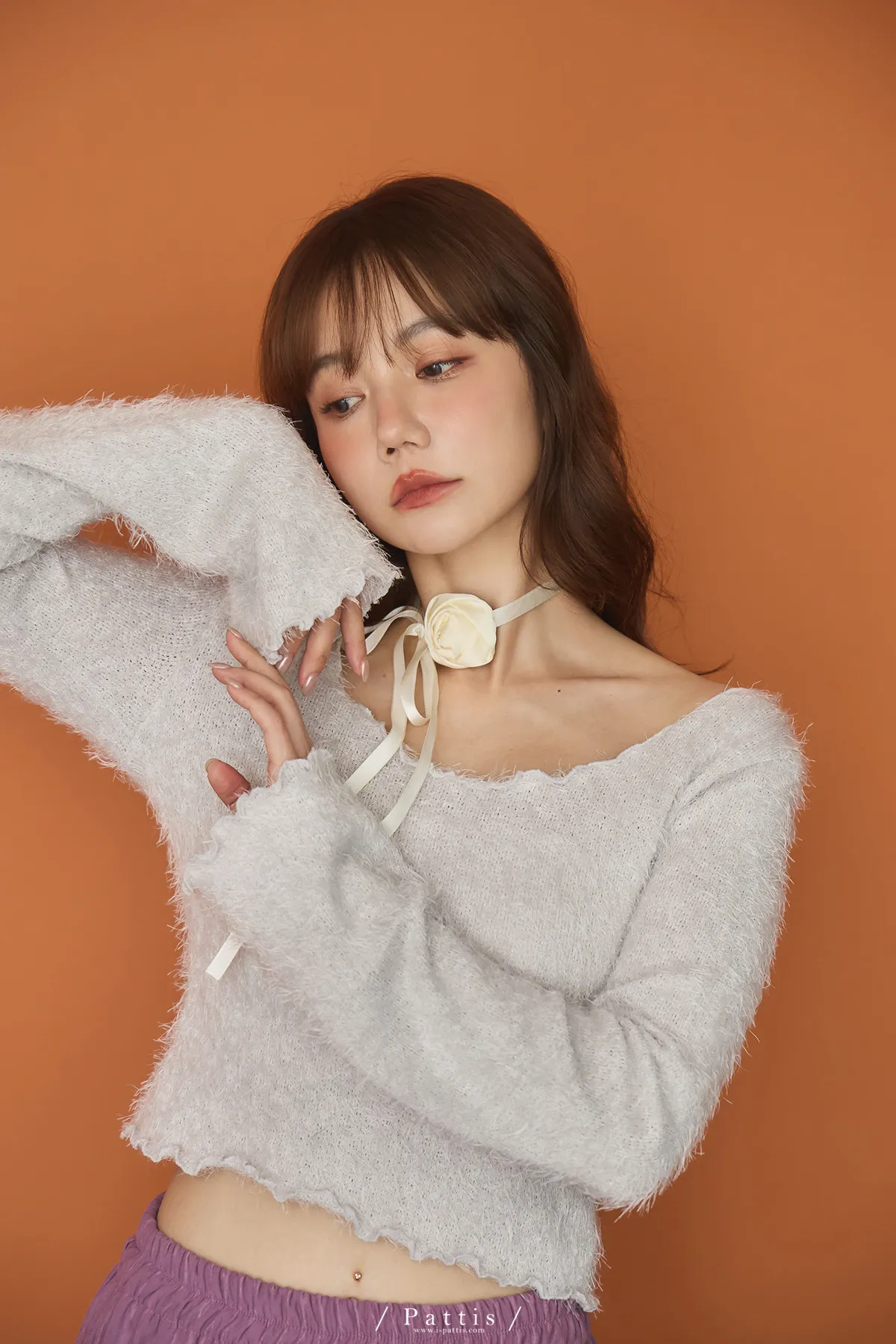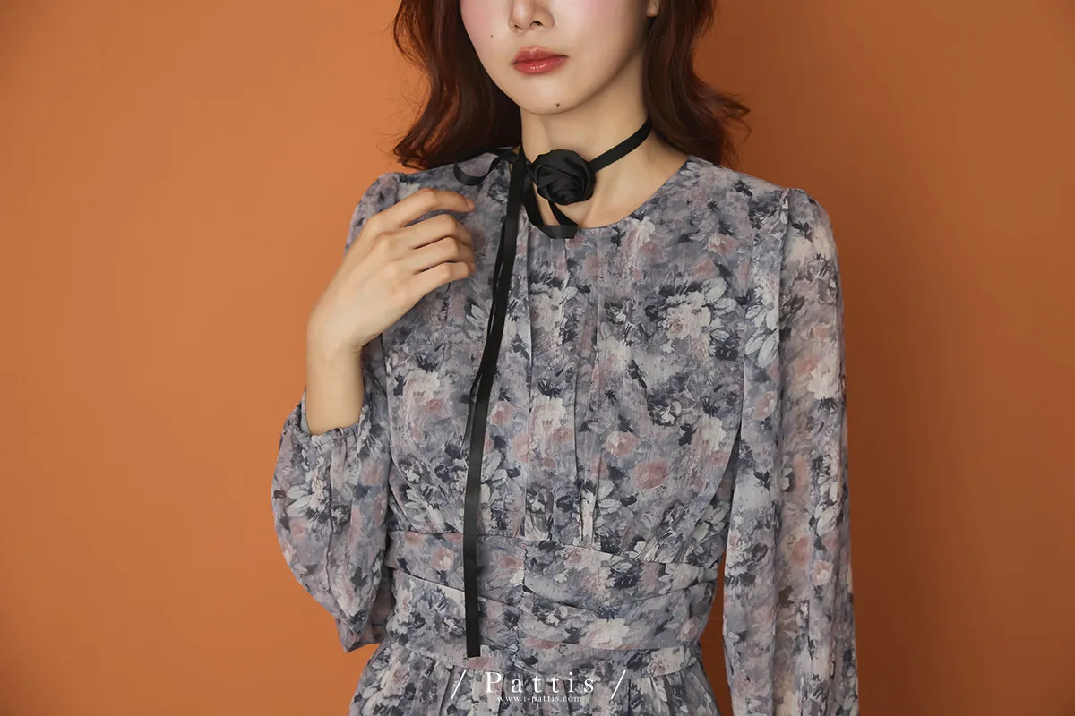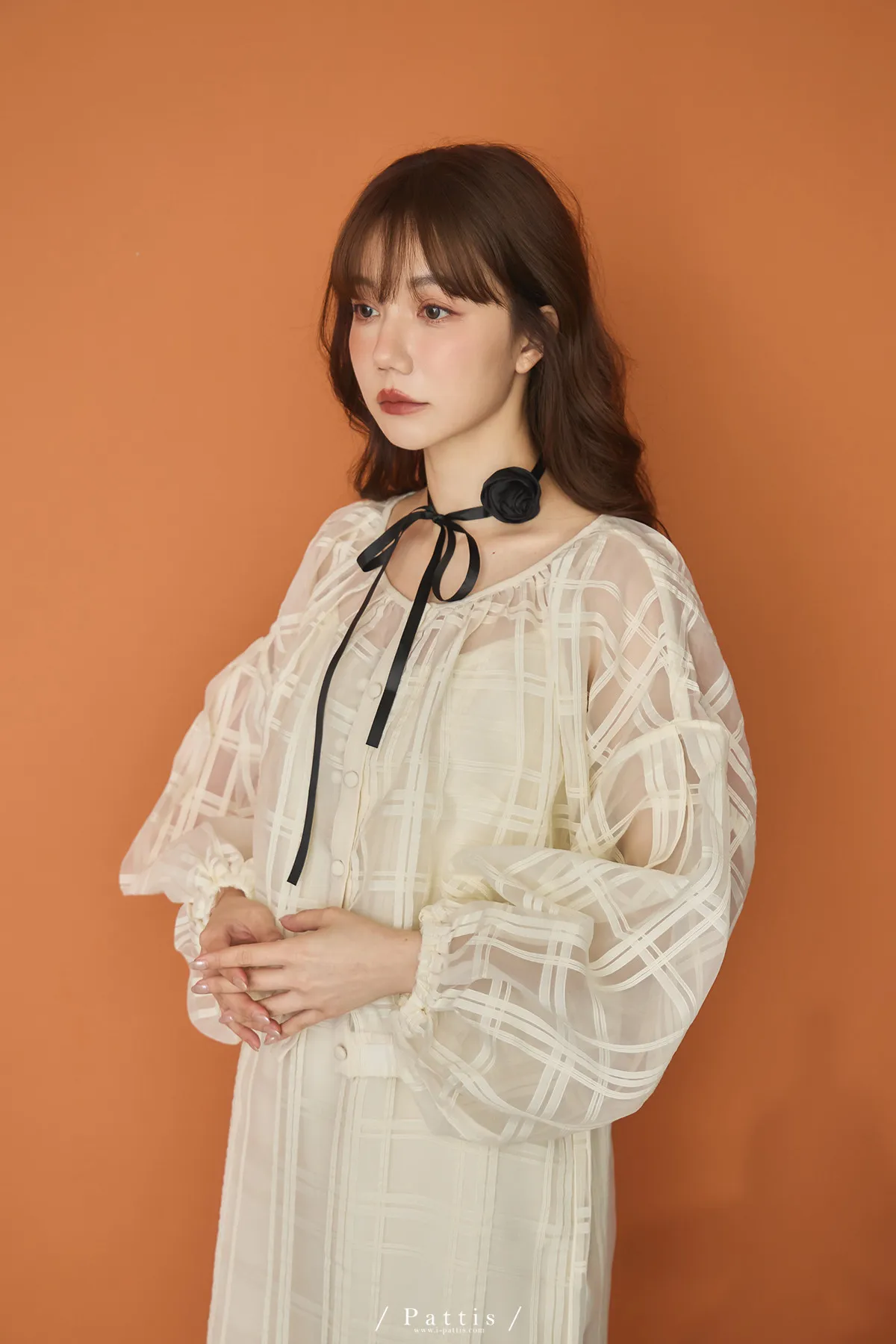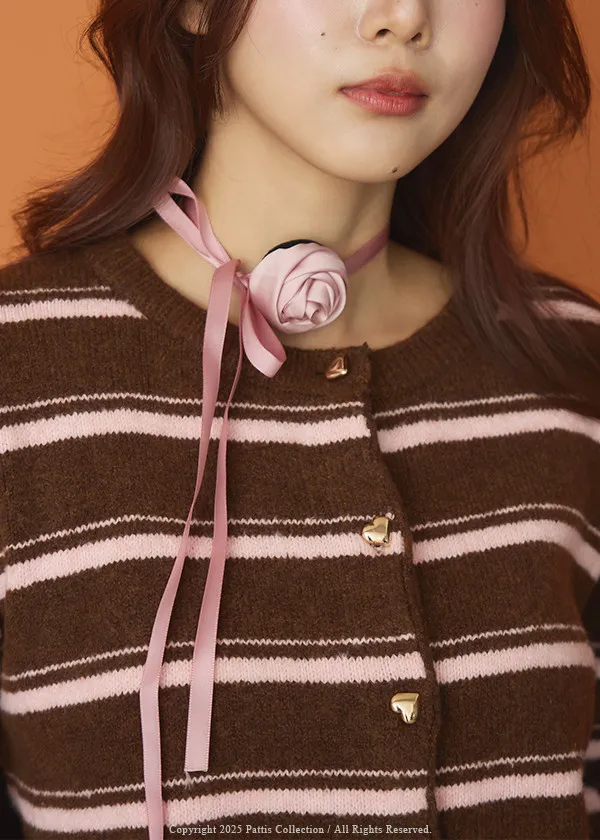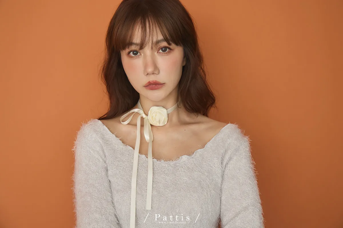 手工緞光玫瑰花綁帶頸鍊(米白/粉/黑)