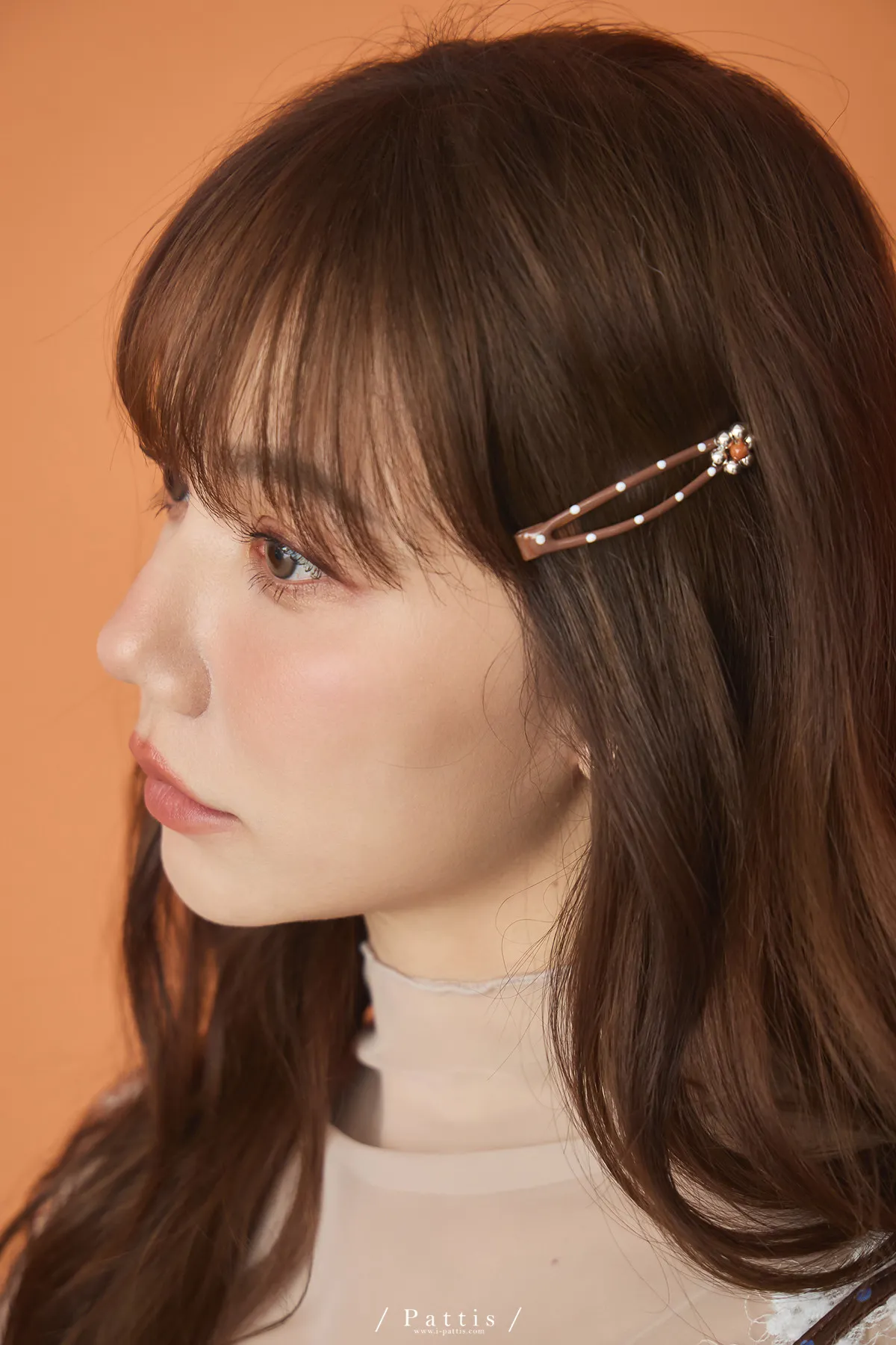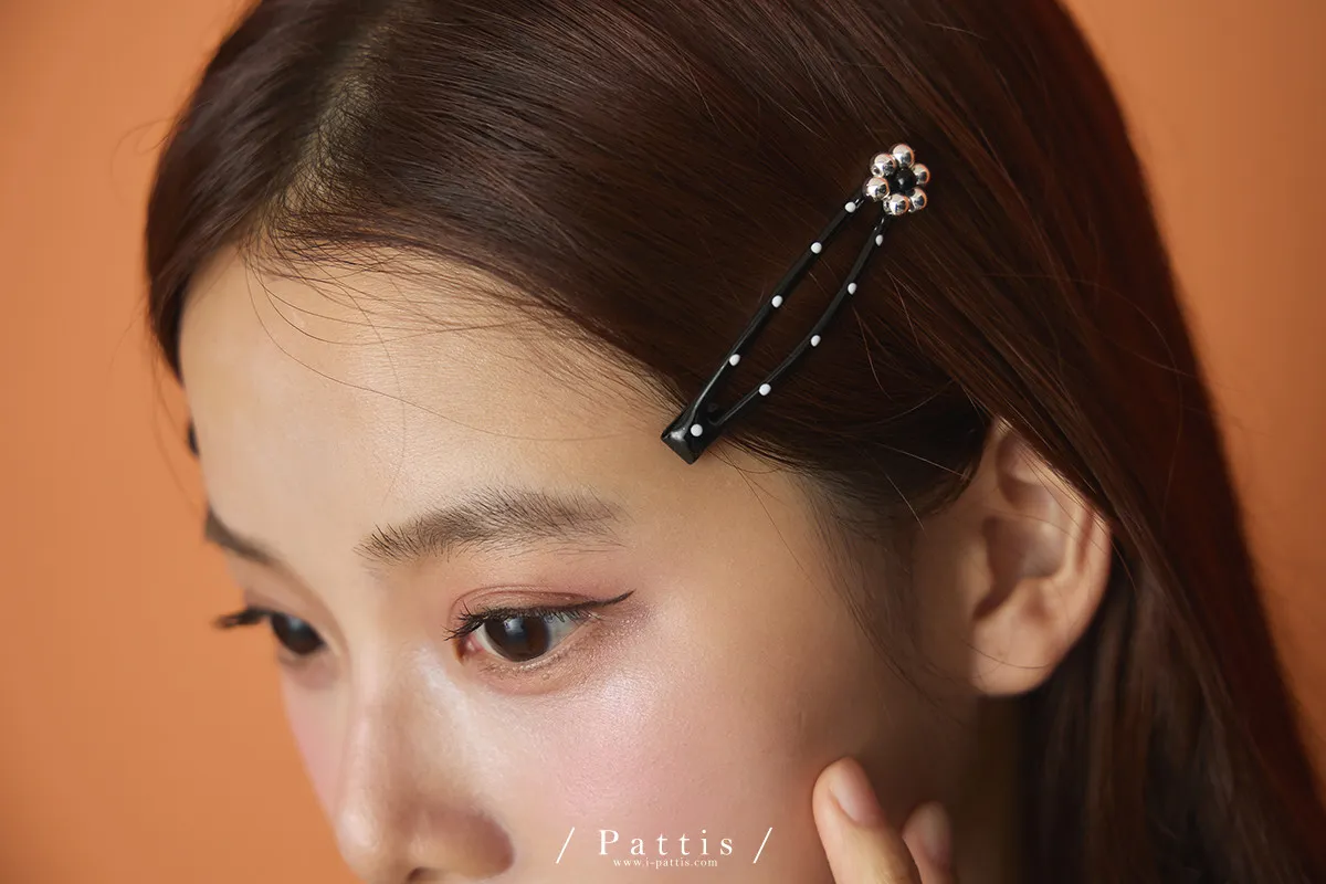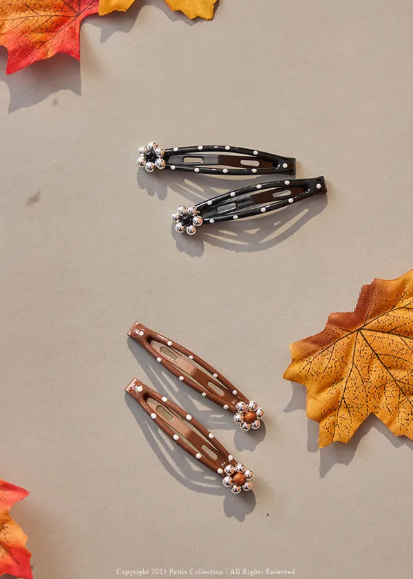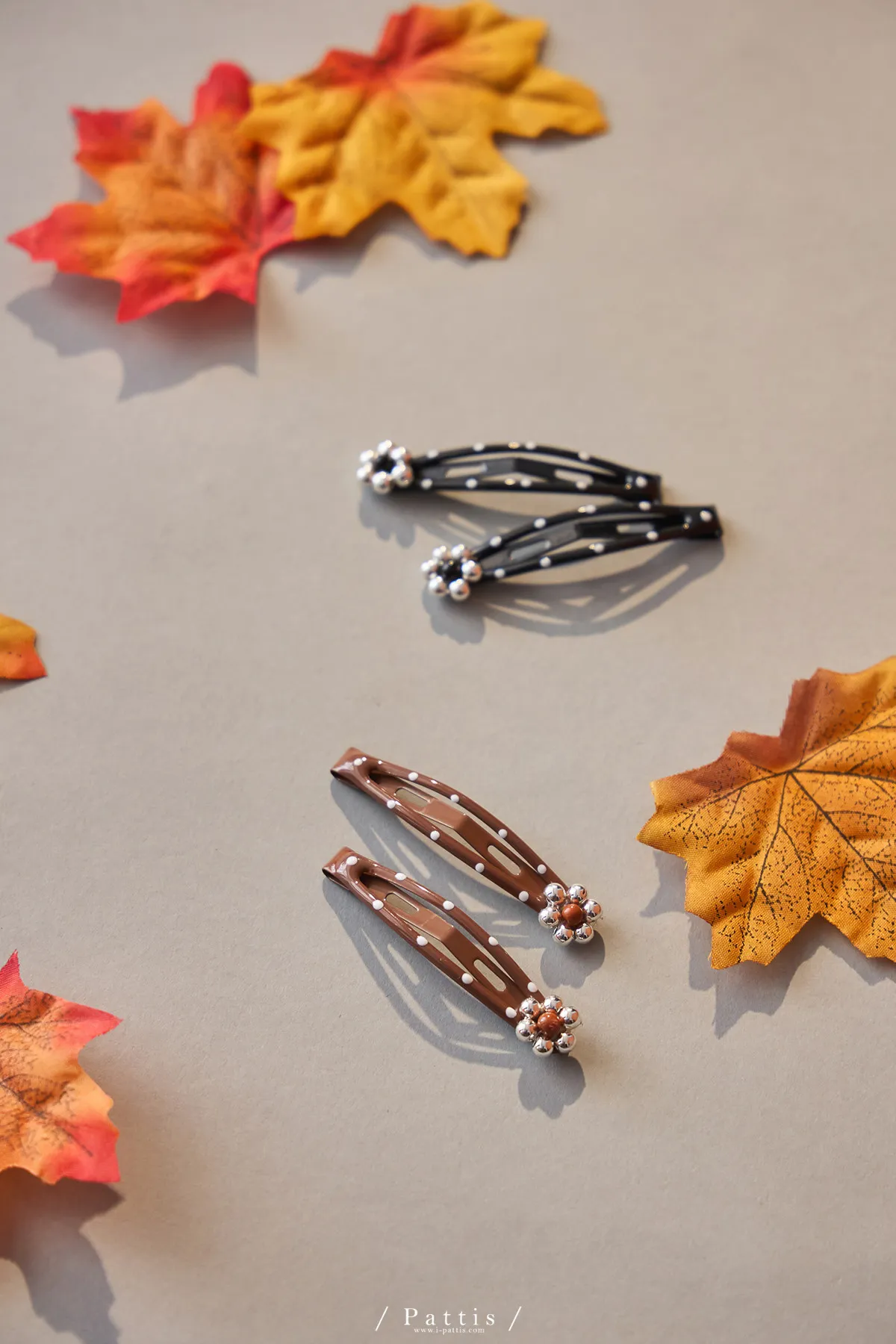 (現貨)串珠小花點點髮夾二入set組(咖啡/黑)