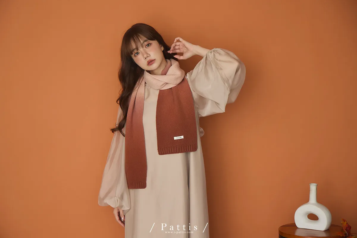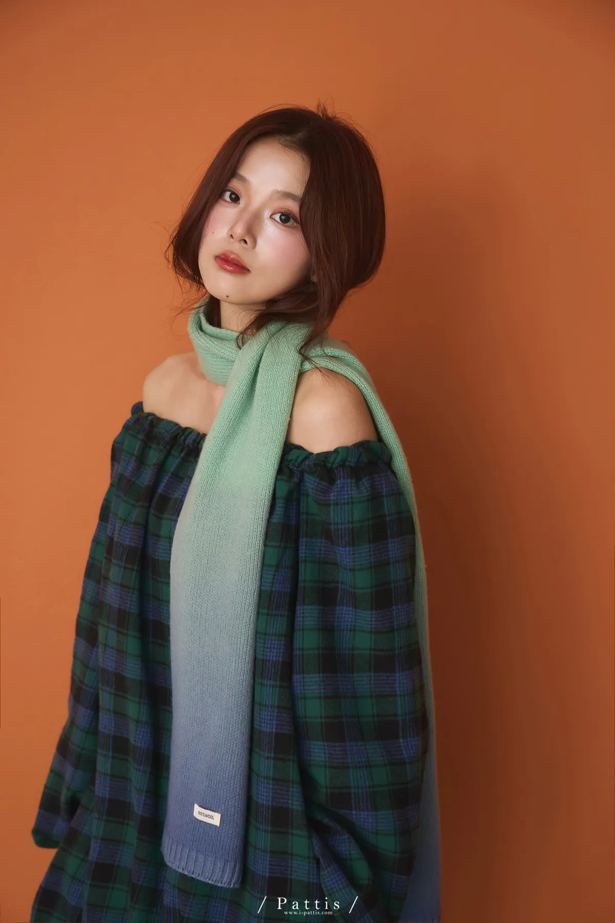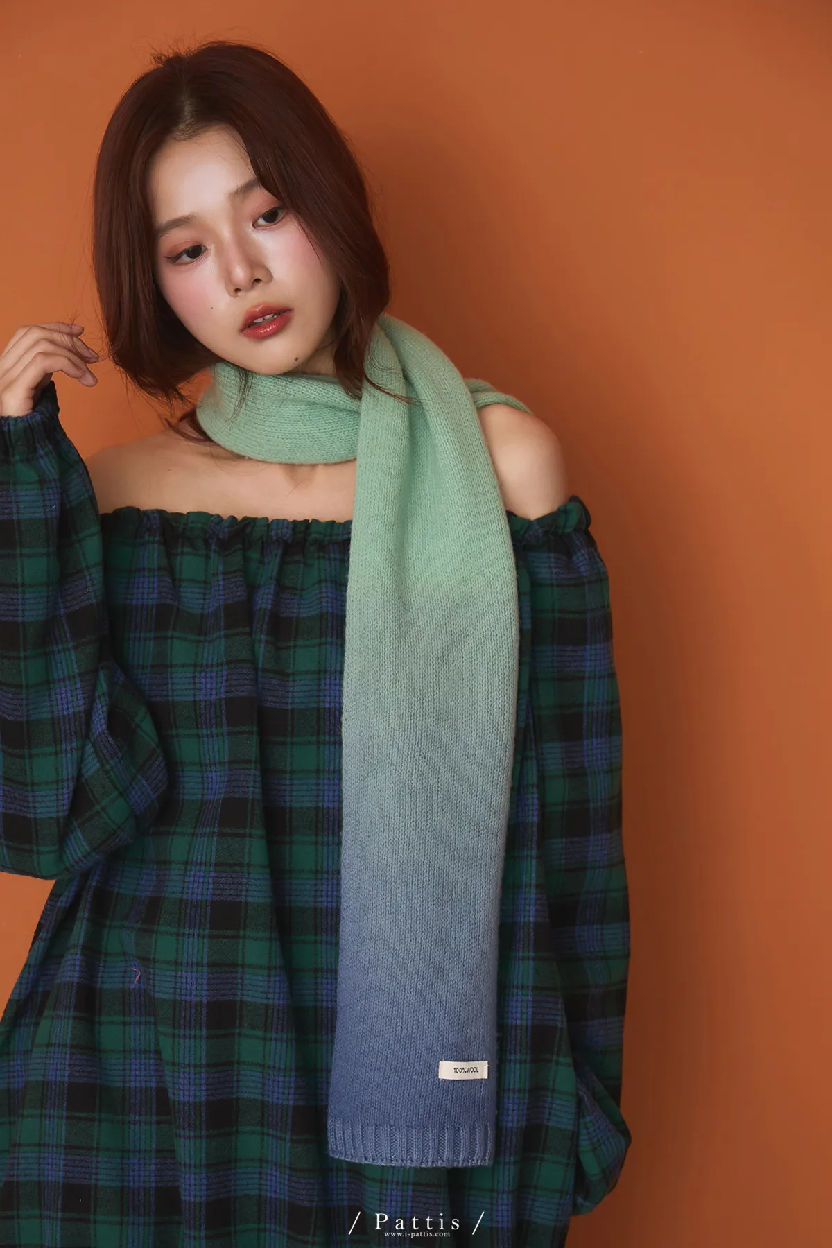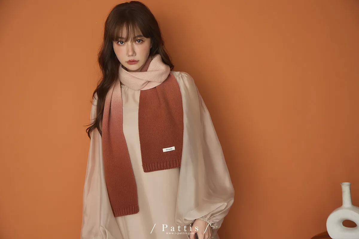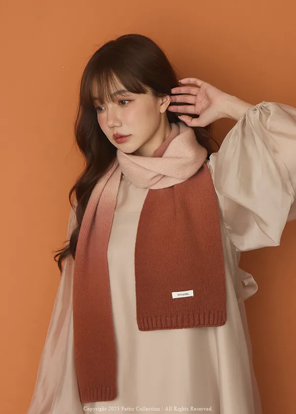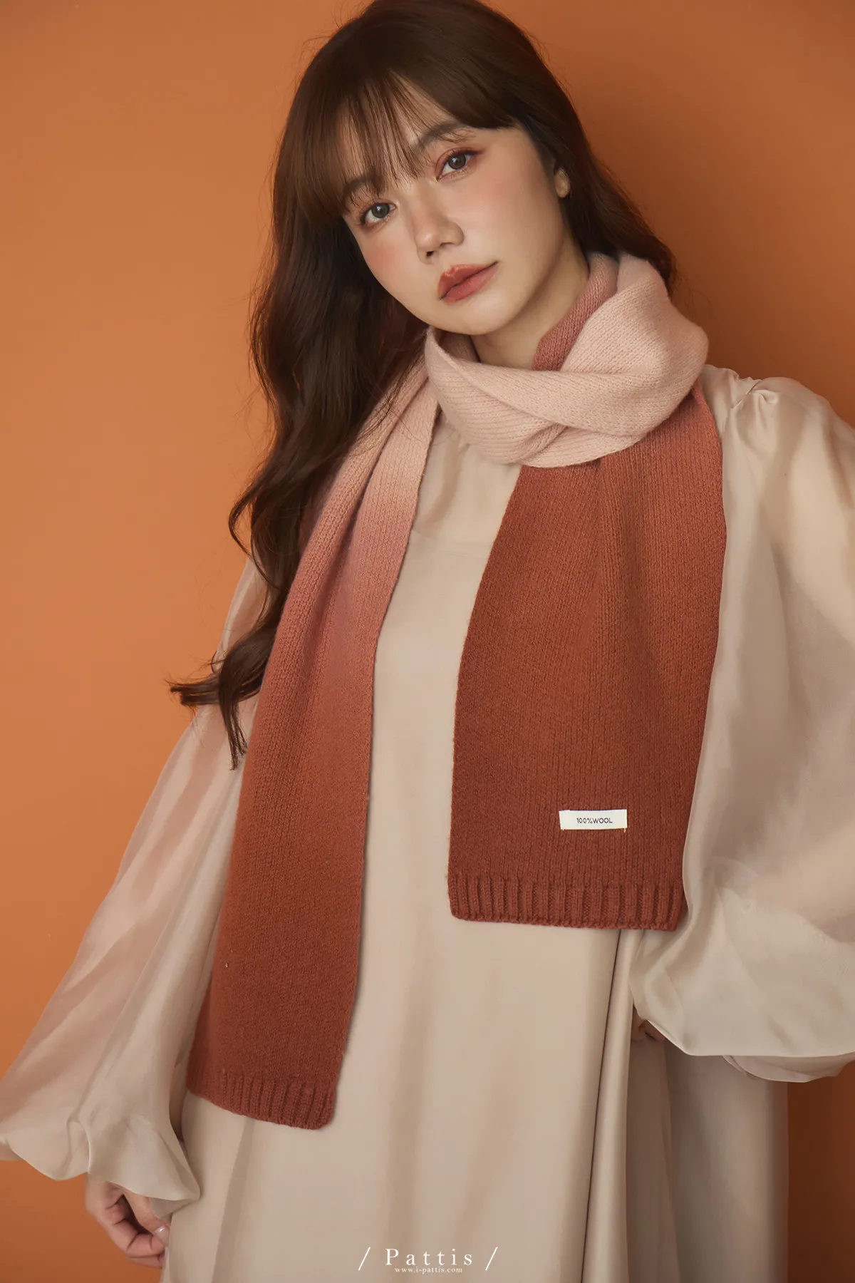 羊毛漸層色針織圍巾(米咖啡/粉灰紫/藍綠)