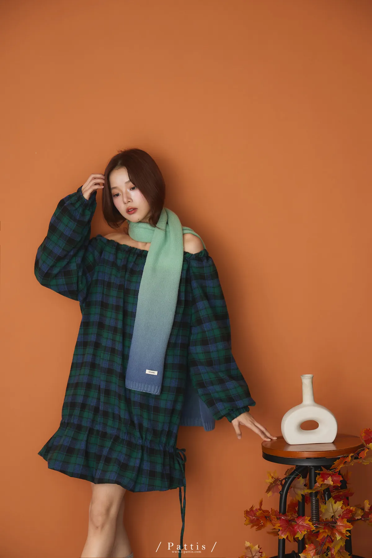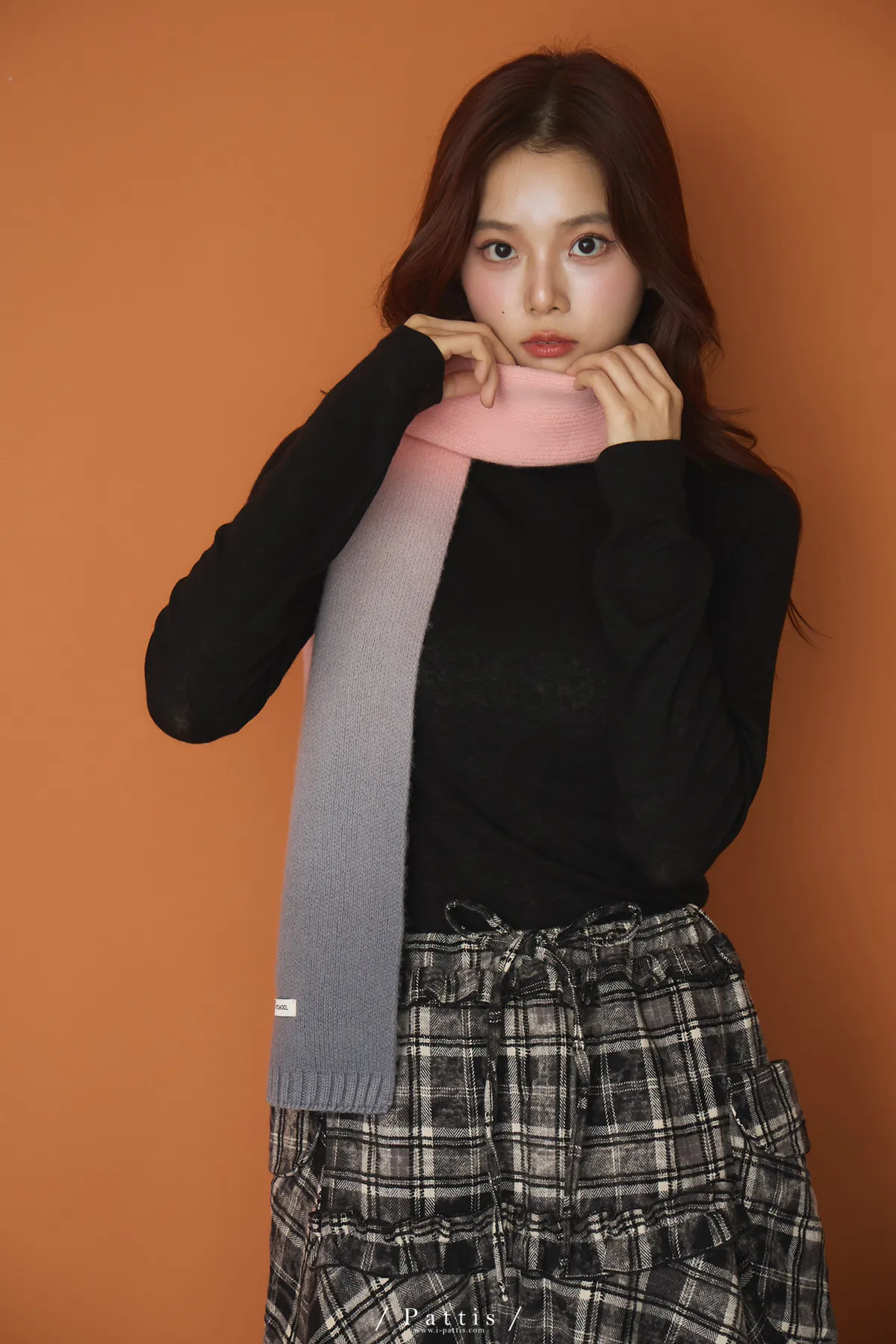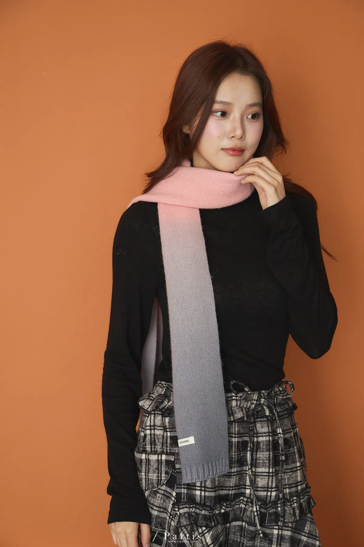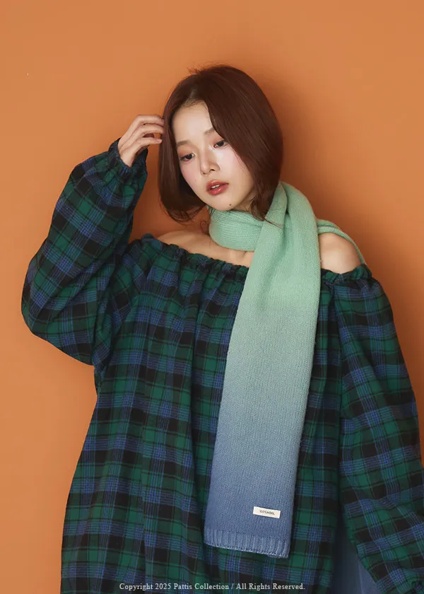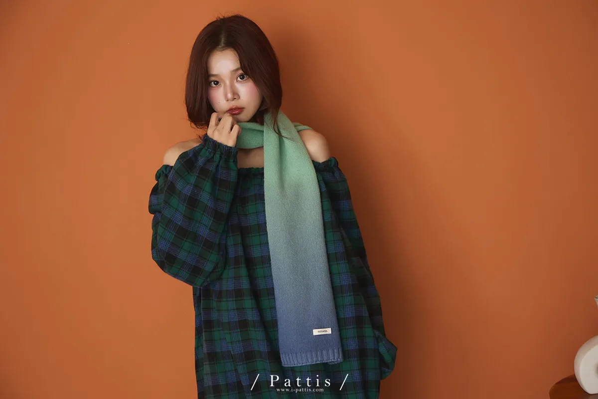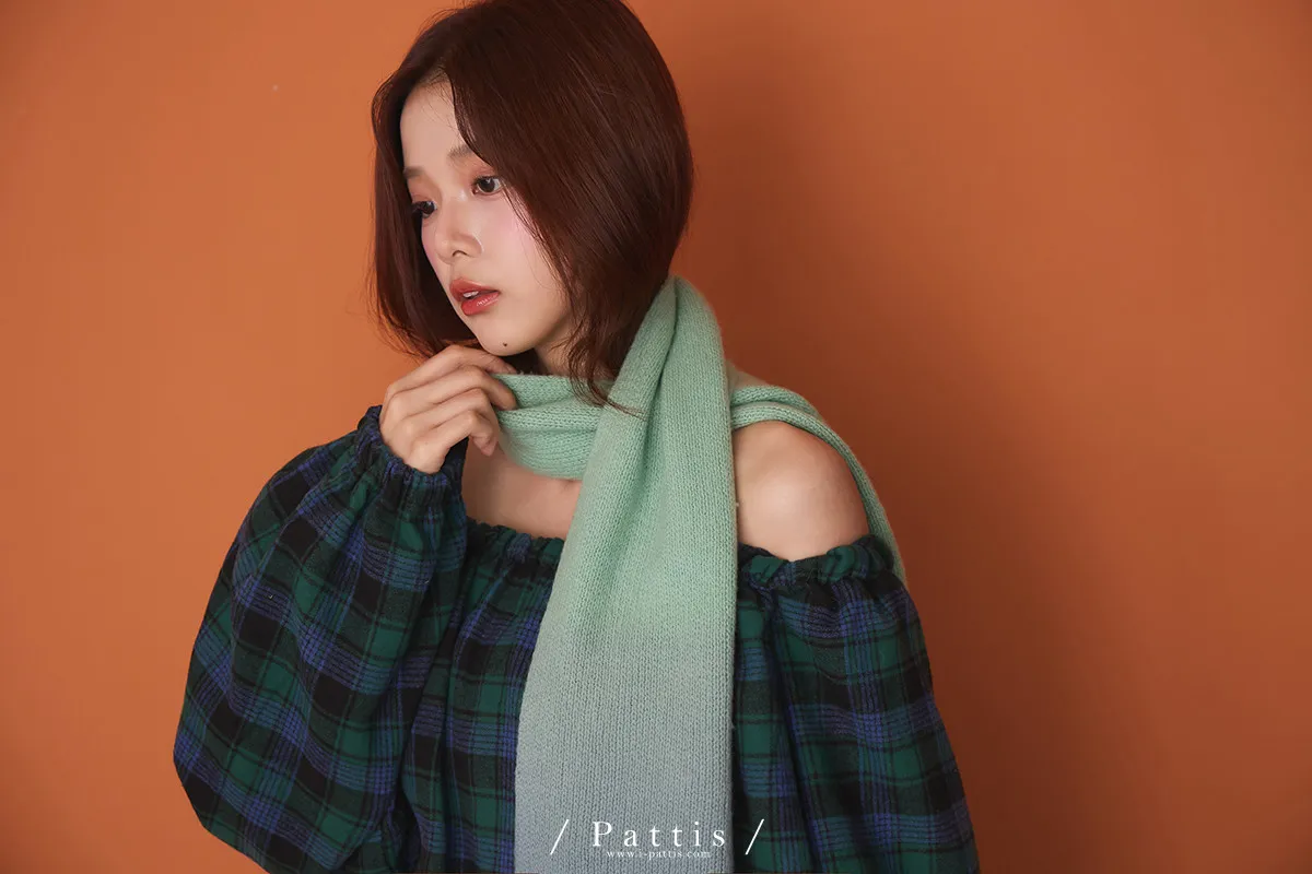 羊毛漸層色針織圍巾(米咖啡/粉灰紫/藍綠)