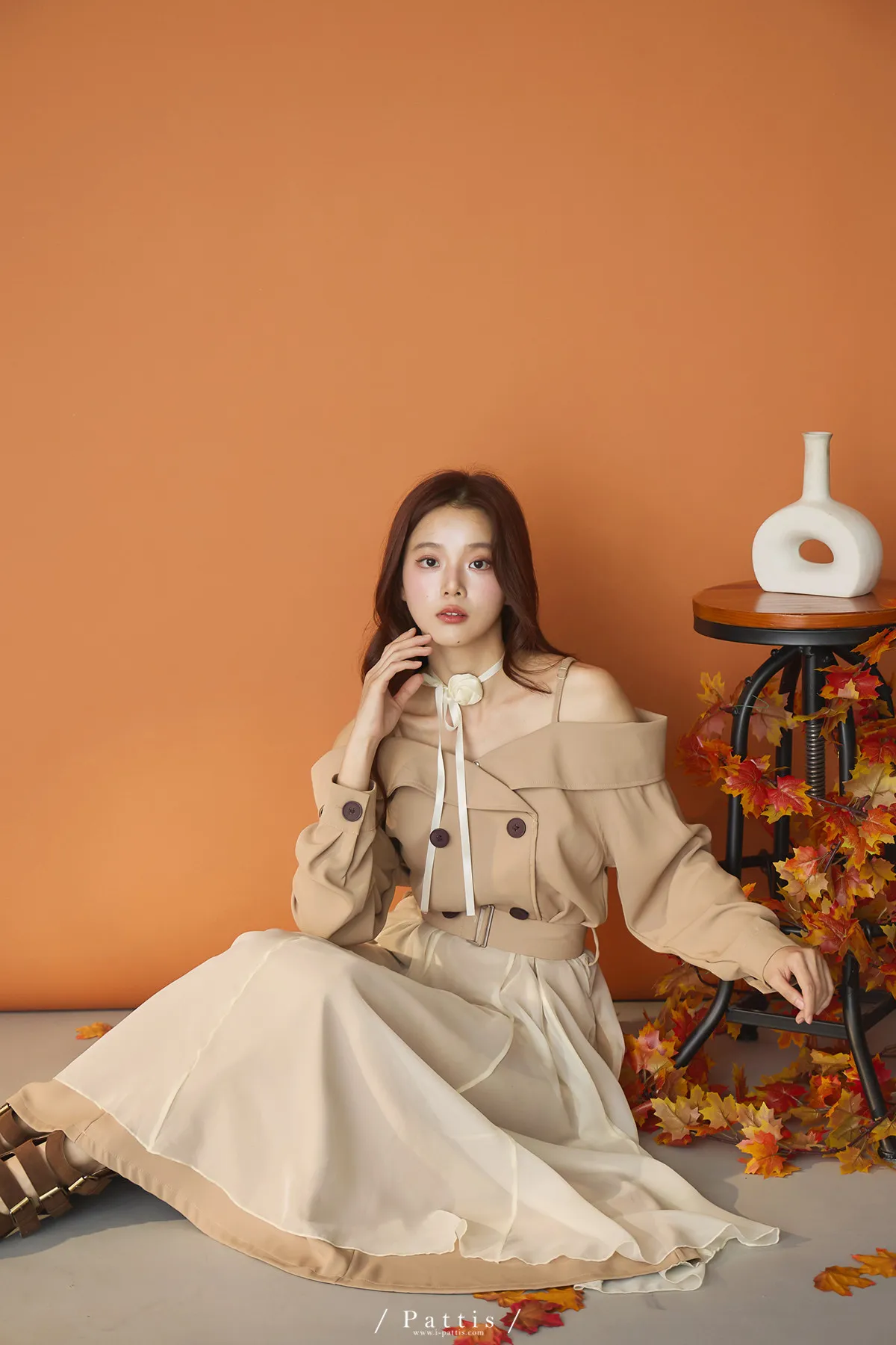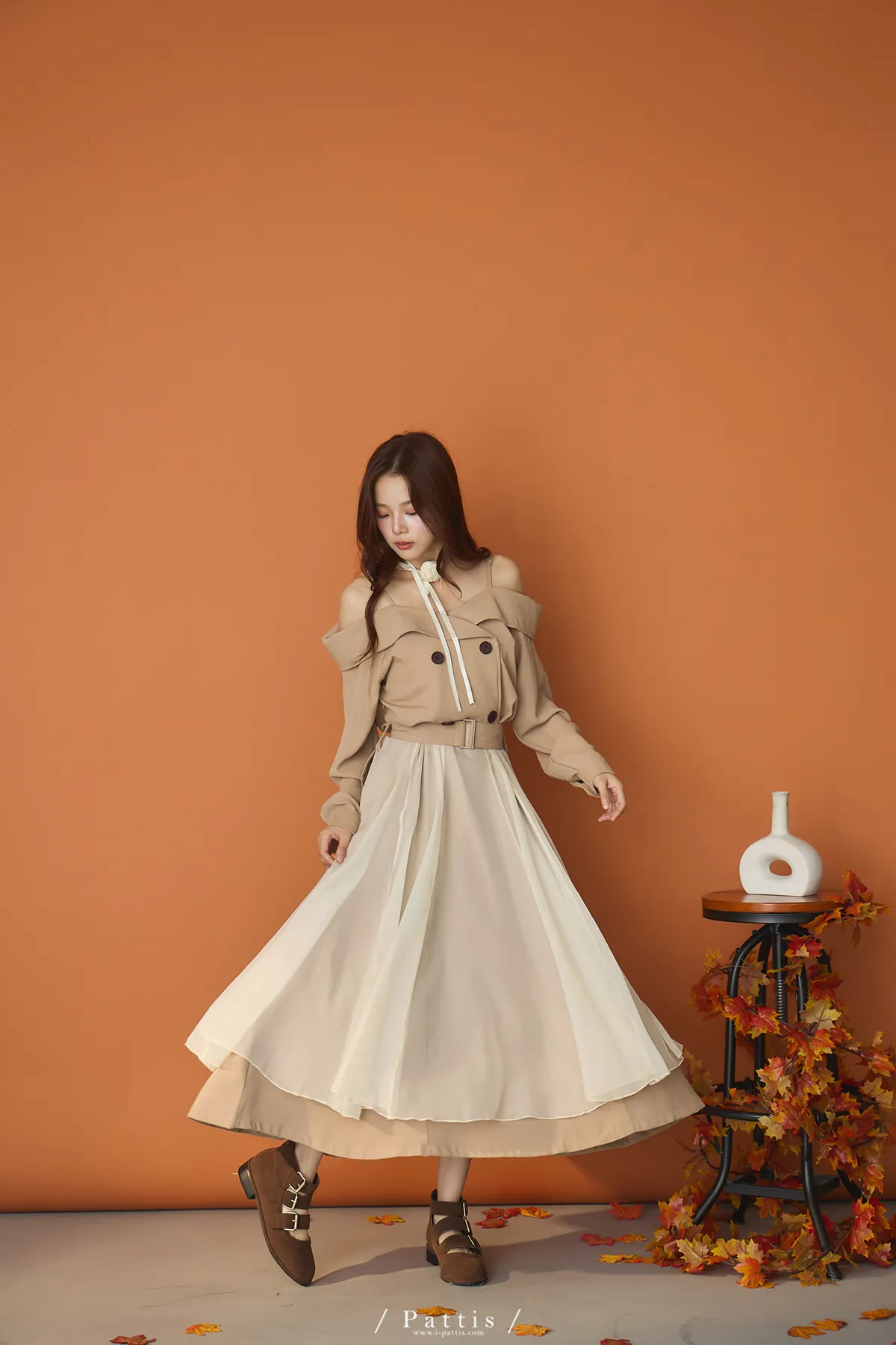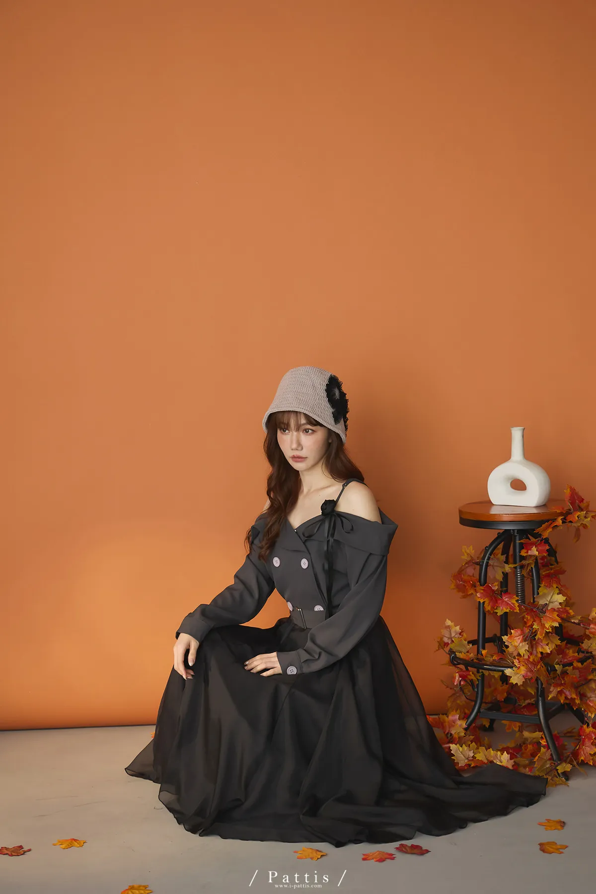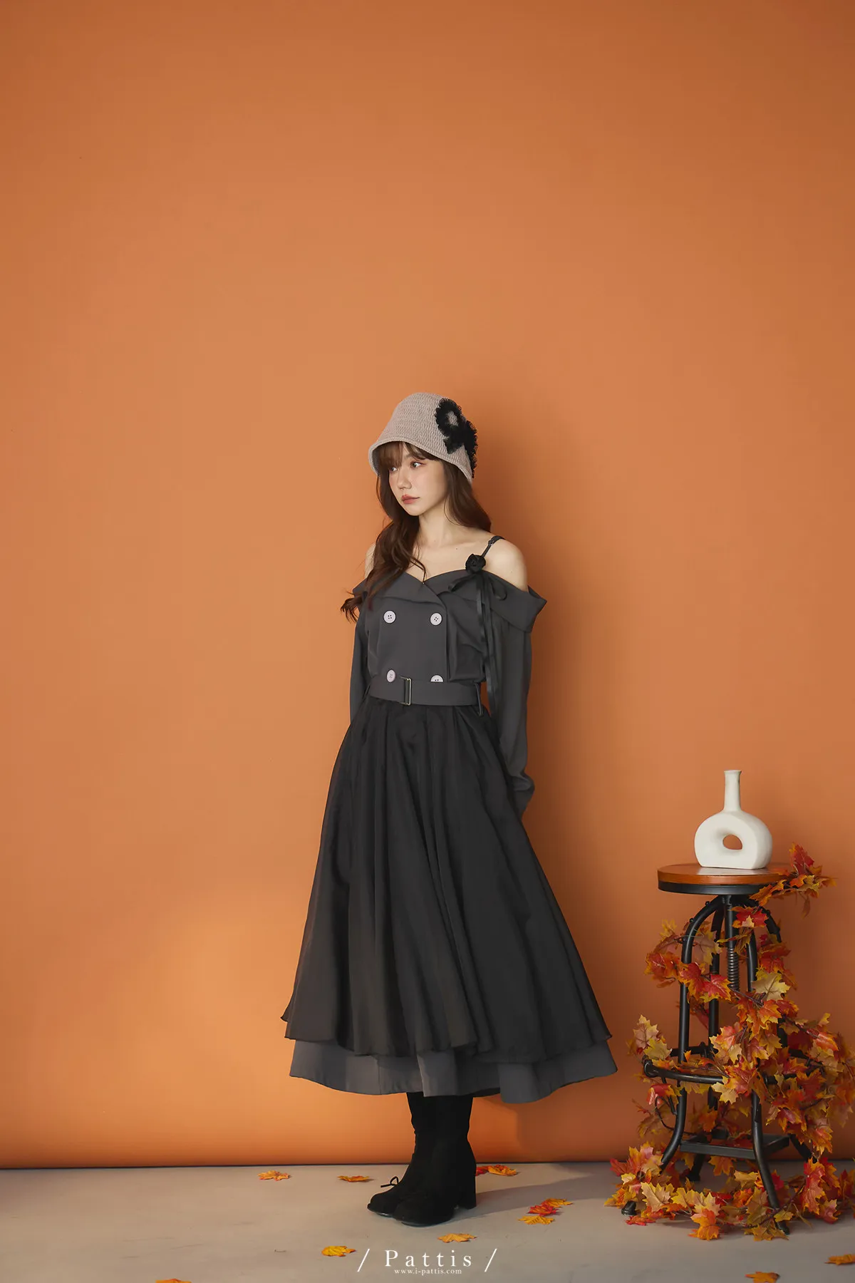 裙襬以珍珠紗+傘裙,打造層次感與亮點,兩側也有口袋很方便!!
