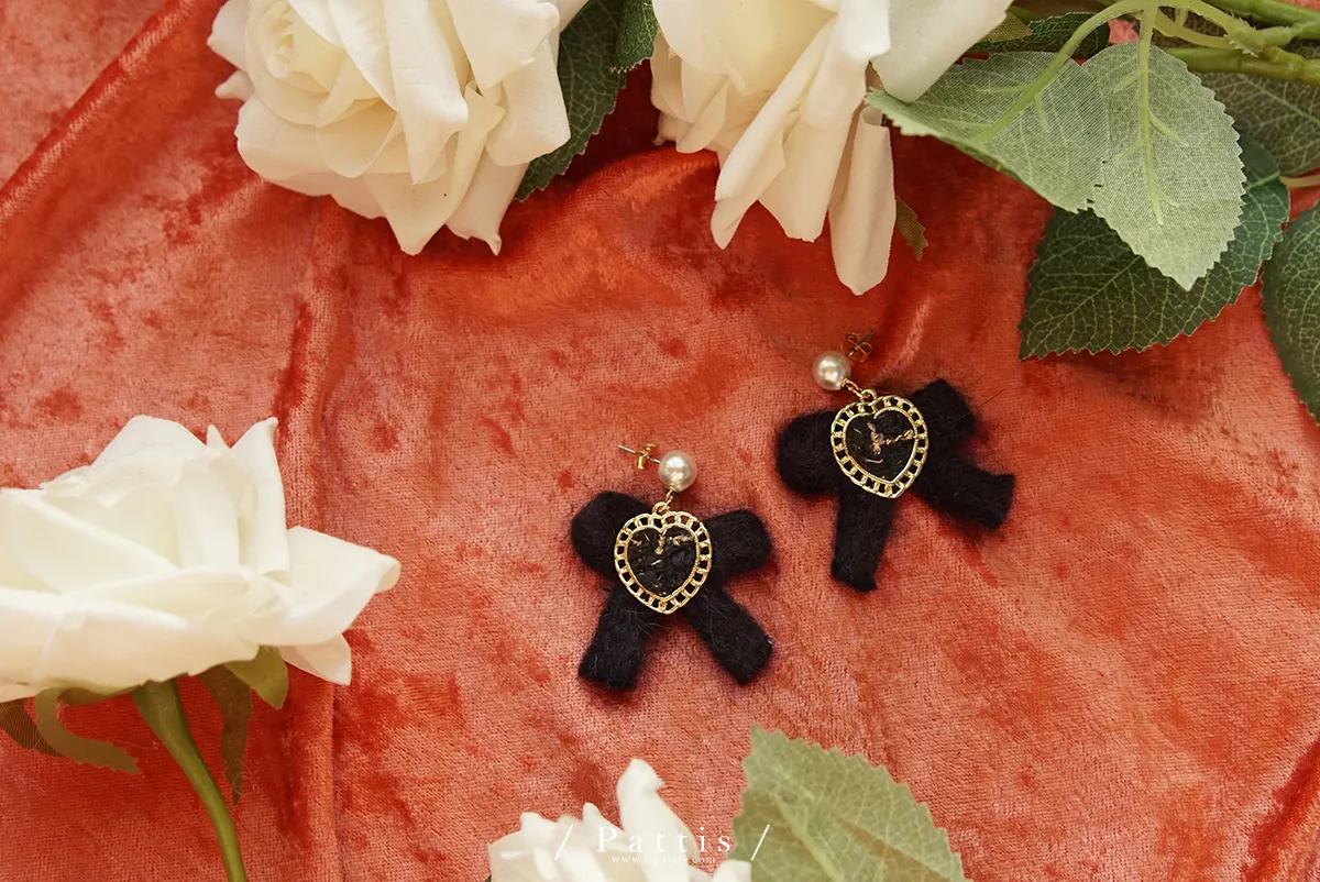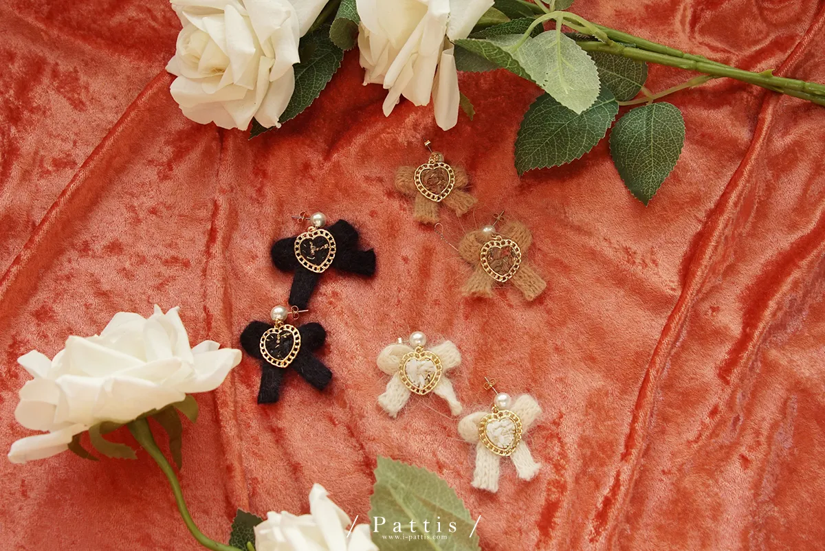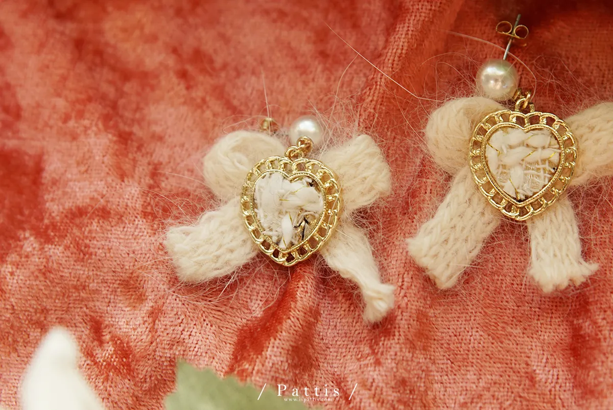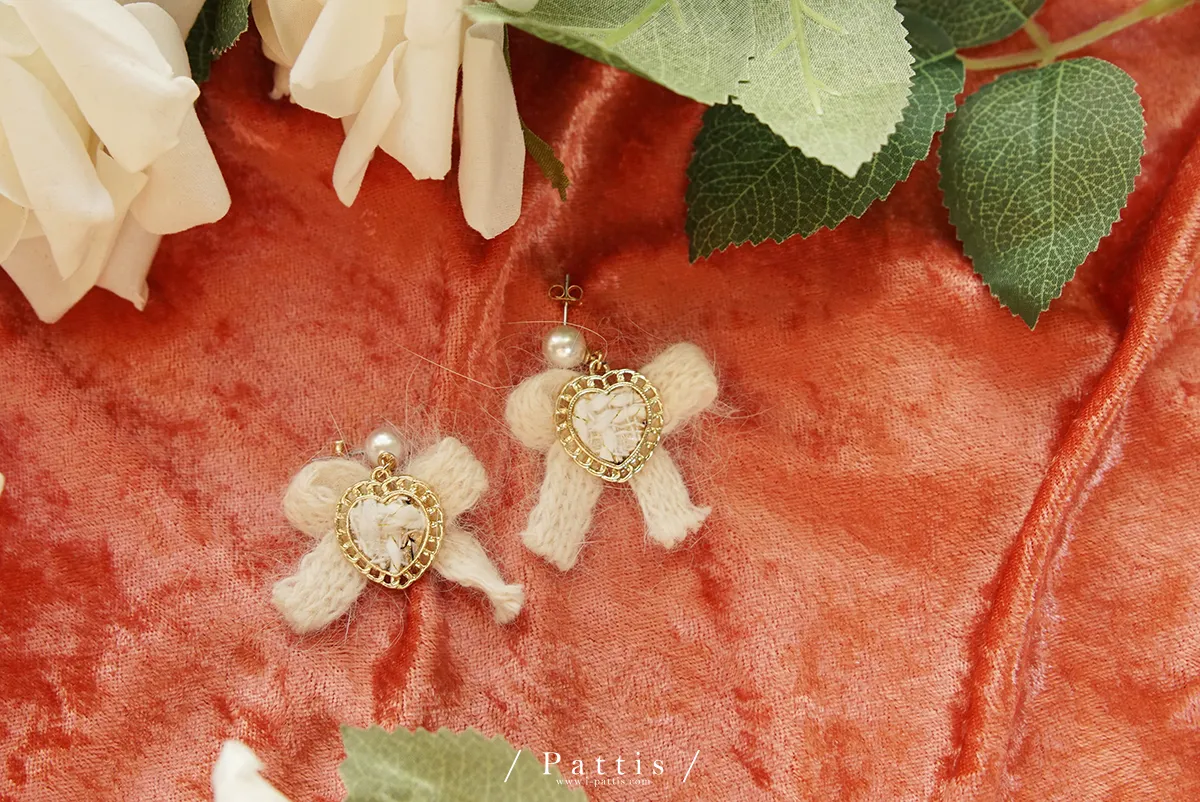 冬季限定喜好 | 毛線愛心蝴蝶結耳環(白/棕/黑)