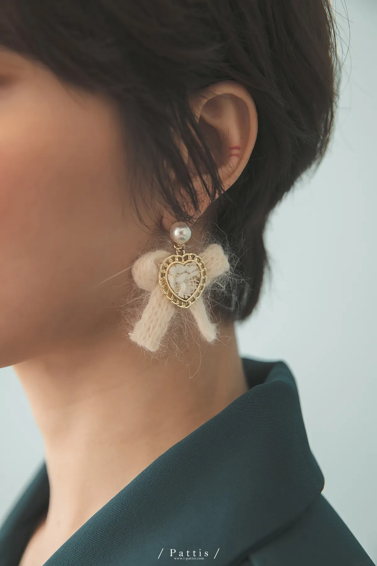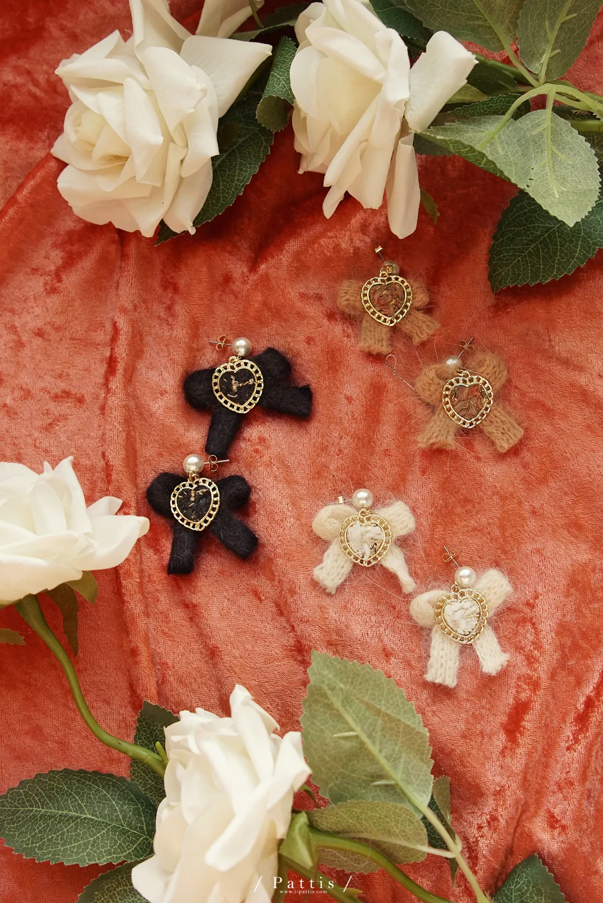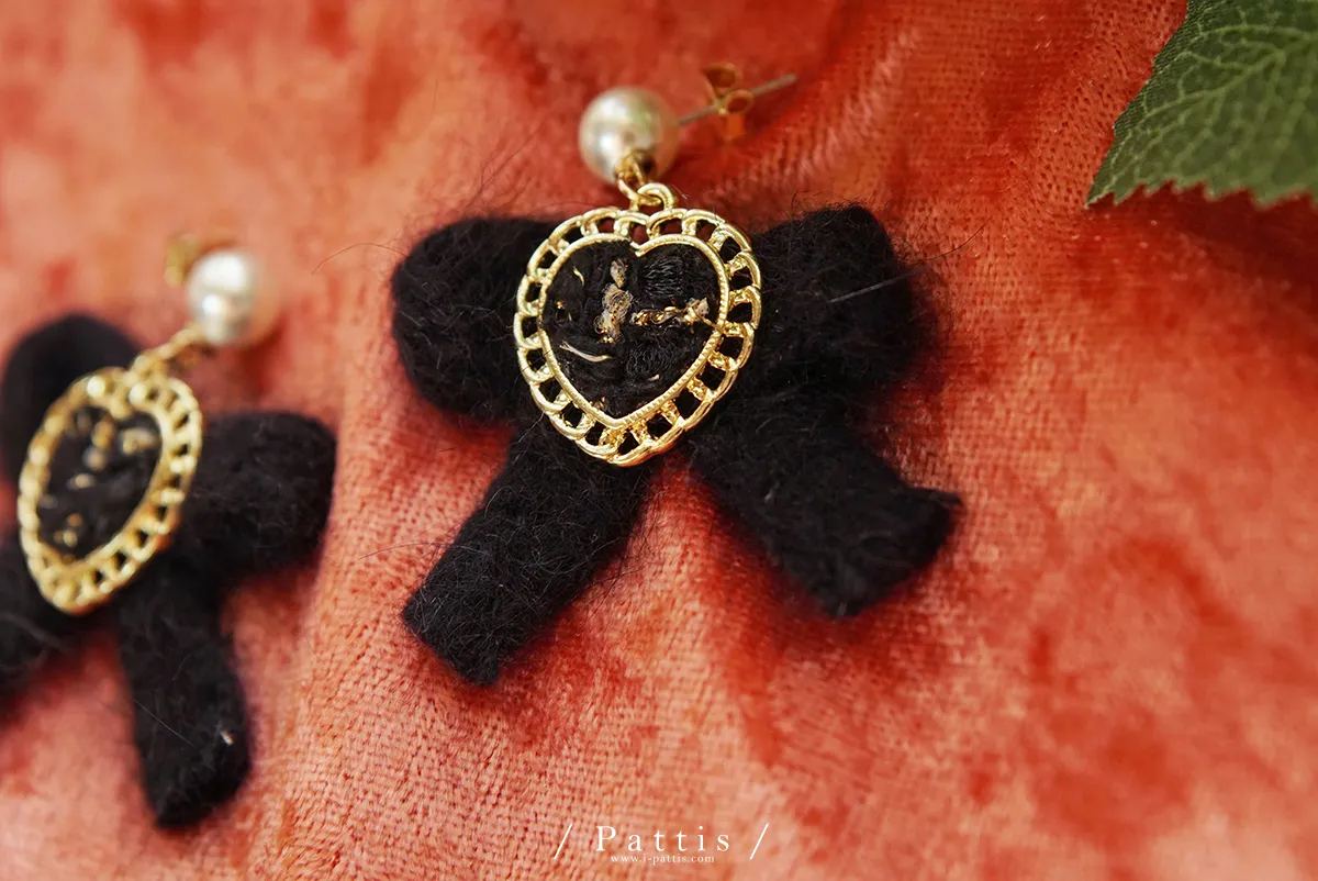 冬季限定喜好 | 毛線愛心蝴蝶結耳環(白/棕/黑)