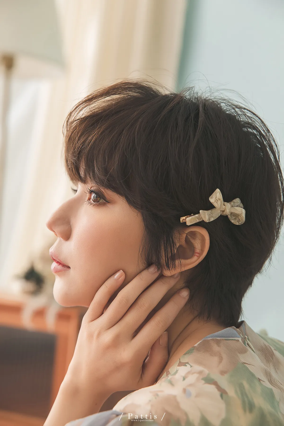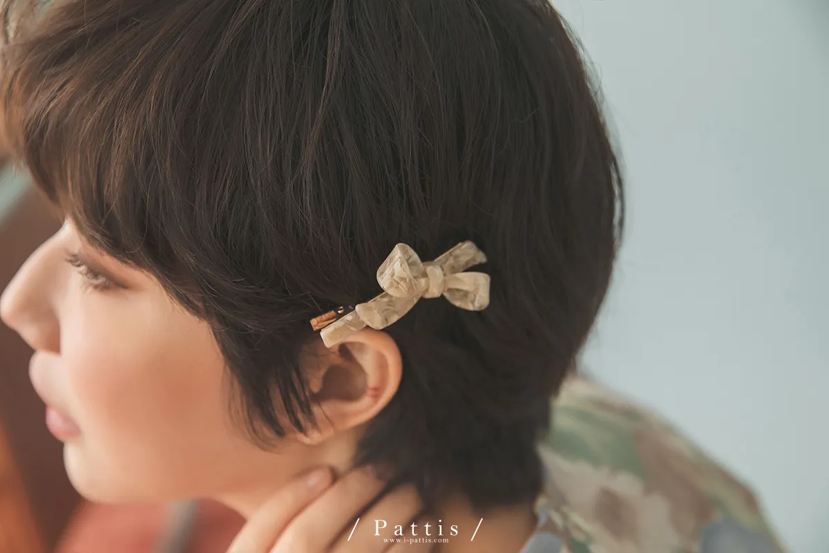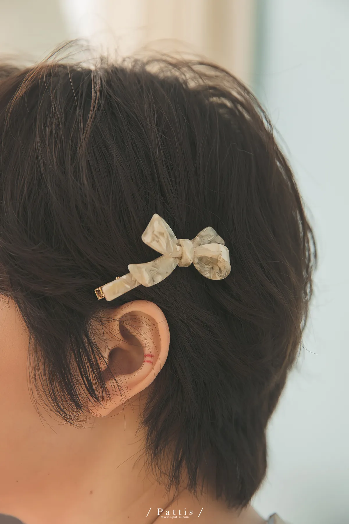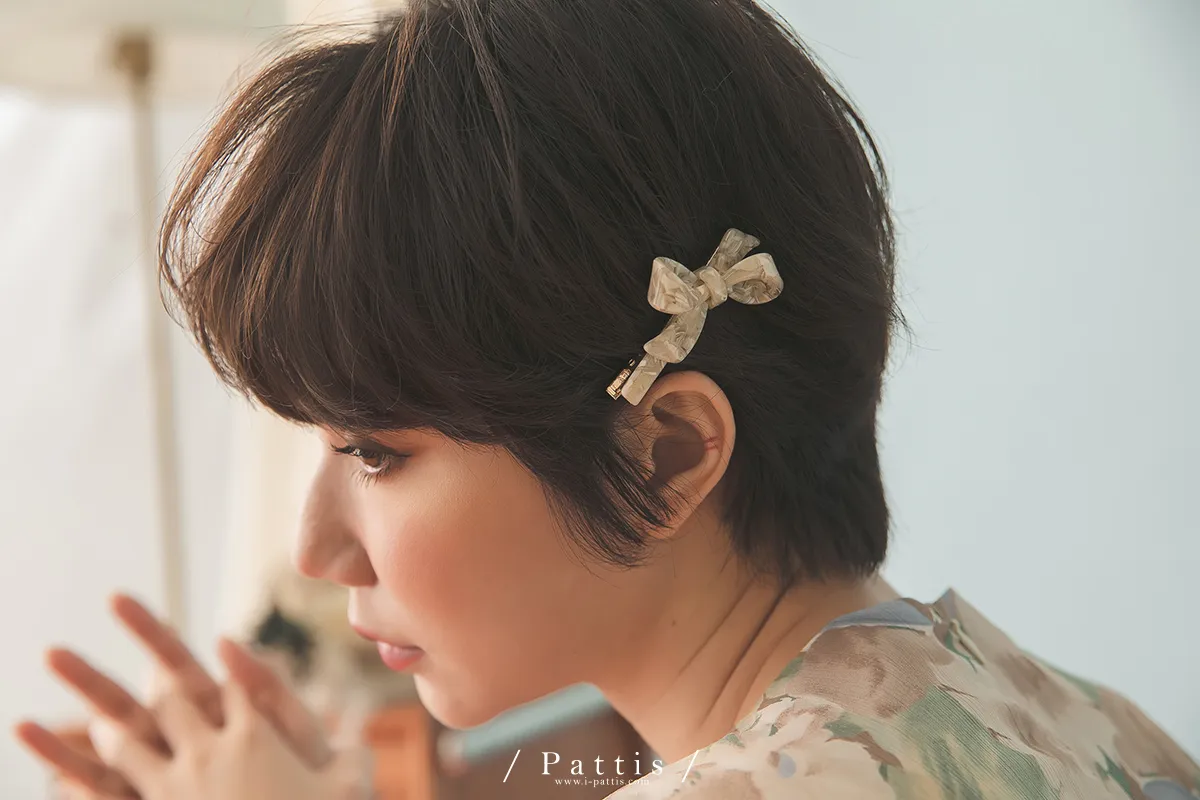 巴黎誕生日 | 琺瑯立體蝴蝶結髮夾(花米白/橘棕)