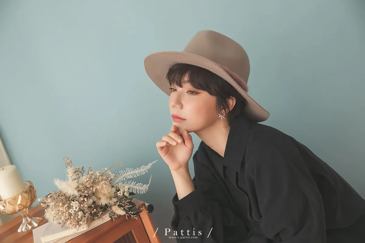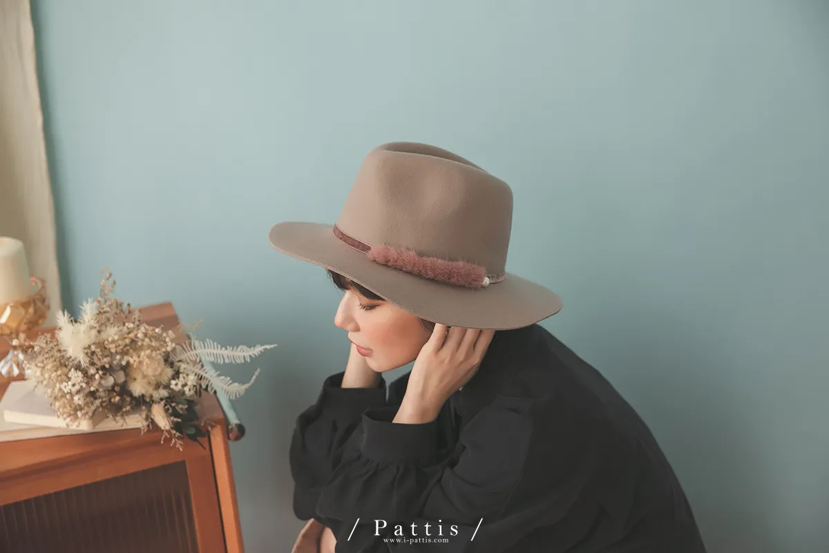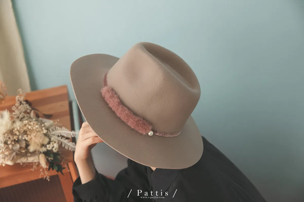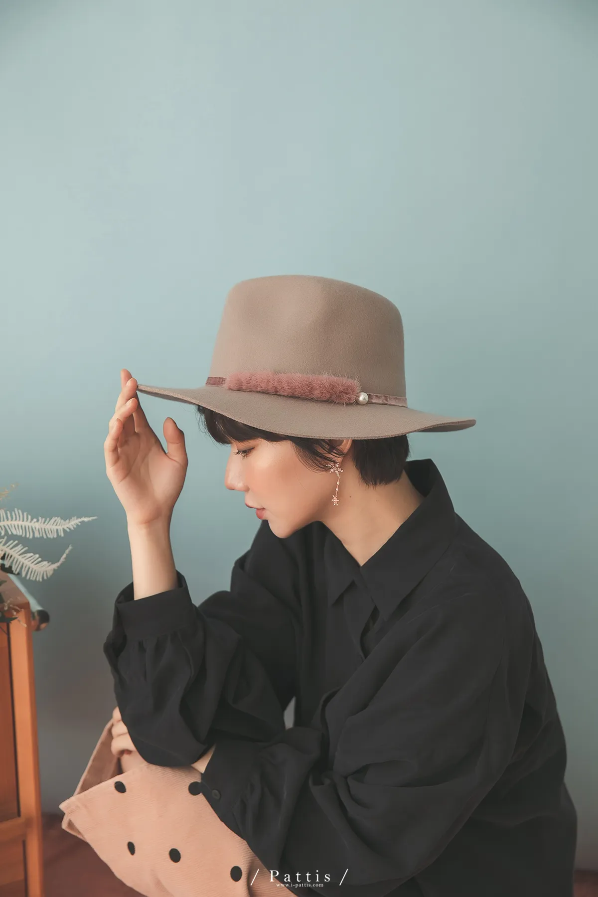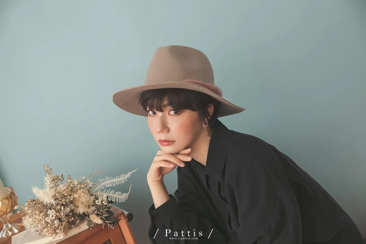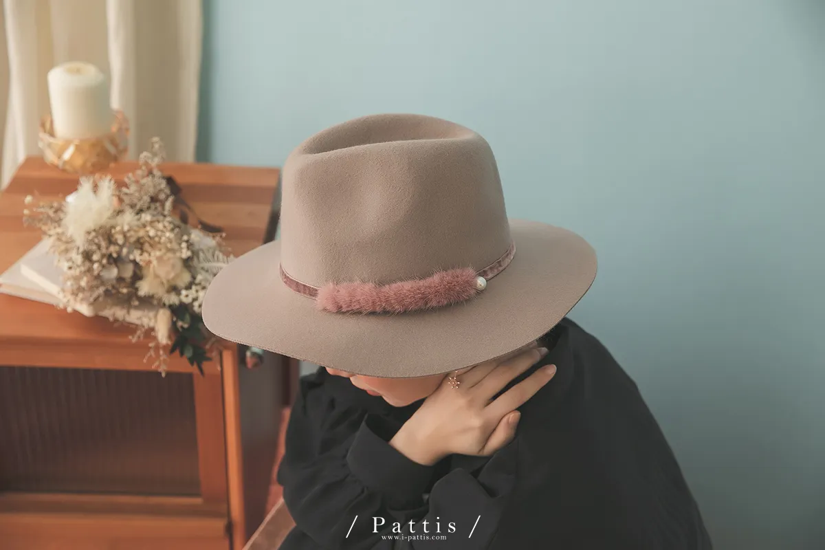 仿生鸚鵡 | 綴毛裝飾紳士帽(灰藍/灰紫粉)
