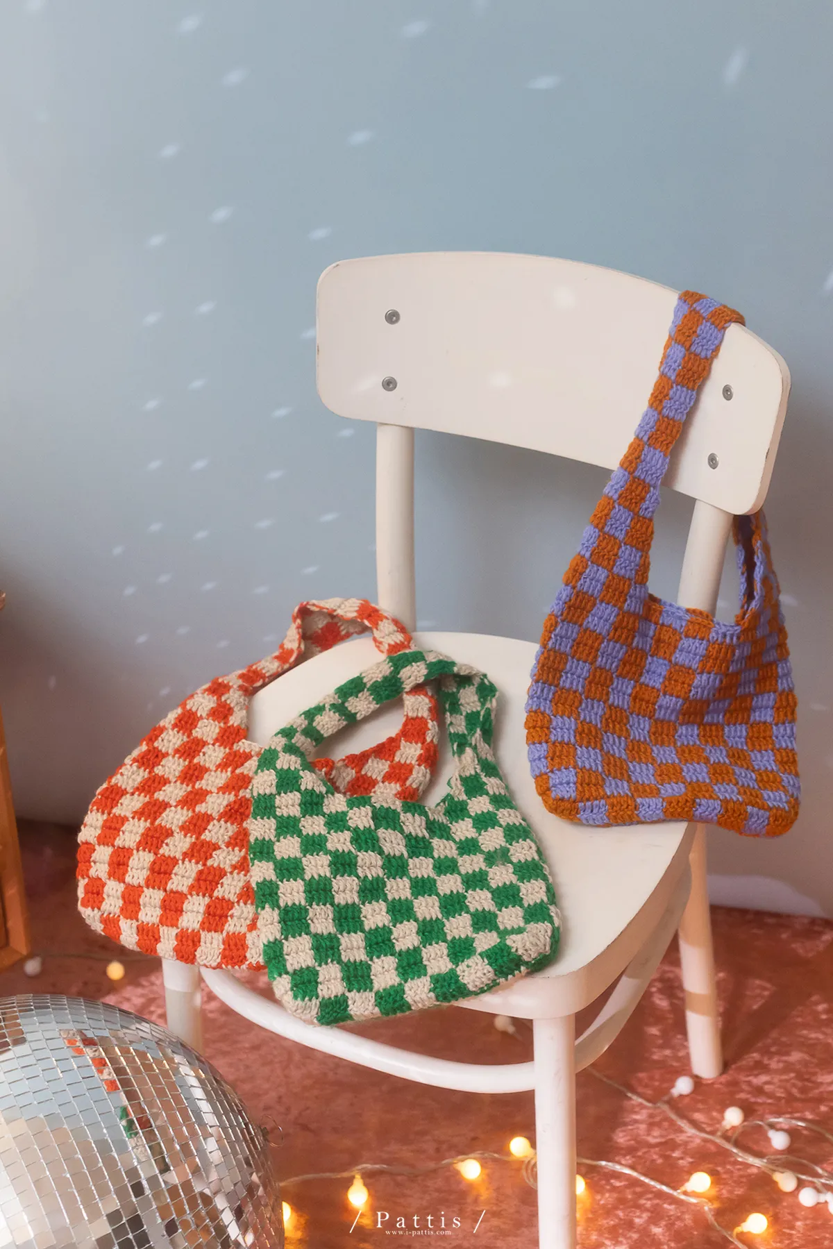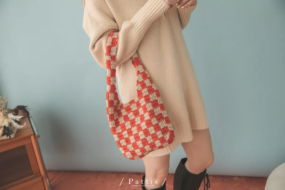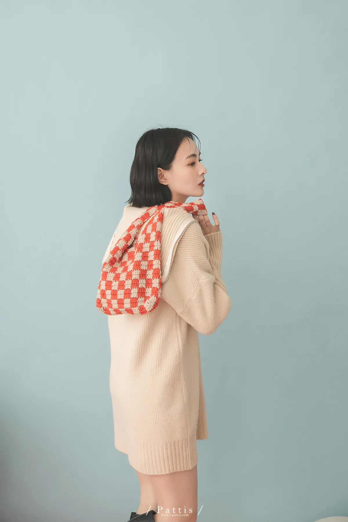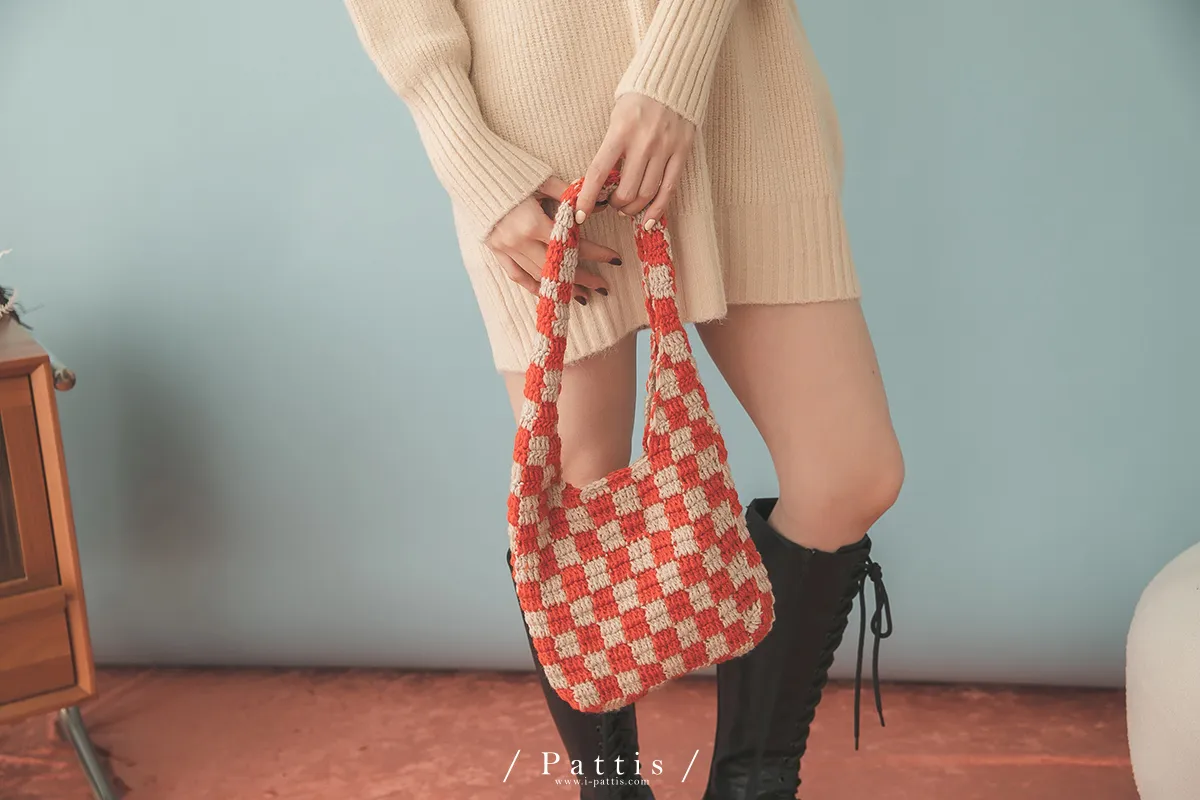入堡 | 針織棋盤格磁扣小提袋(橘紅/綠/橘紫)