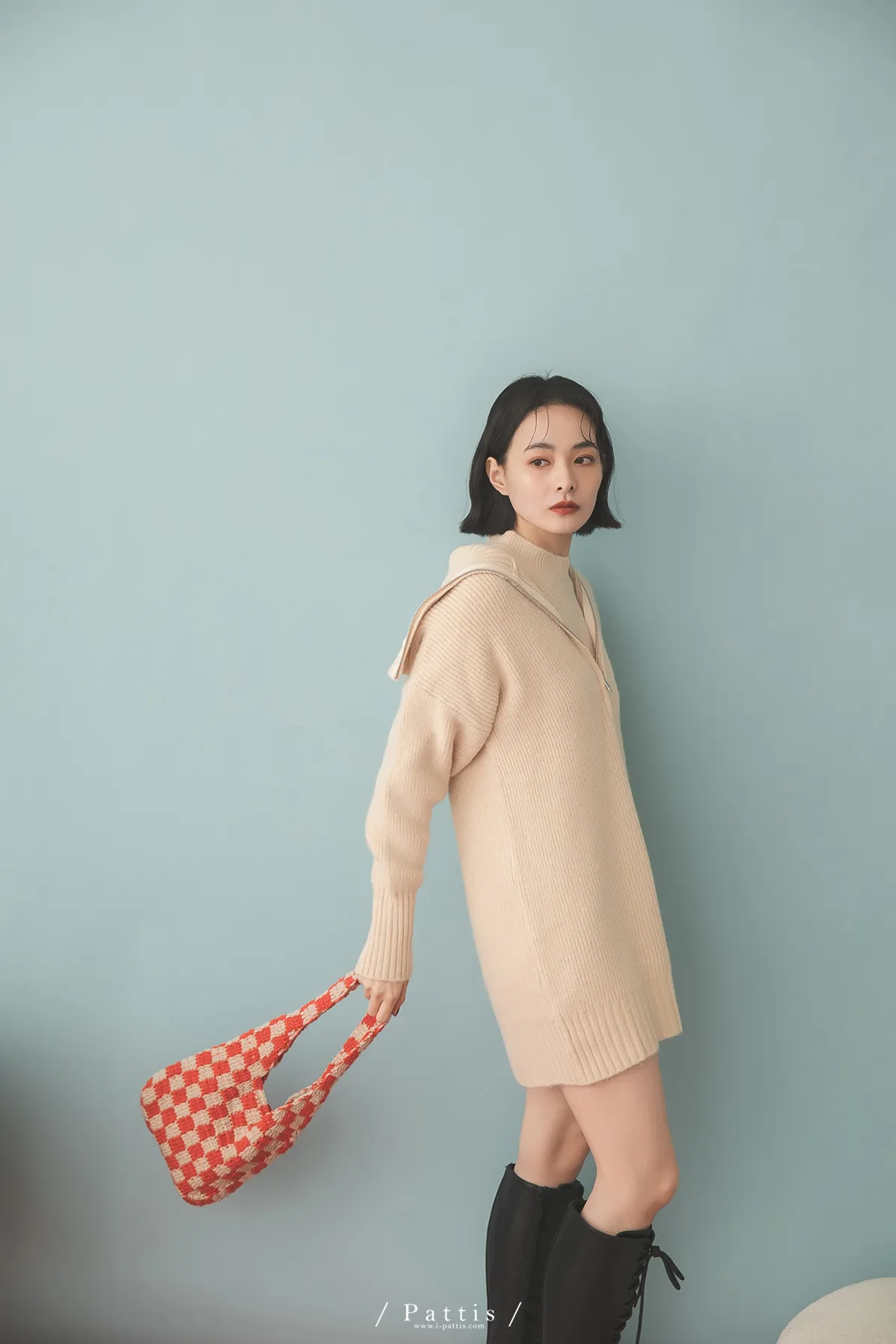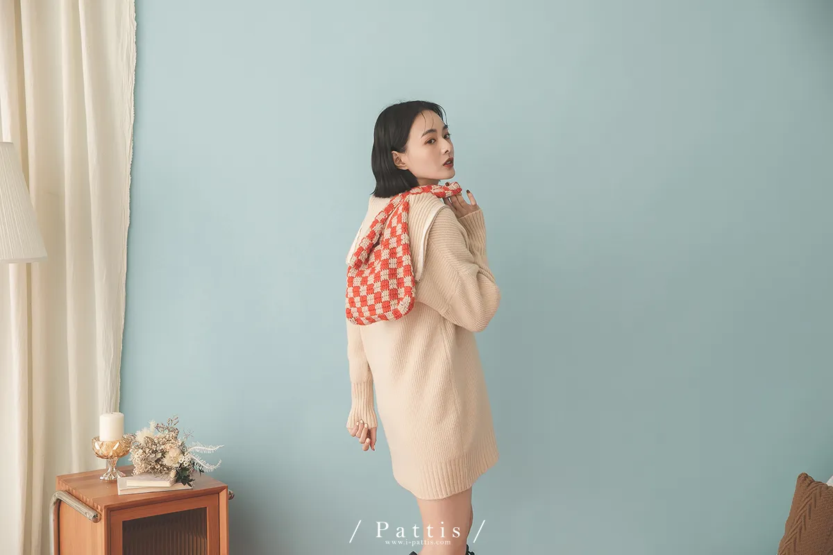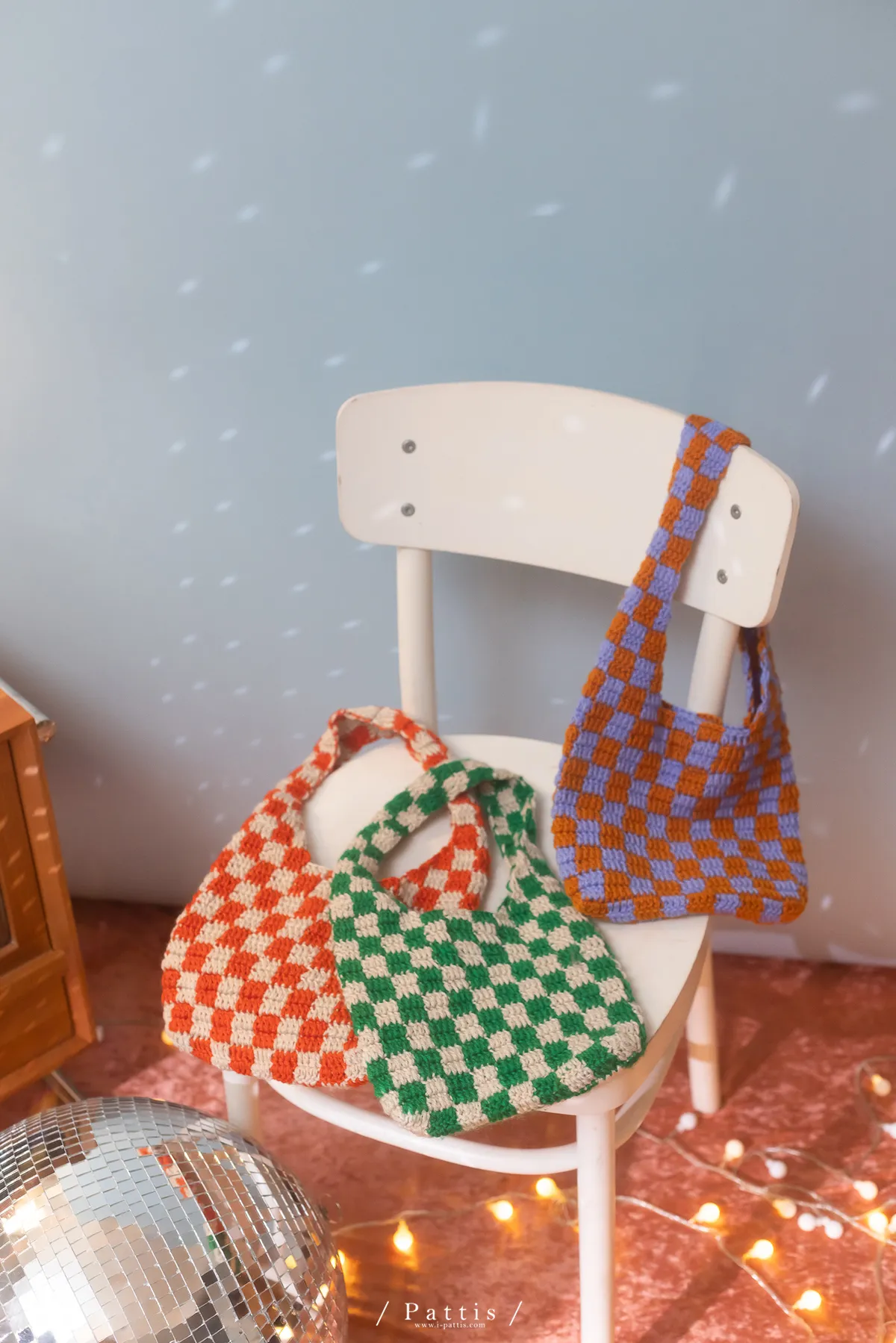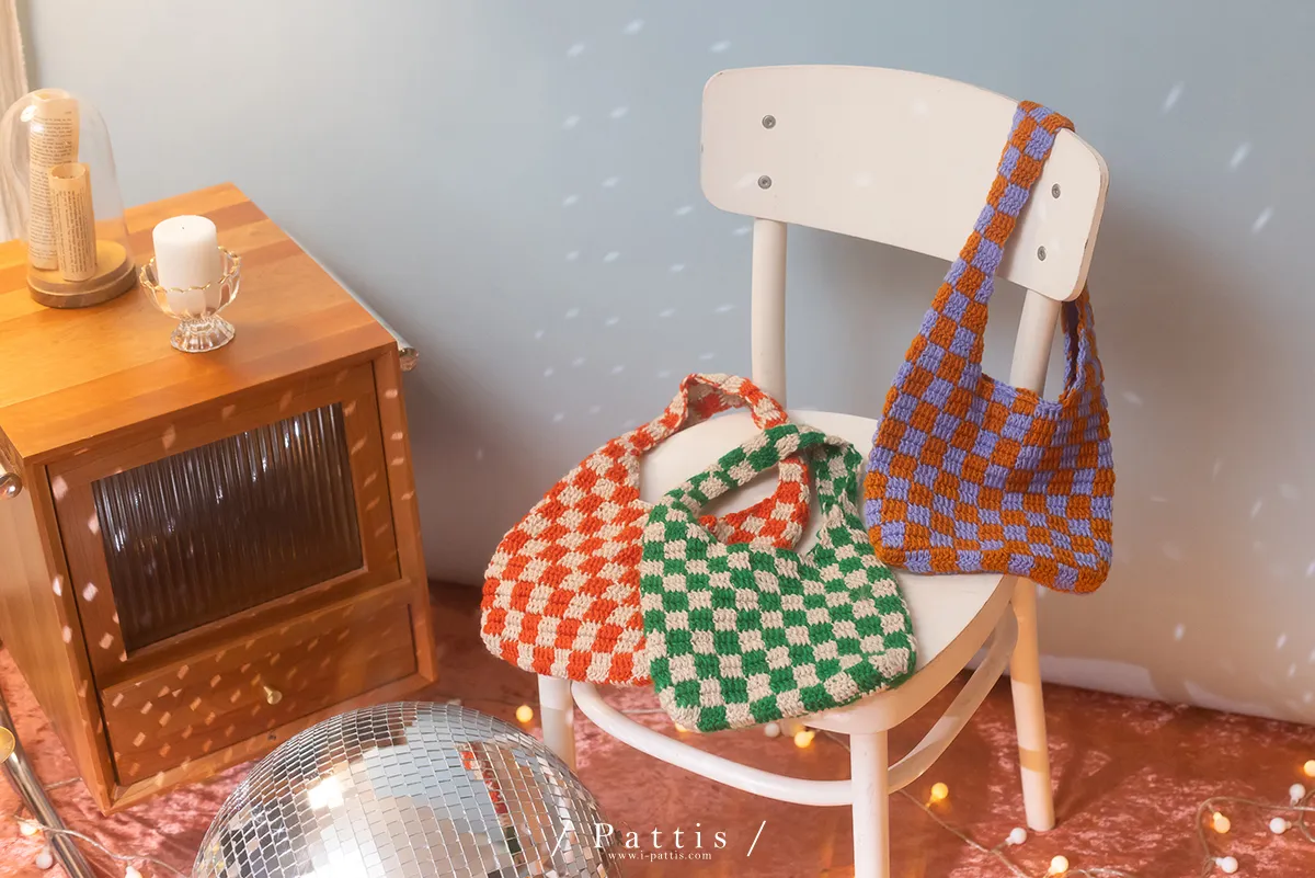 入堡 | 針織棋盤格磁扣小提袋(橘紅/綠/橘紫)