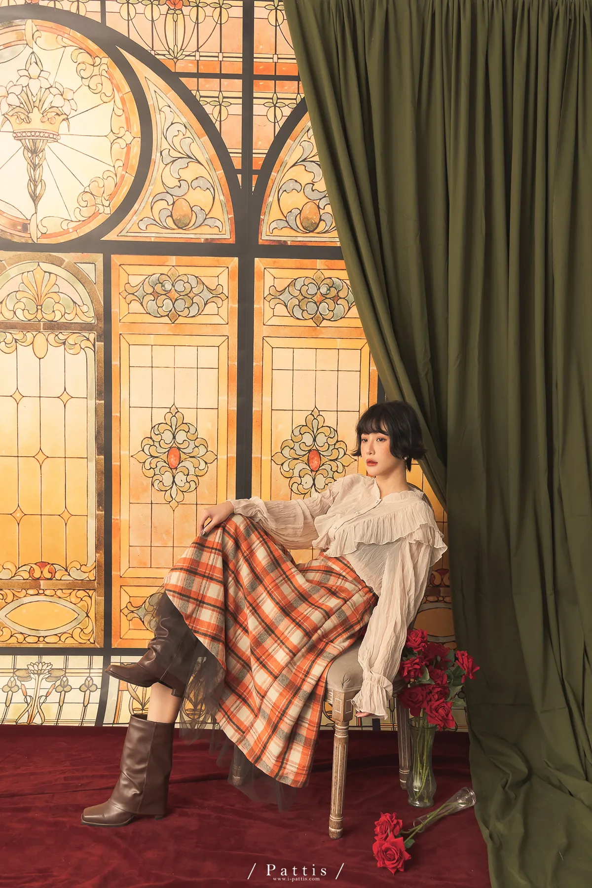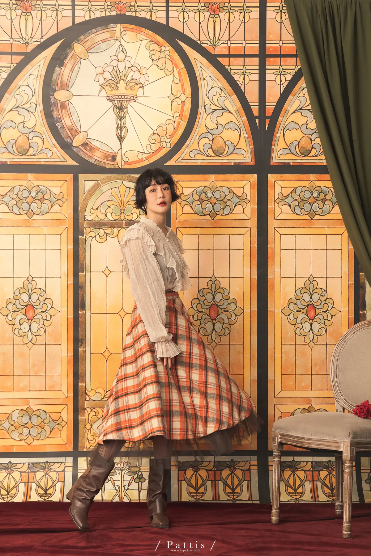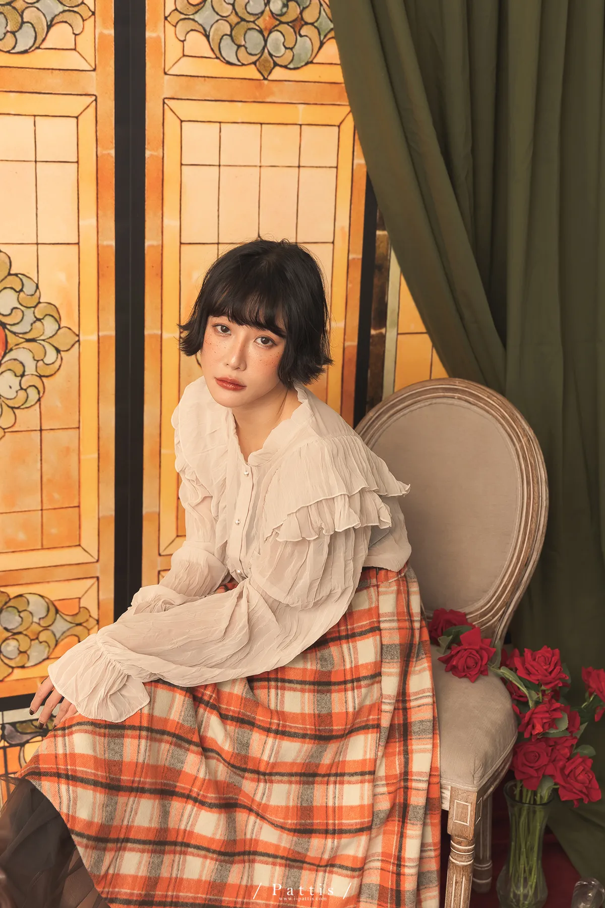 公爵吻別之時 | 皺褶絲柔荷葉V字襯衫(米杏)