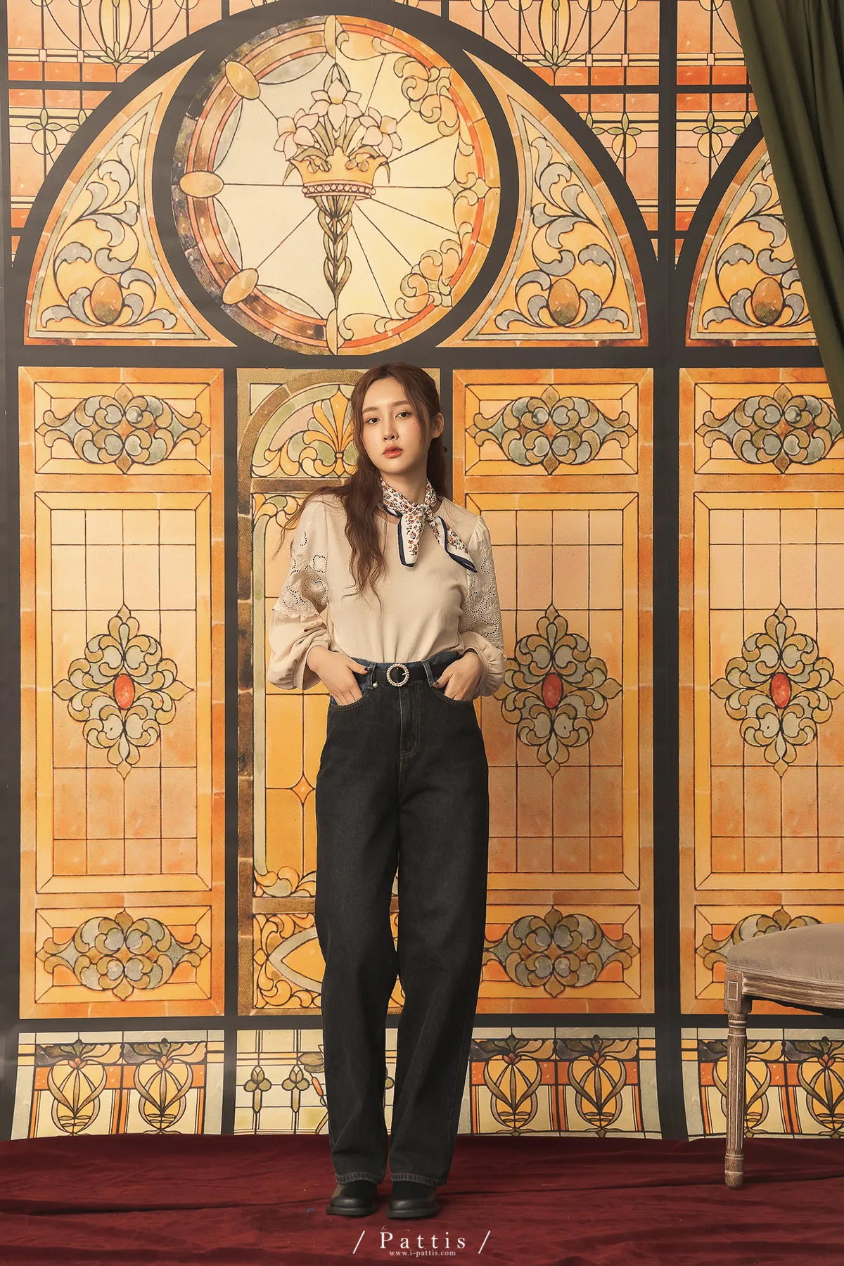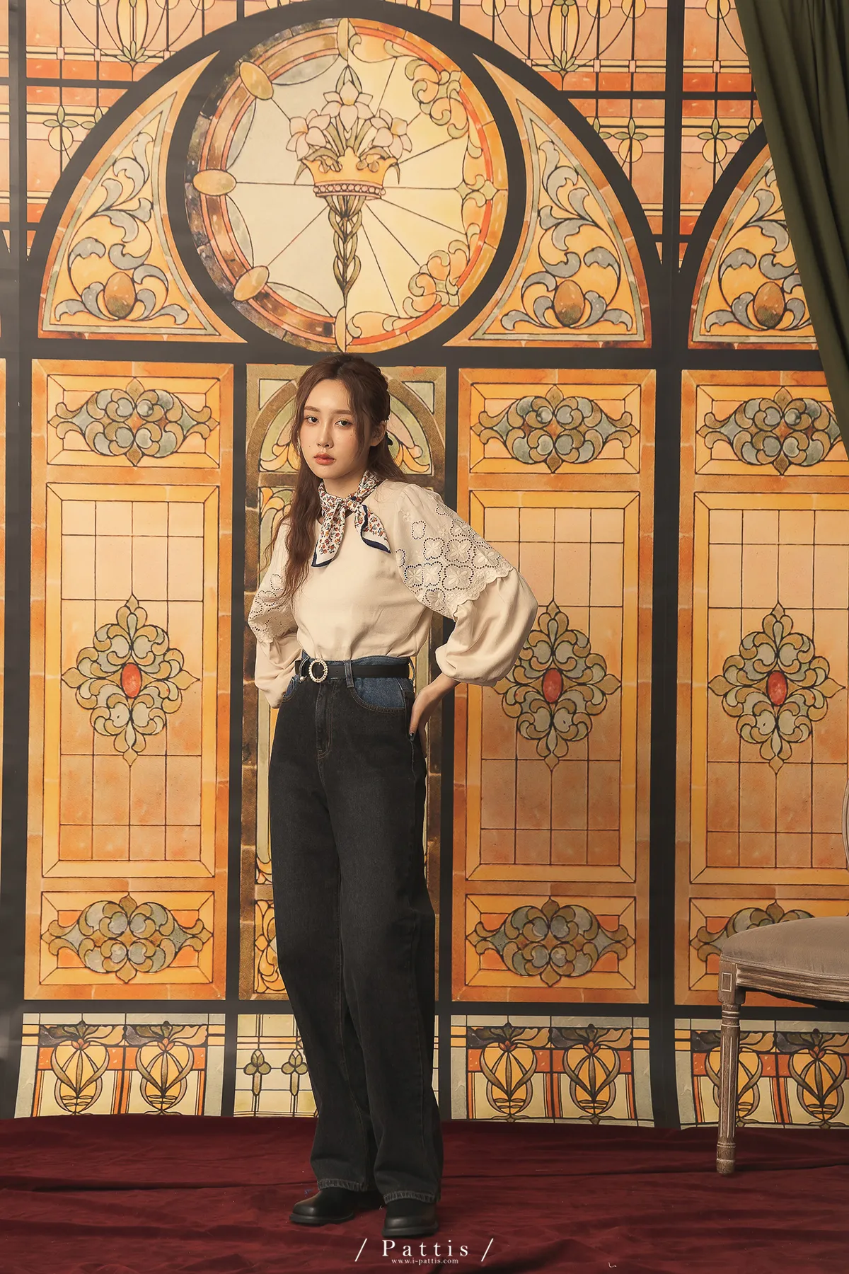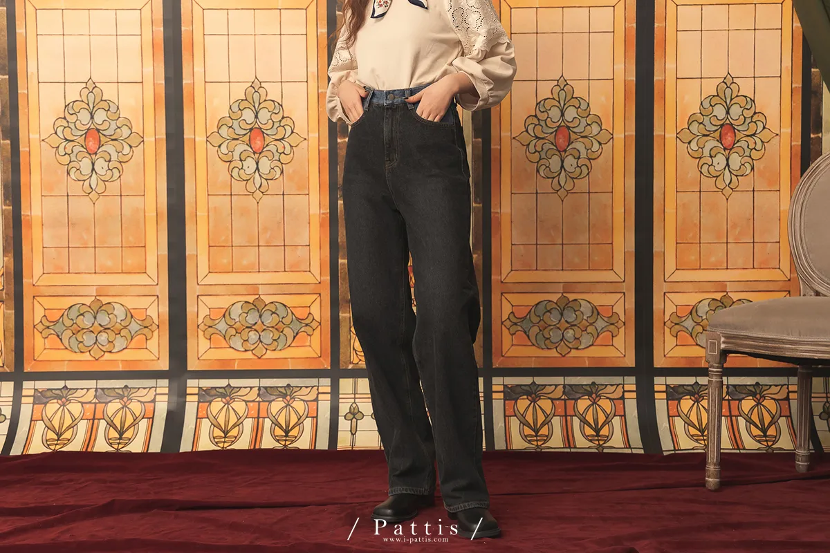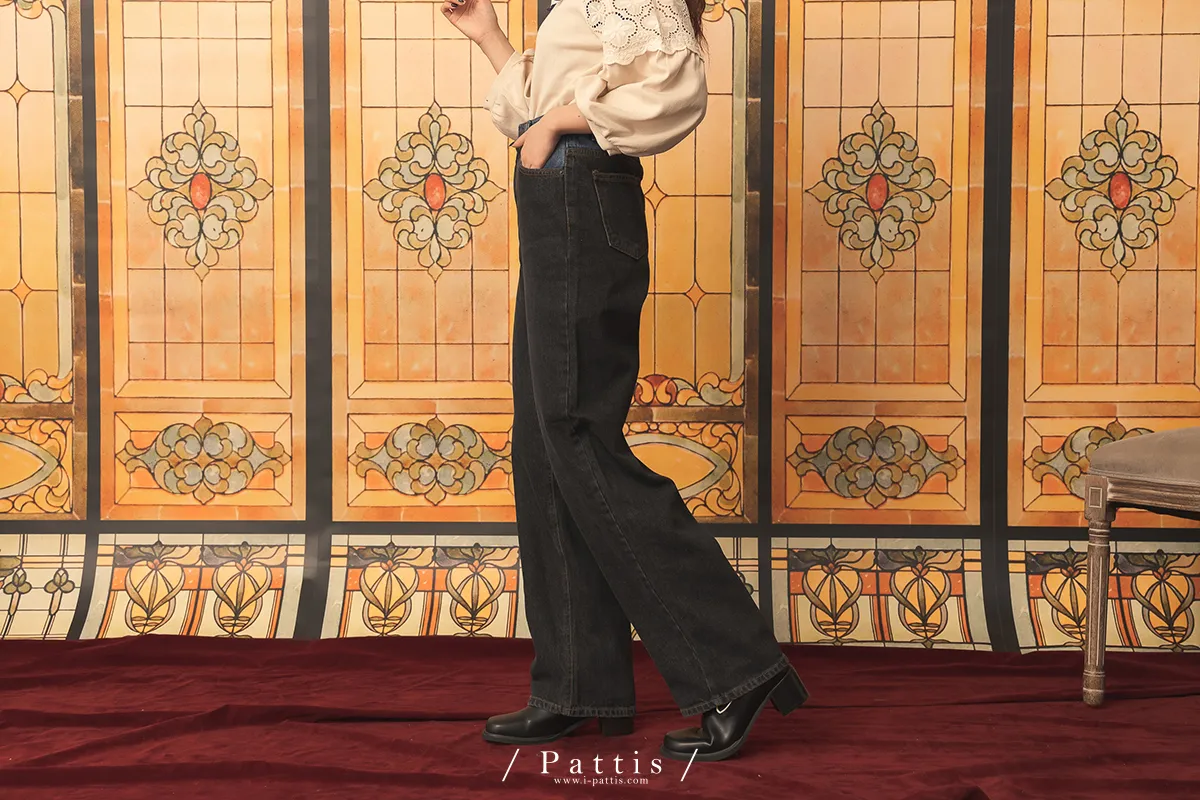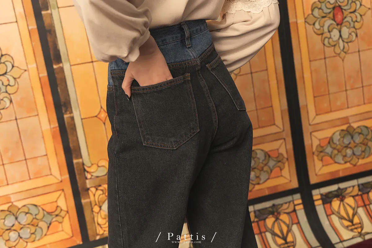 名為自由之風 | 拼接雙色高腰丹寧寬褲(單一色)