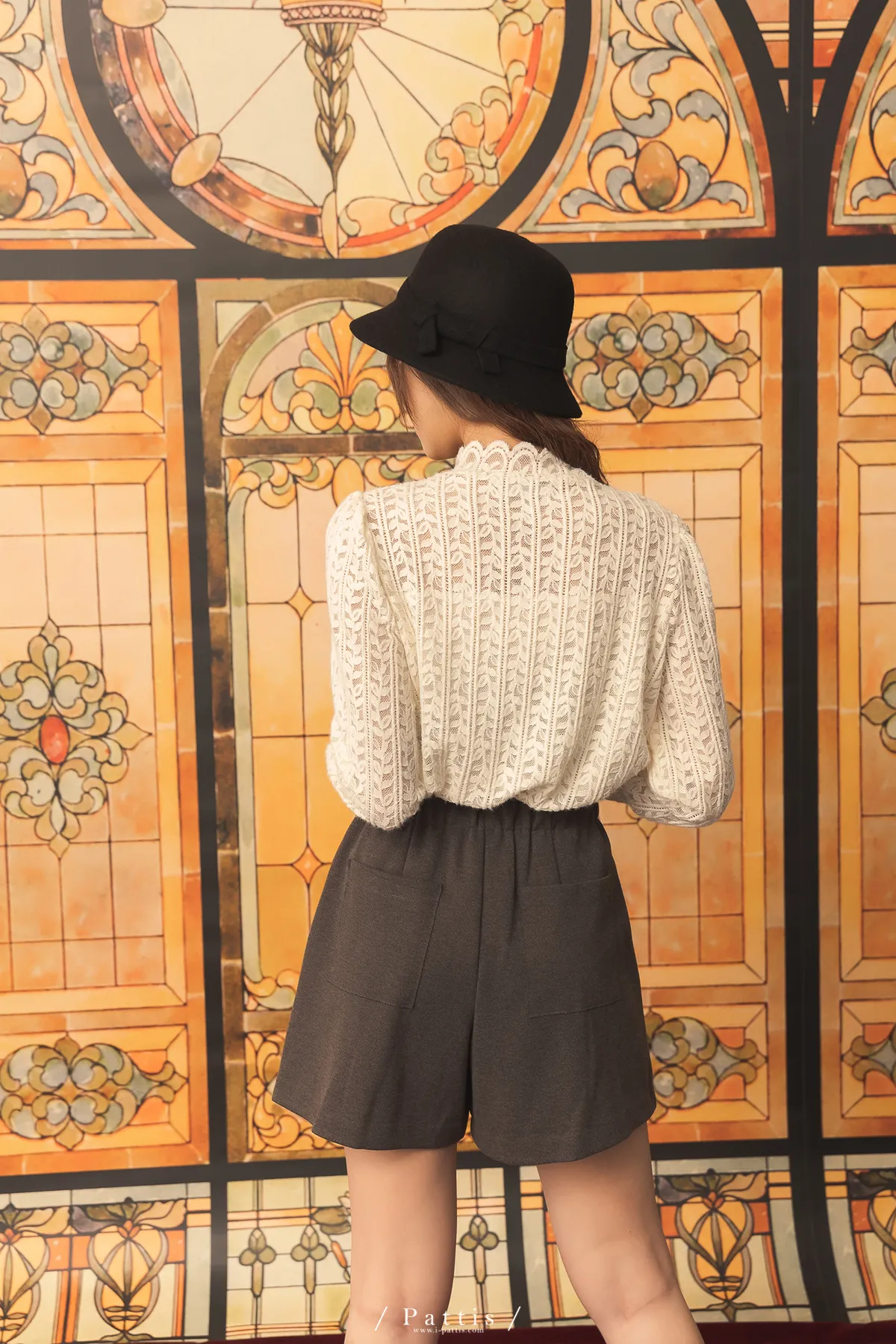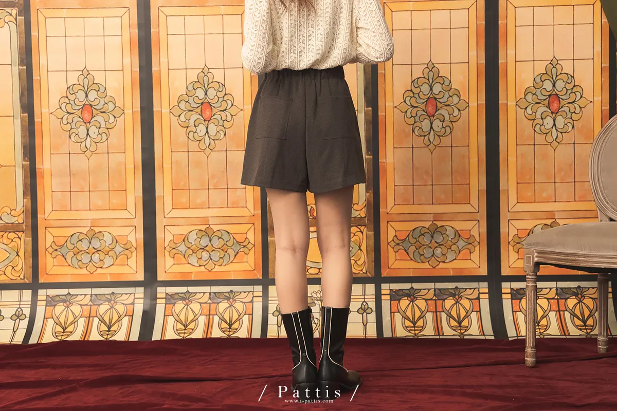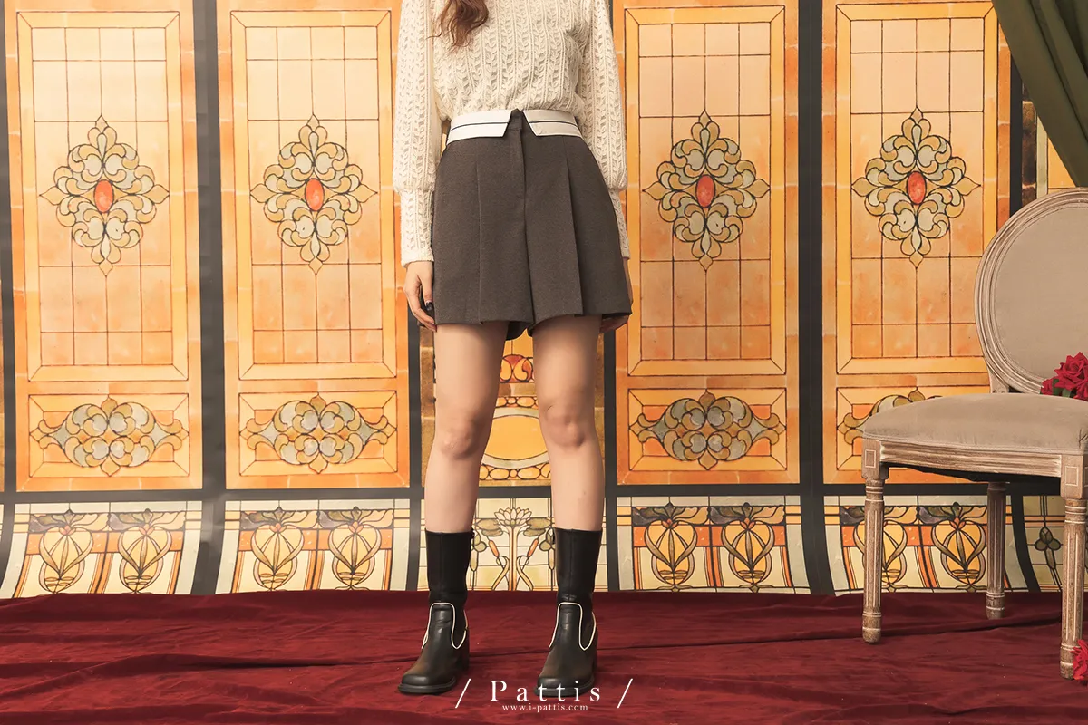 降雪之前 | 壓線翻摺設計短褲(灰黑)