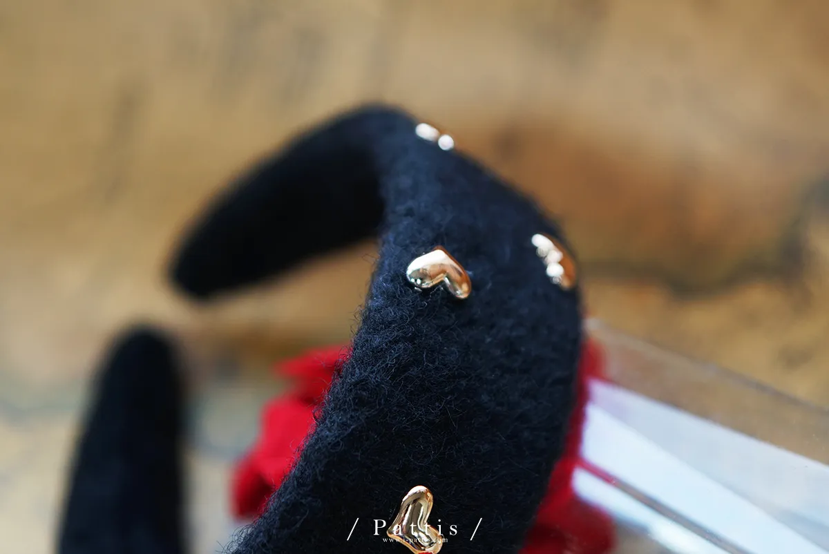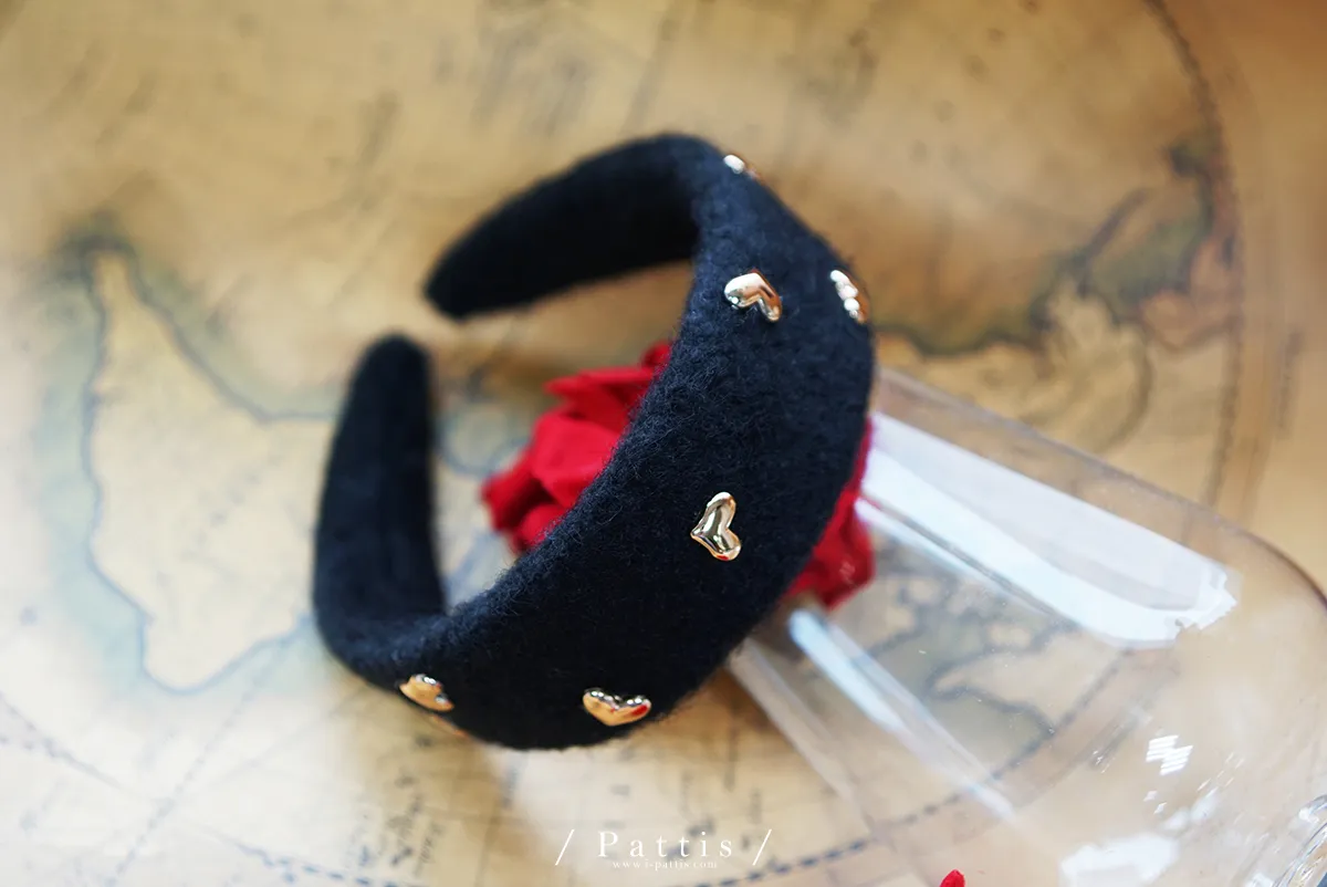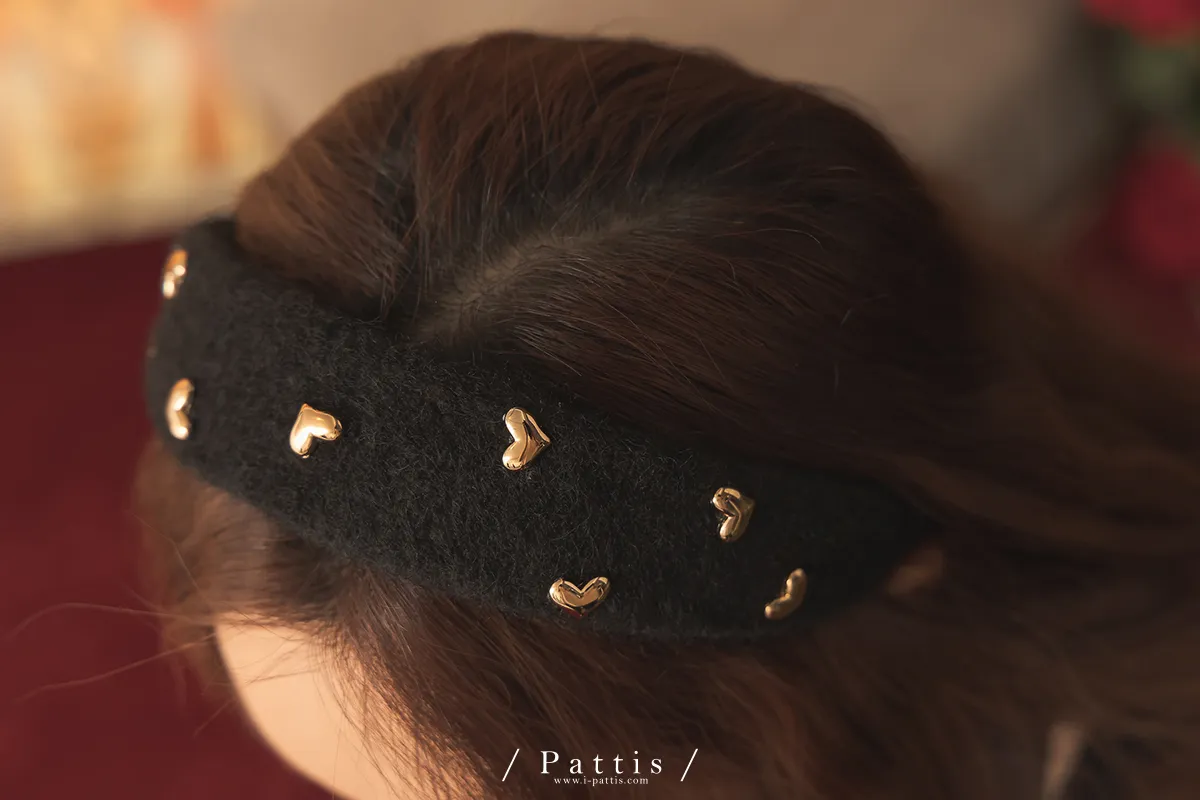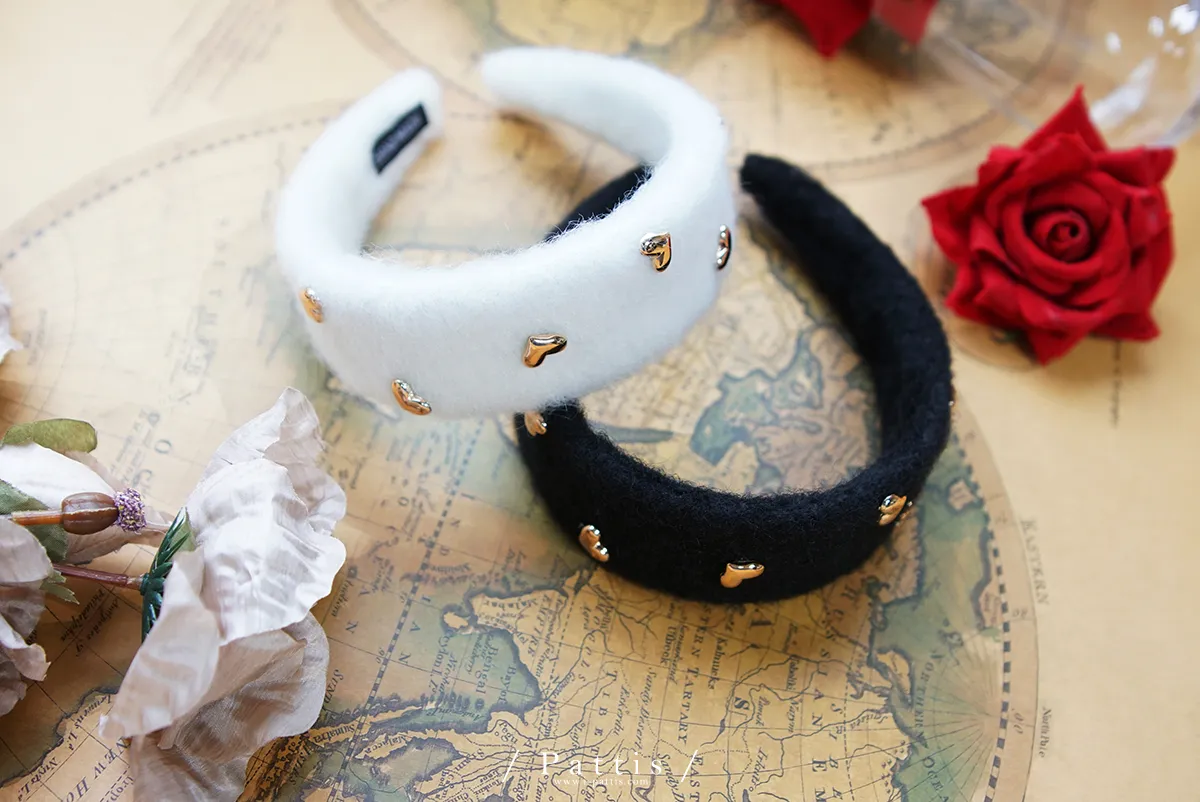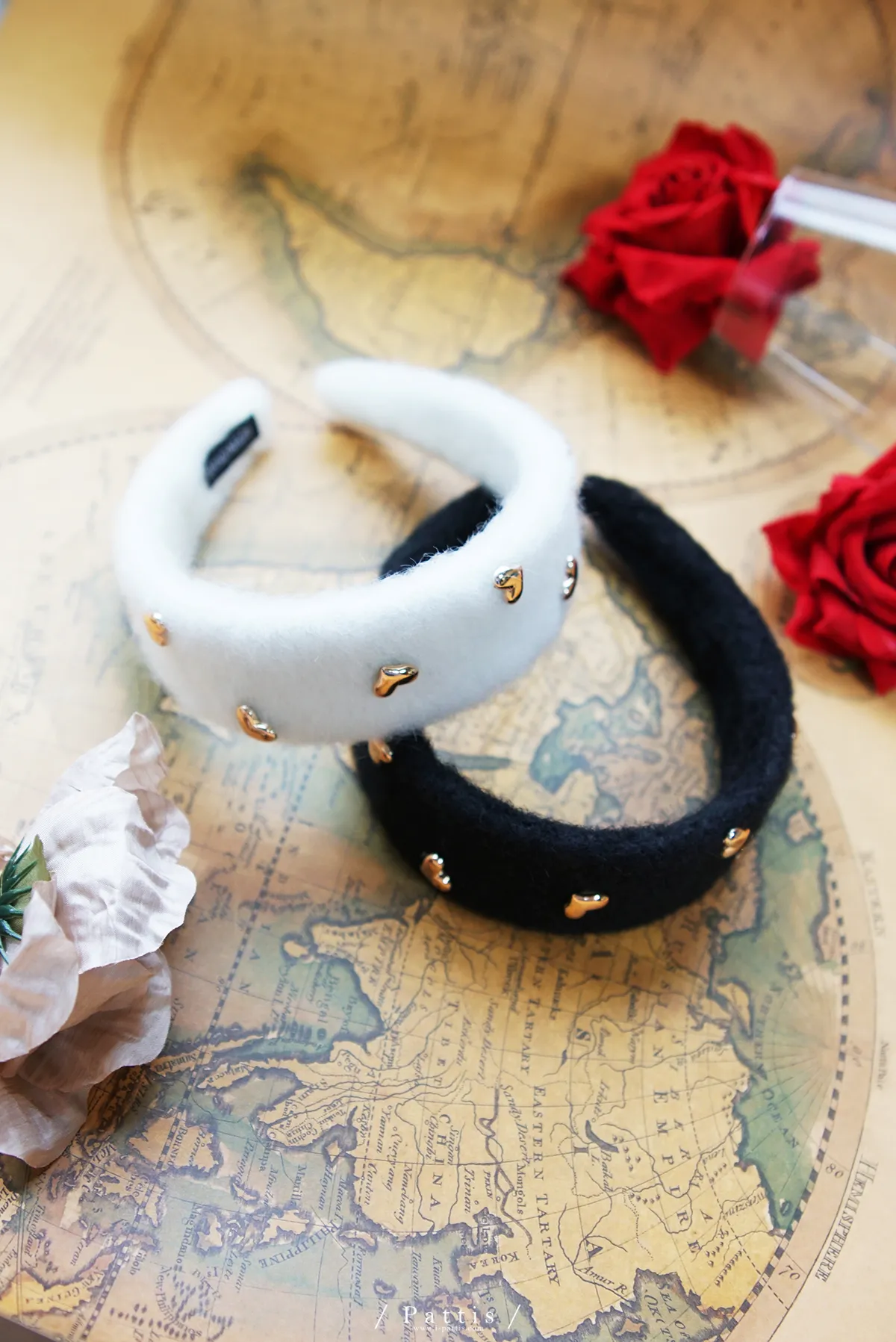 雪地腳印 | 金色小愛心毛毛髮箍(白/黑)