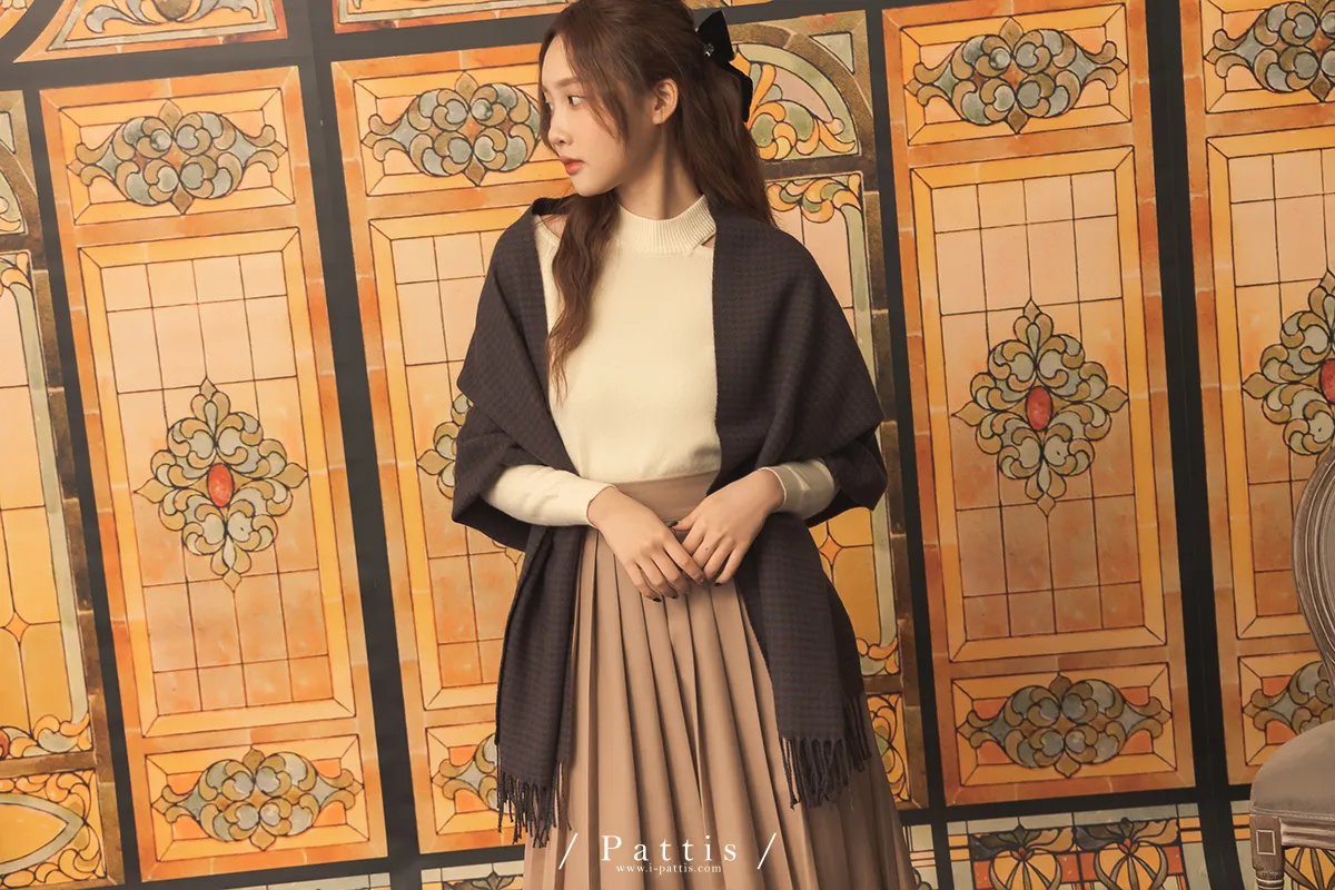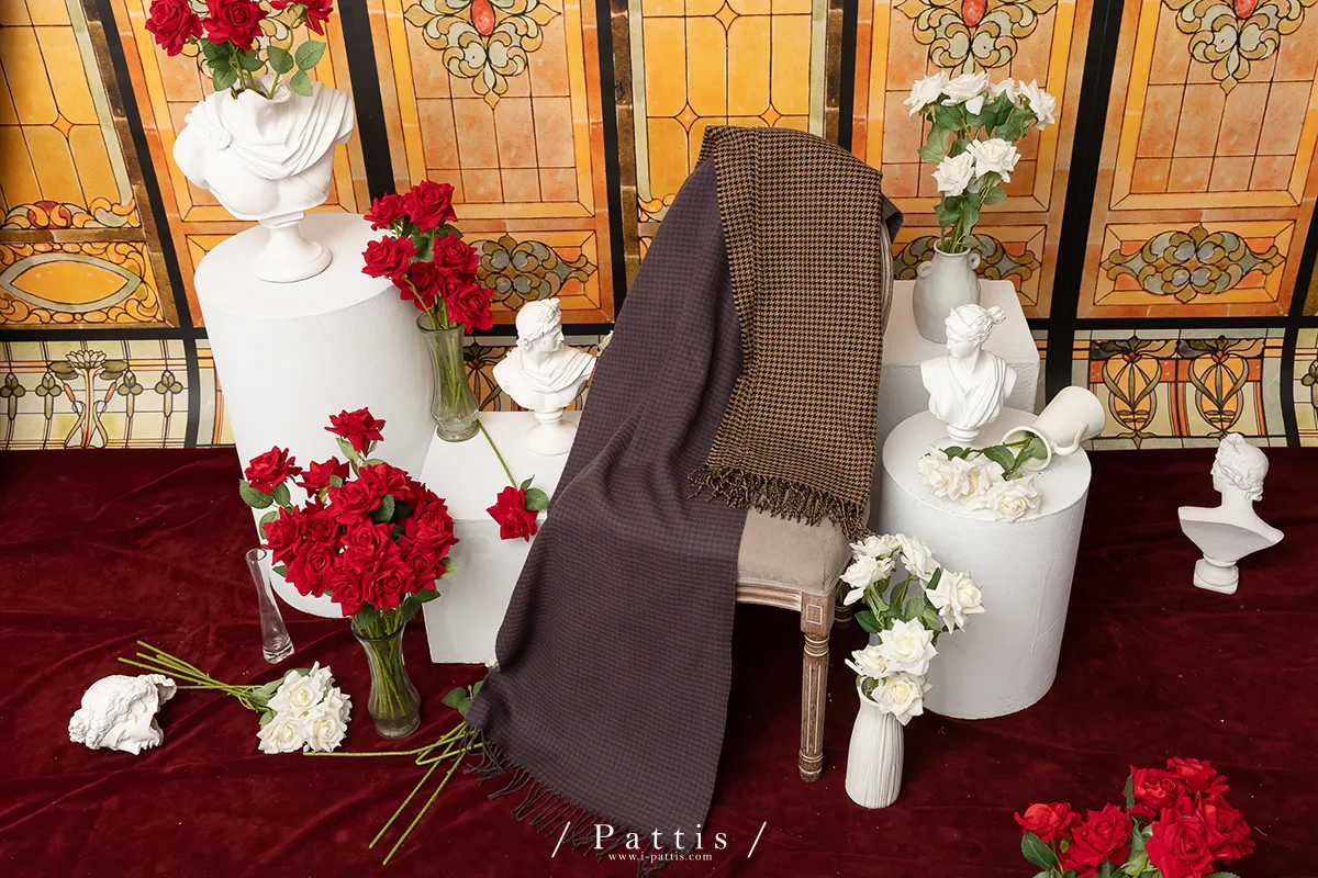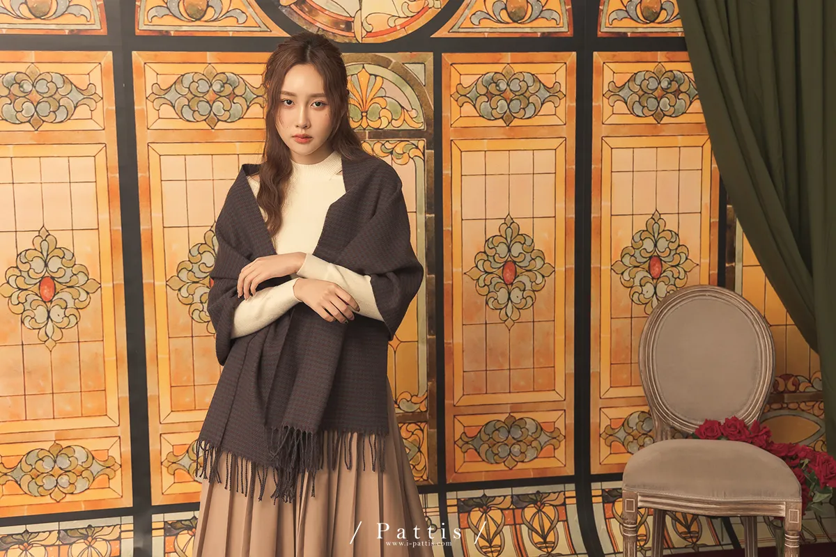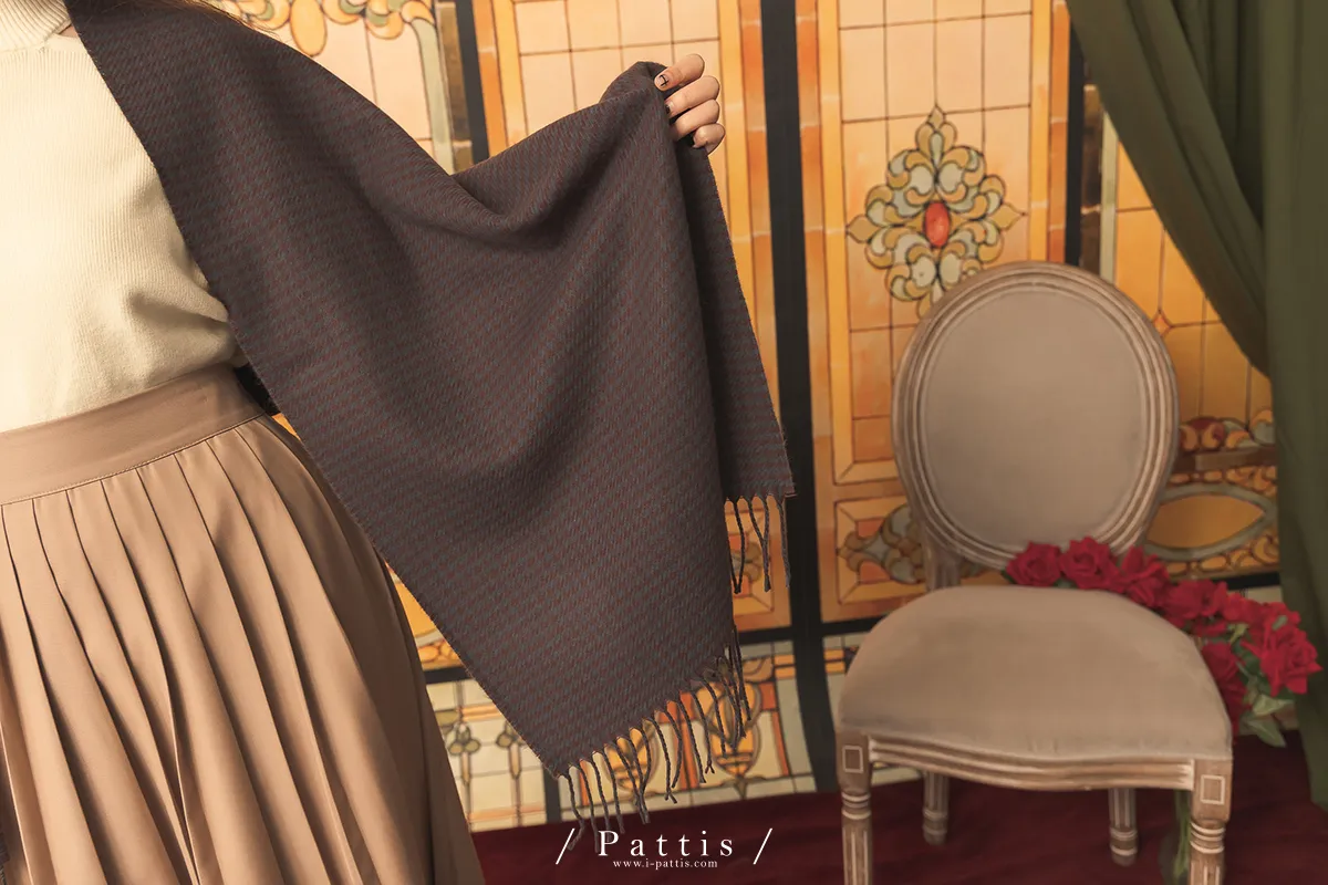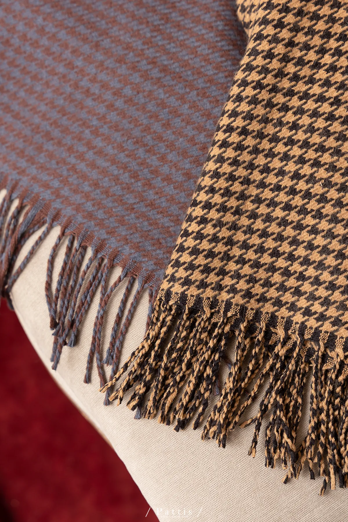 候鳥歸來時 | 千鳥格流蘇長條圍巾(深藍棕/咖啡黑)