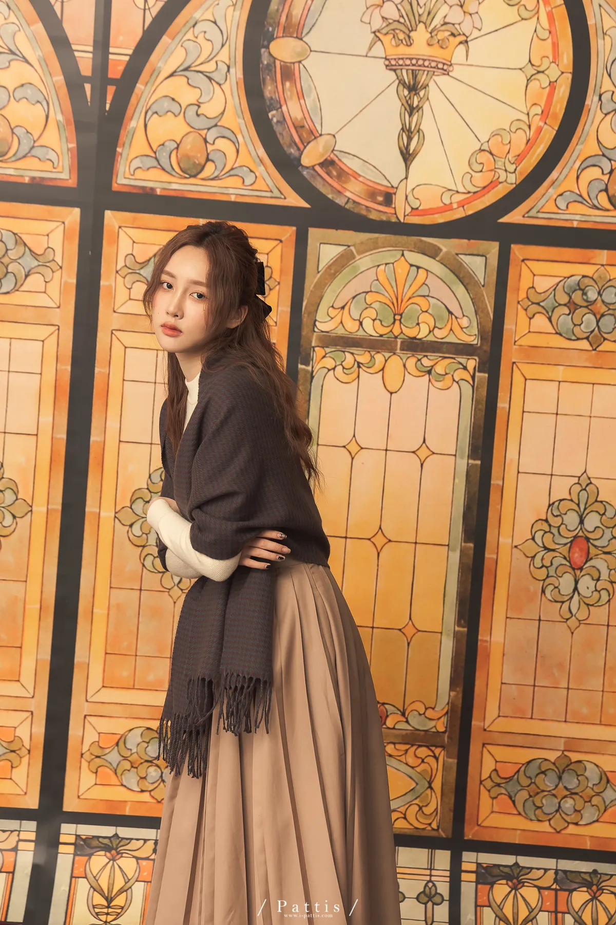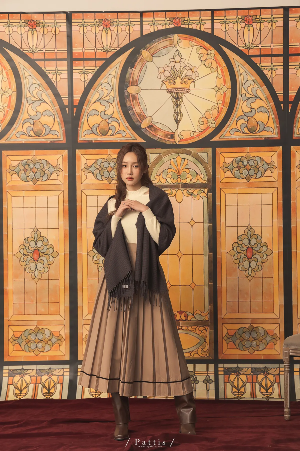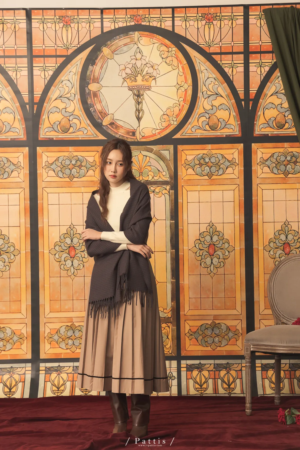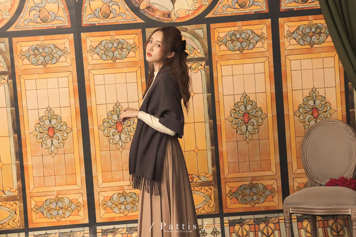 候鳥歸來時 | 千鳥格流蘇長條圍巾(深藍棕/咖啡黑)
