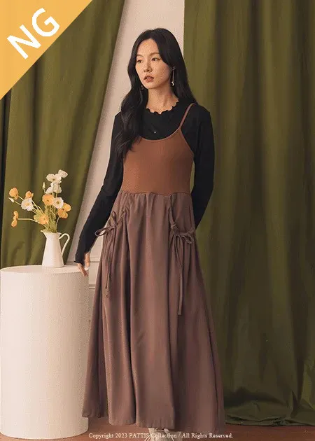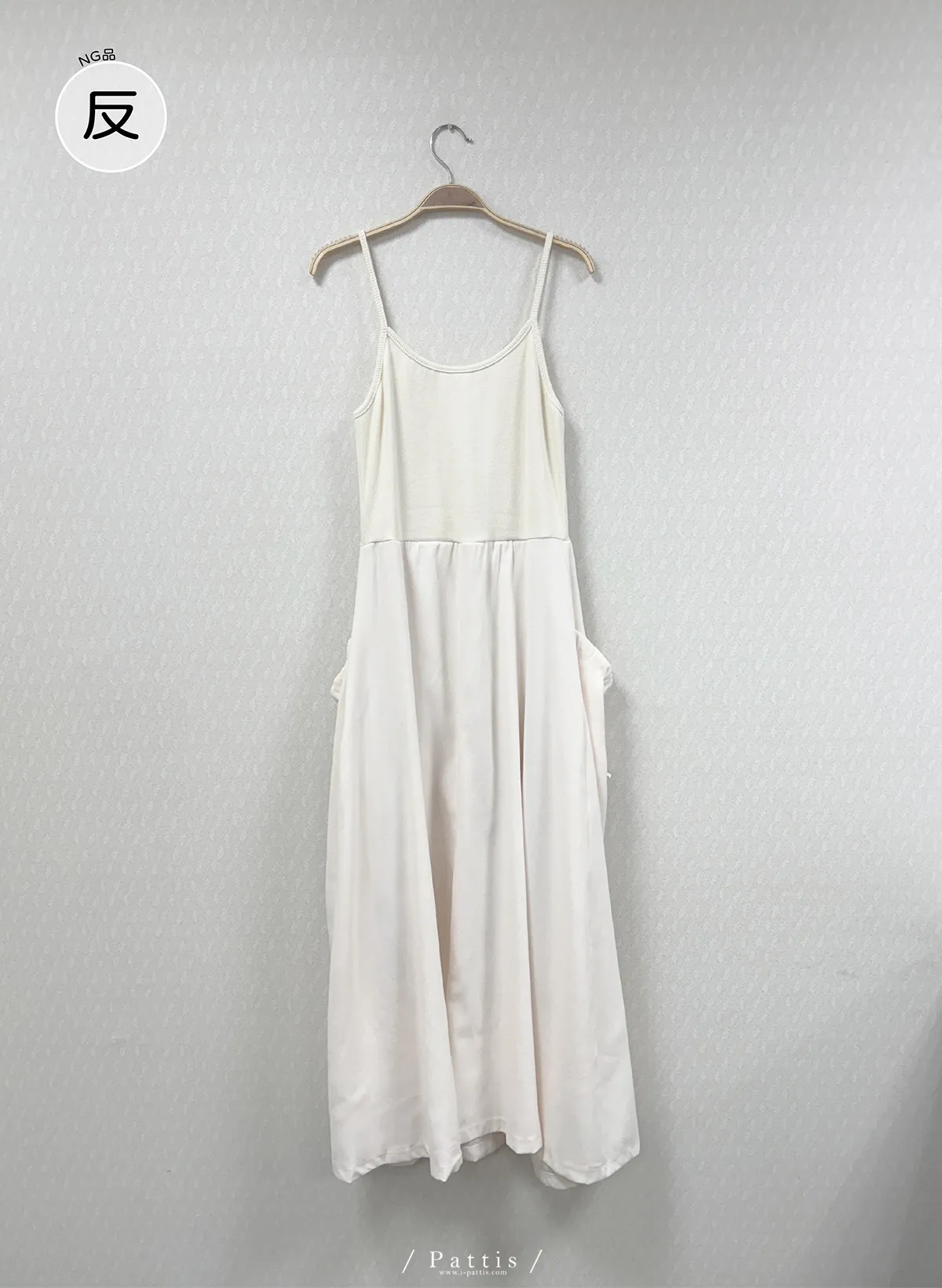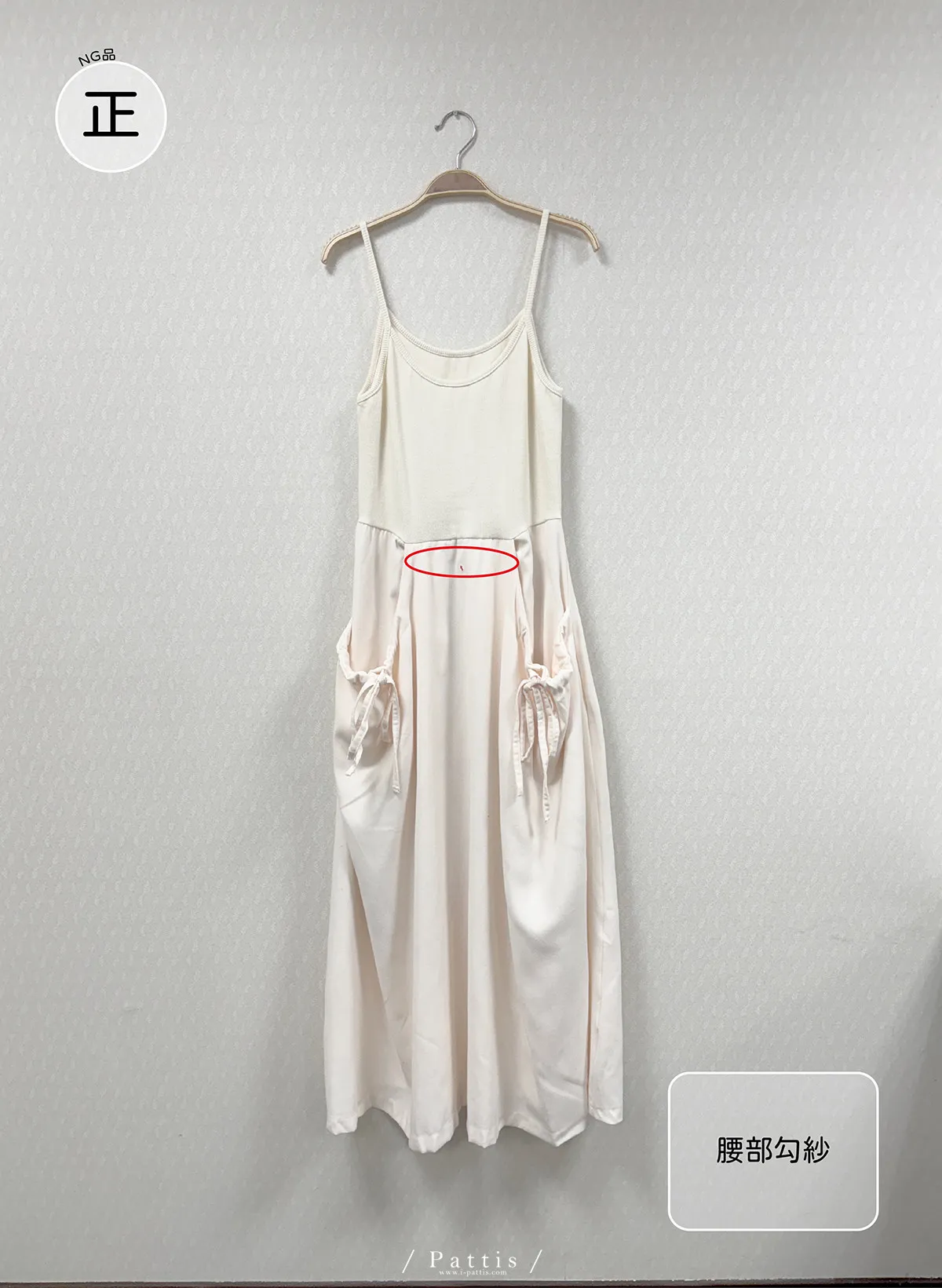 / NG品 原價$1380 /針織拼接抽繩口袋吊帶洋裝(米白)