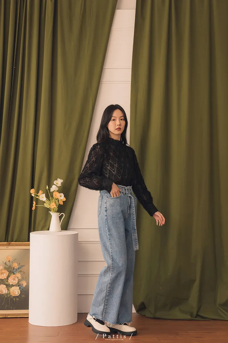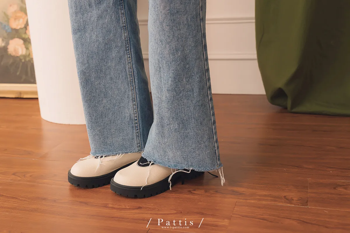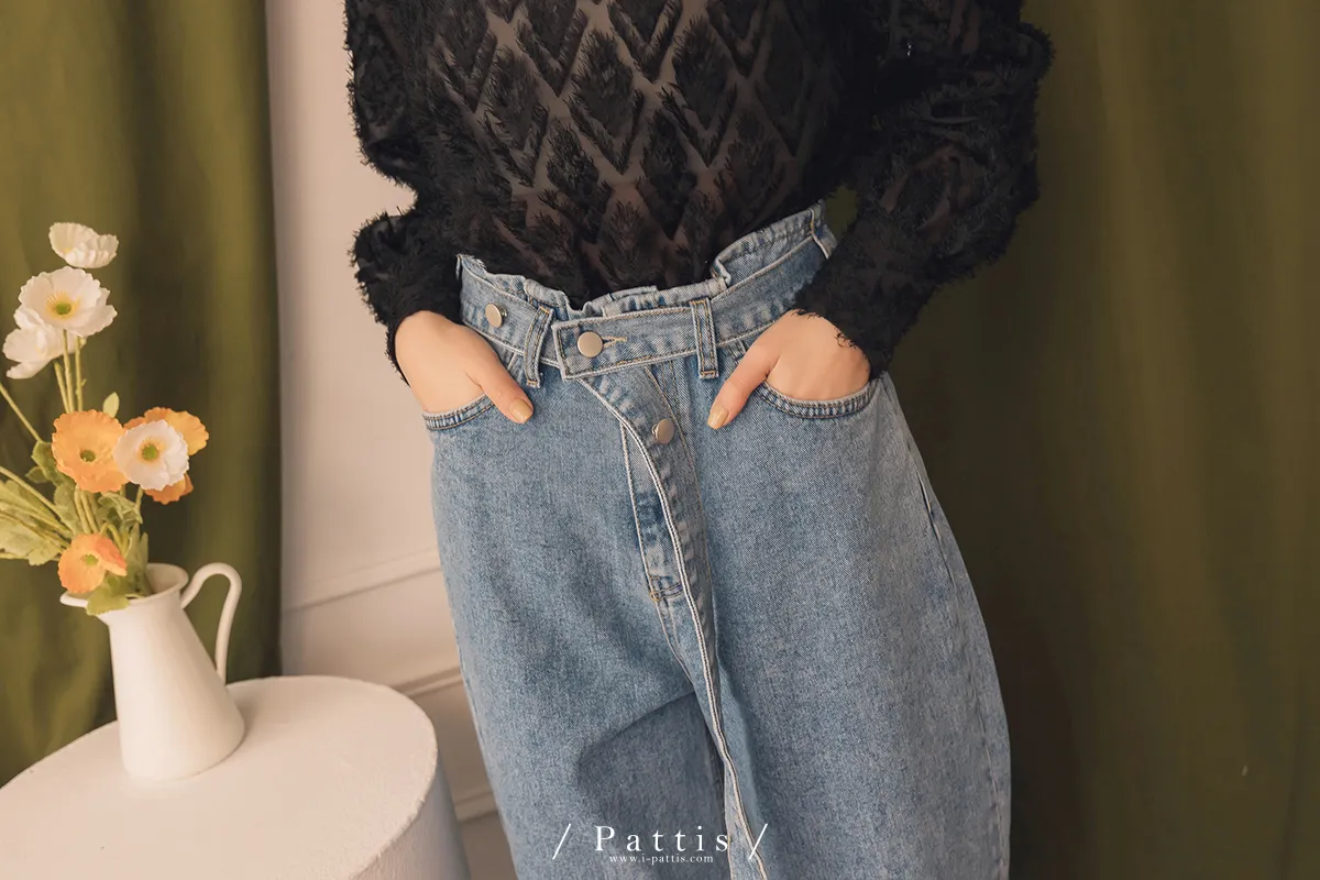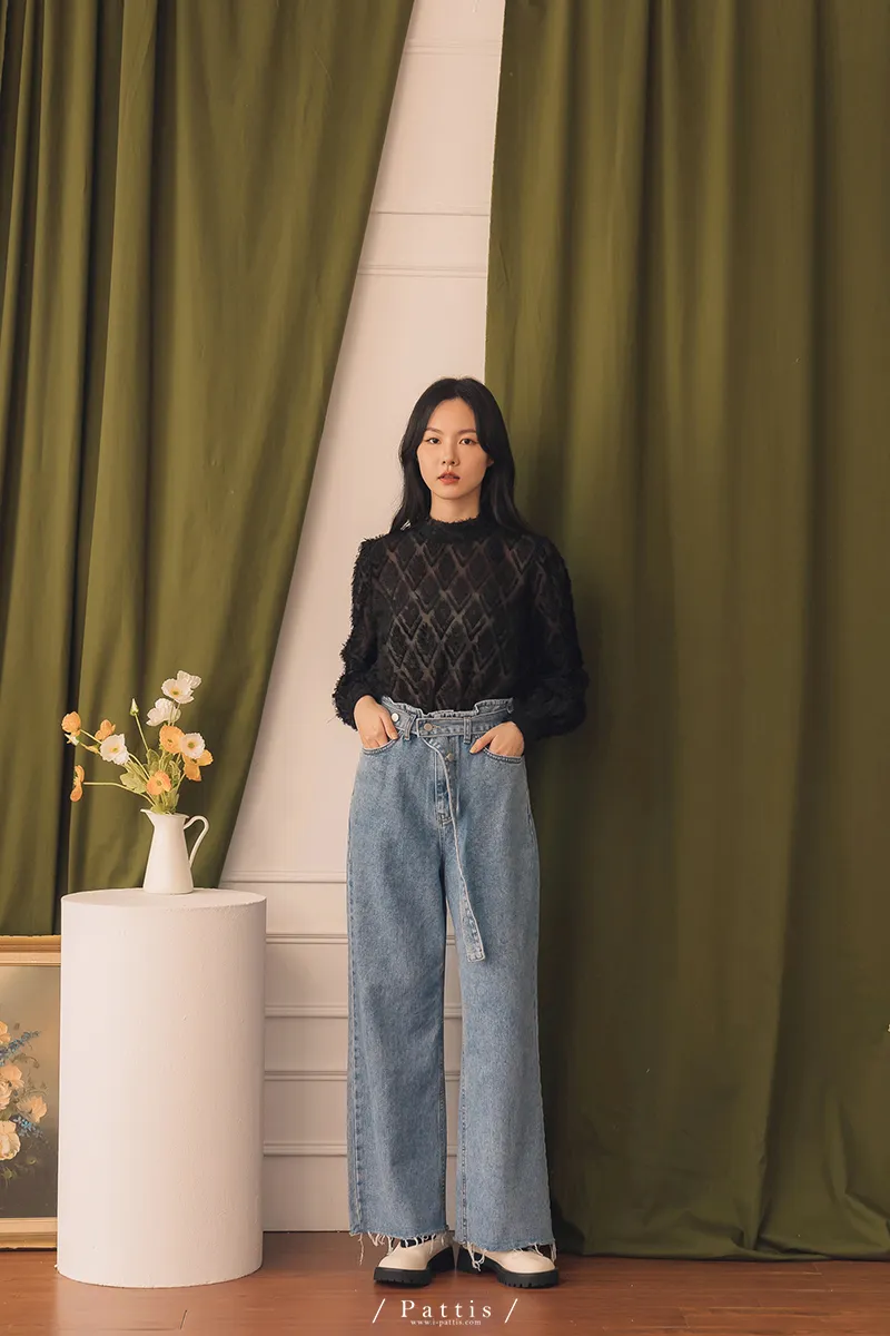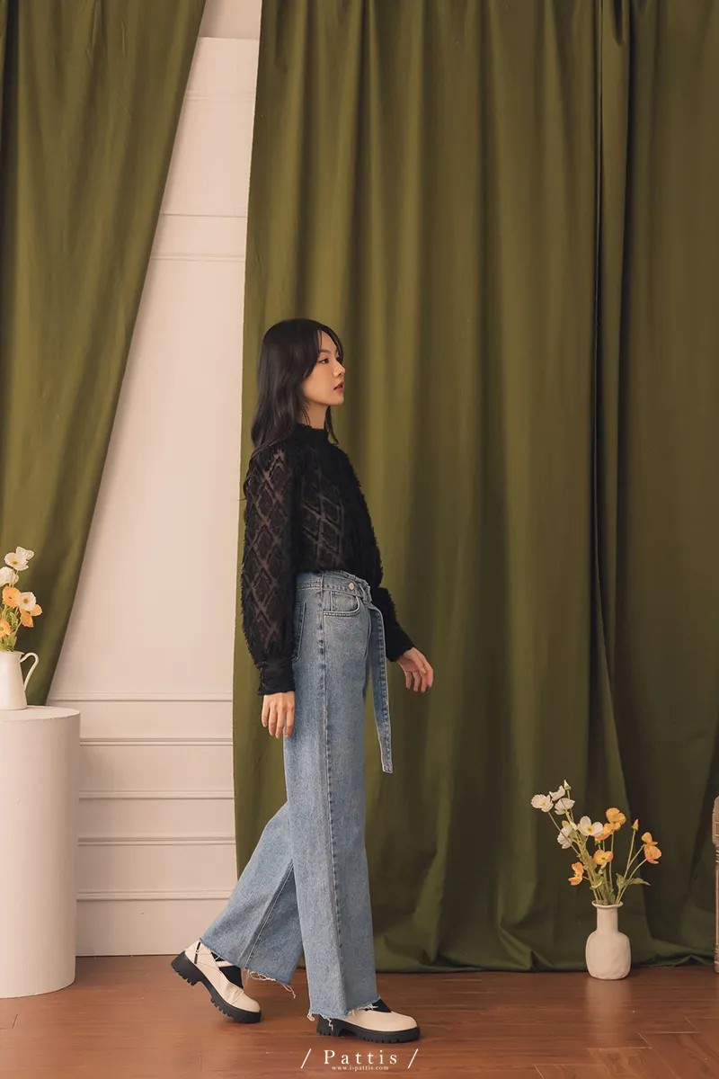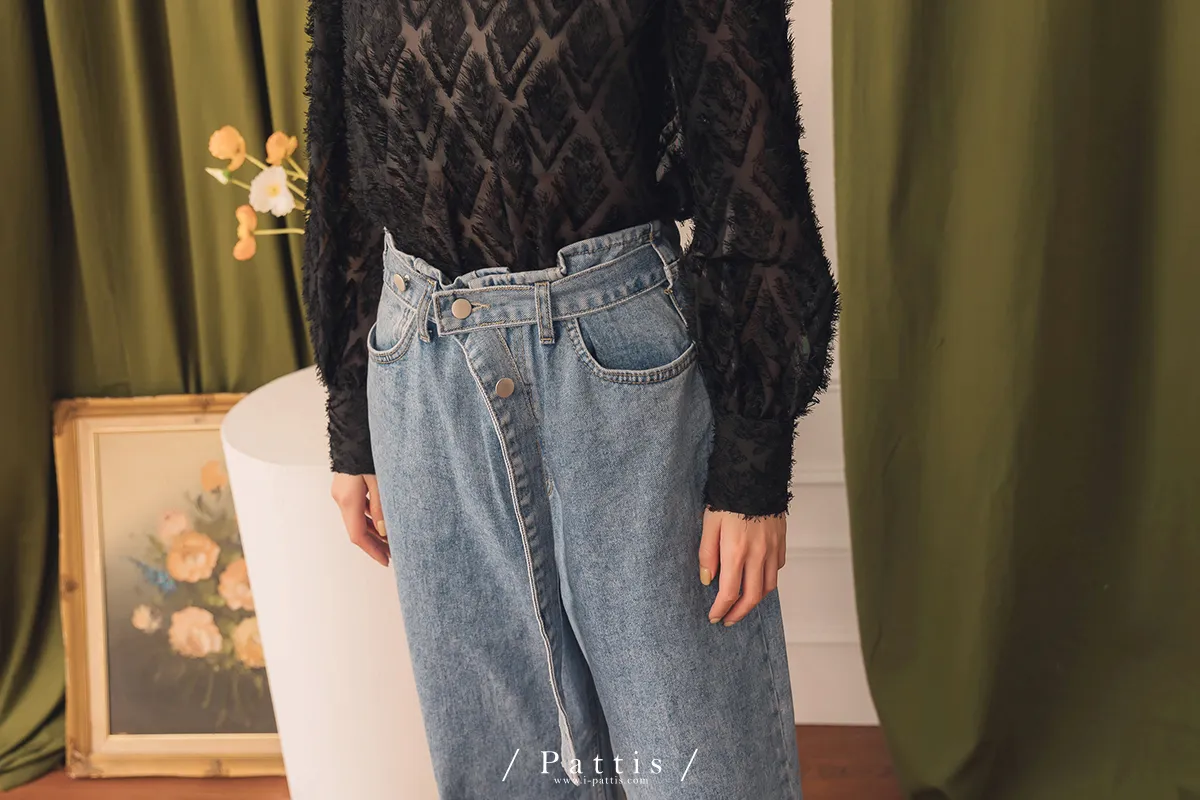 冰冬的湖色 | 釘釦繫帶不收邊單寧寬褲(單一色)