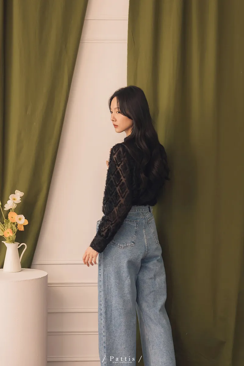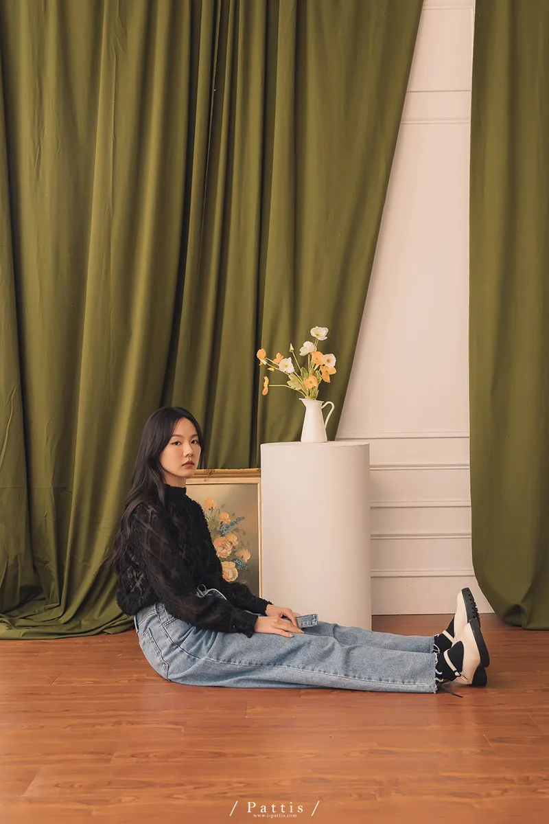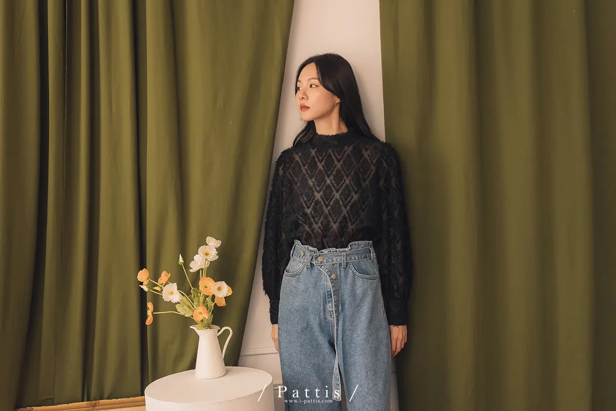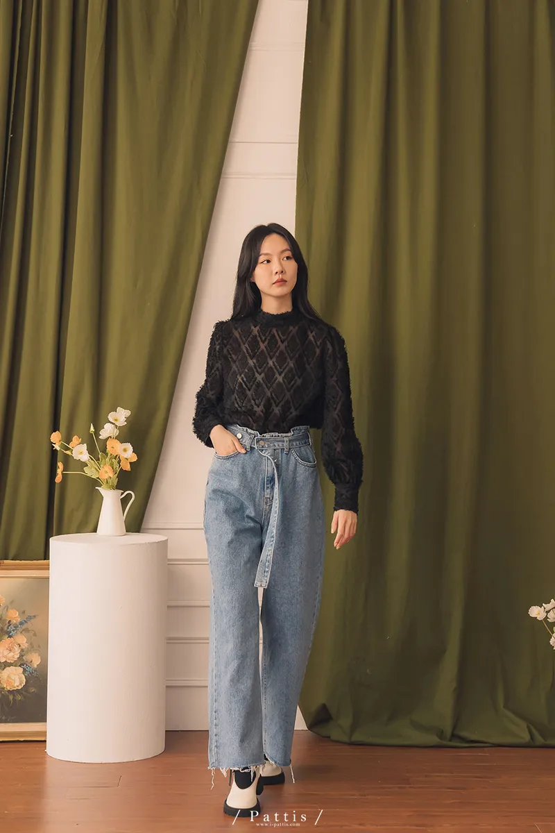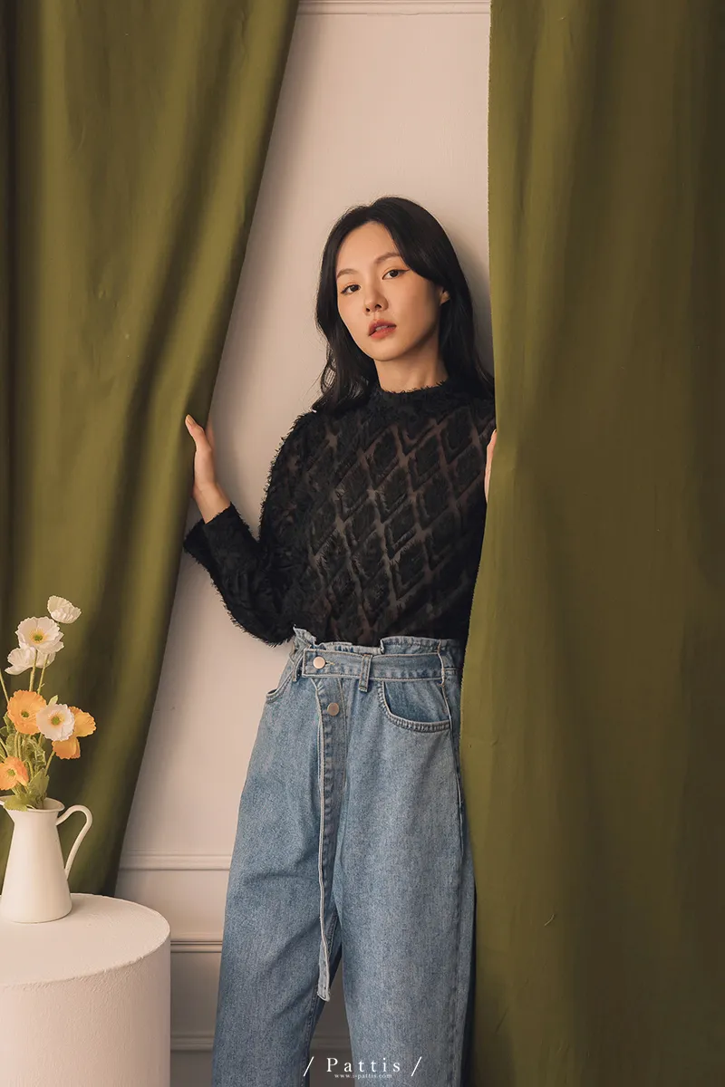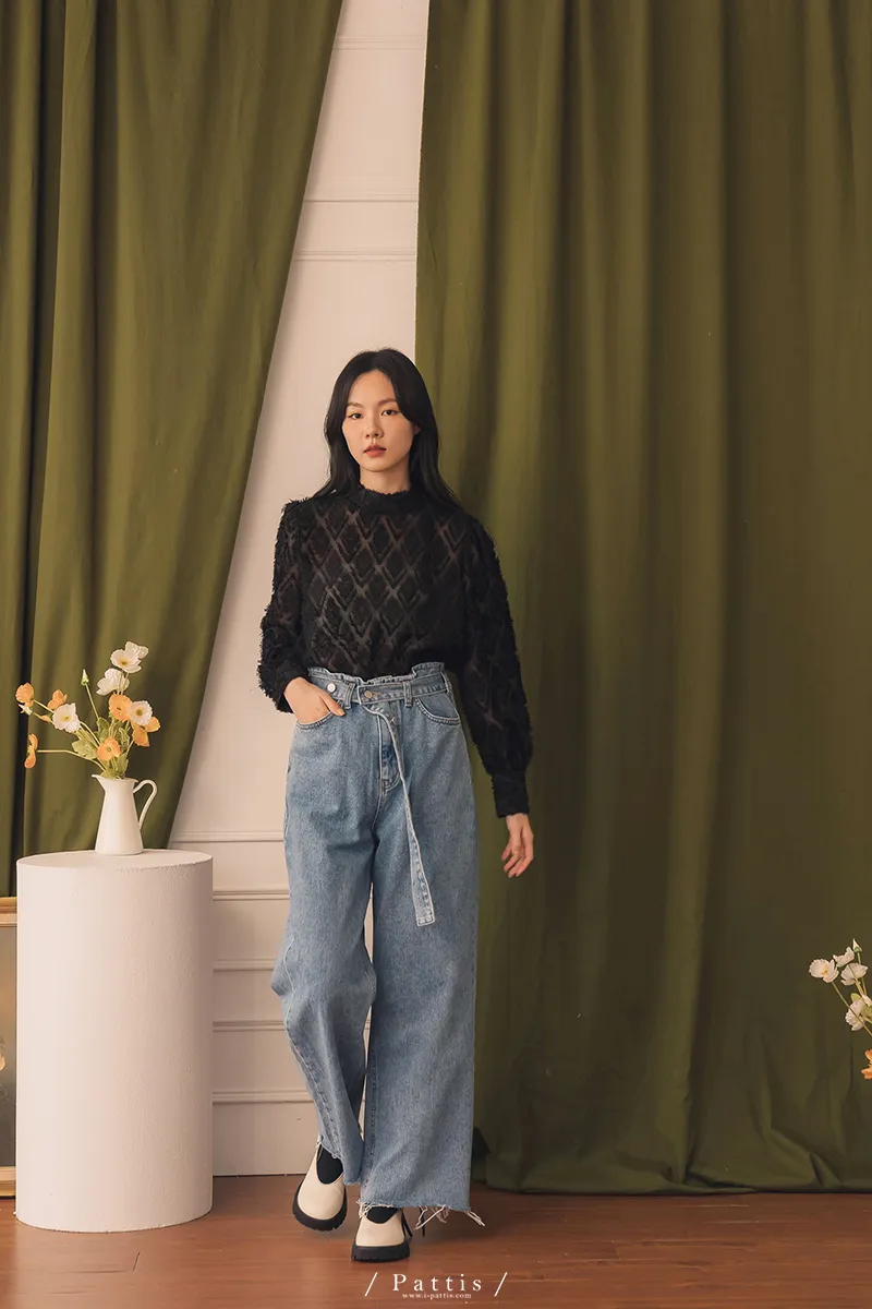 冰冬的湖色 | 釘釦繫帶不收邊單寧寬褲(單一色)