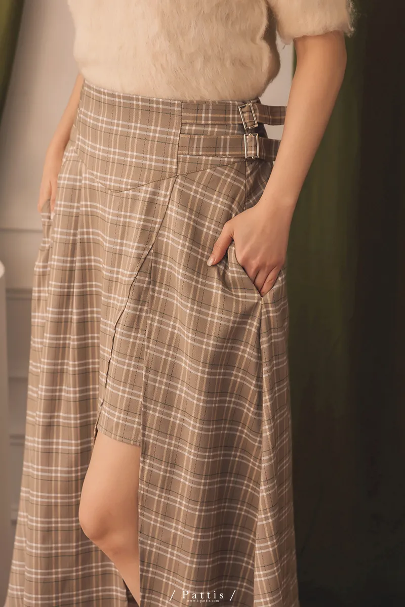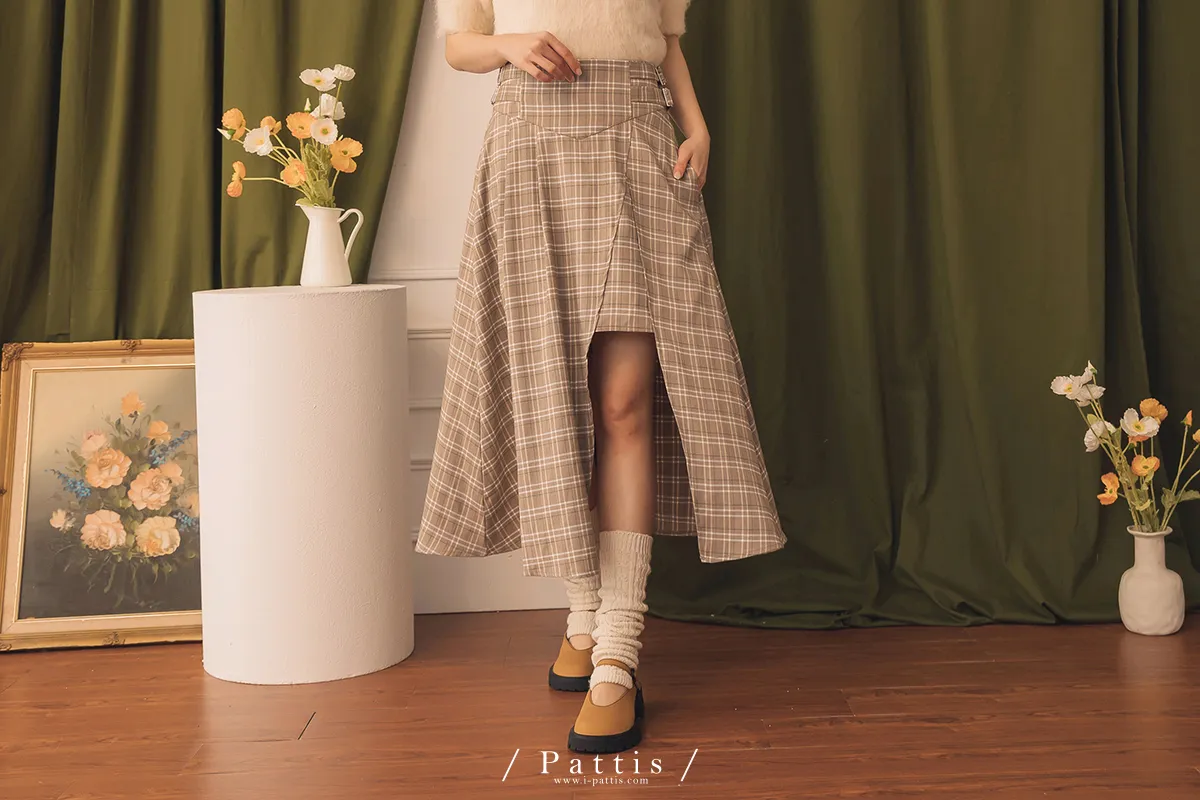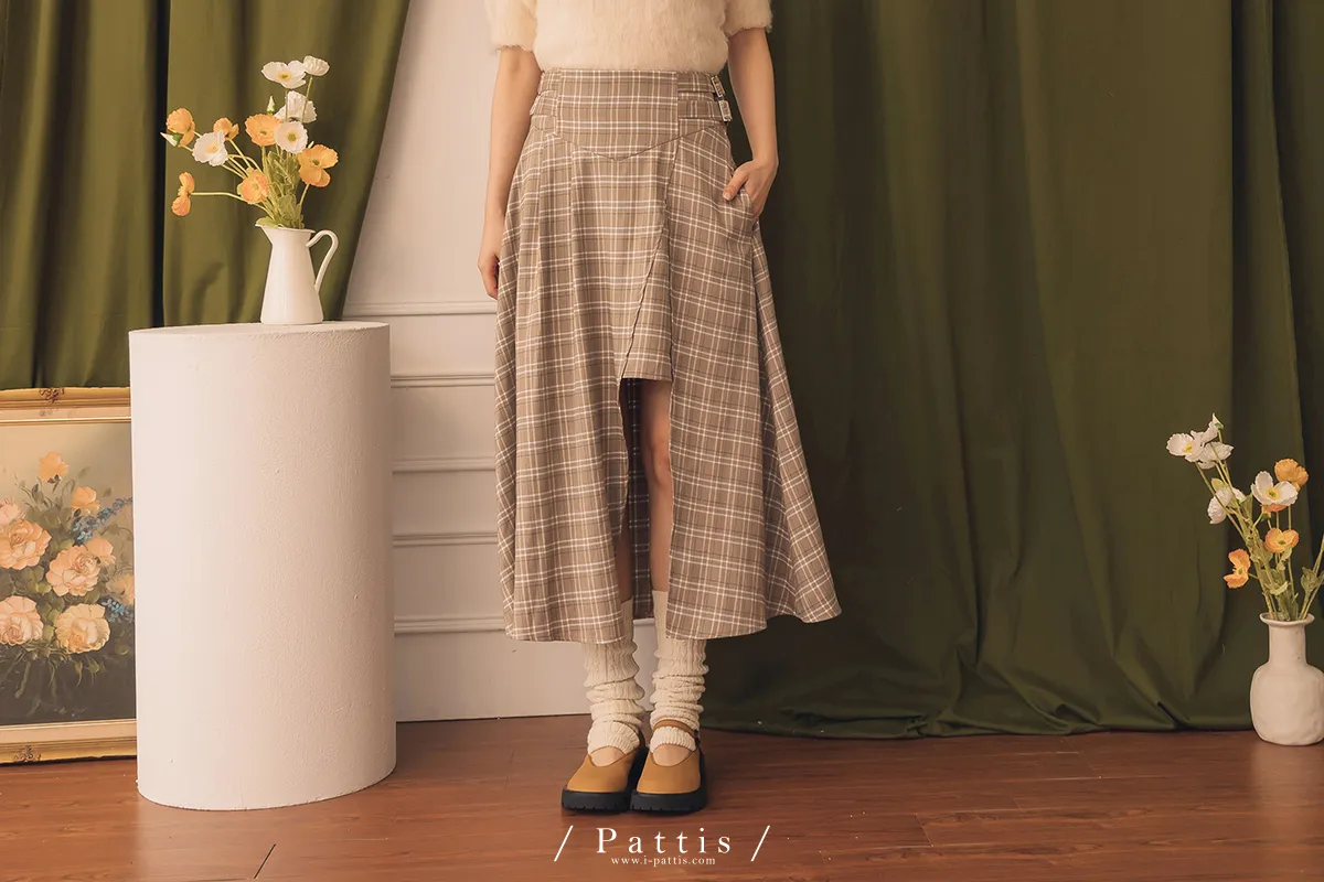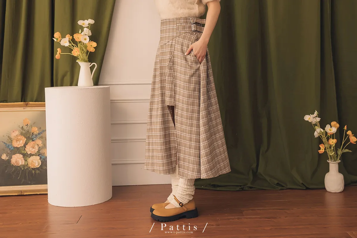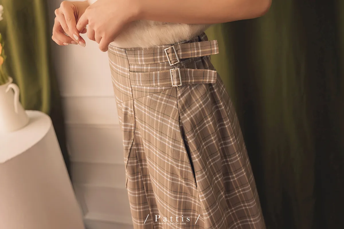 婉拒任何指引 | 不對稱雙繫帶造型格紋裙(棕)