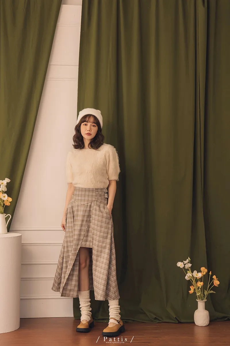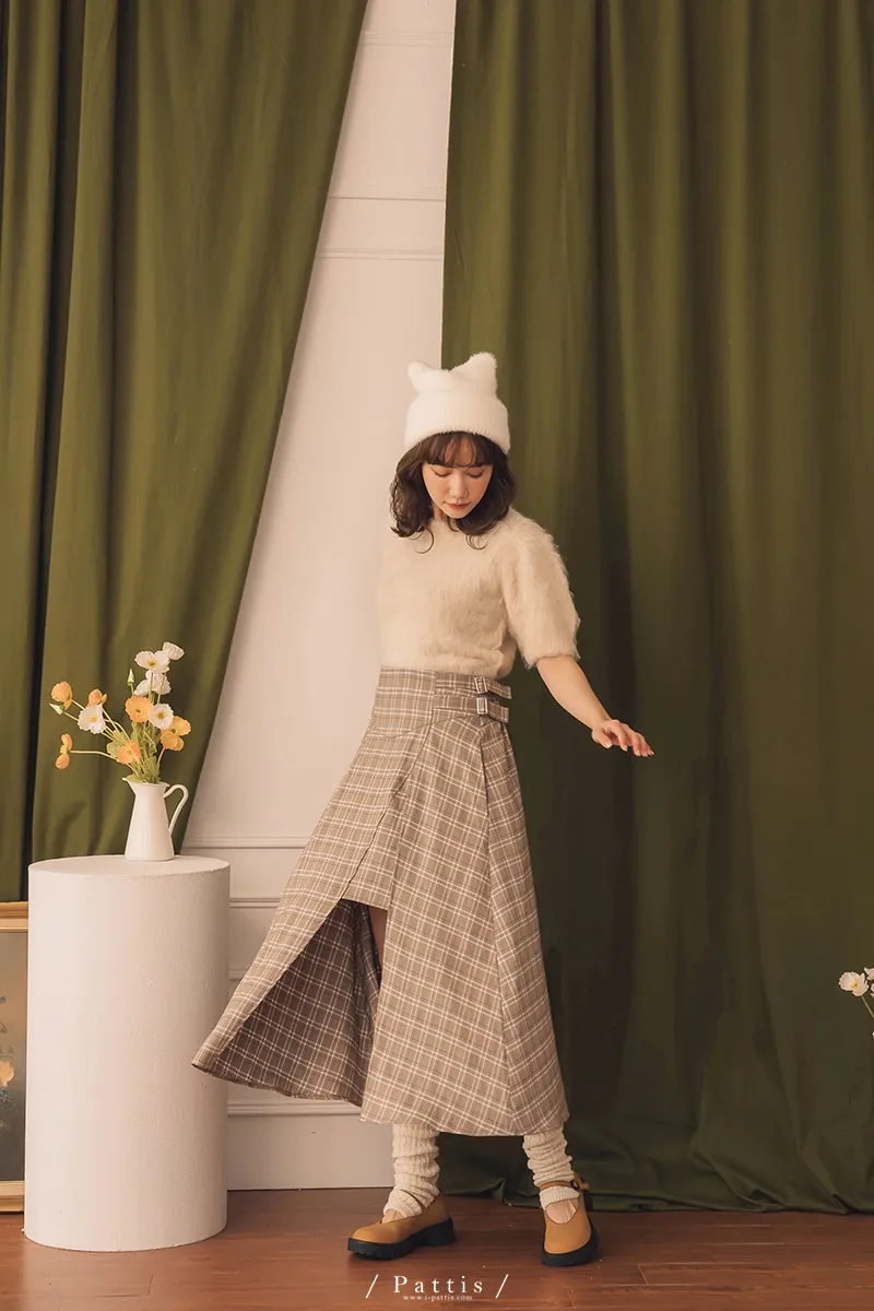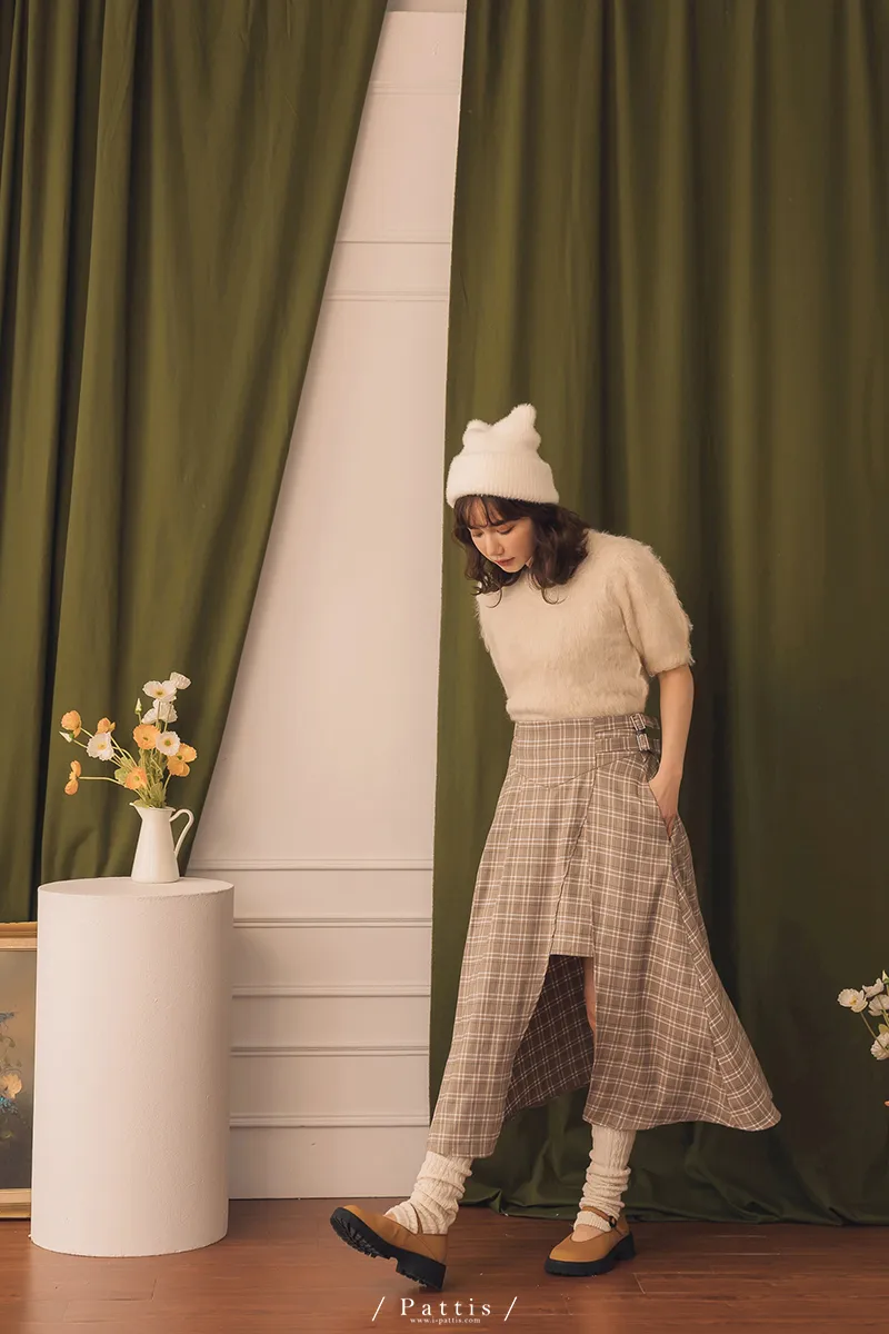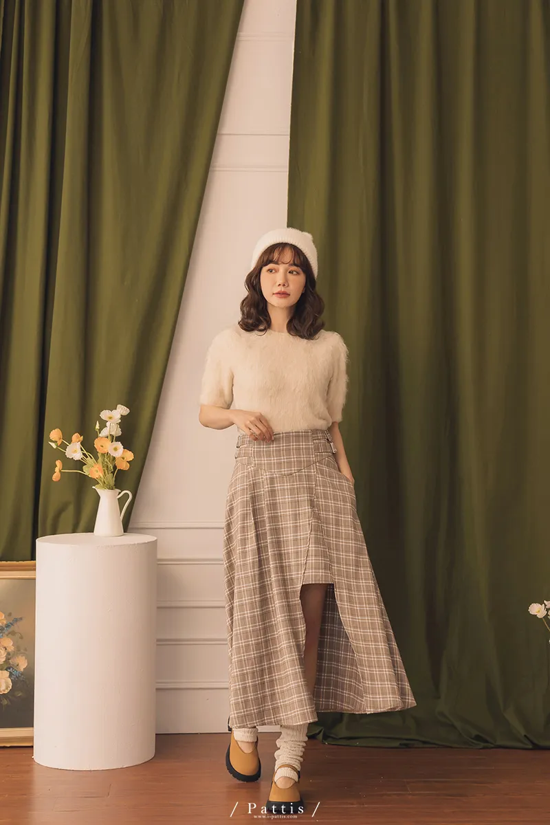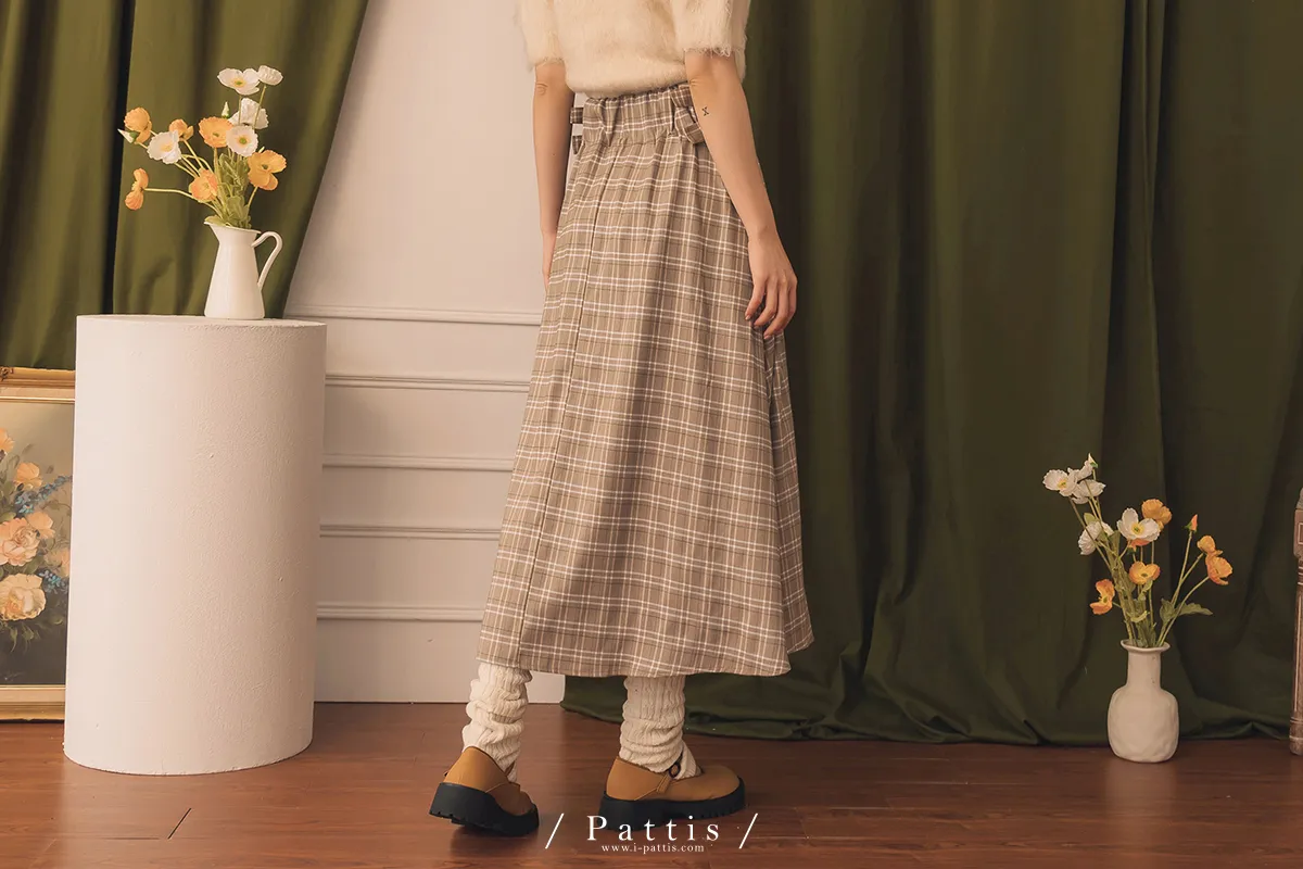婉拒任何指引 | 不對稱雙繫帶造型格紋裙(棕)