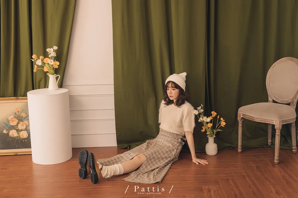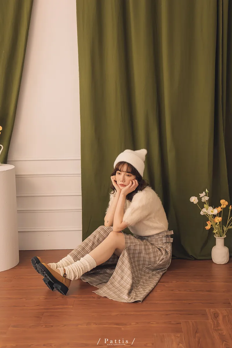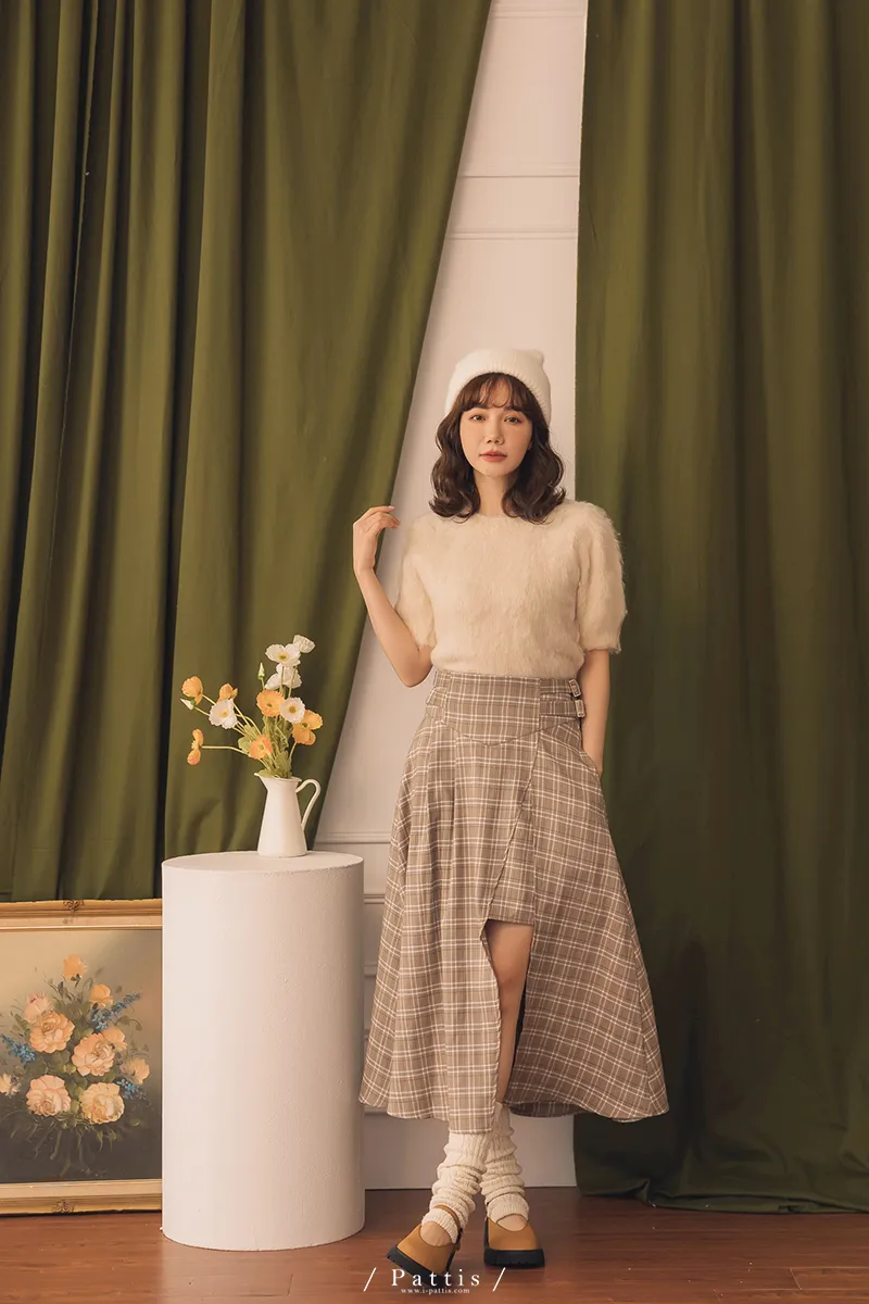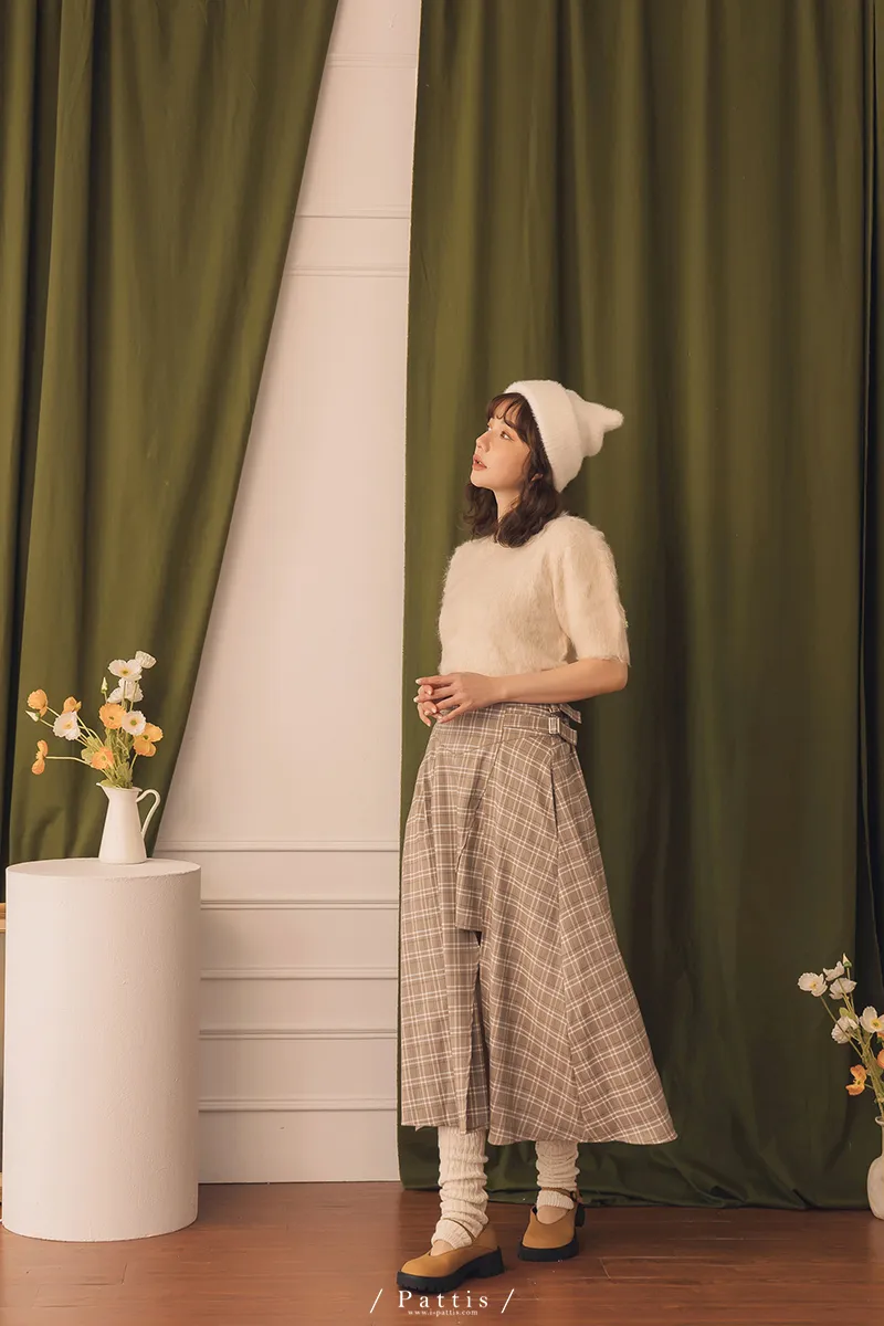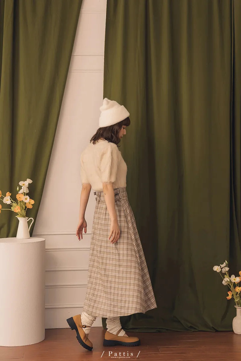 婉拒任何指引 | 不對稱雙繫帶造型格紋裙(棕)