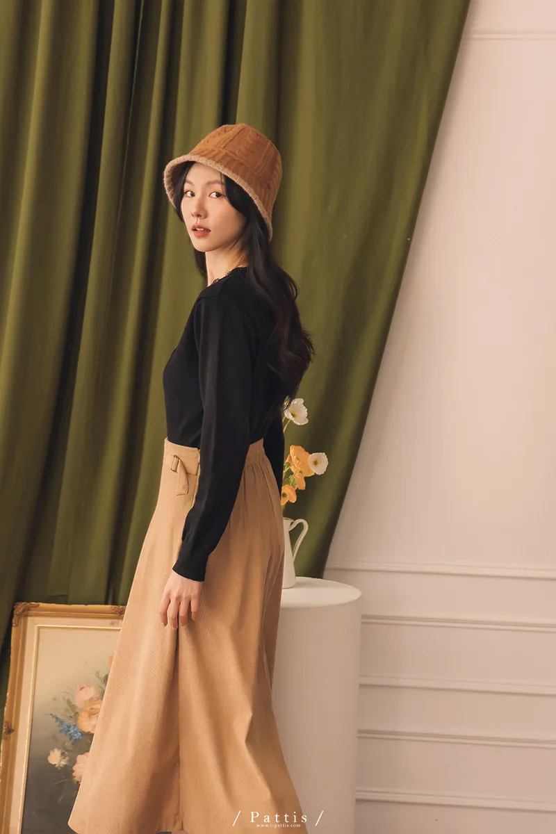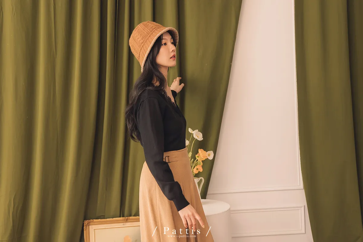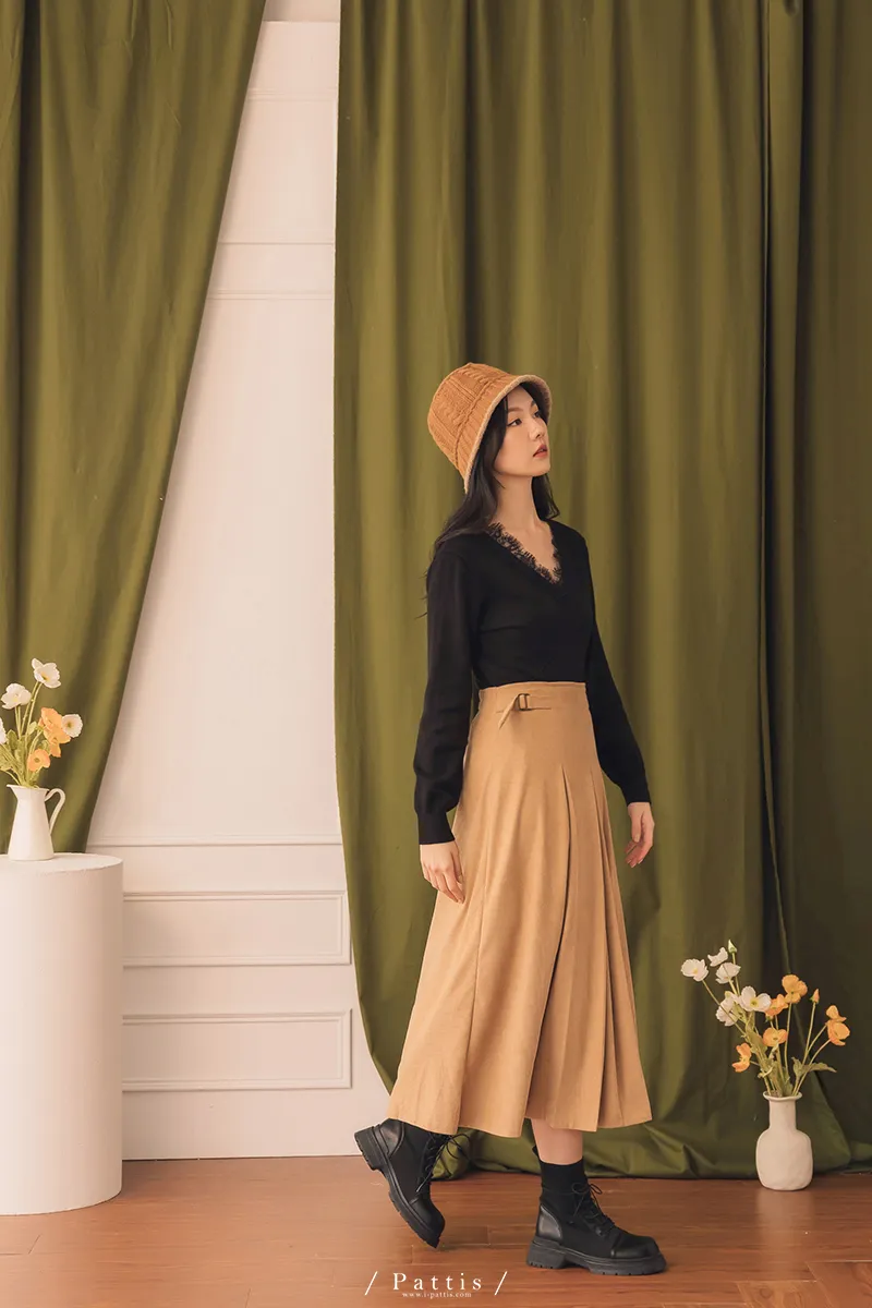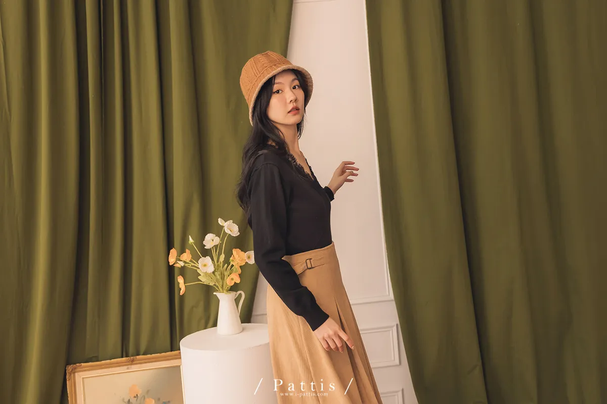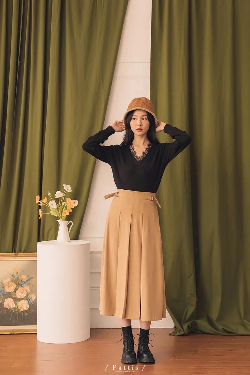 *特*綴蕾絲V領小蓬袖毛衣(黑)