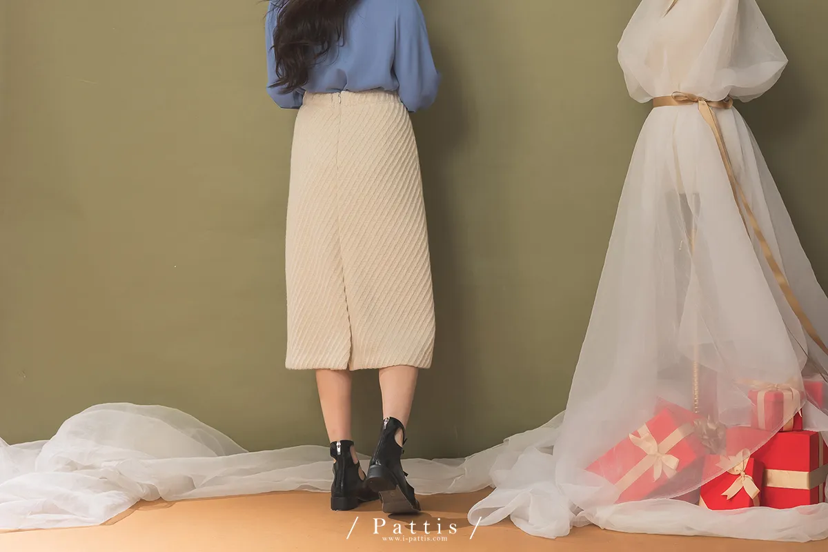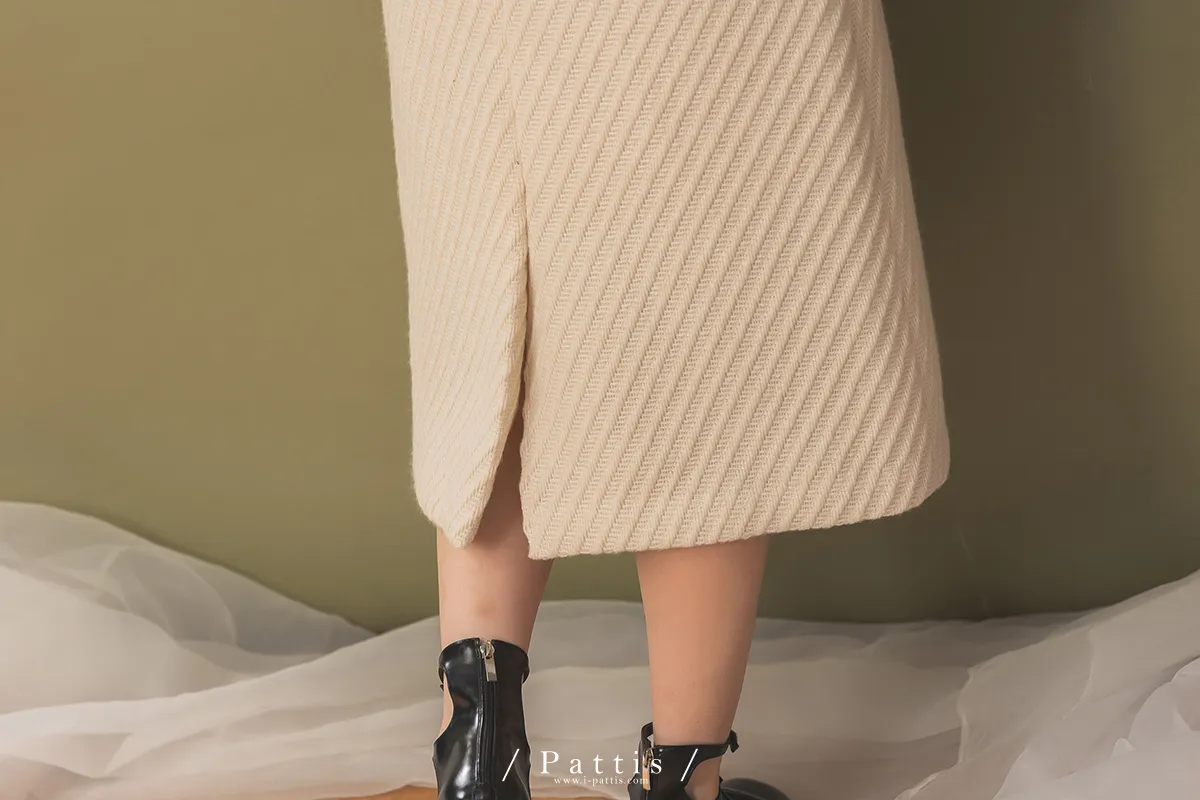 人造糖霜所有權 | 條紋開岔長裙(奶油初雪)