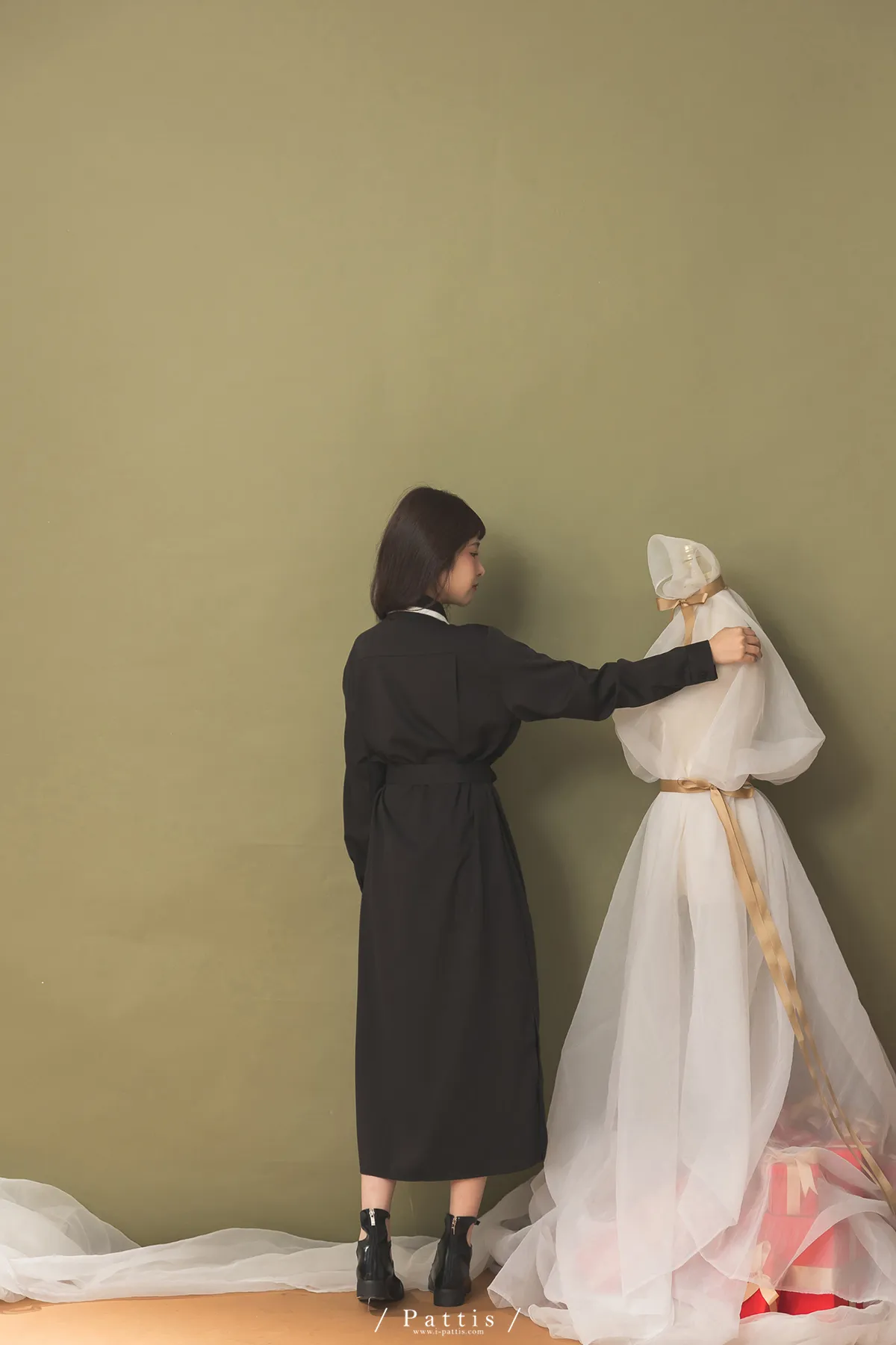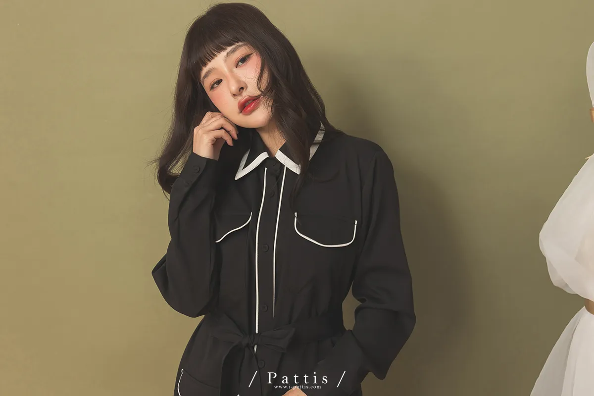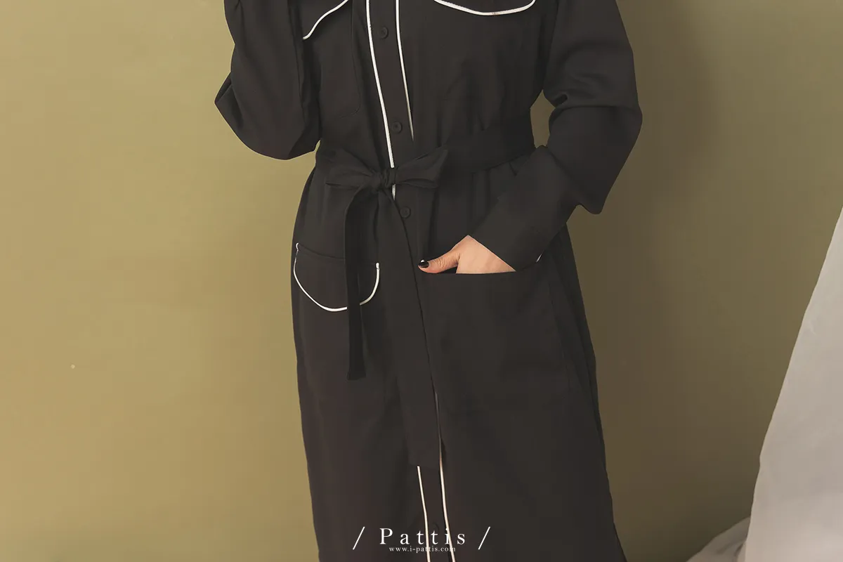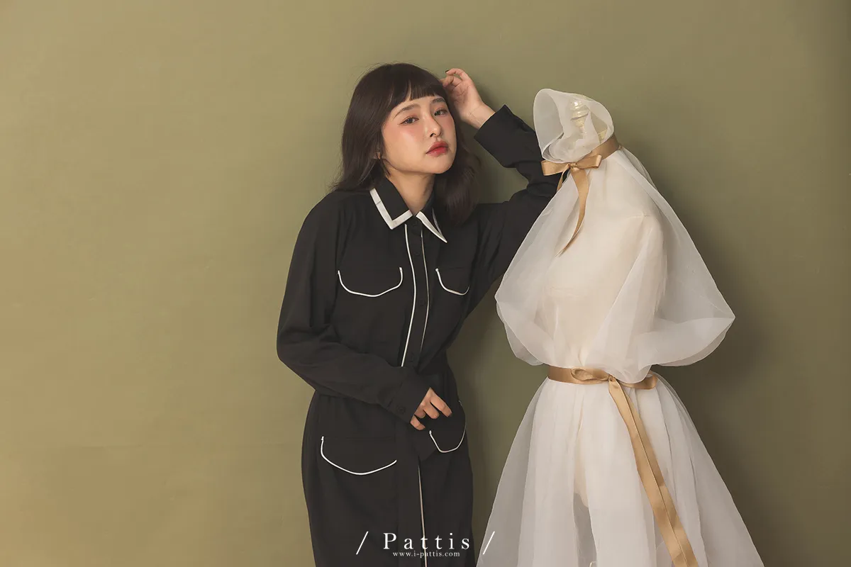 雲夜蒐集家 | 軟料撞色領配四袋造型洋裝(黑)