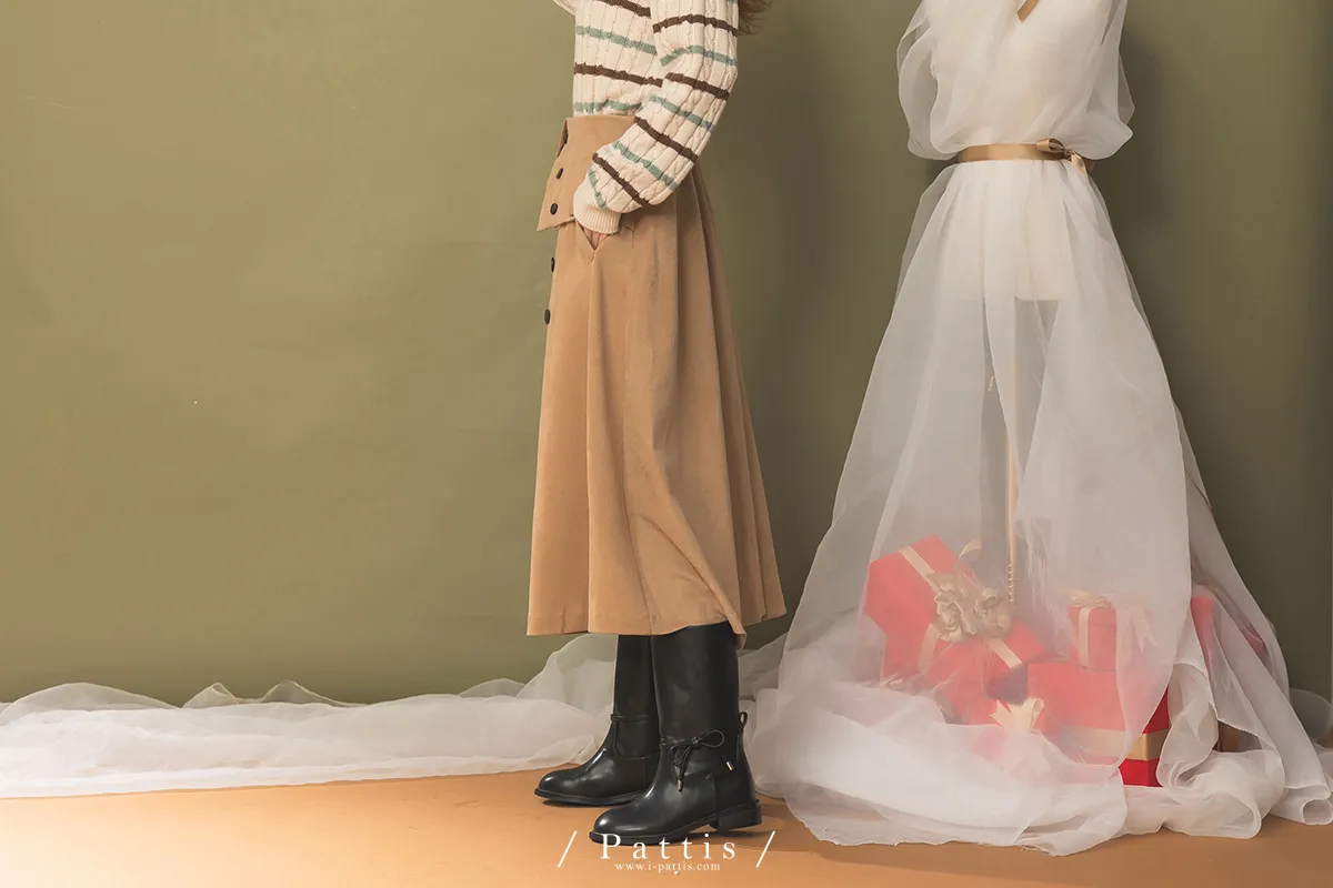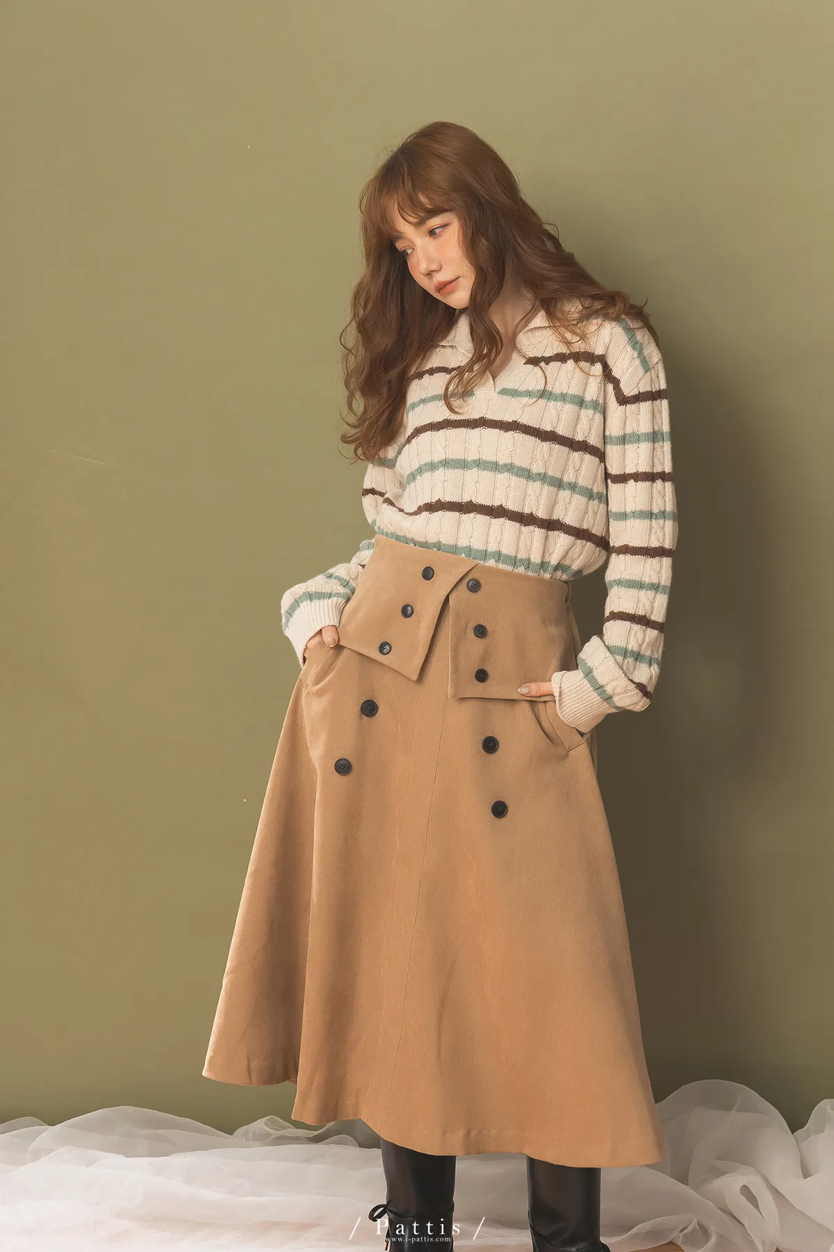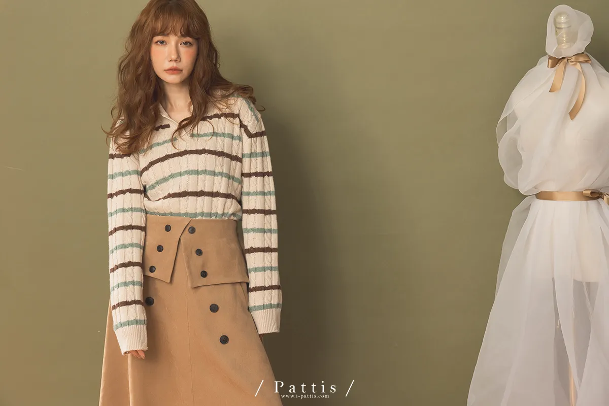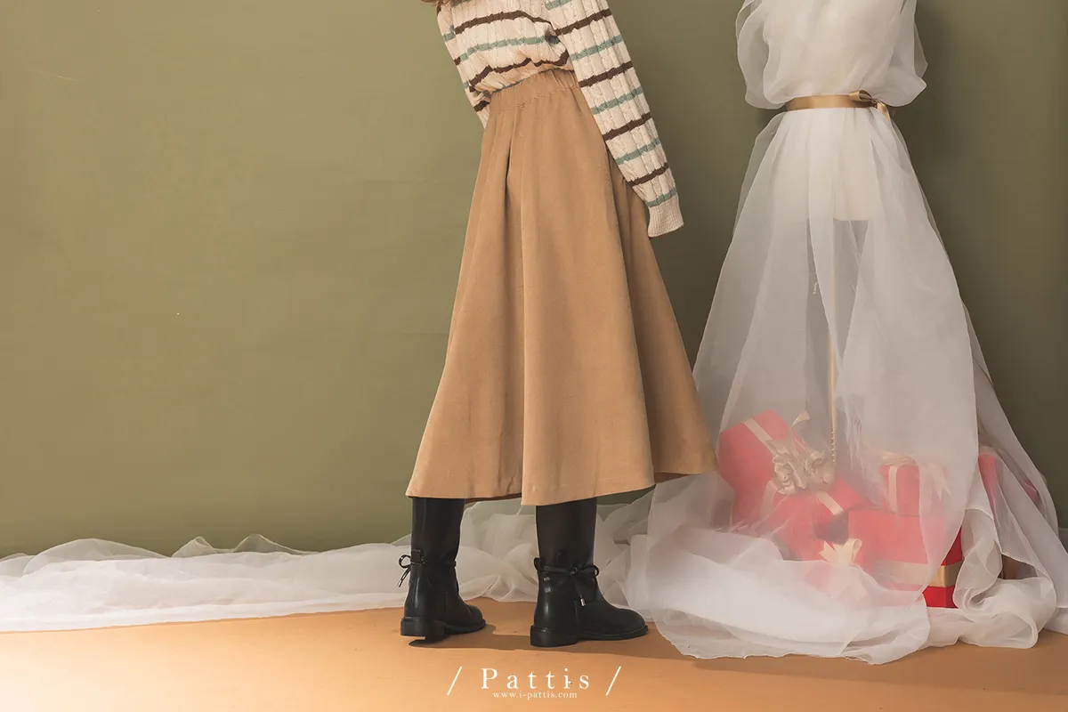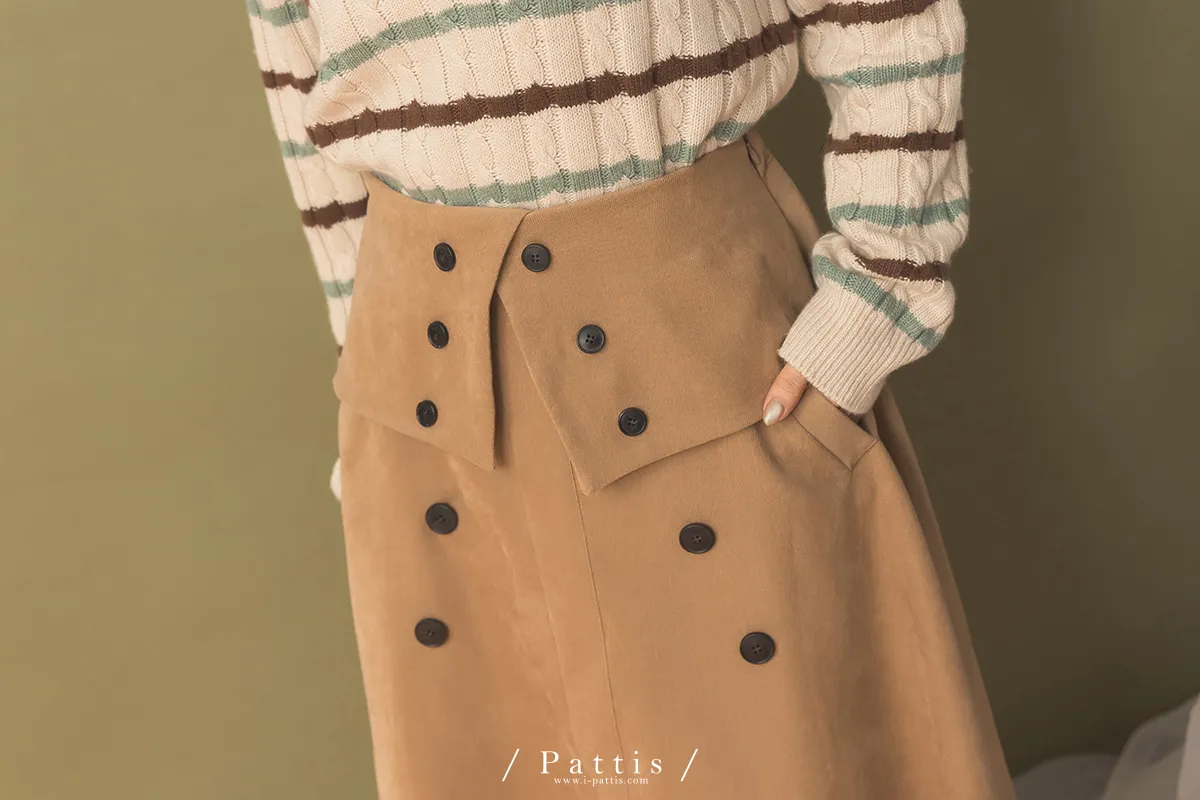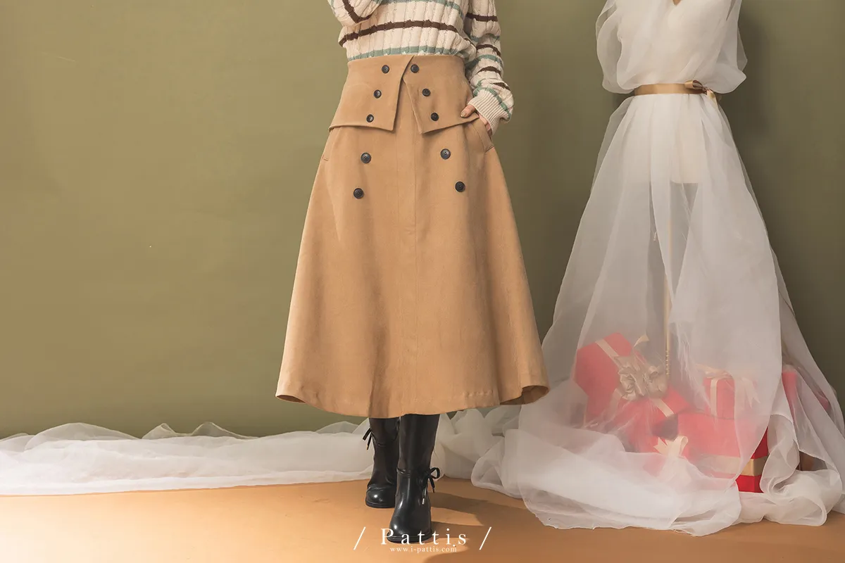 法式早午餐是必須 | 雙排釦麂皮翻摺傘裙(棕)