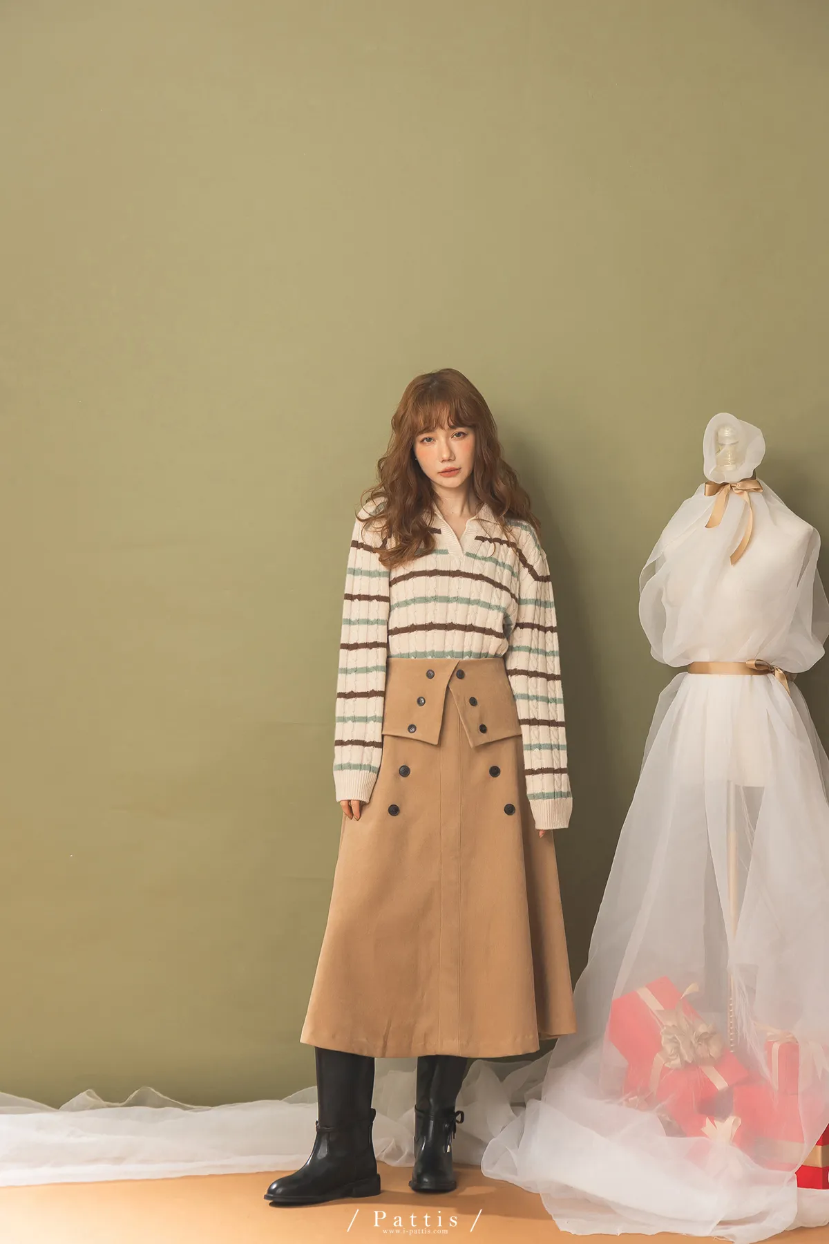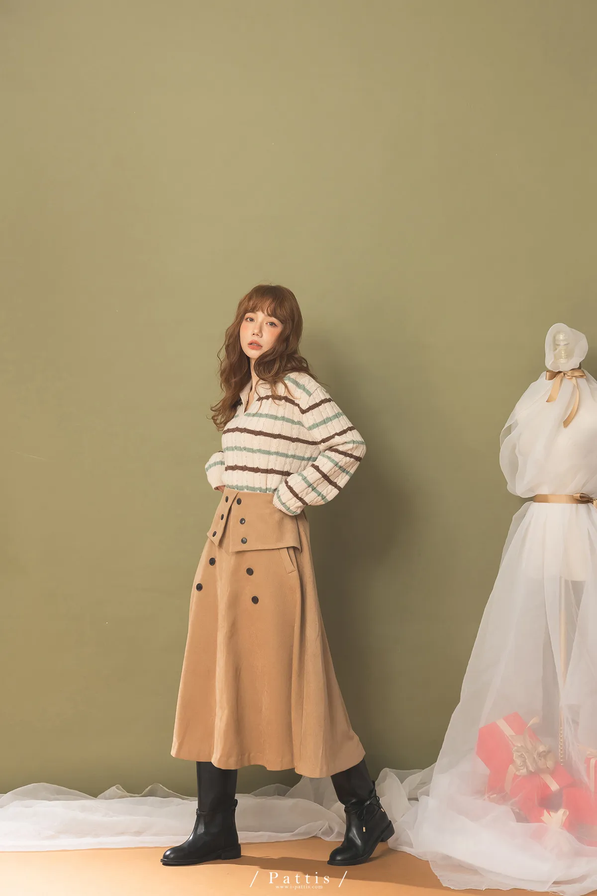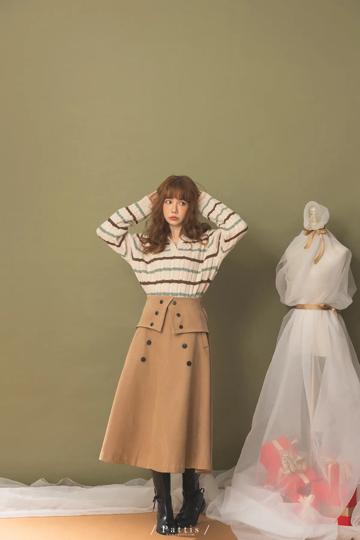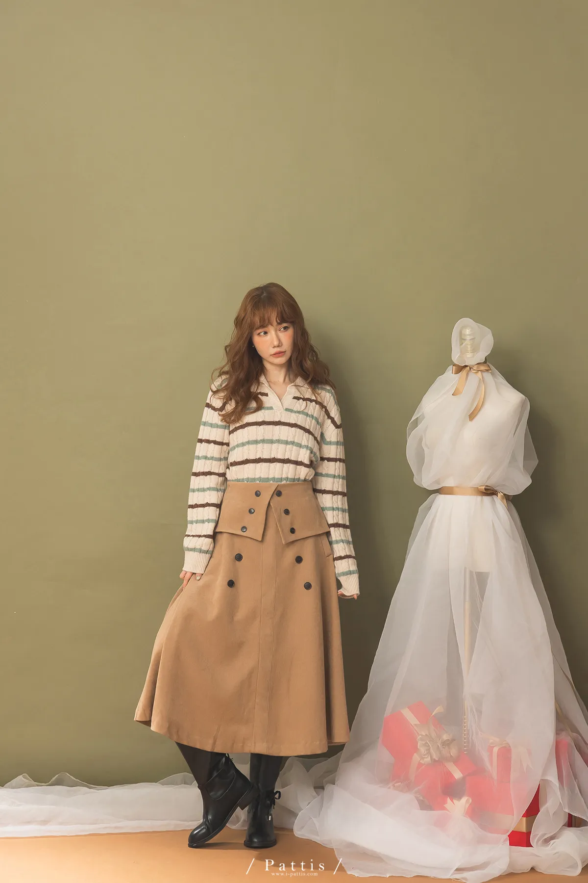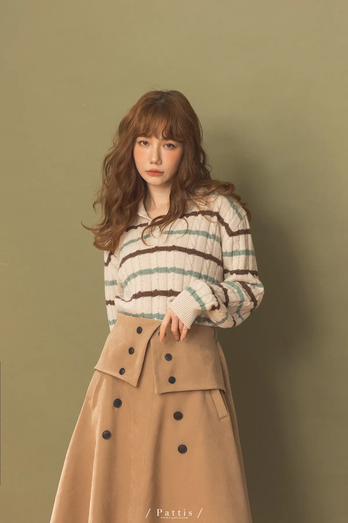 法式早午餐是必須 | 雙排釦麂皮翻摺傘裙(棕)