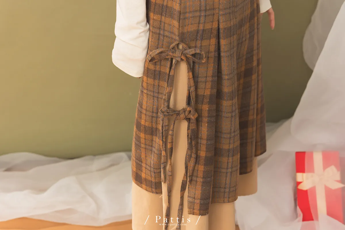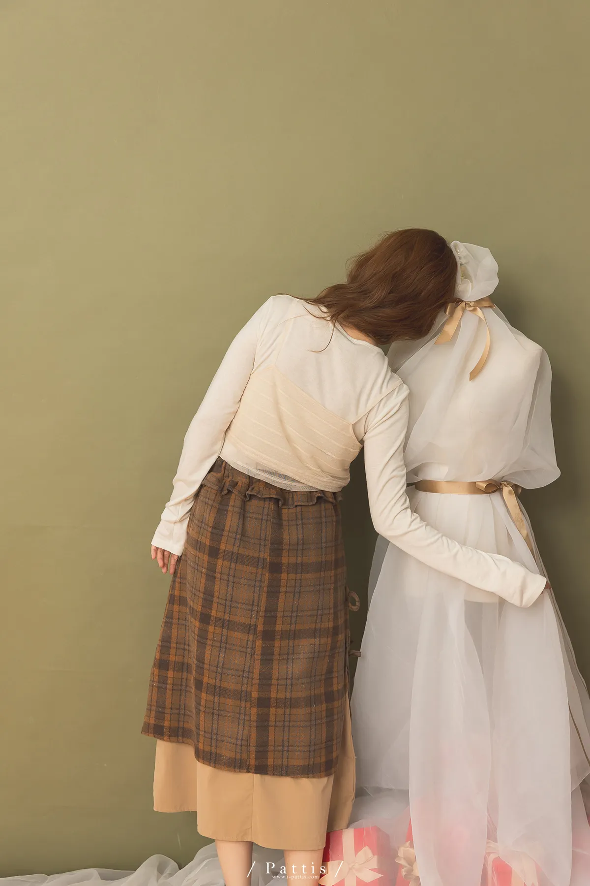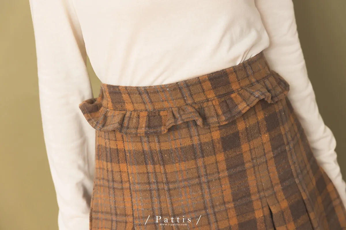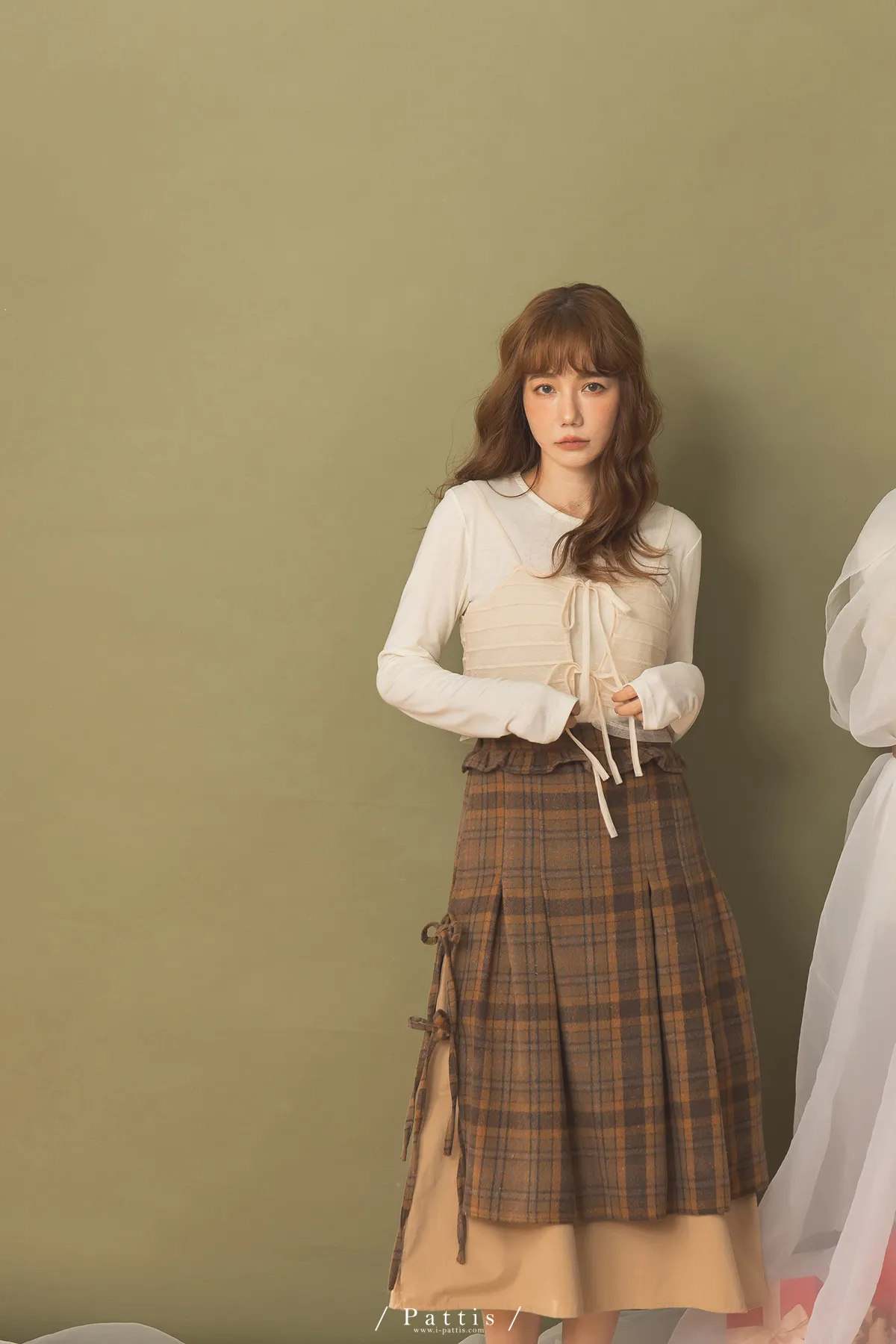 太妃糖包裝紙 | 雙層抓皺格紋綁帶傘裙(棕)