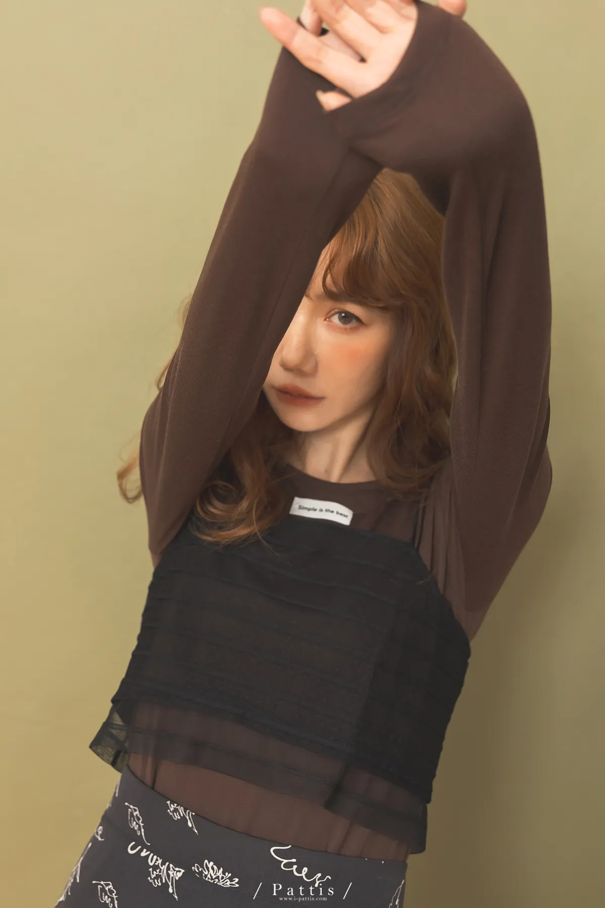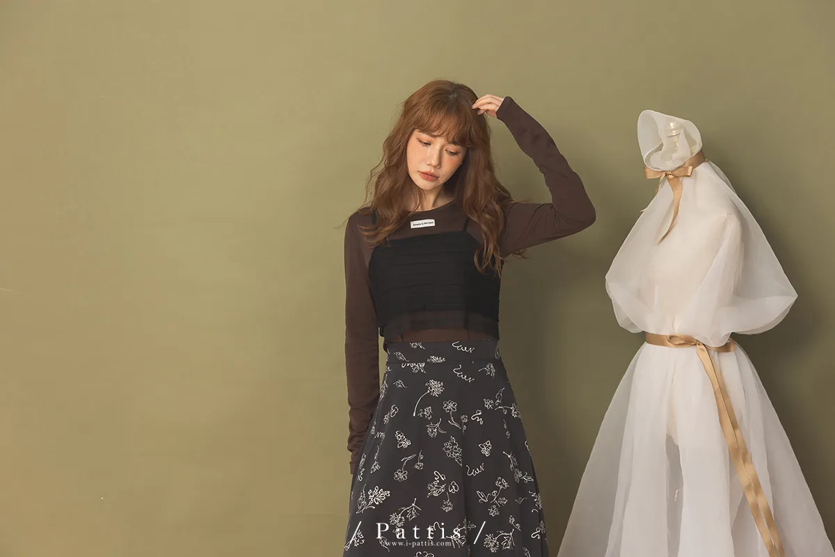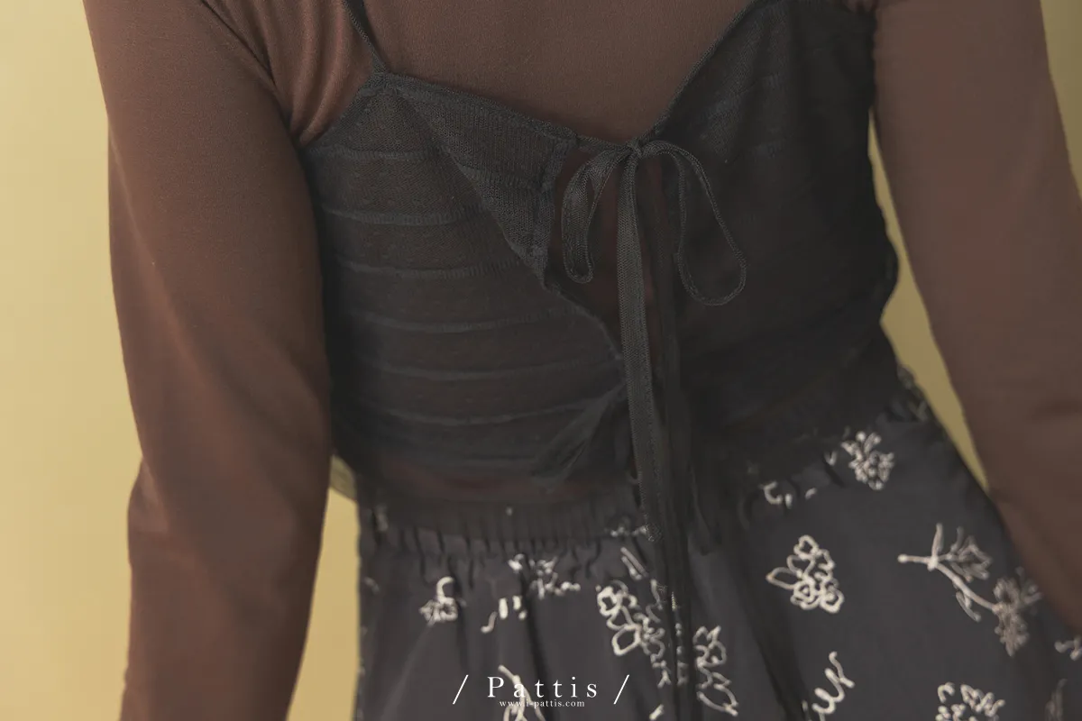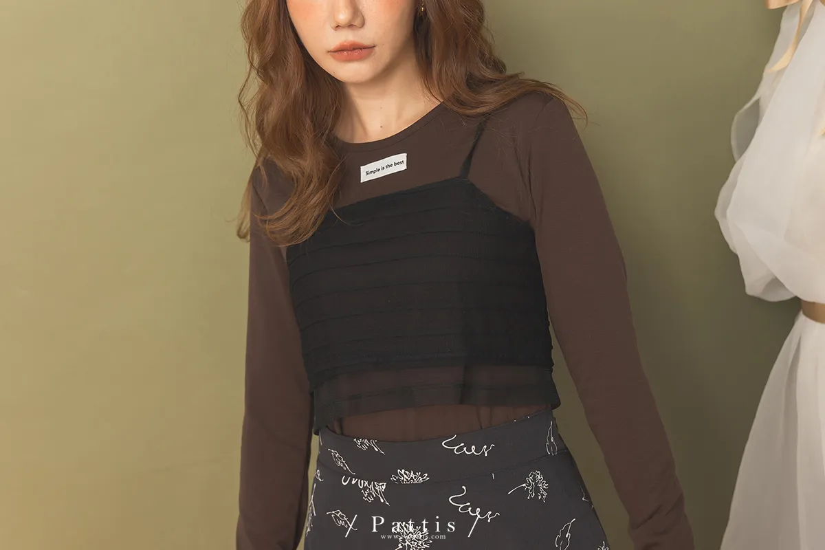 自信是暖光 | 透肌感上衣+綁帶背心set組(咖黑)