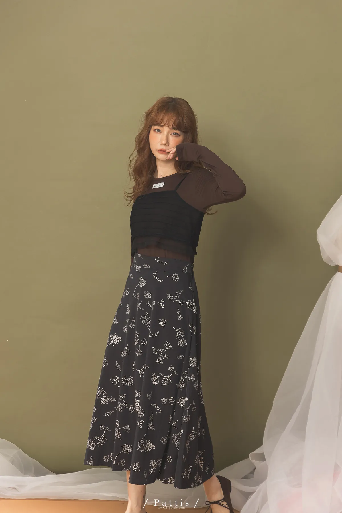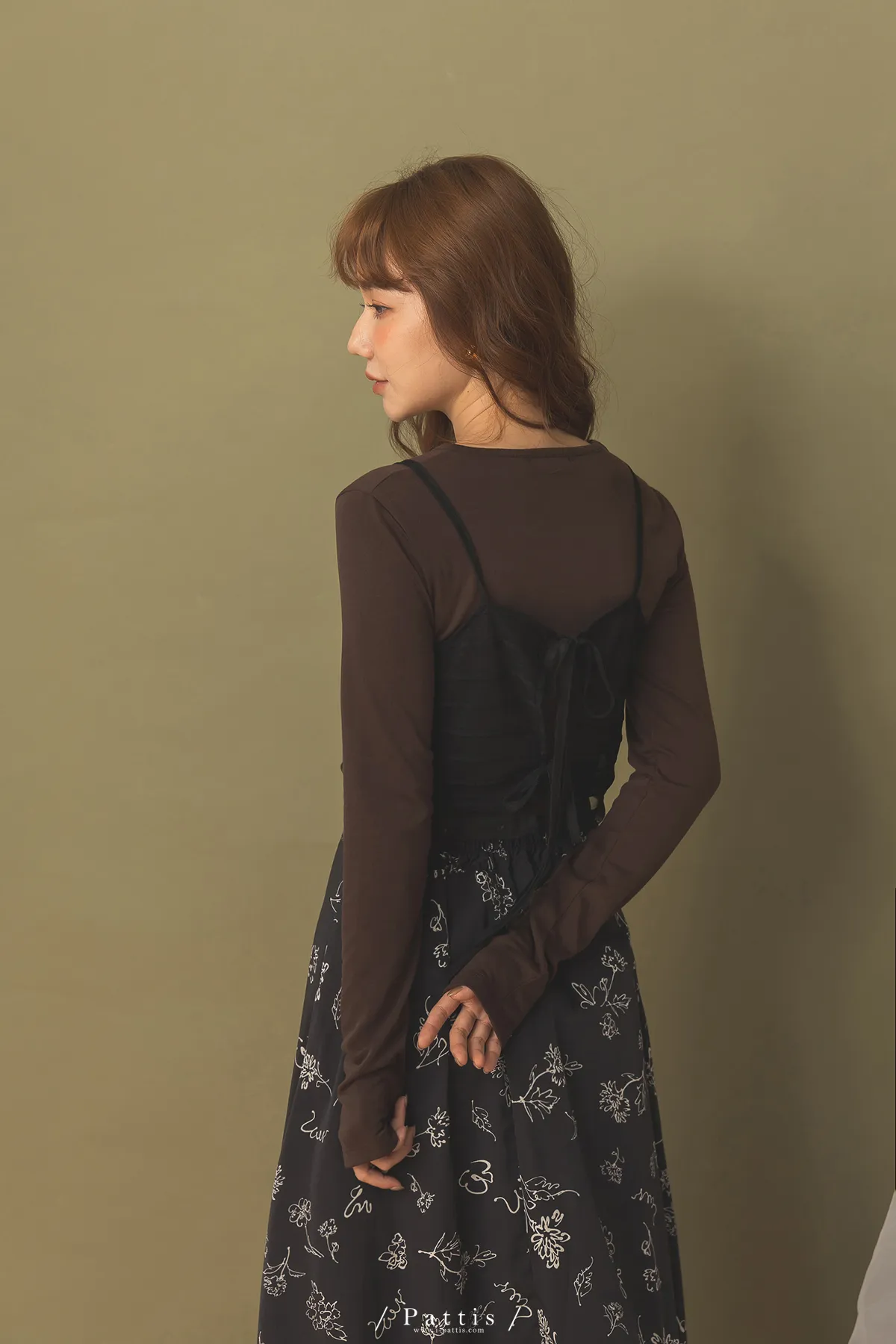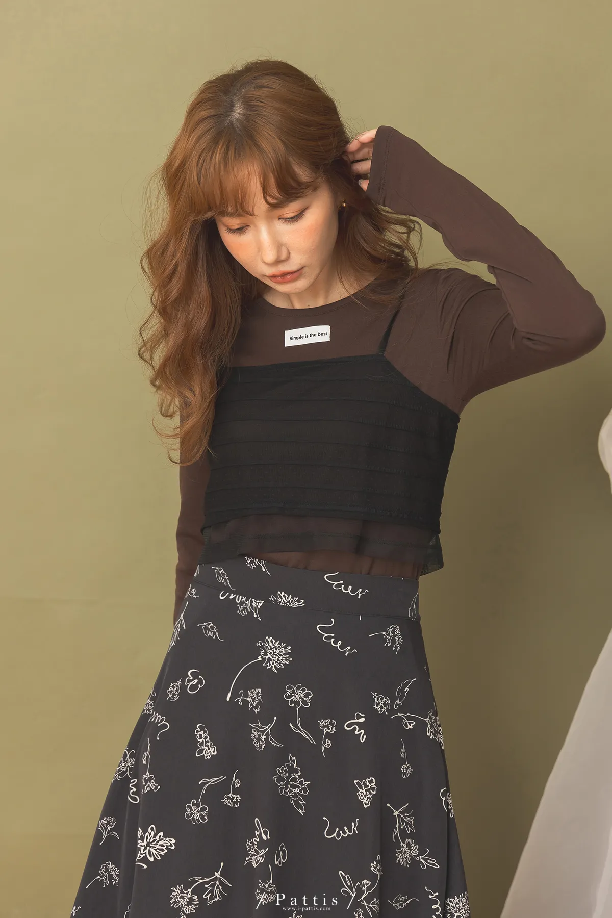 自信是暖光 | 透肌感上衣+綁帶背心set組(咖黑)