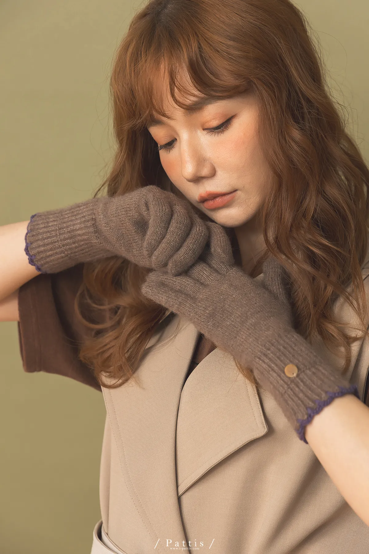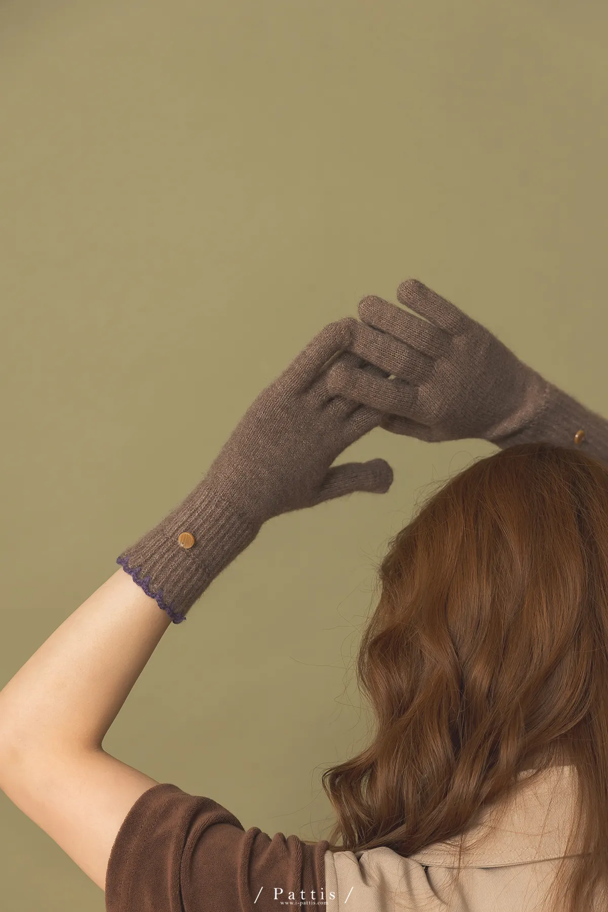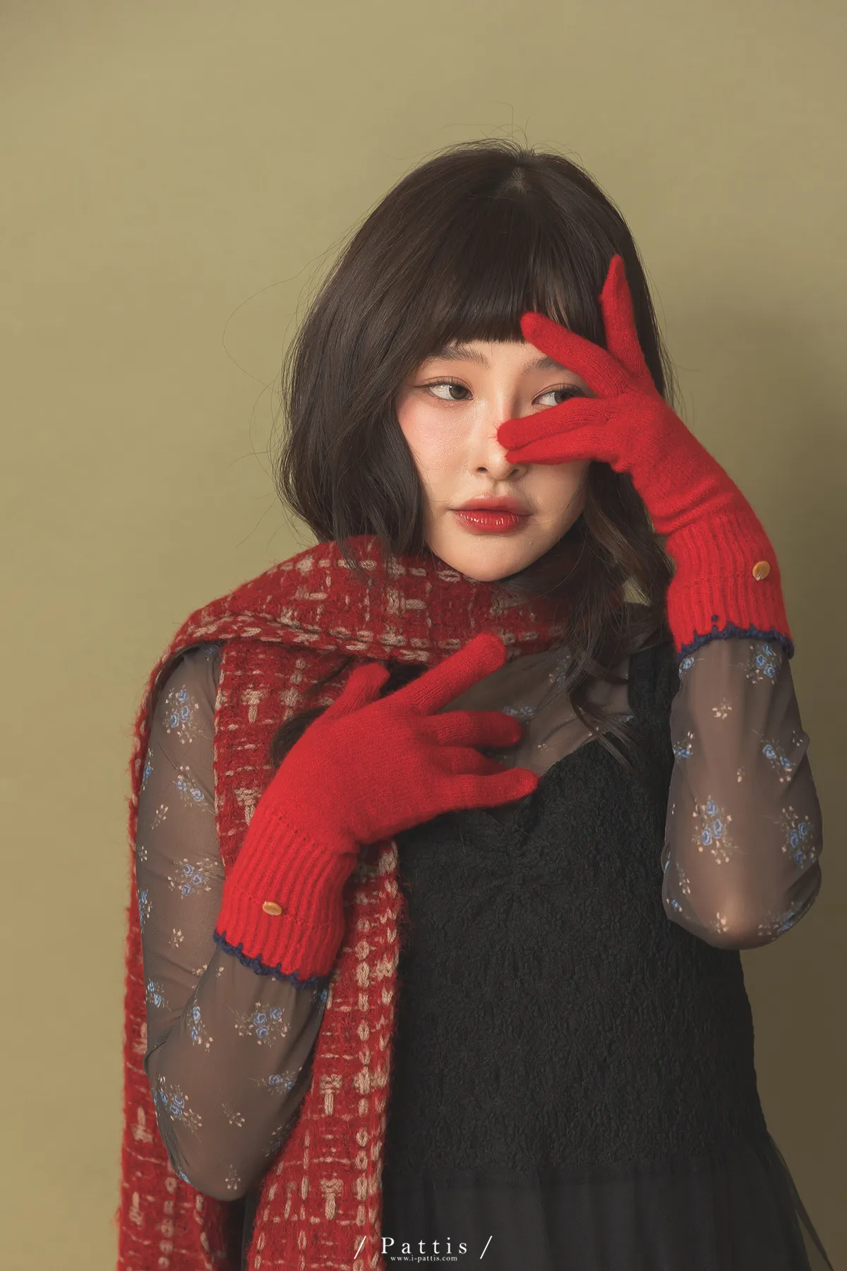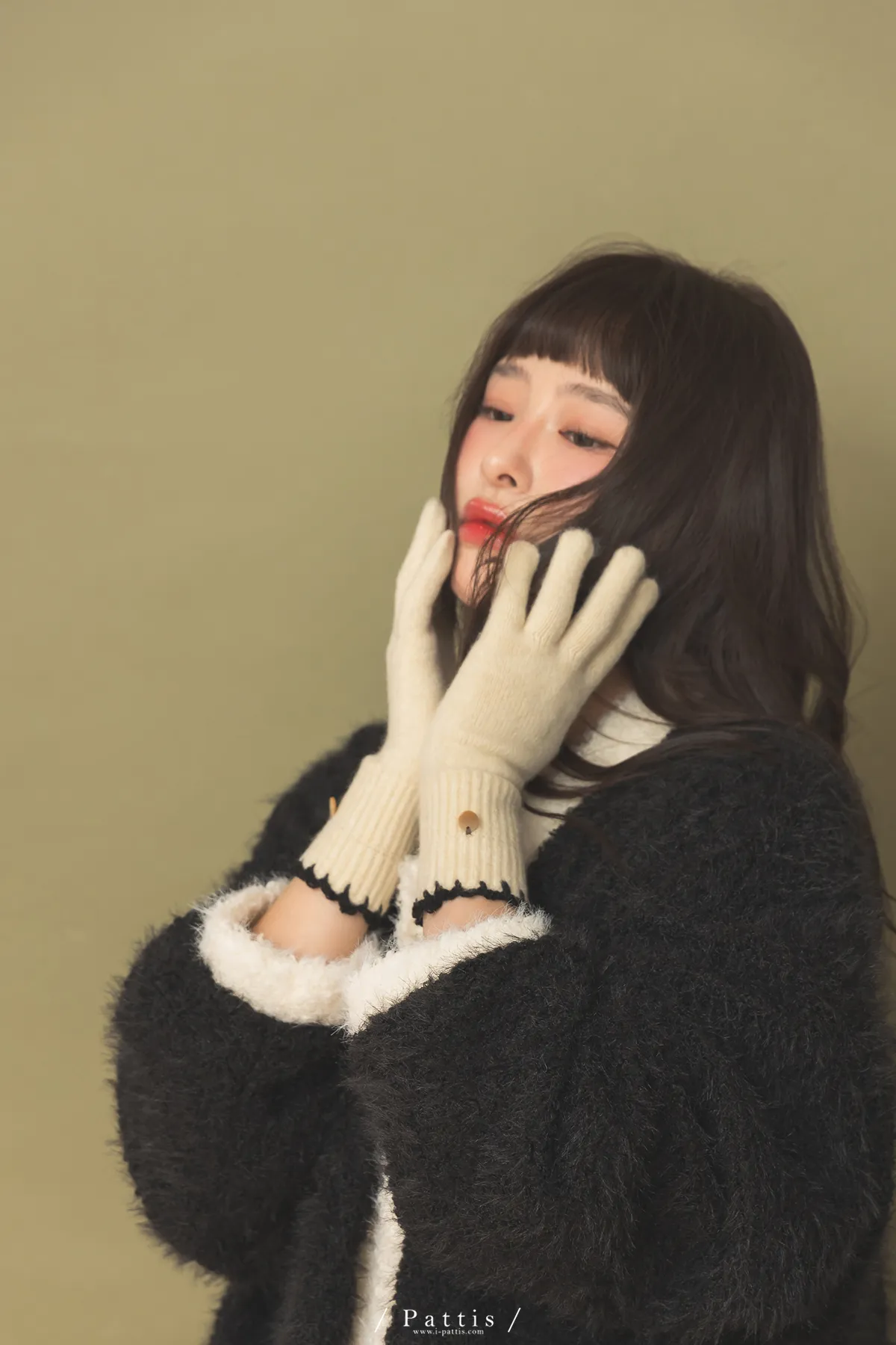 花瓣滾邊雙色羊毛不刺癢手套(奶白/棕/綠/紅/黑)