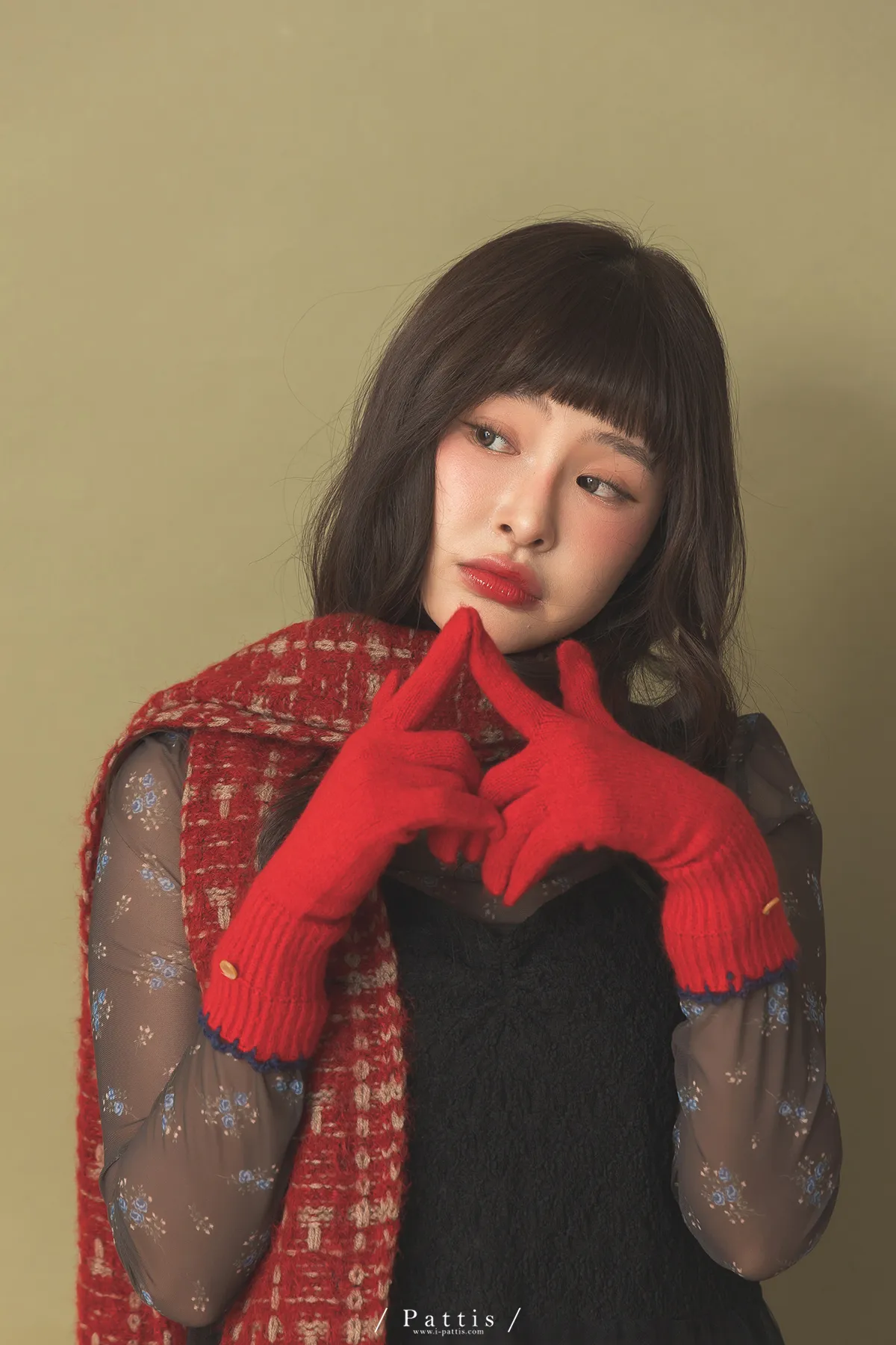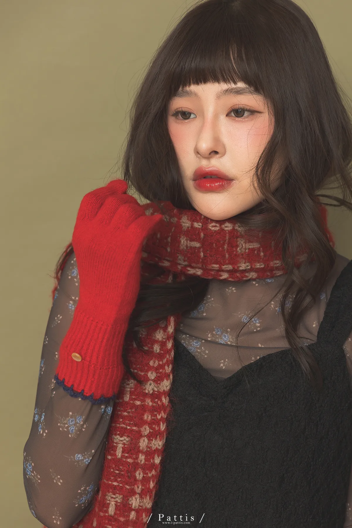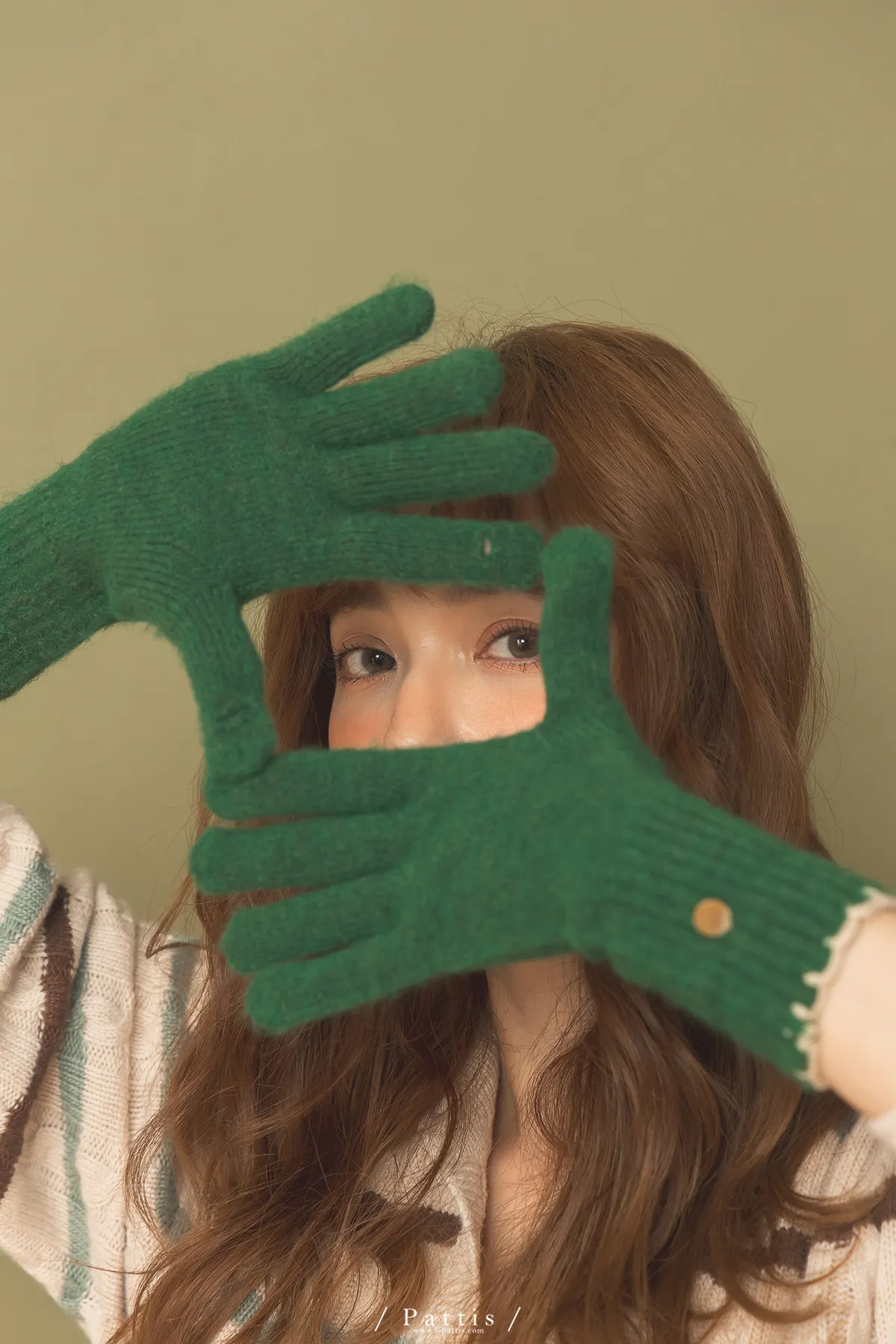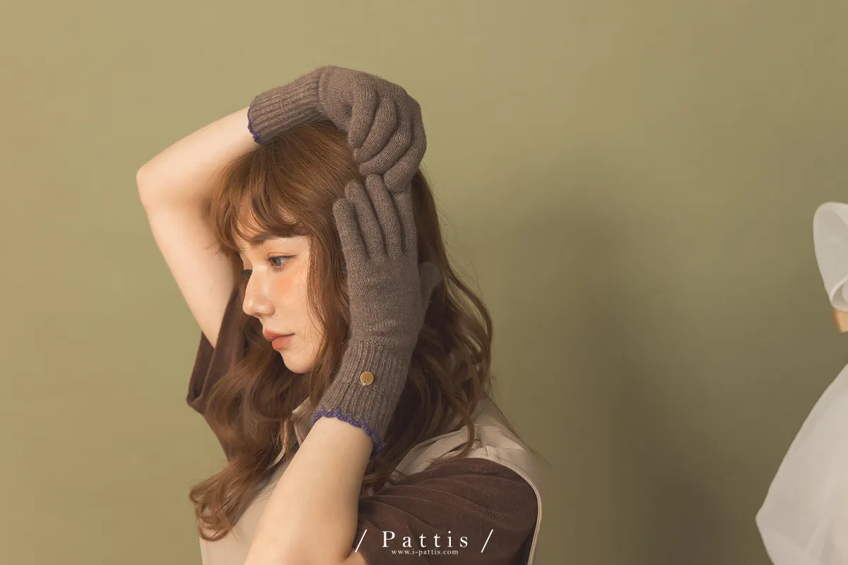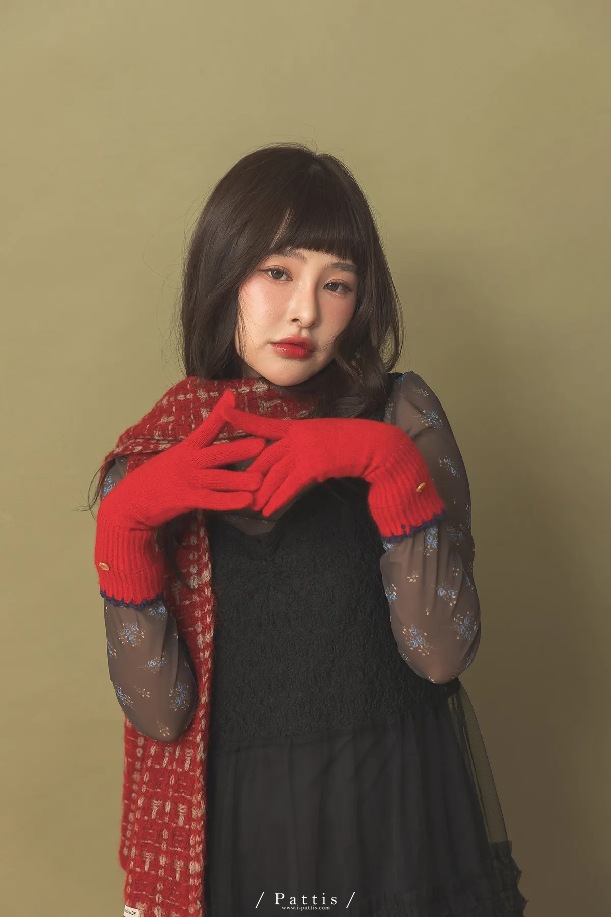 花瓣滾邊雙色羊毛不刺癢手套(奶白/棕/綠/紅/黑)