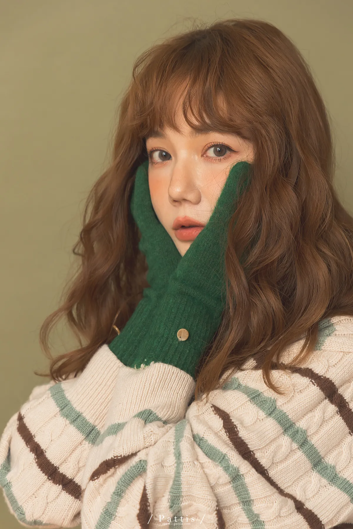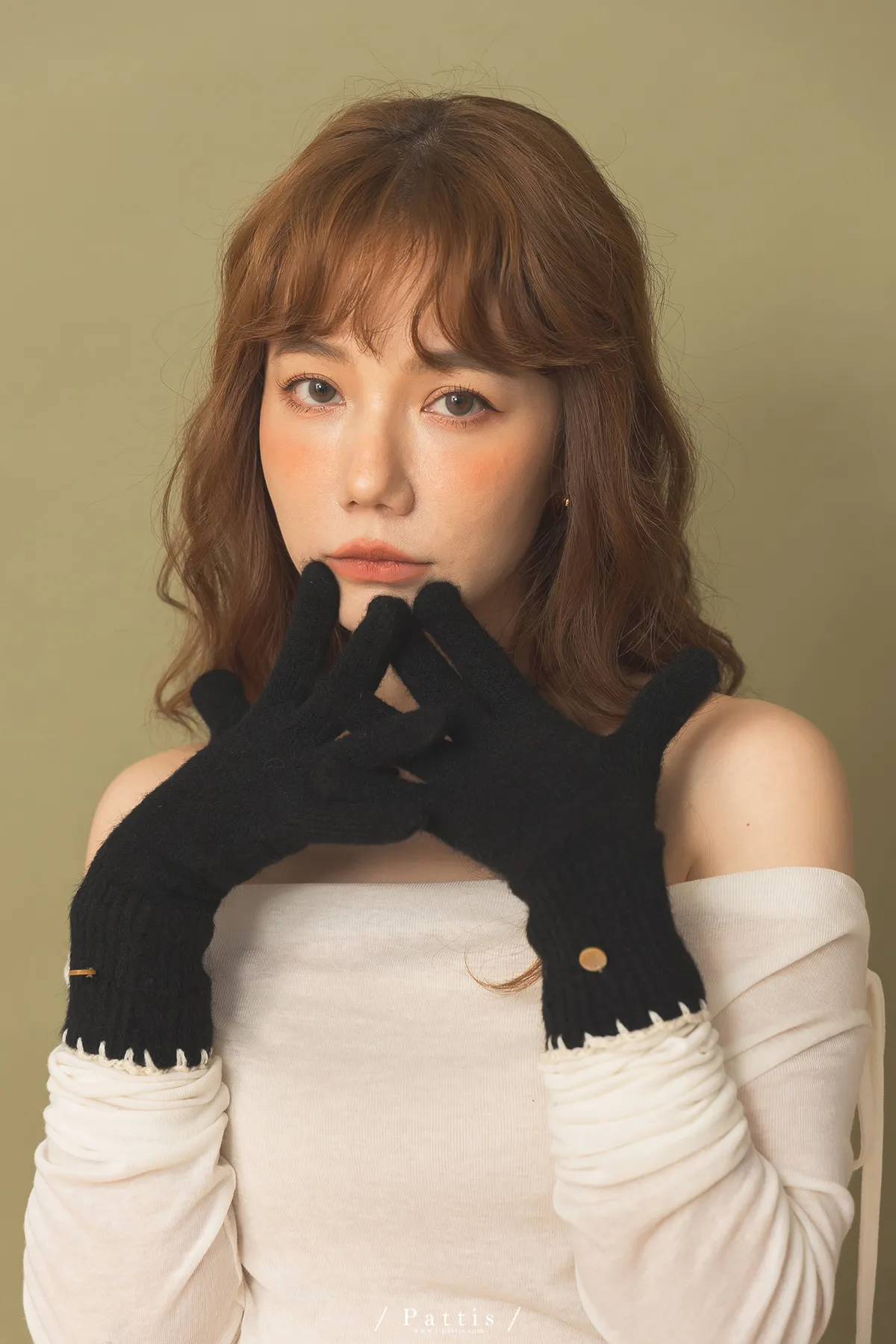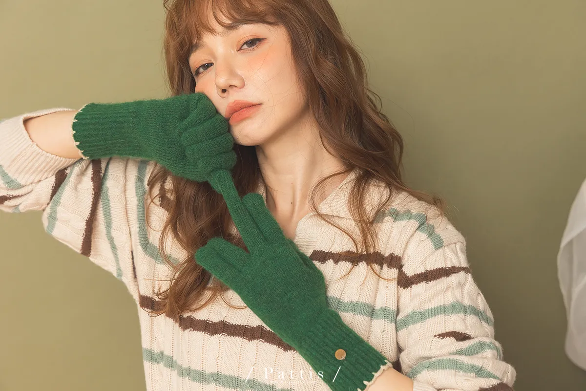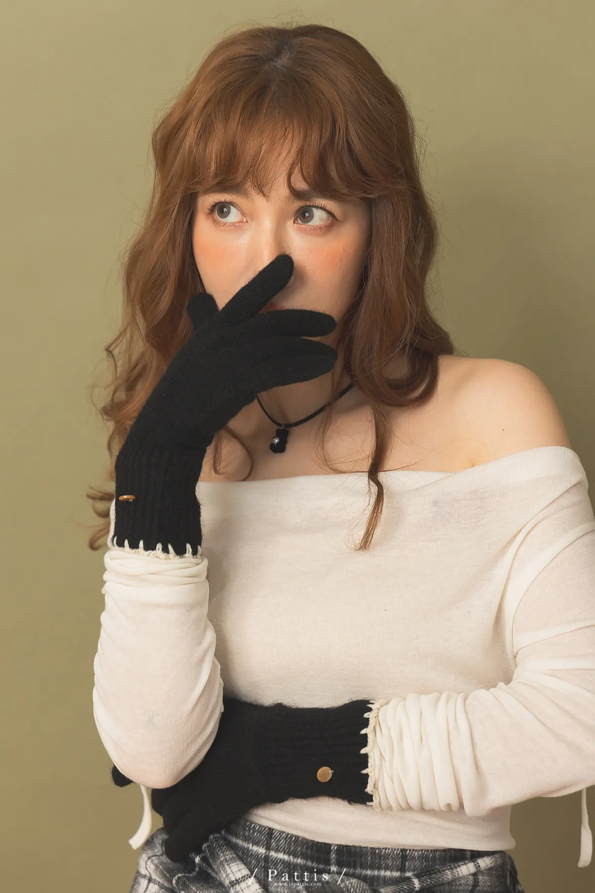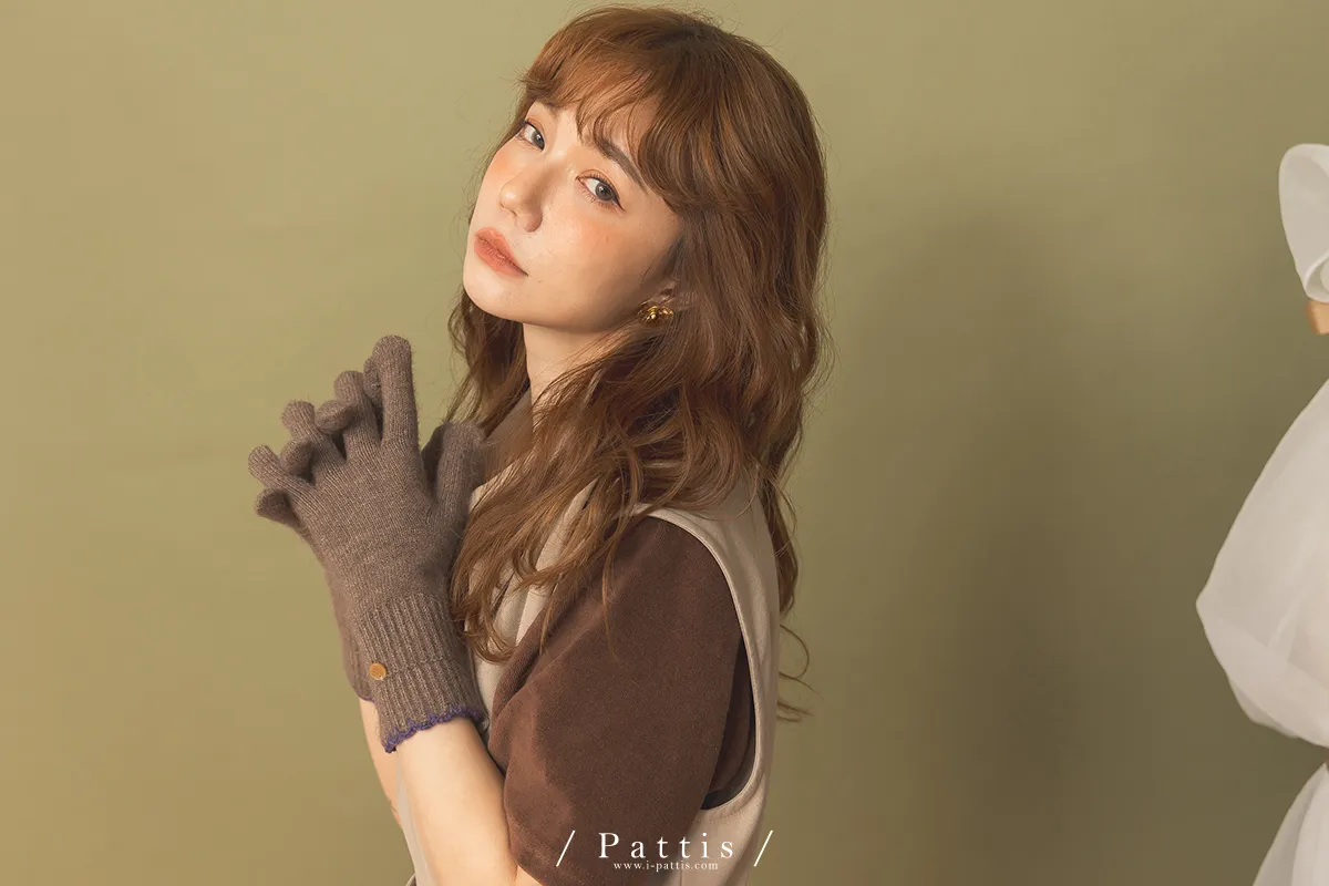 花瓣滾邊雙色羊毛不刺癢手套(奶白/棕/綠/紅/黑)