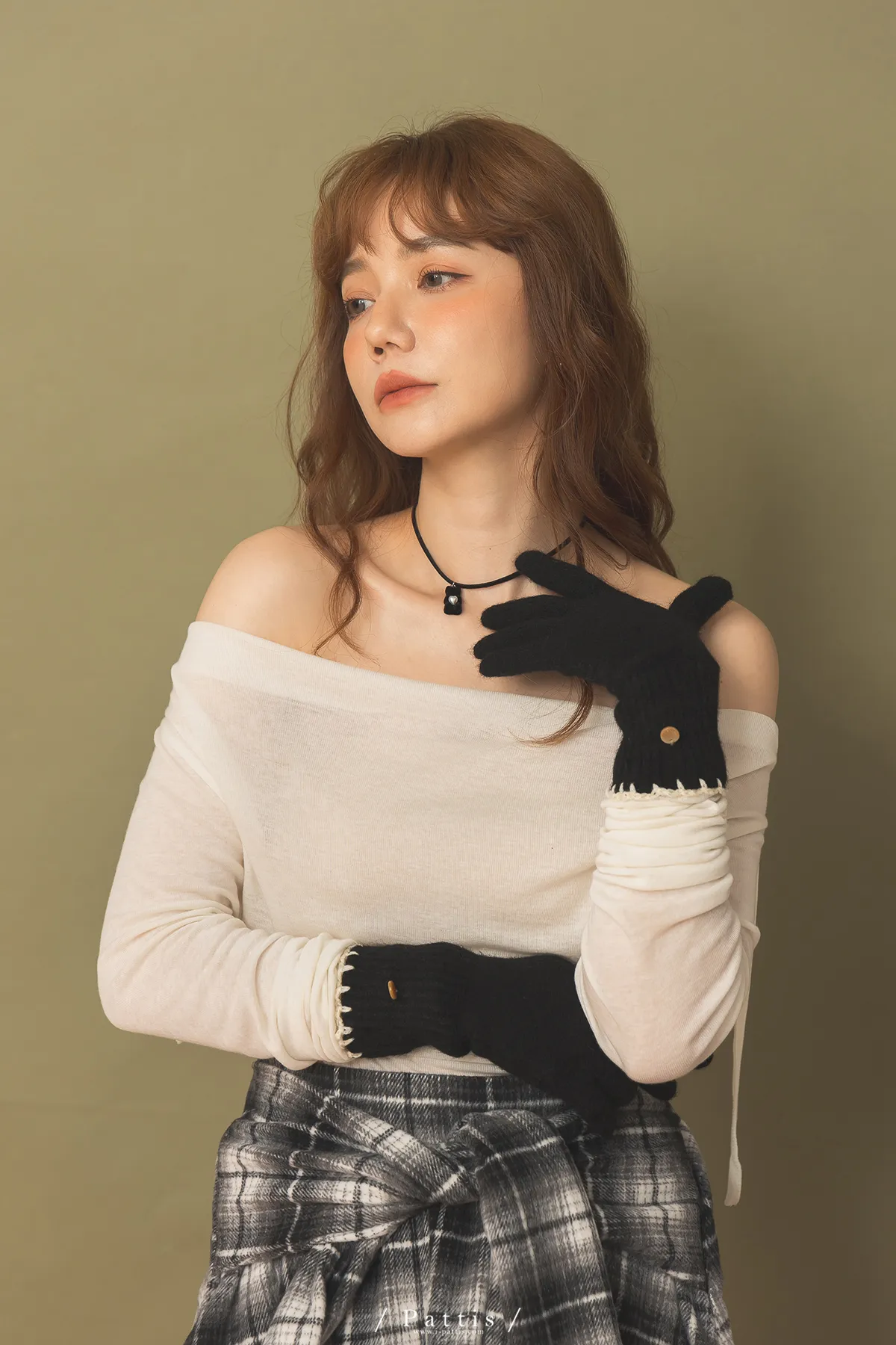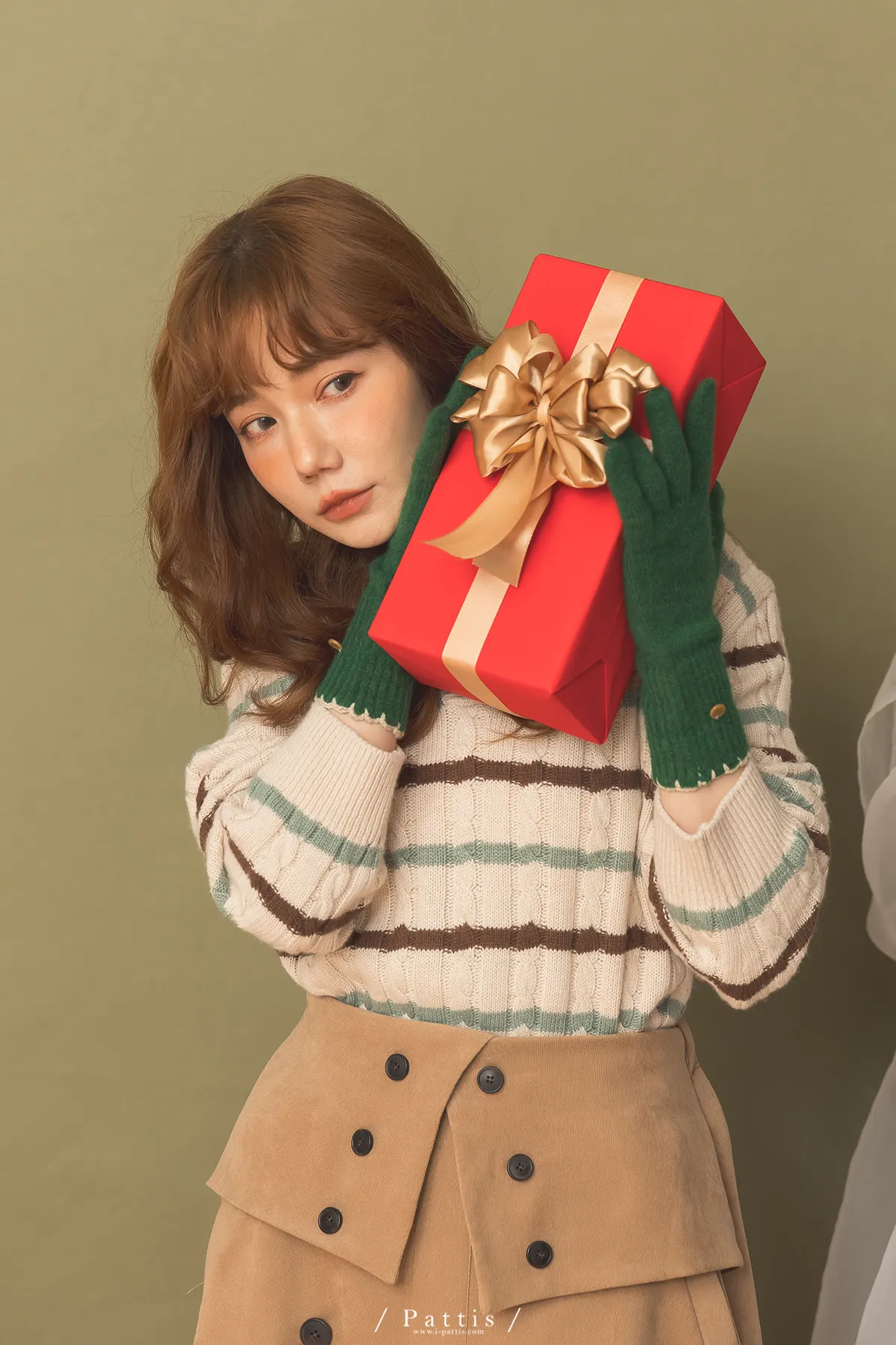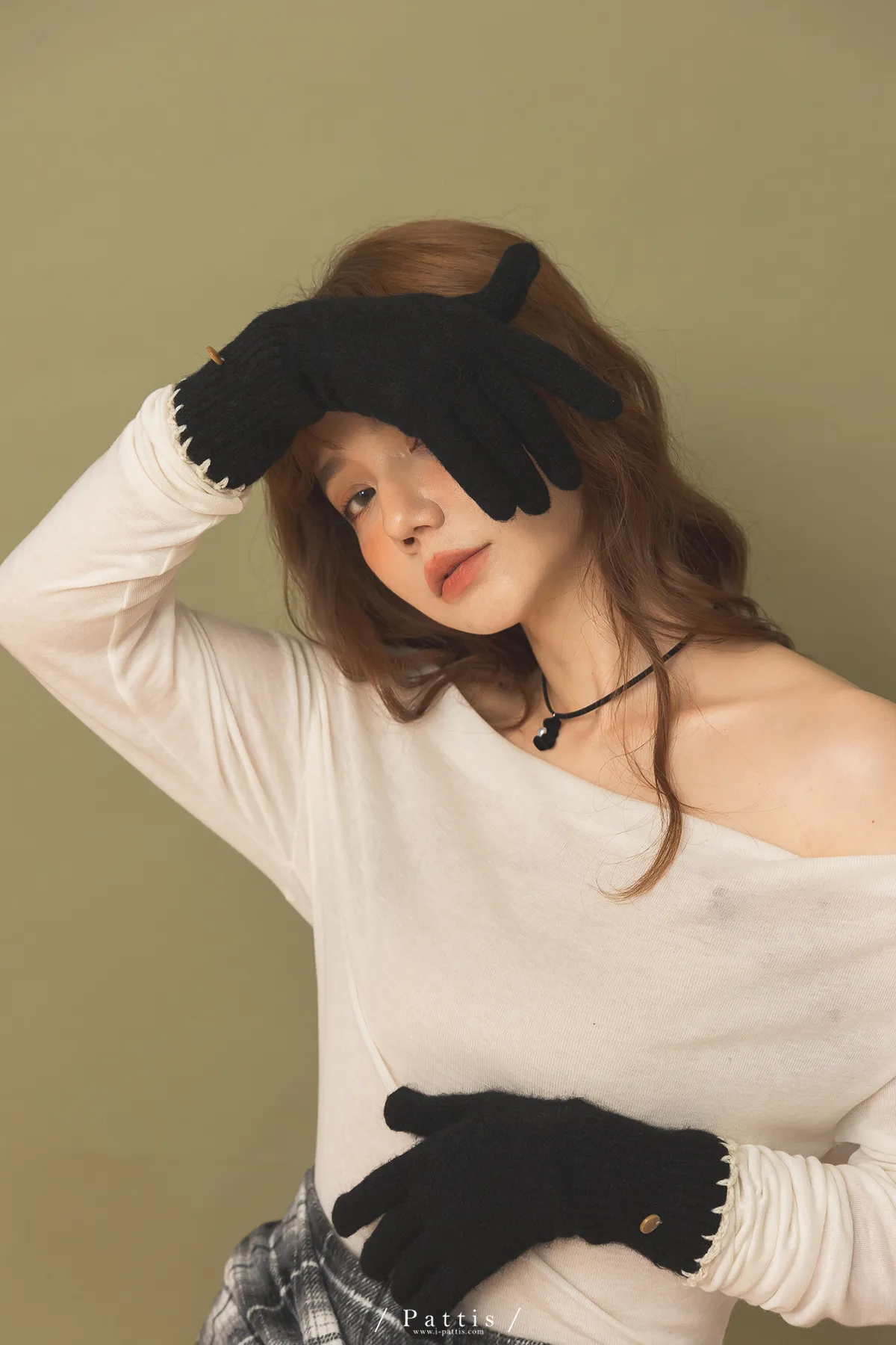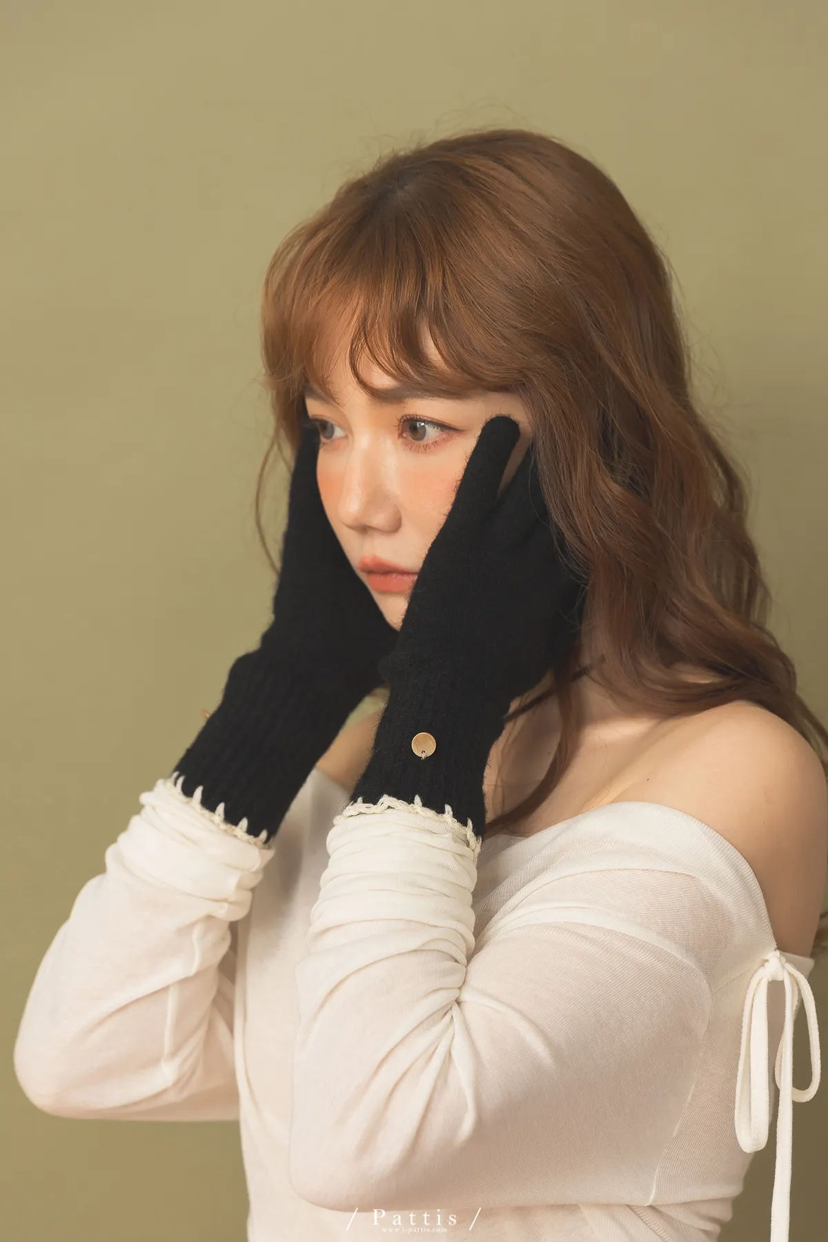 花瓣滾邊雙色羊毛不刺癢手套(奶白/棕/綠/紅/黑)