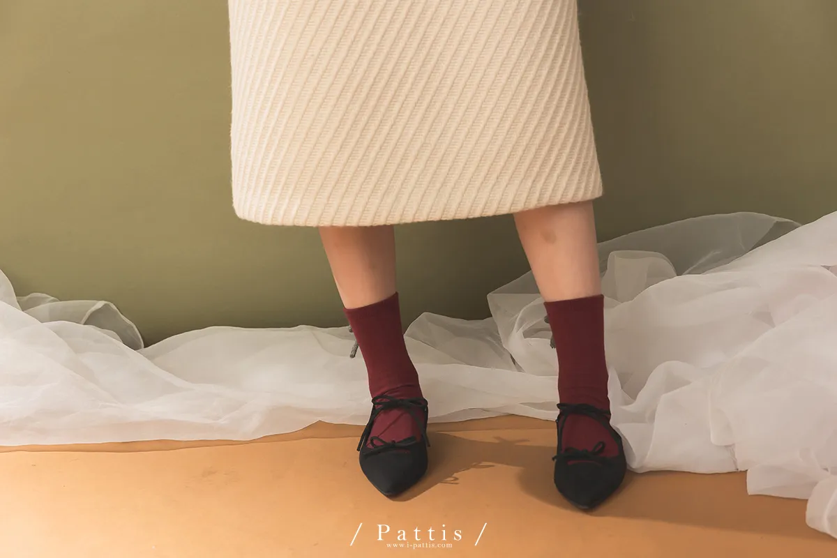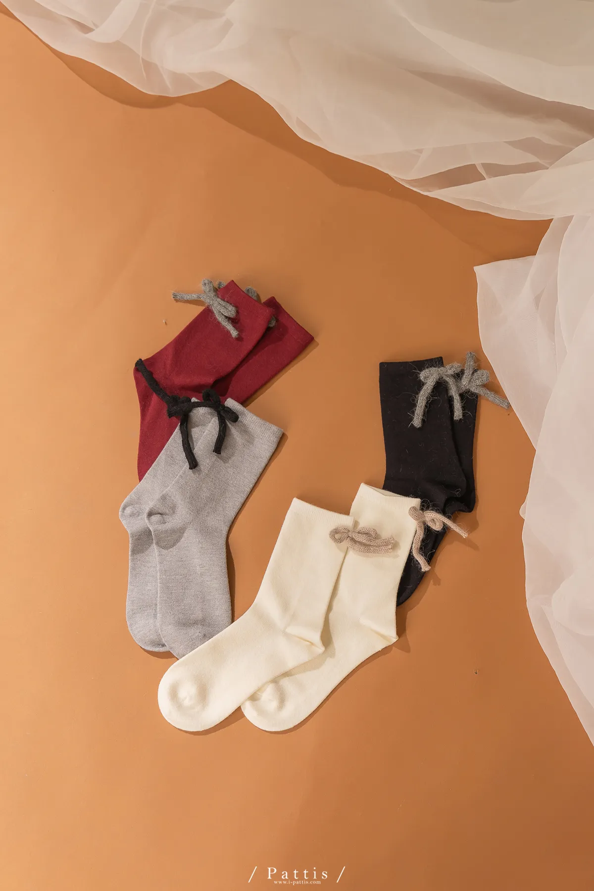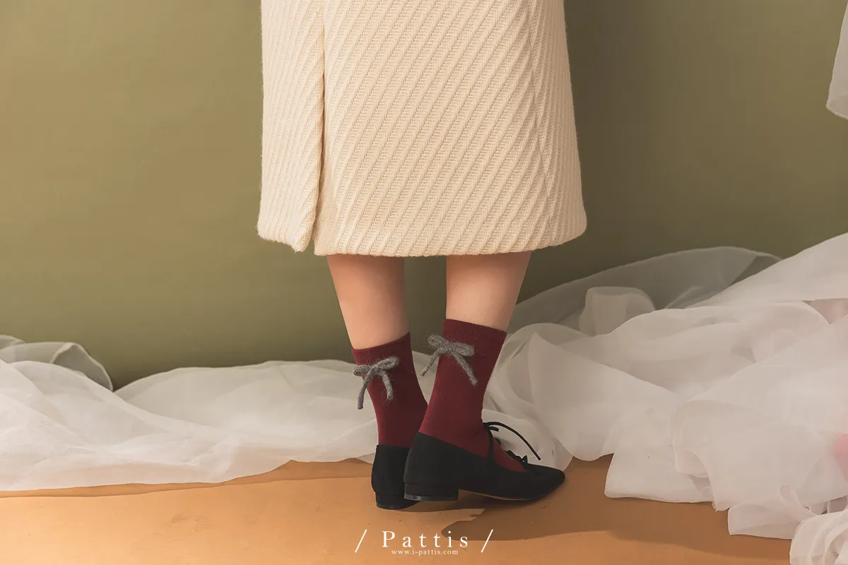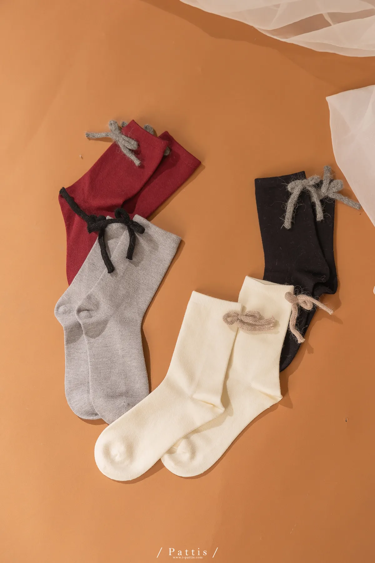 鉤針毛線蝴蝶結親膚厚短襪(米白/紅/灰/黑)