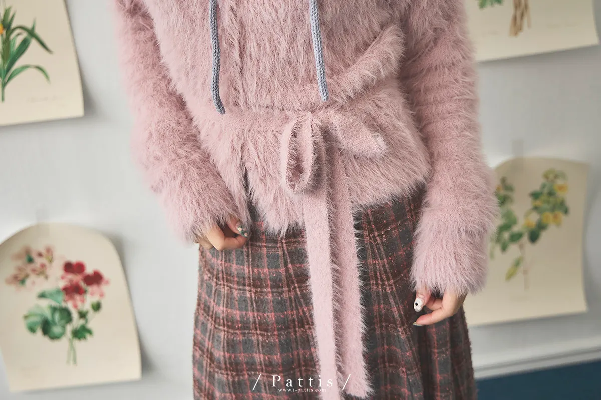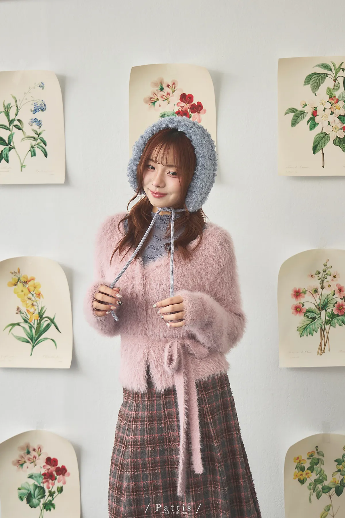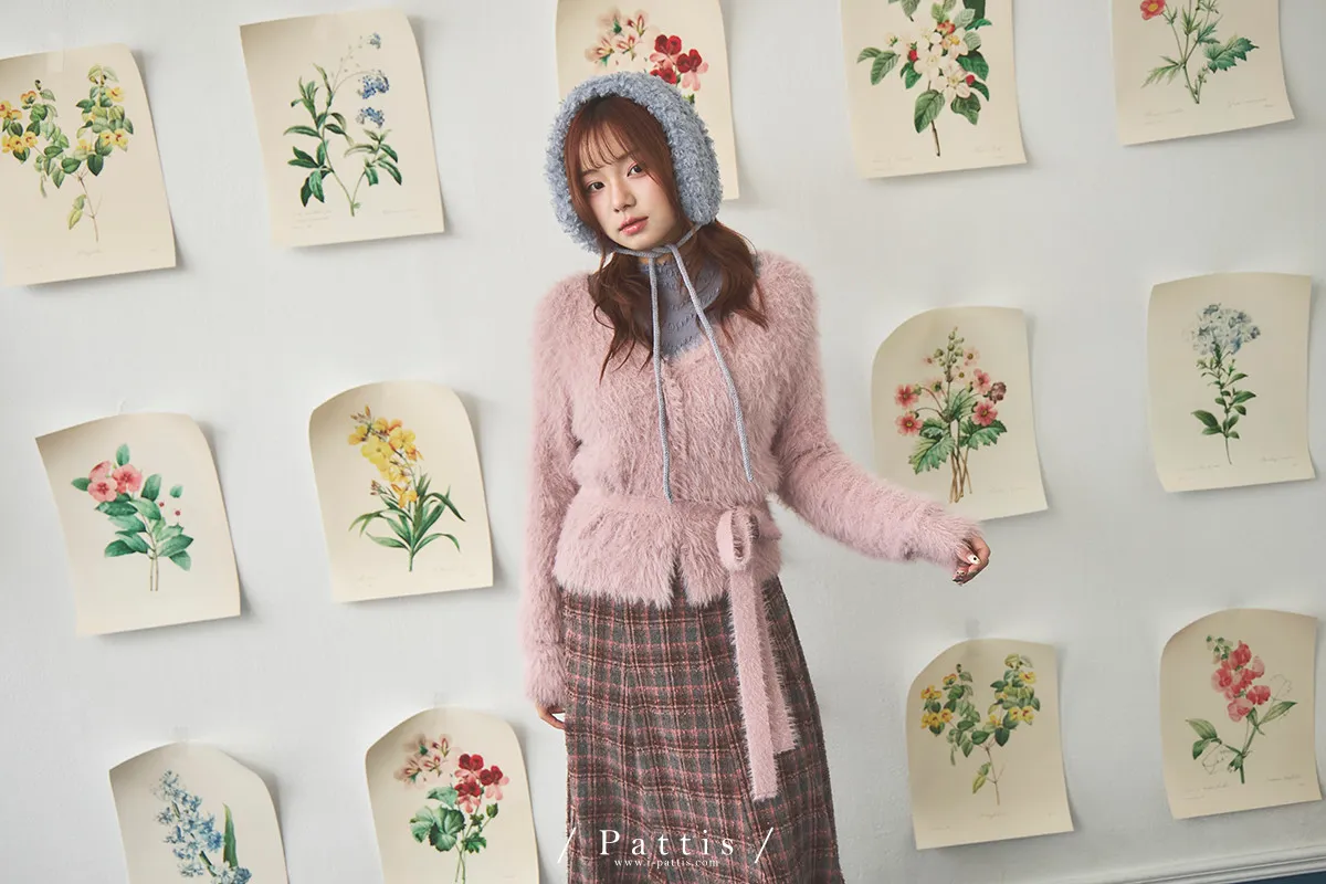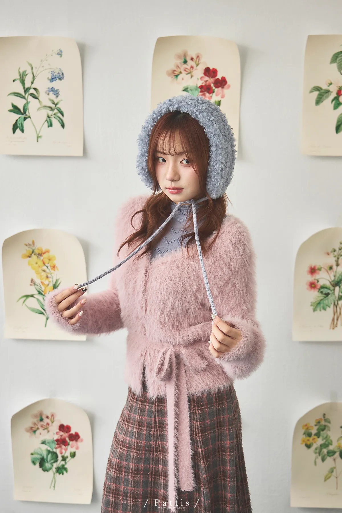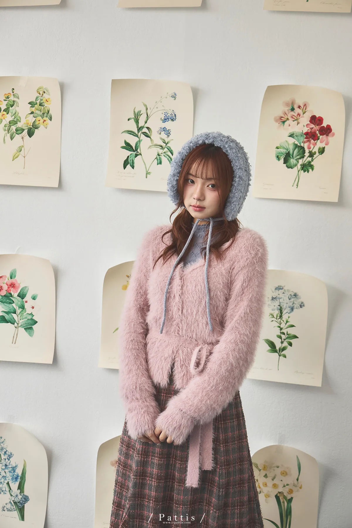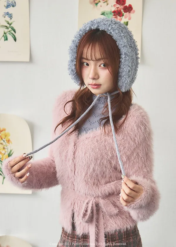 白日夢水果酒 | 附綁帶長毛V領鈕扣上衣外套(粉紫)