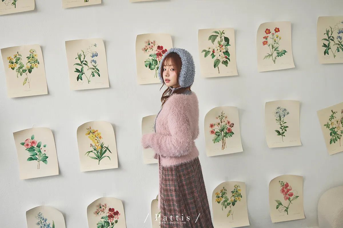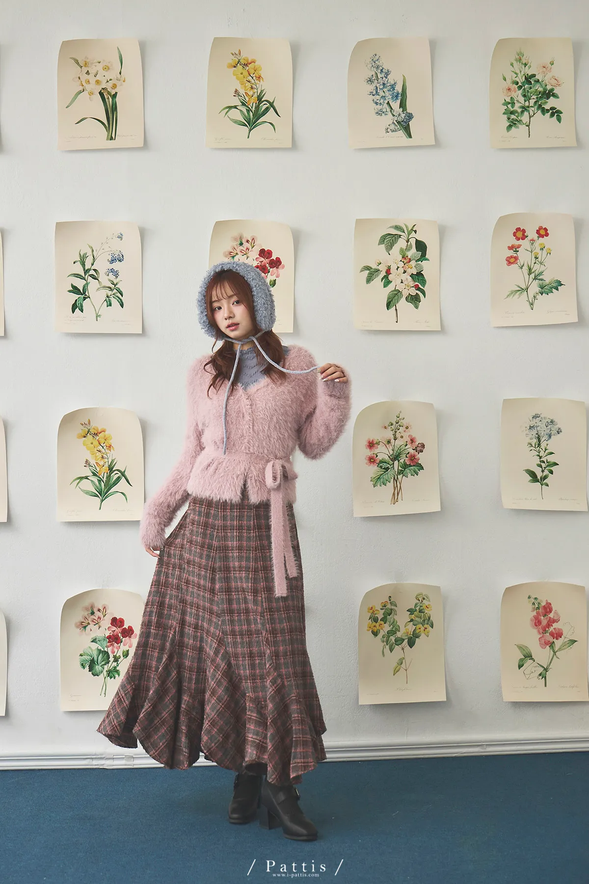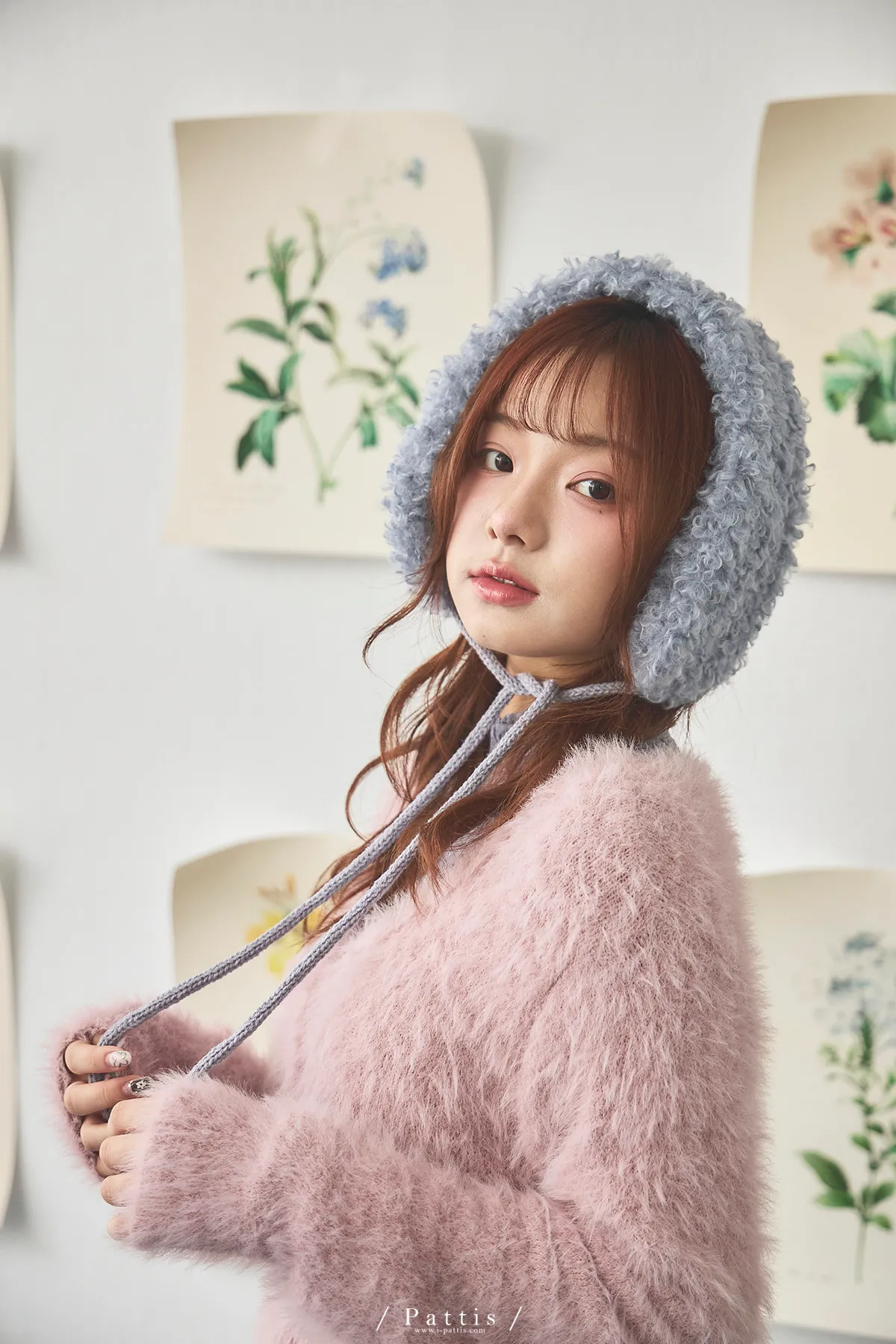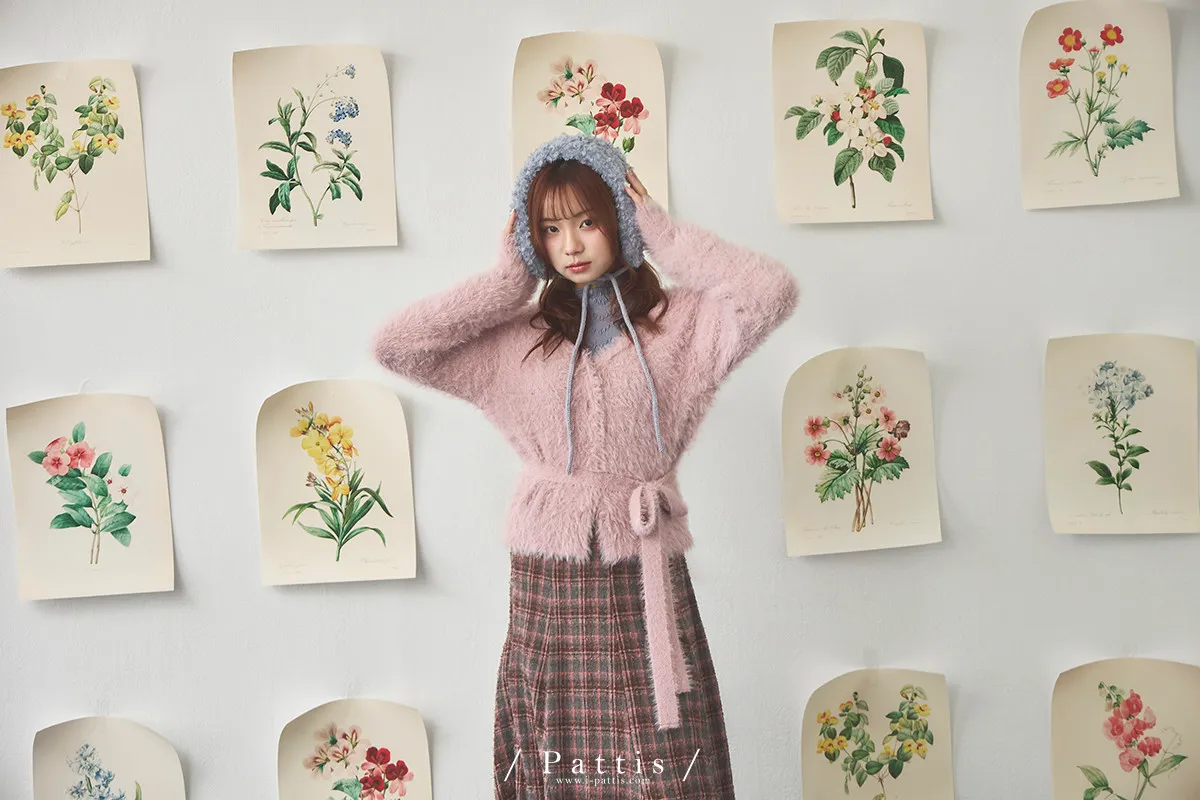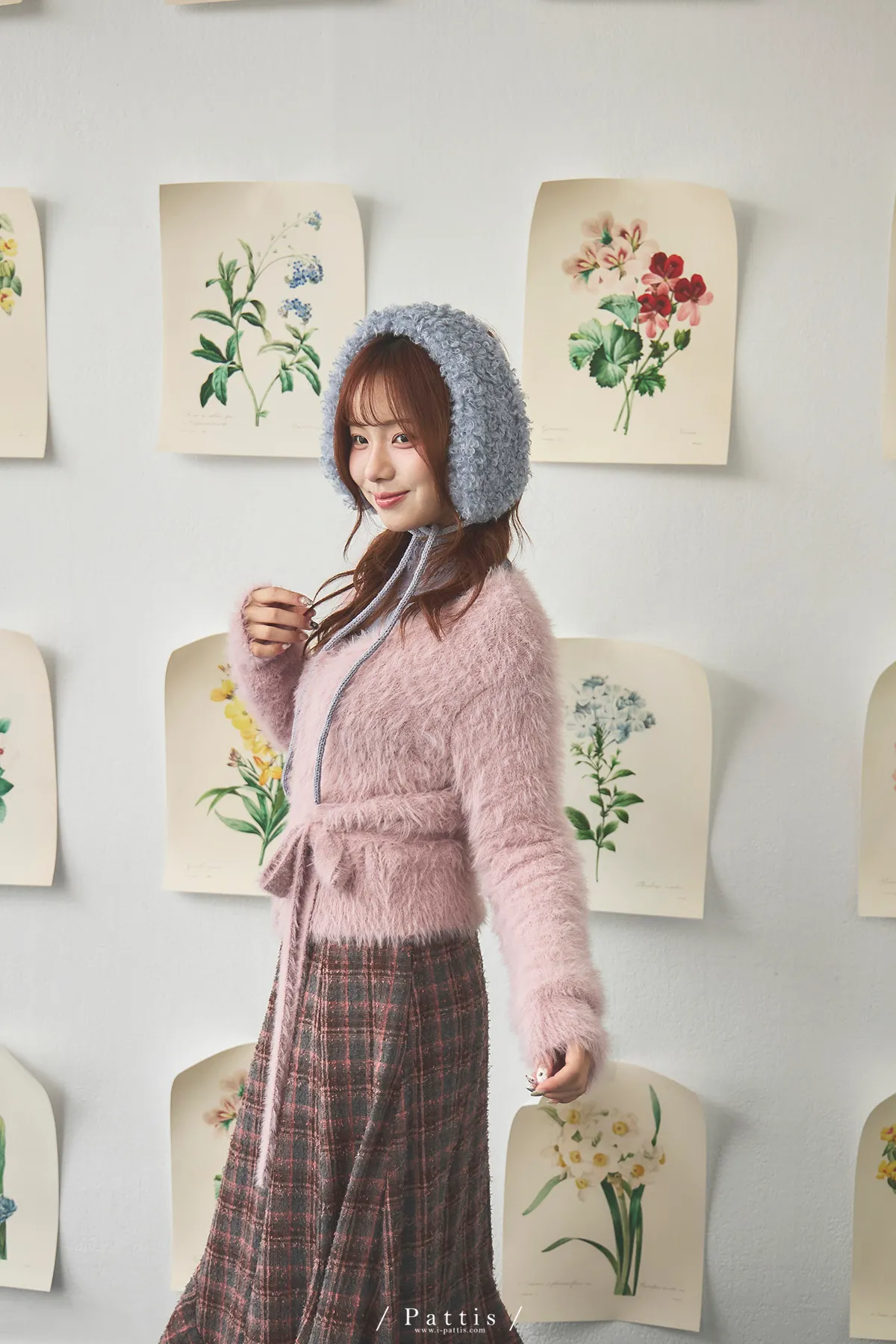 白日夢水果酒 | 附綁帶長毛V領鈕扣上衣外套(粉紫)