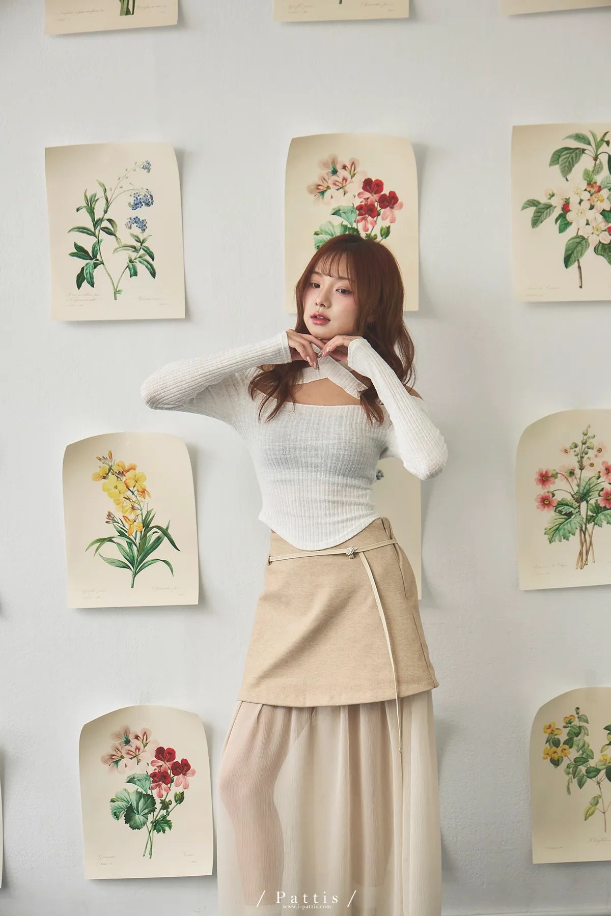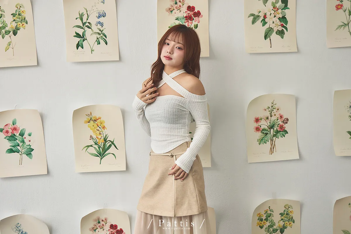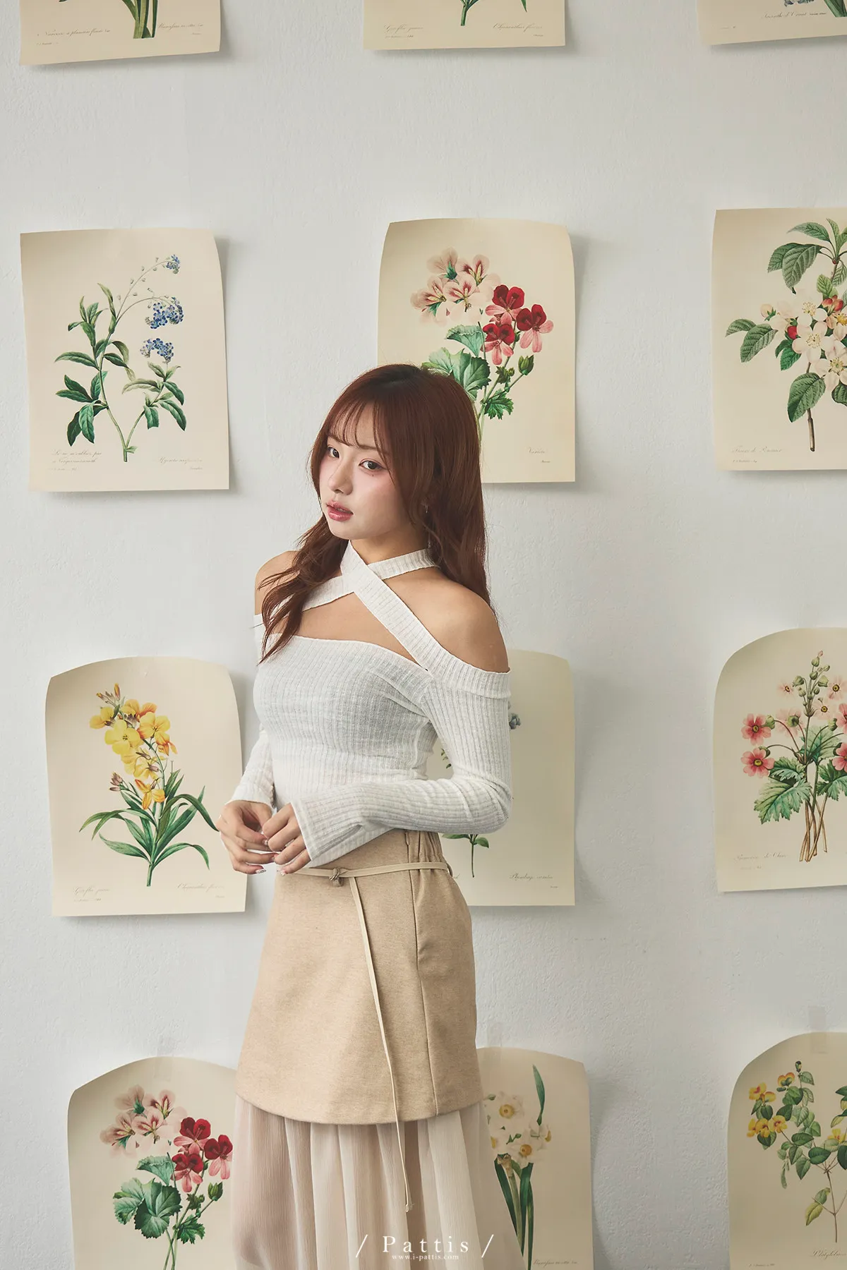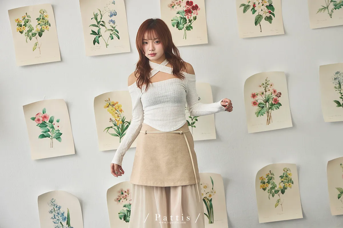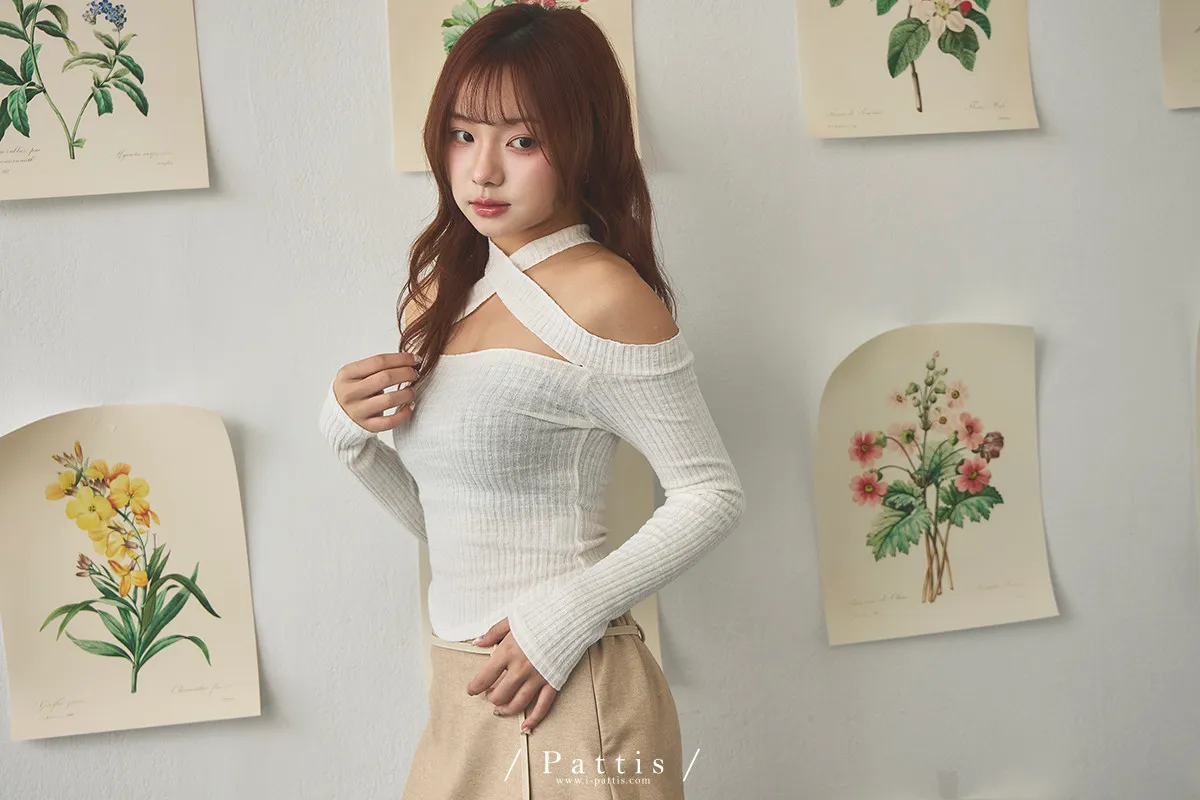 不放手的擁抱 | 交叉造型羅紋一字領長袖上衣(白)