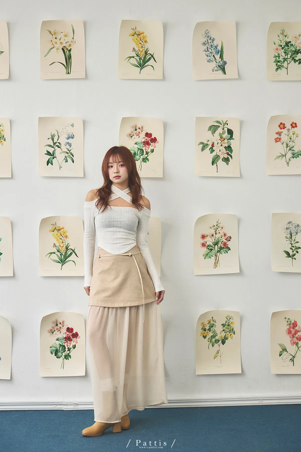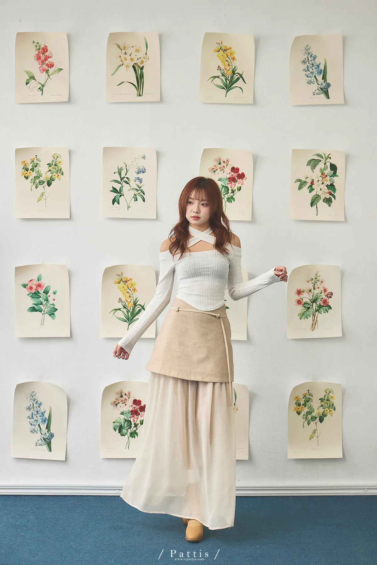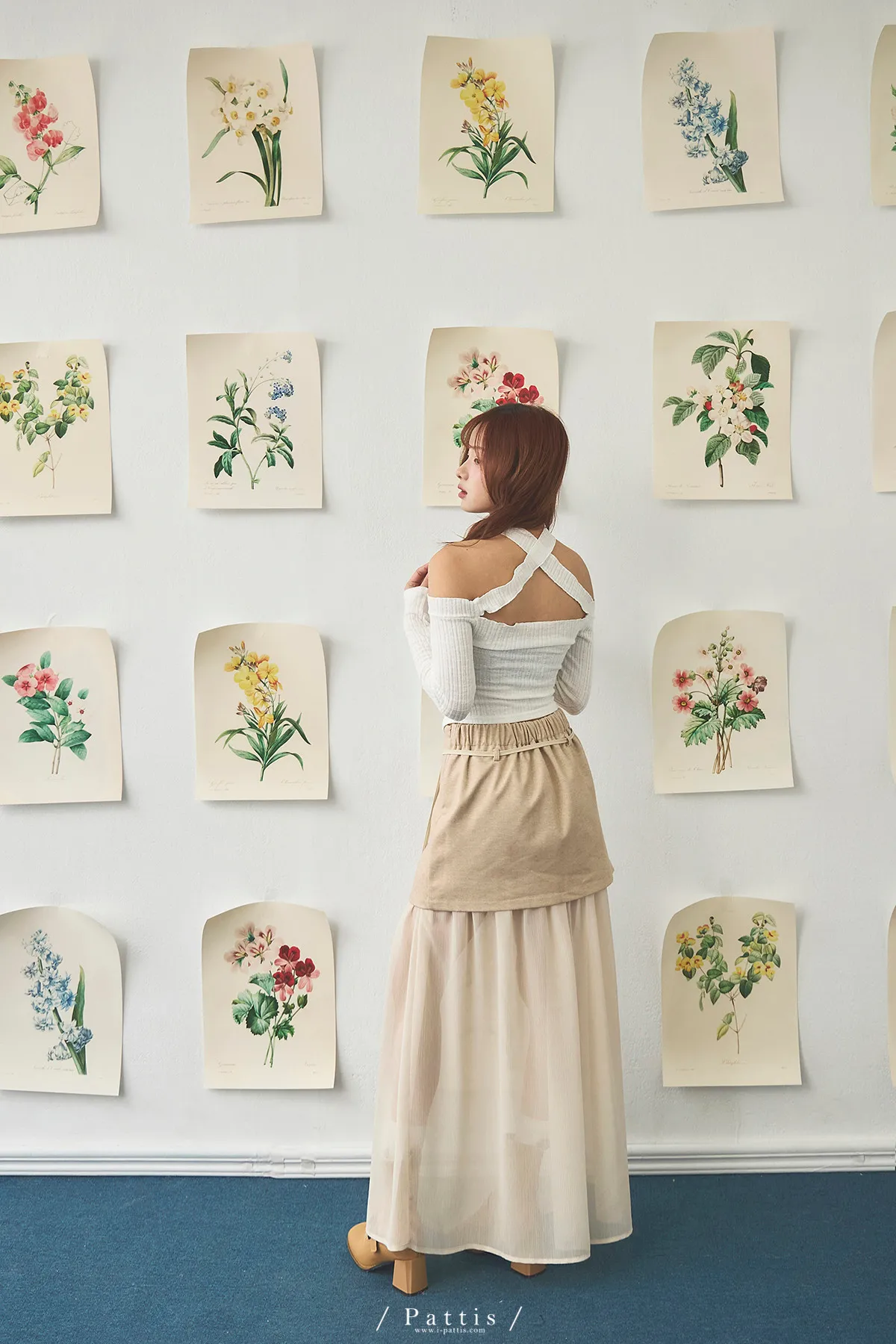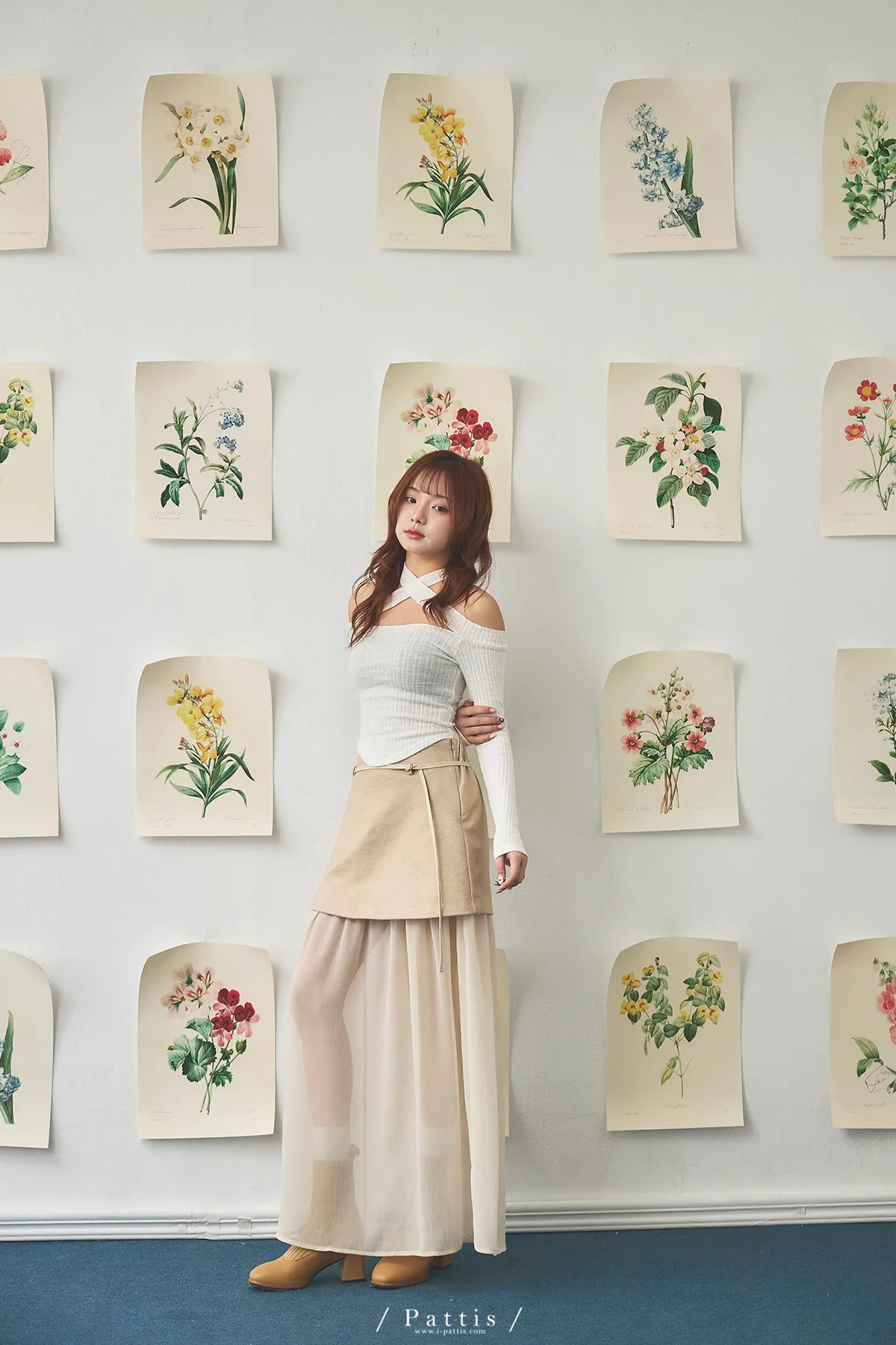 不放手的擁抱 | 交叉造型羅紋一字領長袖上衣(白)