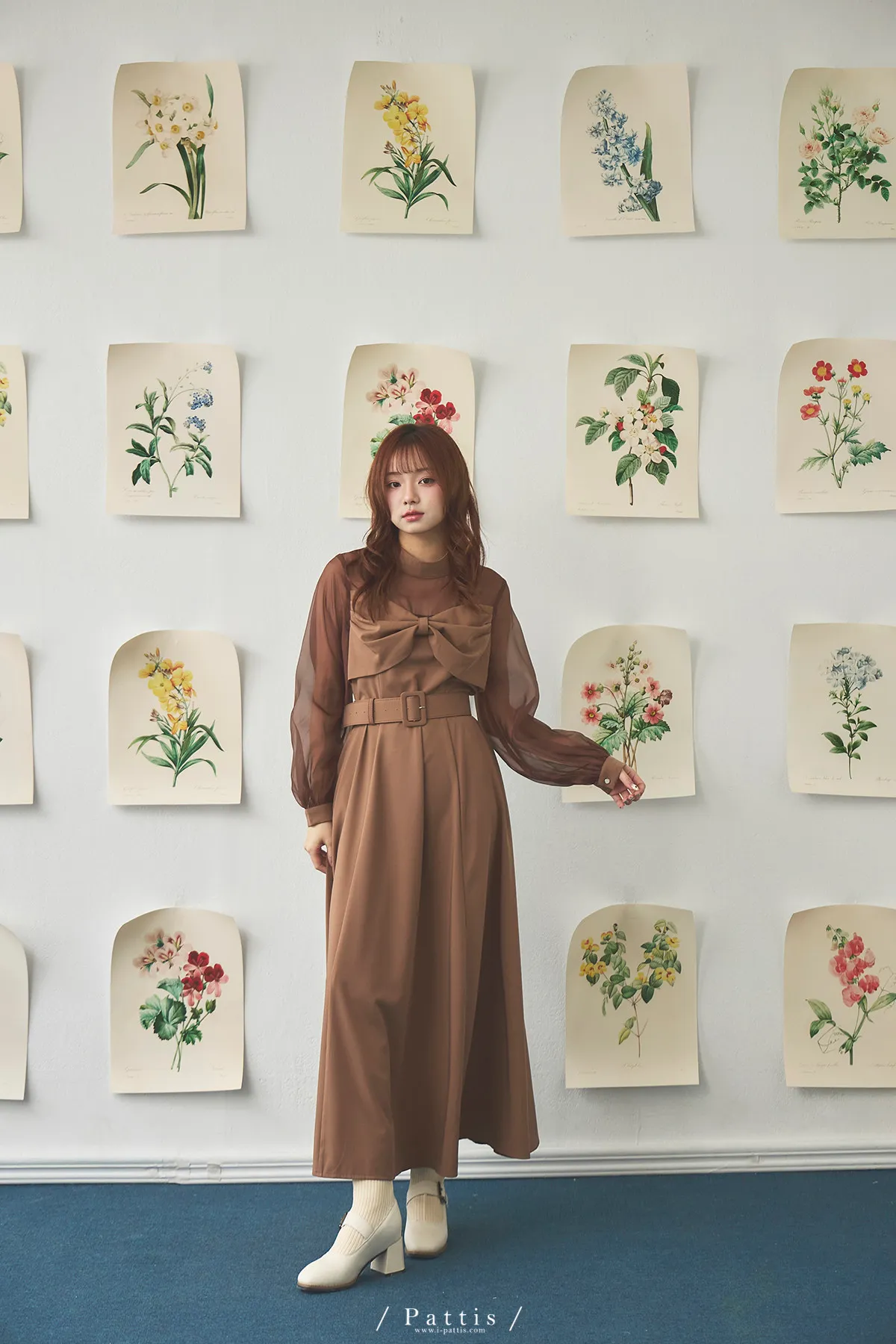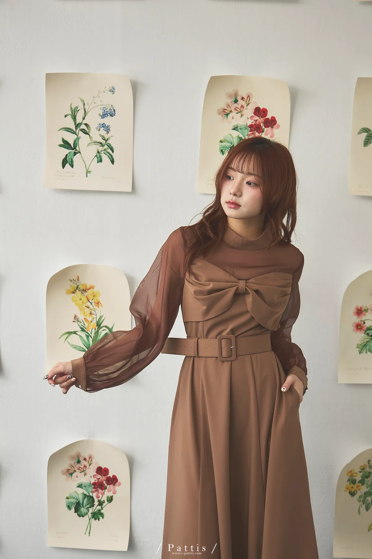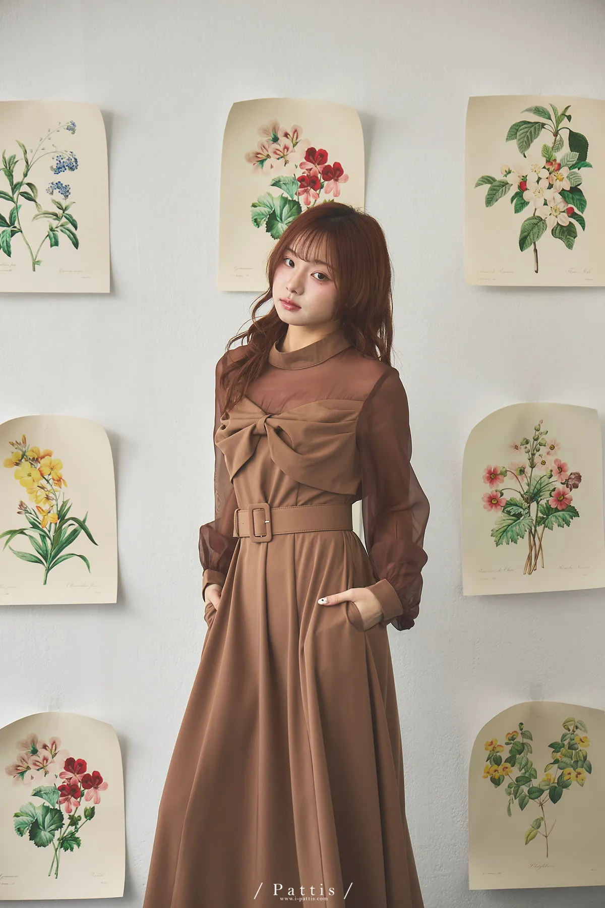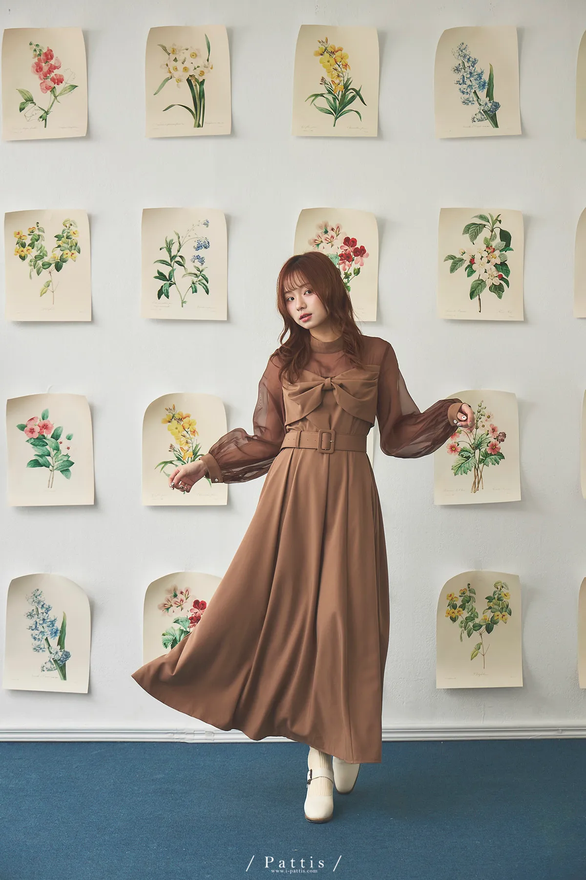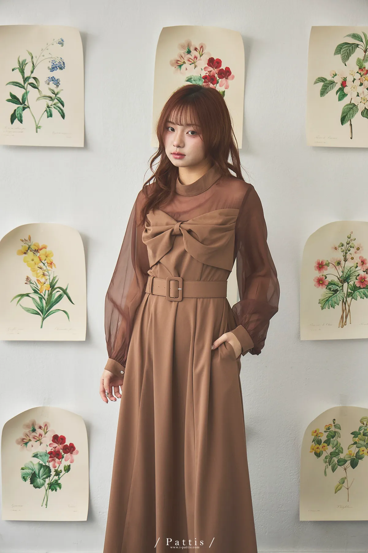 含咖啡因的糖果 | 扭結桃心透肌拼紗洋裝(橘棕)